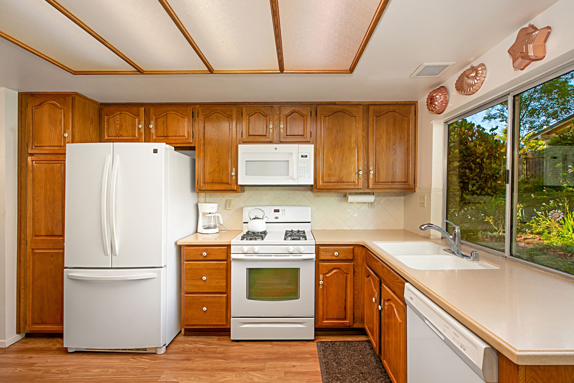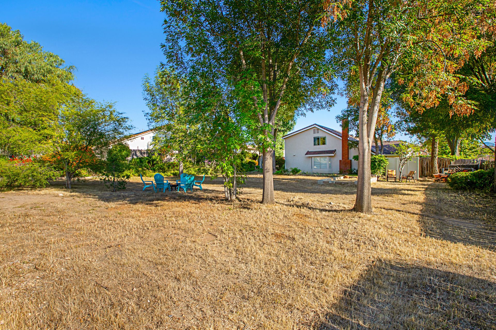 Don’t think twice! This is twice as nice with one lot the size of two! This rare find offers an out-of-the-ordinary and level 19,274 square-foot lot with double driveways and twice the options you normally find! What would you do with almost a 1/4 of an acre of level land? First impressions matter and this charming, traditional, design welcomes you with a storybook front yard, a friendly front porch, and an elegant bay window. The exterior is topped off with a brand-new roof and tiles. At first glance, you will know you have found the home you want to call your own. Once inside, you will arrive at vaulted ceilings, plantation shutters, and a traditional brick fireplace. You will quickly discover a versatile floor plan offering 2,493 square feet with one bedroom on the ground floor and three bedrooms up on the second-story level. The formal dining room looks out over the vast property through yet another charming bay window. The kitchen overlooks the glorious garden view which is also enjoyed by the adjoining breakfast nook and family room. A gas stove, white appliances, and solid surface countertops add to the efficient and generous kitchen. The peaceful patio is nearby and ideal for dining al fresco and relaxing in the shade. This gardener’s dream will surely satisfy as it is blooming with even more potential at every turn. The ground-floor bedroom is a great option and offers an adjoining bathroom. The staircase is grand and shows off the extensive upper landing with plenty of room for furnishings as well. Sliding glass doors adorn most rooms. The oversized secondary bedrooms will surprise you and the adjoining baths make this a design that fits everyone. Plenty of options here! Don’t miss the playful kid cave upstairs!
