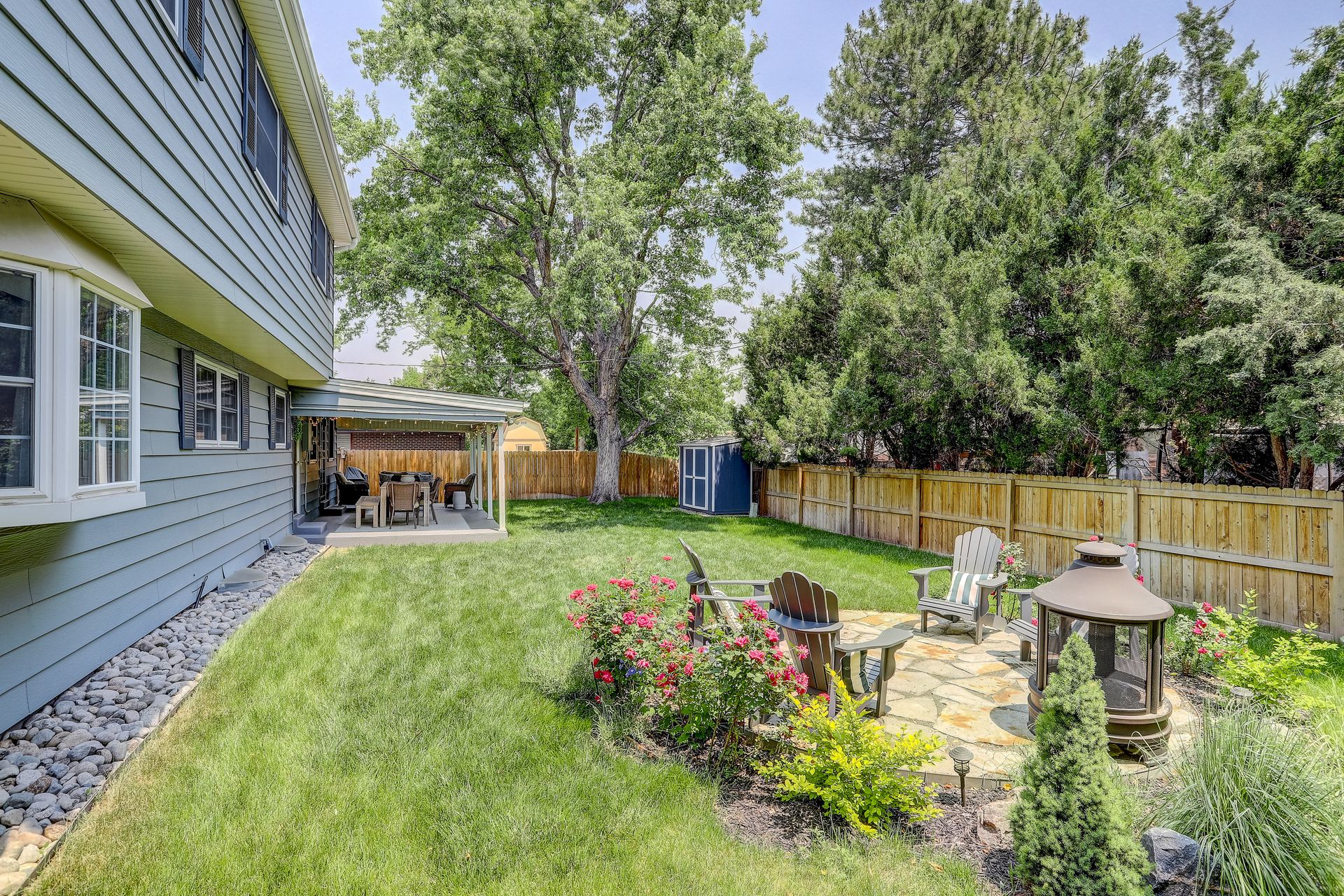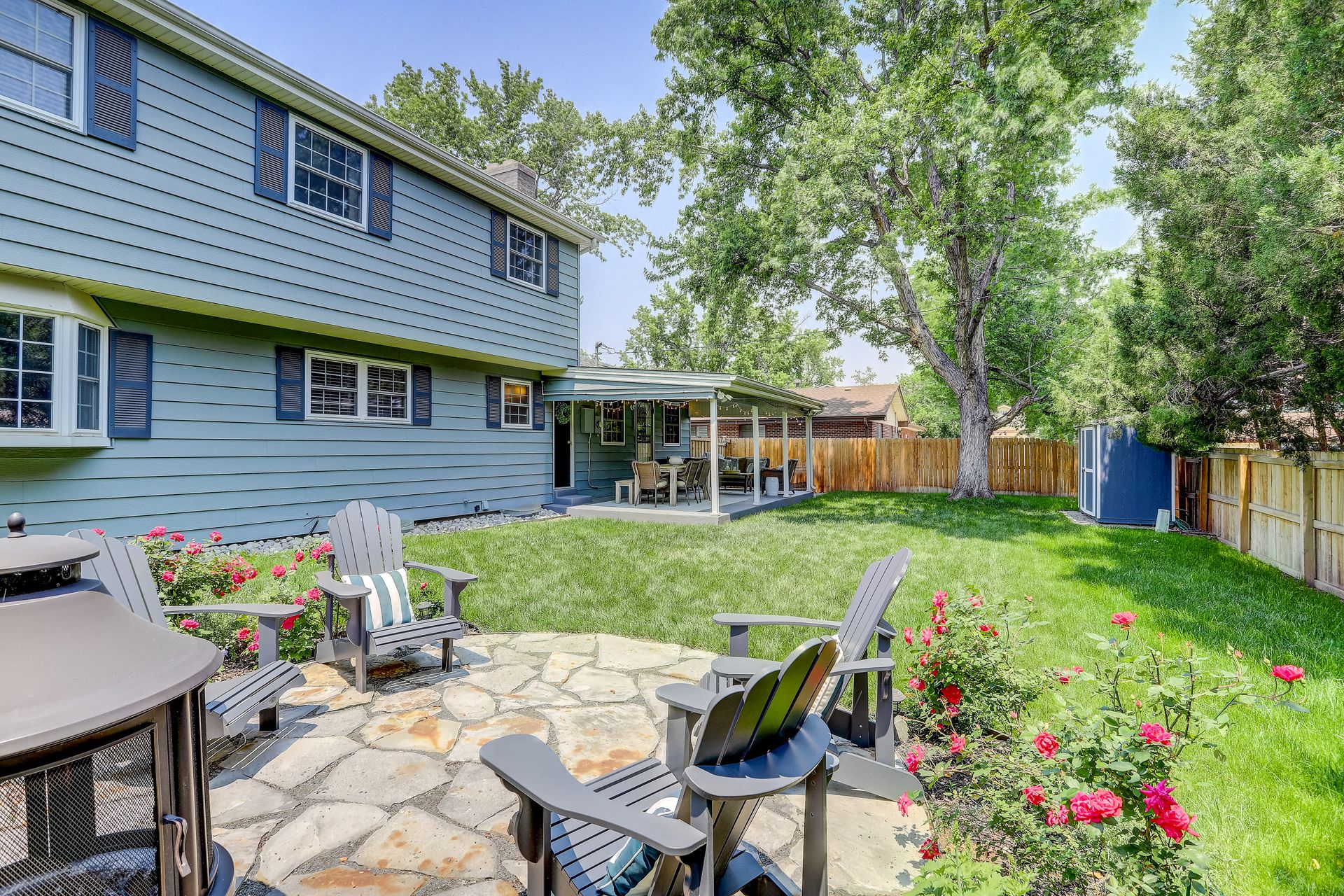 Exceptional four bedroom, three bathroom, traditional home in Lakewood's Southern Gables. The owners have lovingly cared for this property during their ownership and have completed many upgrades. Features include: upgraded kitchen with updated stainless appliances and quartz counters, real hardwood floors throughout, remodeled family room with a fireplace, custom window treatments, complete landscaping, new central air conditioning, smart irrigation system, new privacy fence, new storage shed, upgraded slate patio oasis in the backyard, new custom primary closet, new closet organization throughout, custom-colored brick imaging, updated floor tile on the main level, updated bathrooms and vanities throughout, fresh modern paint throughout, new designer blinds throughout, all new switches and switch plates throughout. Pride in ownership shows with this home! The owners have carefully maintained the property’s interior and exterior. This is a clean, pet and smoke-free home! Super location with quick access to downtown Denver, 6th Avenue and I-70 for access to the mountains. Minutes from the Lakewood Shopping District of Belmar to the north and Southwest Shopping Plaza to the south in Littleton. Lakewood parks and open spaces nearby for your exercise need. Some furnishings may be available for sale. Seller to provide a list of those items for sale. Don't miss this one as it will not last long!