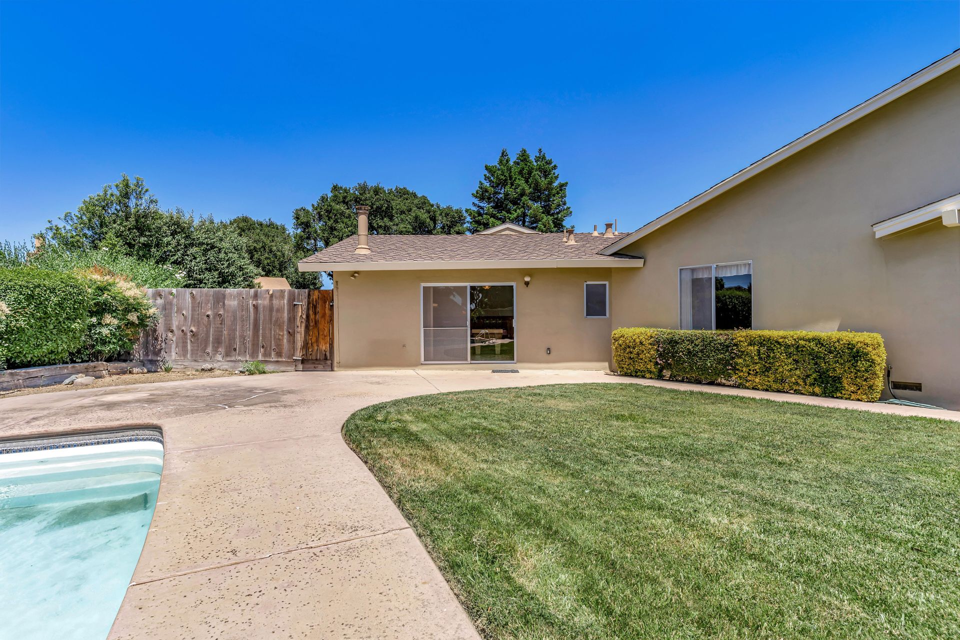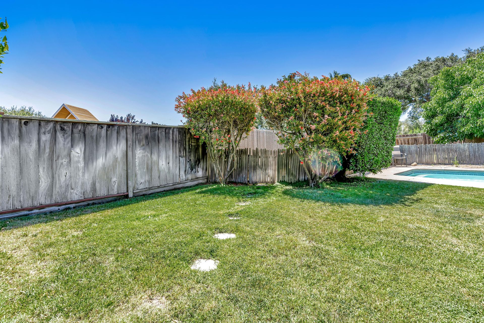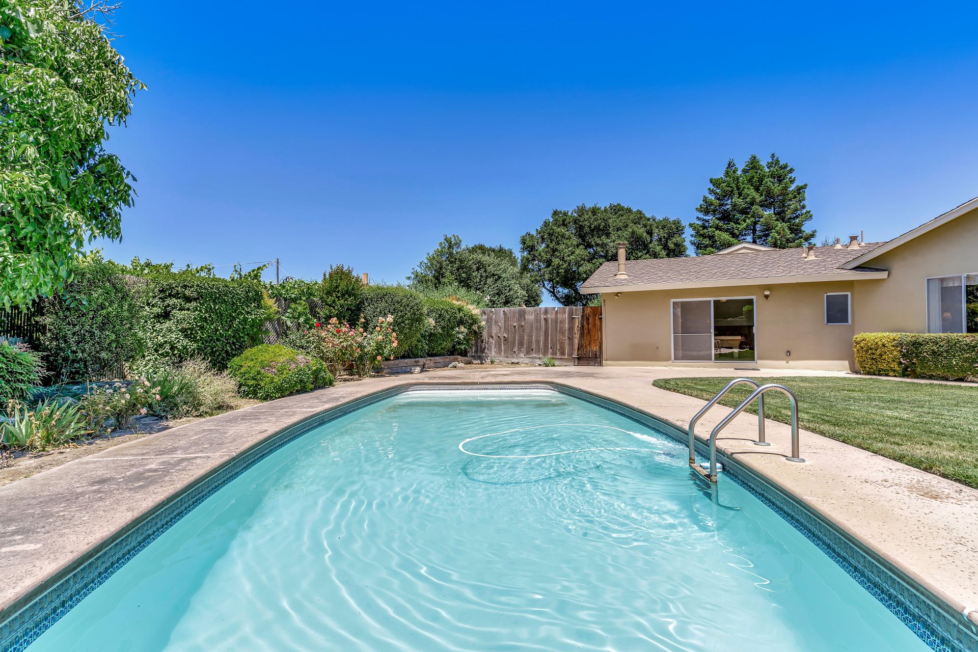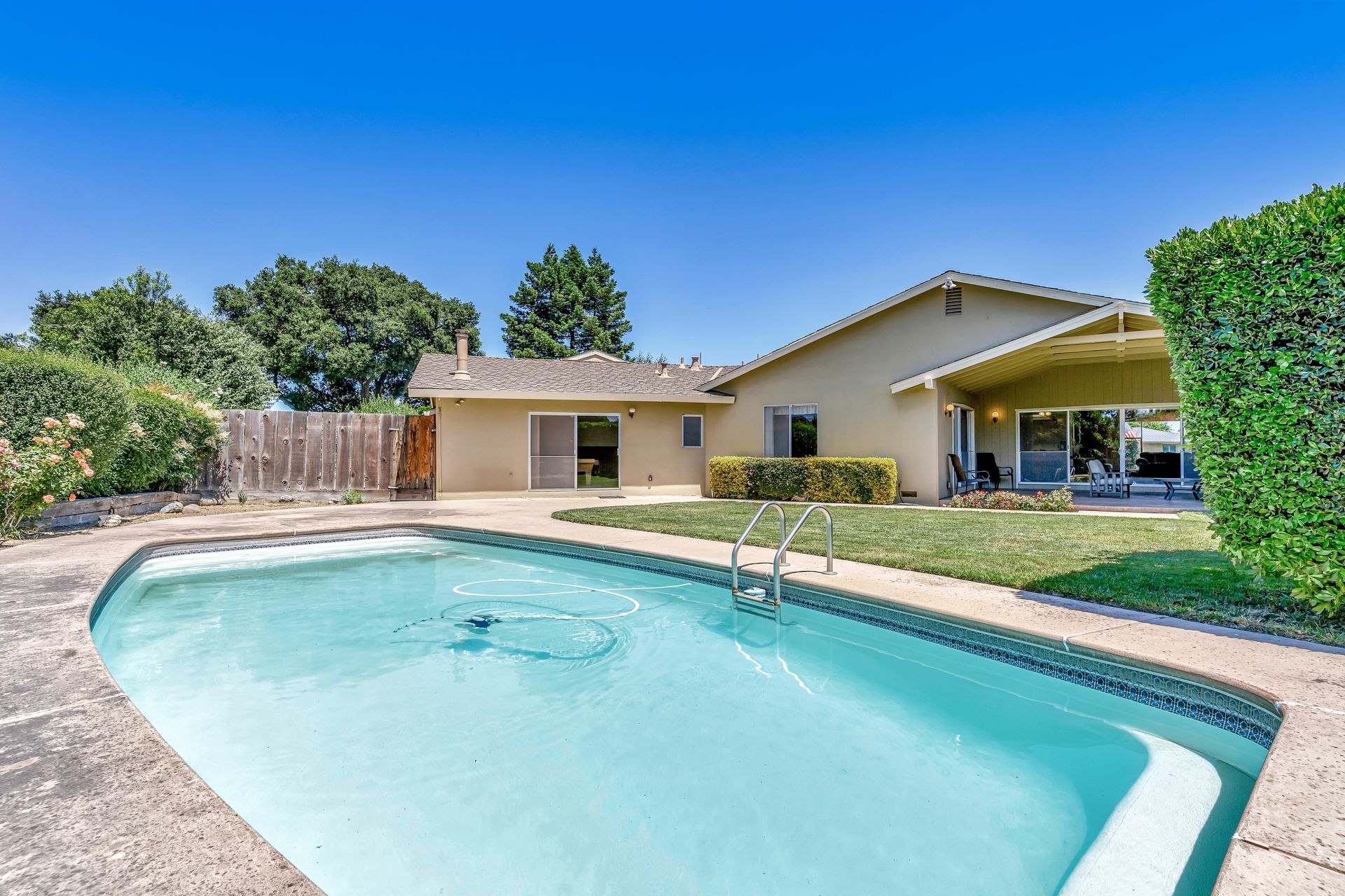 Welcome to Grove Place, a cul-de-sac in the heart of King City known for its curb appeal! On a large 12,000 square foot lot at the end of the street, this three-bed, three-bath single-story home is a roomy 2,573 square foot home with a pool! The large living room features a gas-insert fireplace and floor-to-ceiling windows that flow into the backyard. The primary bedroom has room for a sitting area, reading nook, or desk space. The roomy second bedroom and third front bedroom enjoy plenty of natural light. The spacious permitted bonus room is ideal for parties, recreation, or a separate living area. The covered patio is primed for entertaining during your pool parties, barbecues, and horseshoe games. The side yard is a blank slate for raised beds, a greenhouse, or even a small ADU (buyer to verify). The exterior is tastefully landscaped with front and back lawns, foliage, colorful roses, and fruit trees. The two-car garage features ample wall storage, a work bench area, and a separate storage room. Solar saves you money on electric bills!