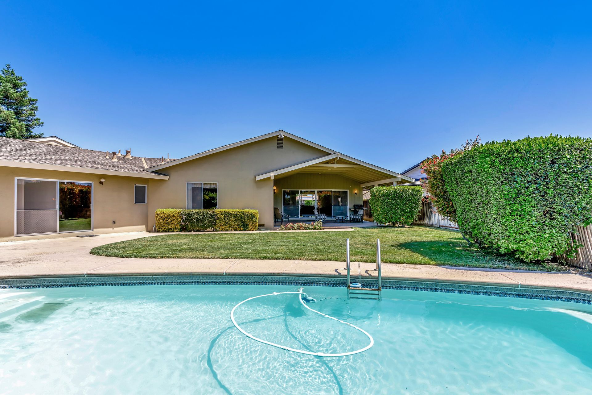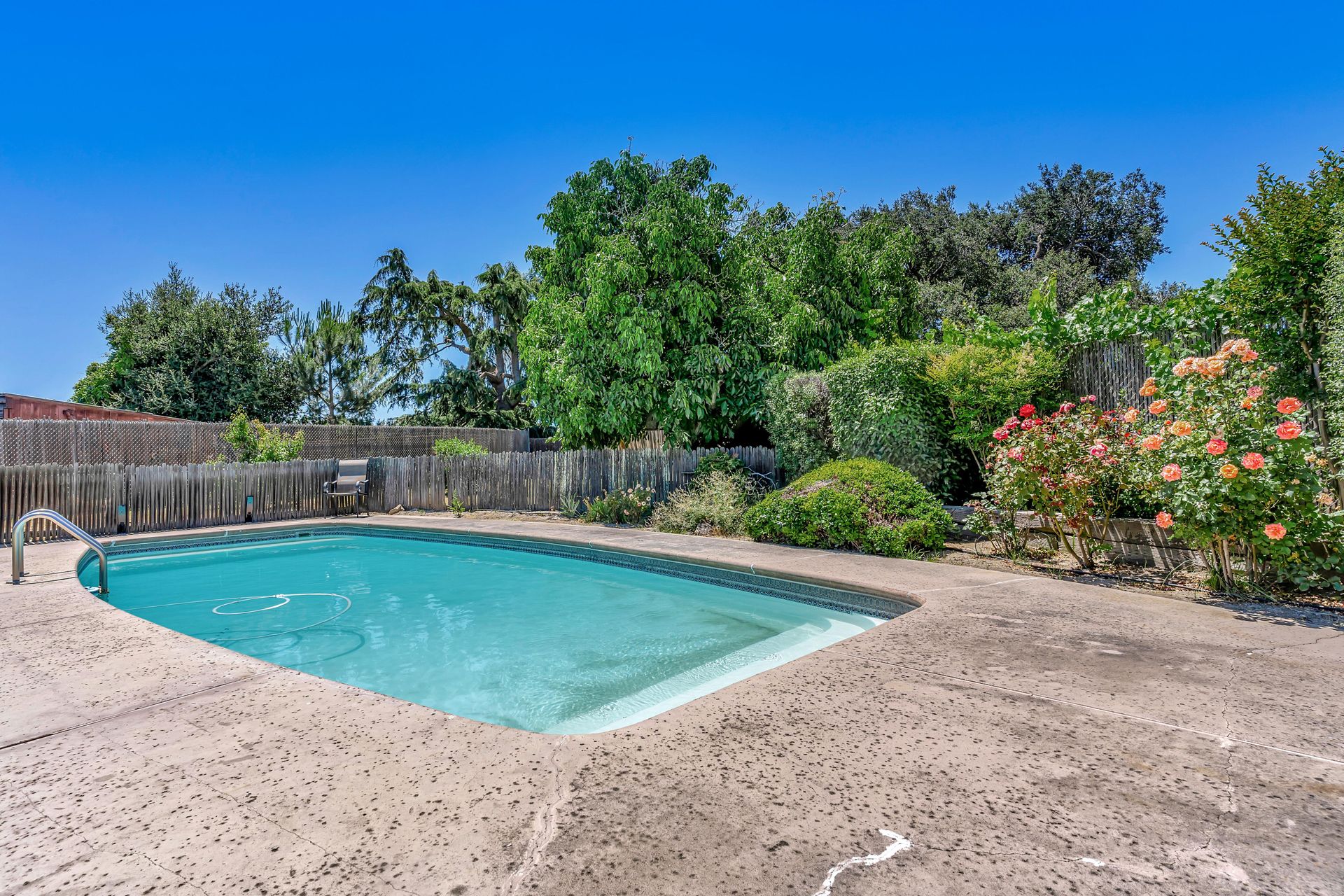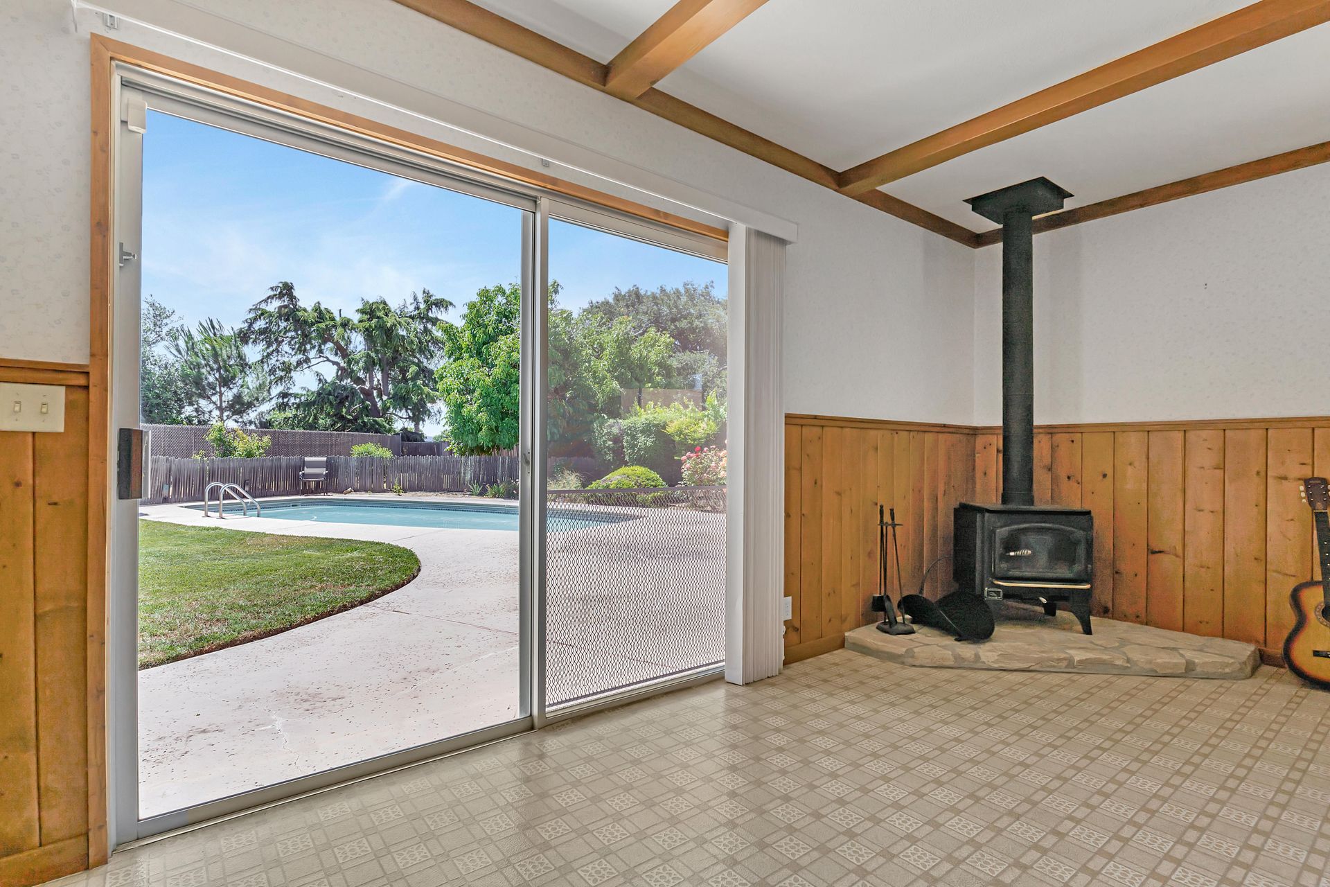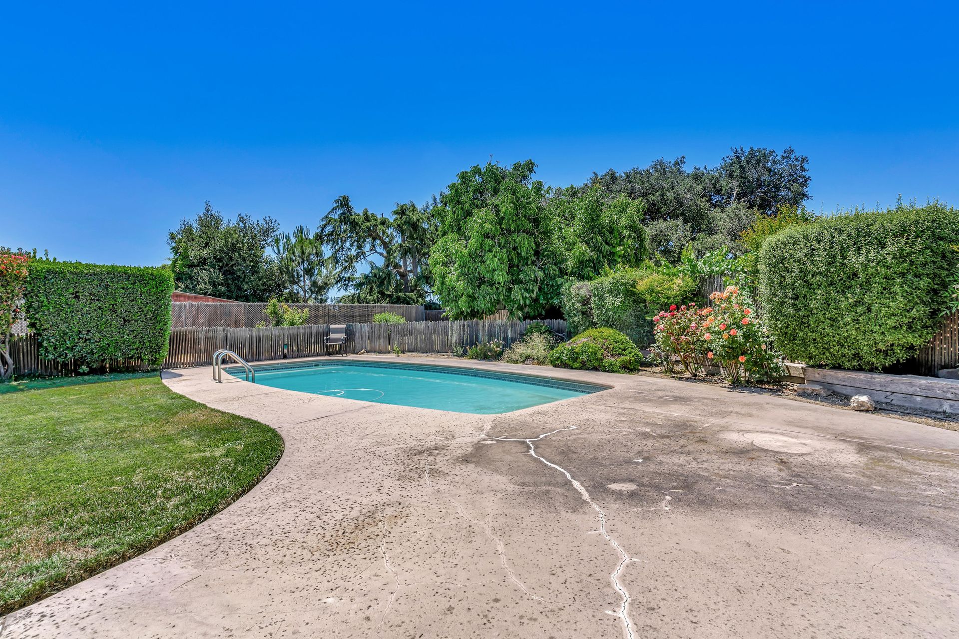 Welcome to Grove Place, a cul-de-sac in the heart of King City known for its curb appeal! On a large 12,000 square foot lot at the end of the street, this three-bed, three-bath single-story home is a roomy 2,573 square foot home with a pool! The large living room features a gas-insert fireplace and floor-to-ceiling windows that flow into the backyard. The primary bedroom has room for a sitting area, reading nook, or desk space. The roomy second bedroom and third front bedroom enjoy plenty of natural light. The spacious permitted bonus room is ideal for parties, recreation, or a separate living area. The covered patio is primed for entertaining during your pool parties, barbecues, and horseshoe games. The side yard is a blank slate for raised beds, a greenhouse, or even a small ADU (buyer to verify). The exterior is tastefully landscaped with front and back lawns, foliage, colorful roses, and fruit trees. The two-car garage features ample wall storage, a work bench area, and a separate storage room. Solar saves you money on electric bills!
