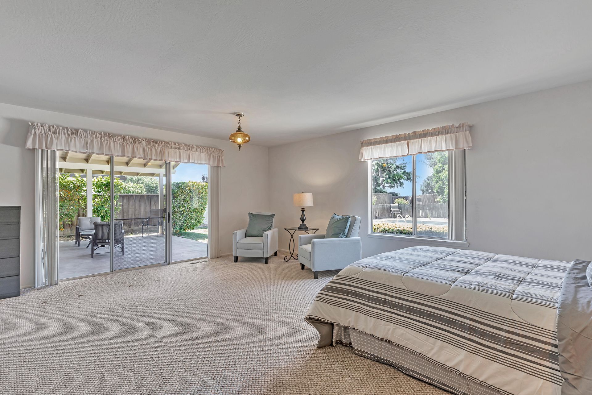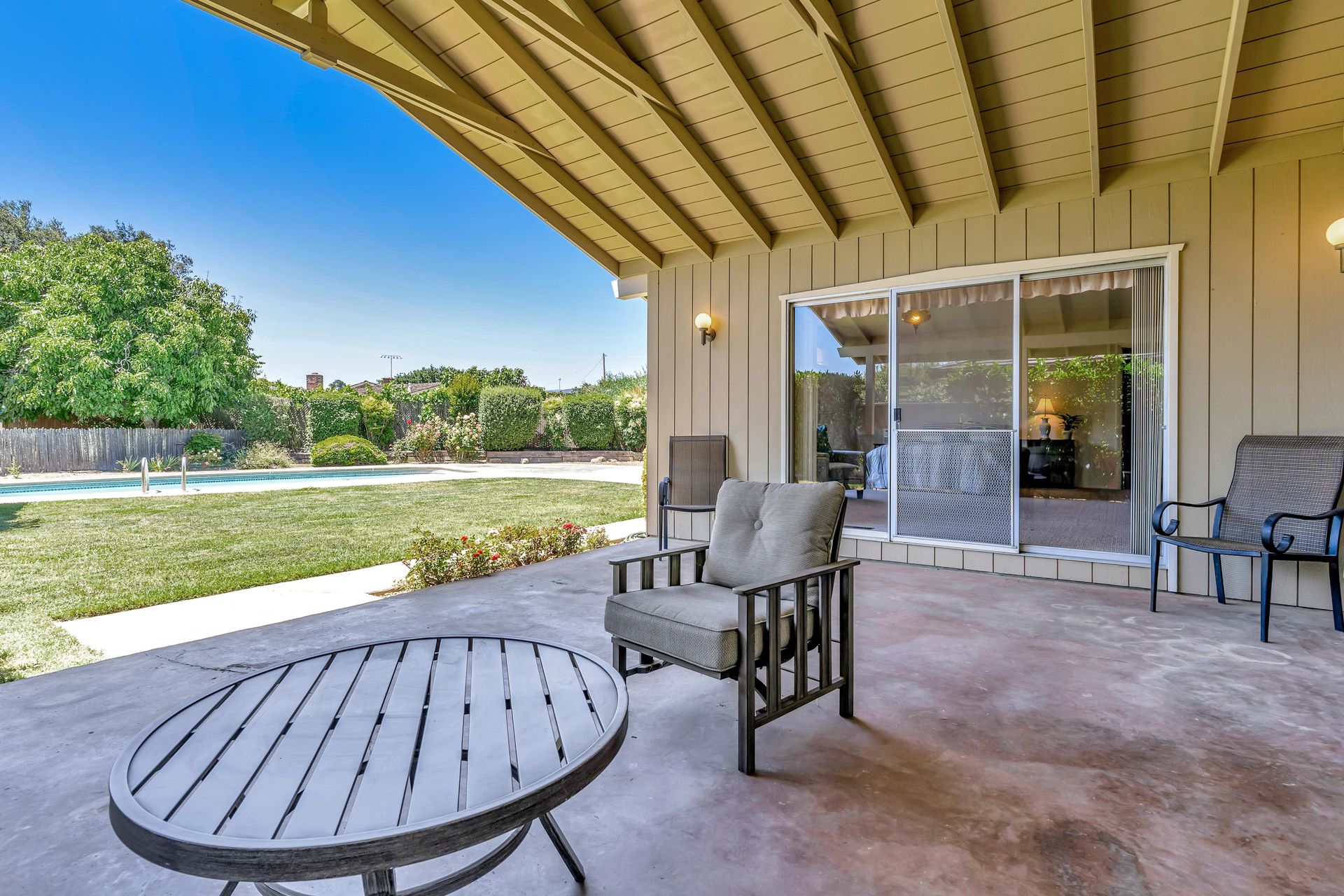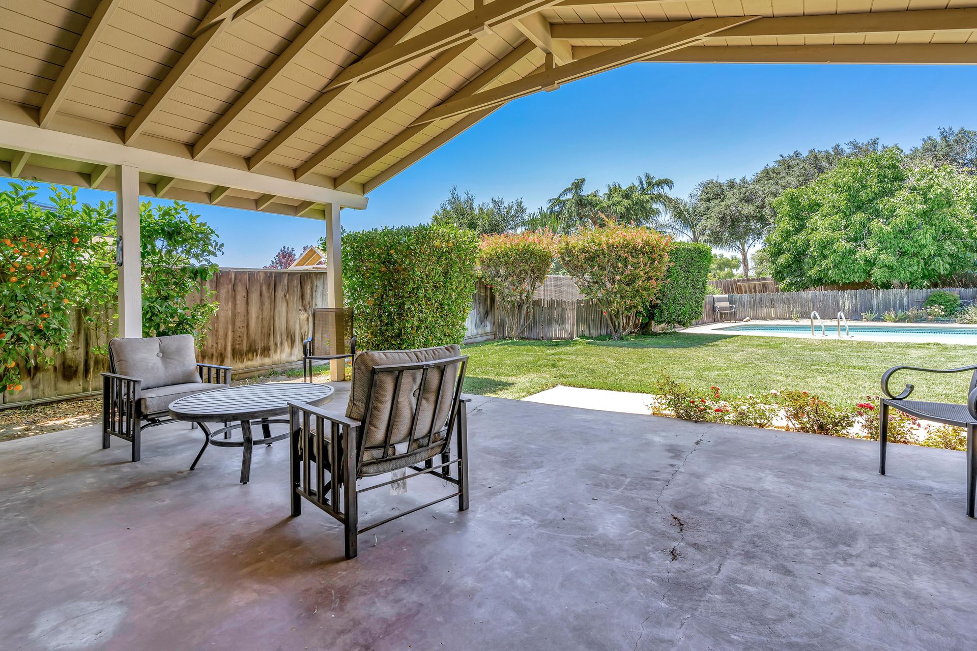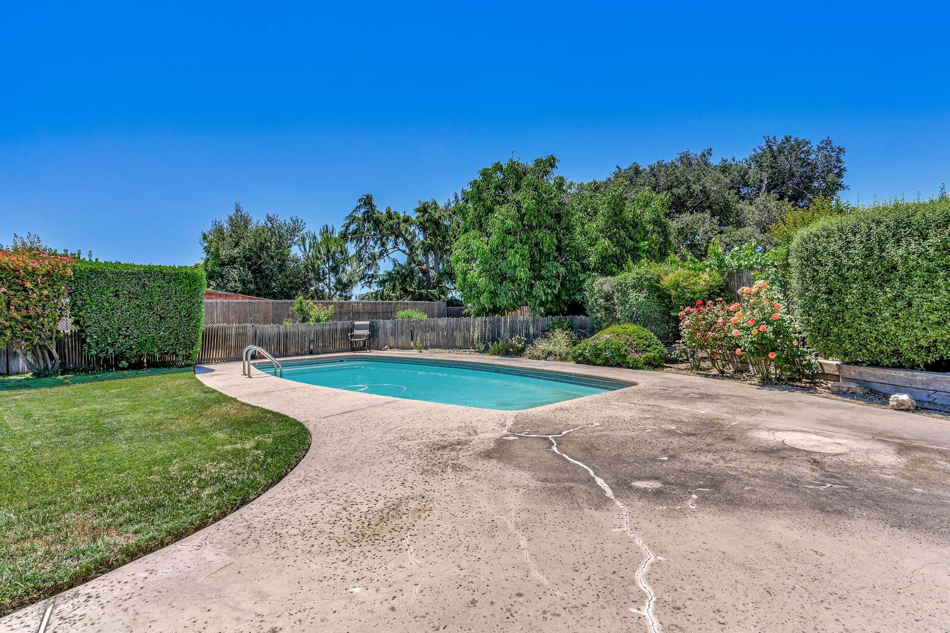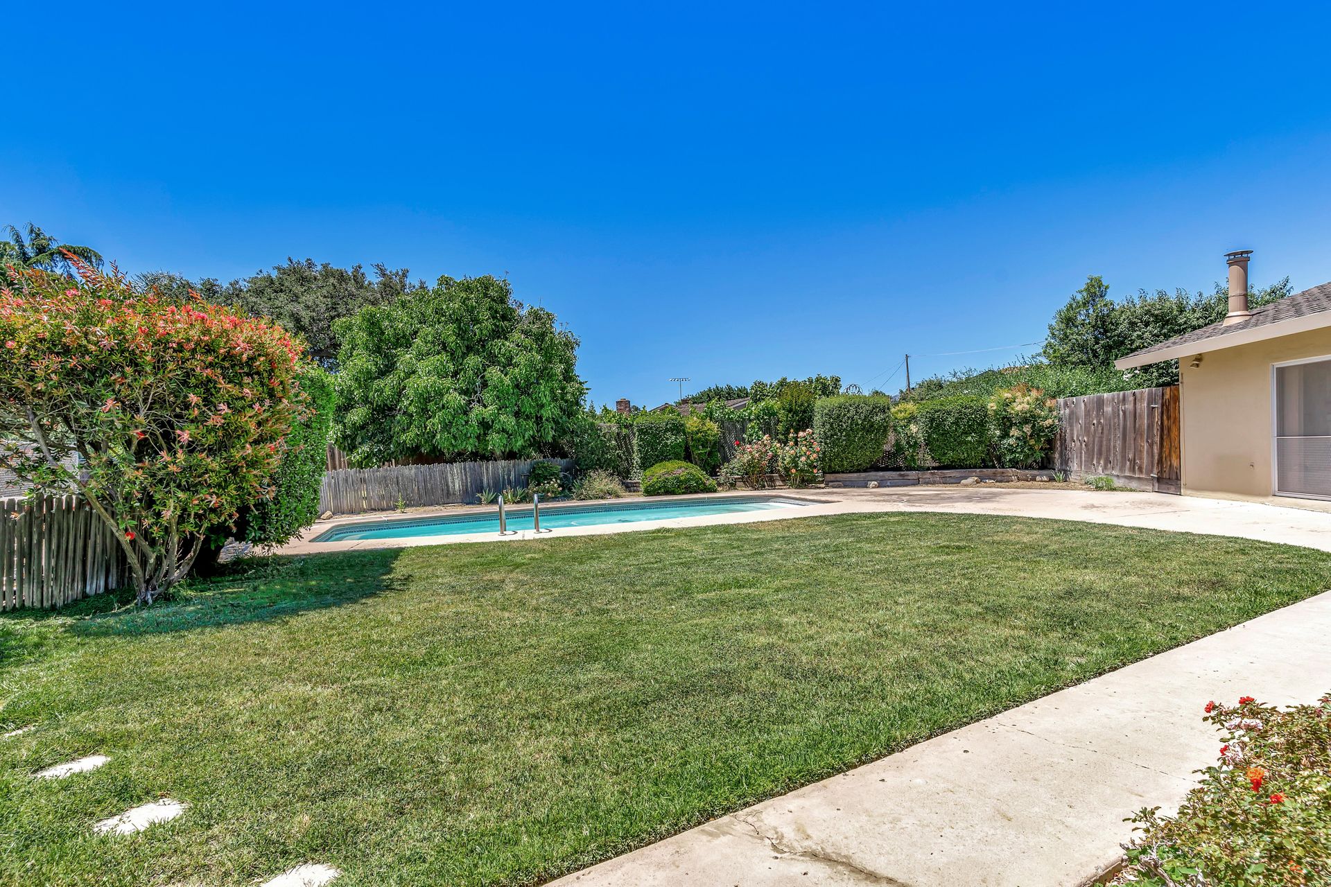 Welcome to Grove Place, a cul-de-sac in the heart of King City known for its curb appeal! On a large 12,000 square foot lot at the end of the street, this three-bed, three-bath single-story home is a roomy 2,573 square foot home with a pool! The large living room features a gas-insert fireplace and floor-to-ceiling windows that flow into the backyard. The primary bedroom has room for a sitting area, reading nook, or desk space. The roomy second bedroom and third front bedroom enjoy plenty of natural light. The spacious permitted bonus room is ideal for parties, recreation, or a separate living area. The covered patio is primed for entertaining during your pool parties, barbecues, and horseshoe games. The side yard is a blank slate for raised beds, a greenhouse, or even a small ADU (buyer to verify). The exterior is tastefully landscaped with front and back lawns, foliage, colorful roses, and fruit trees. The two-car garage features ample wall storage, a work bench area, and a separate storage room. Solar saves you money on electric bills!