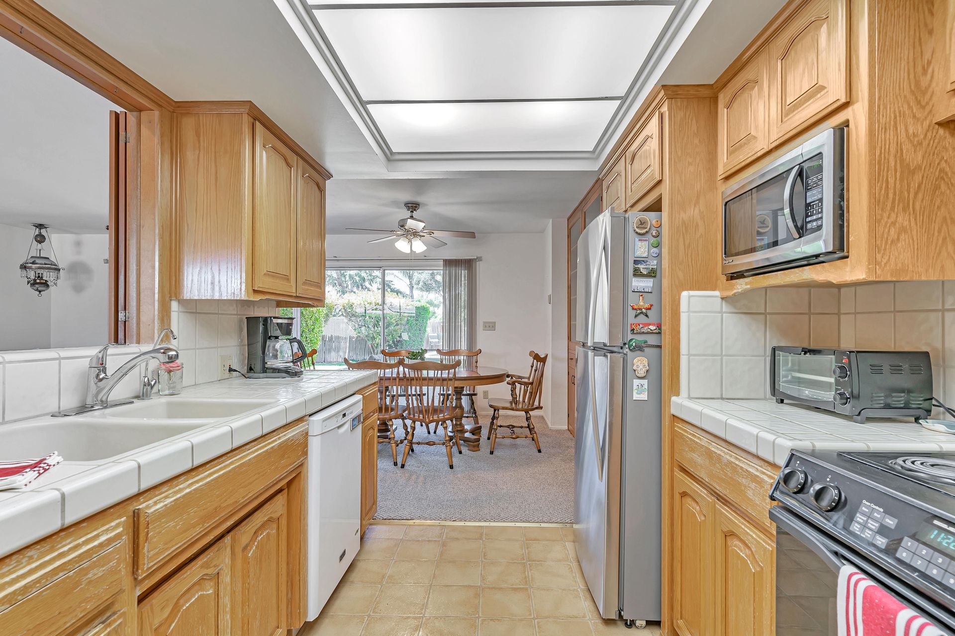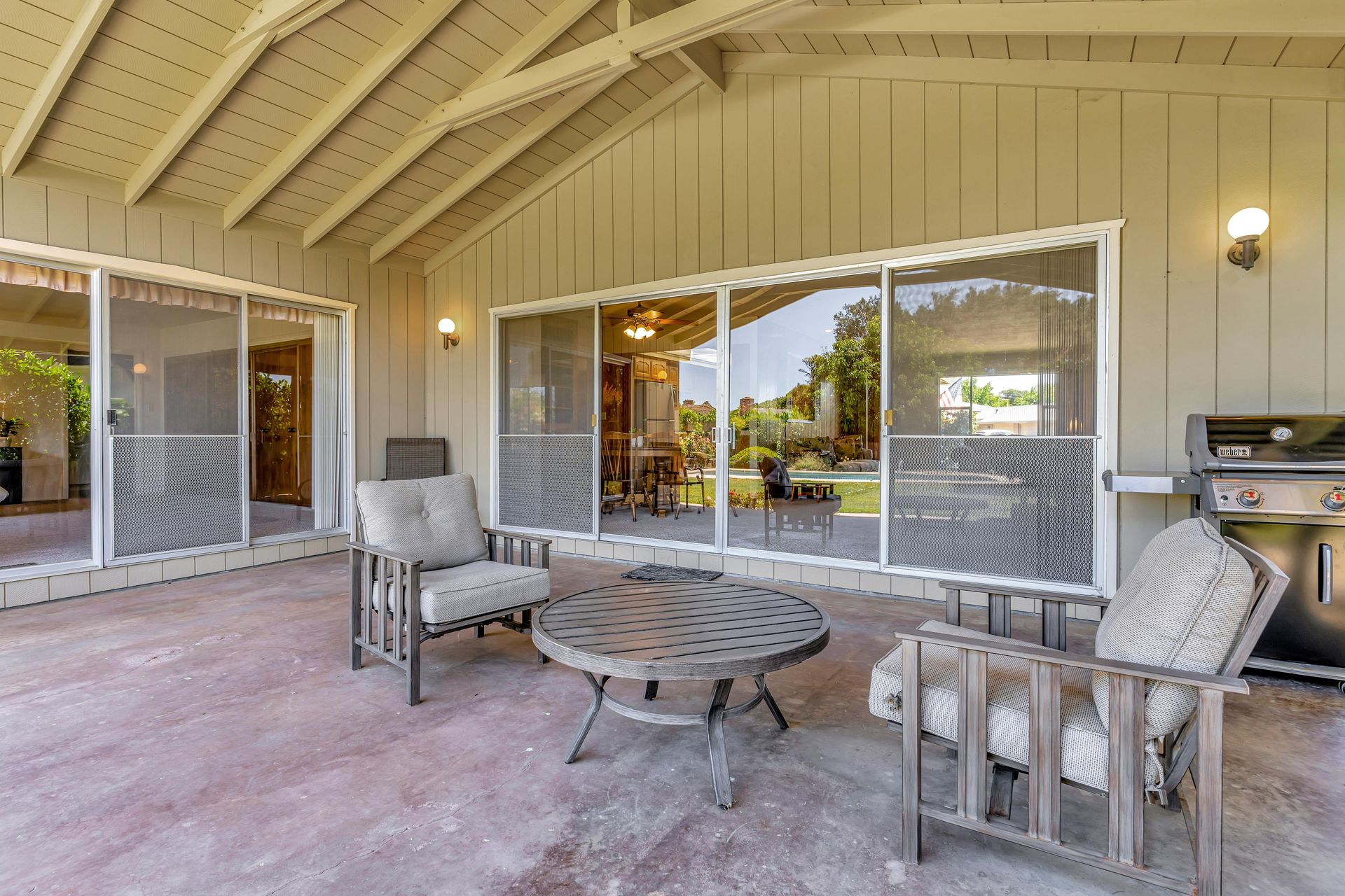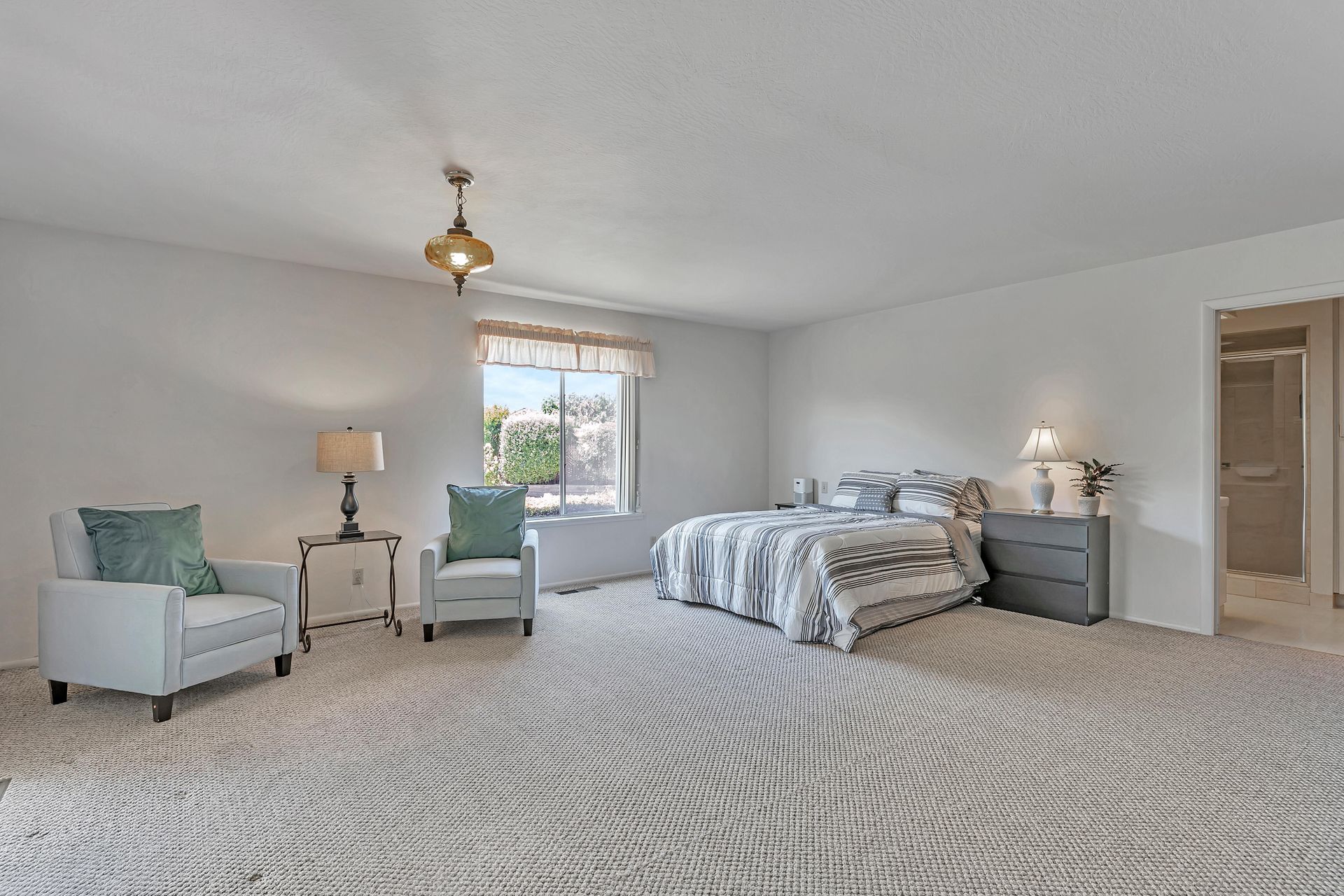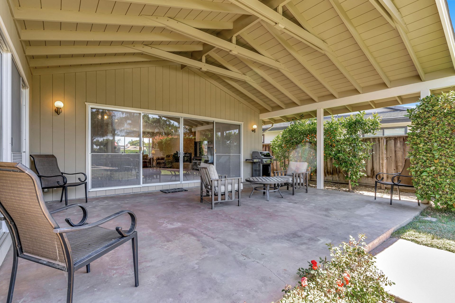 Welcome to Grove Place, a cul-de-sac in the heart of King City known for its curb appeal! On a large 12,000 square foot lot at the end of the street, this three-bed, three-bath single-story home is a roomy 2,573 square foot home with a pool! The large living room features a gas-insert fireplace and floor-to-ceiling windows that flow into the backyard. The primary bedroom has room for a sitting area, reading nook, or desk space. The roomy second bedroom and third front bedroom enjoy plenty of natural light. The spacious permitted bonus room is ideal for parties, recreation, or a separate living area. The covered patio is primed for entertaining during your pool parties, barbecues, and horseshoe games. The side yard is a blank slate for raised beds, a greenhouse, or even a small ADU (buyer to verify). The exterior is tastefully landscaped with front and back lawns, foliage, colorful roses, and fruit trees. The two-car garage features ample wall storage, a work bench area, and a separate storage room. Solar saves you money on electric bills!