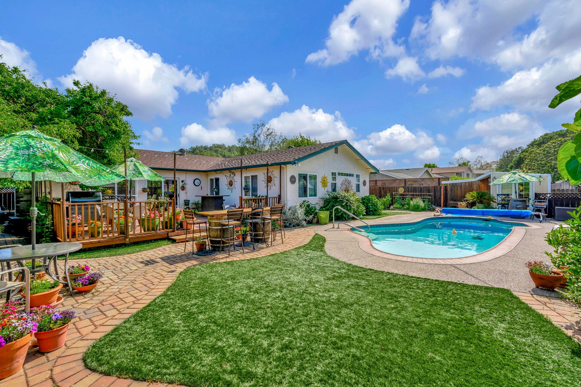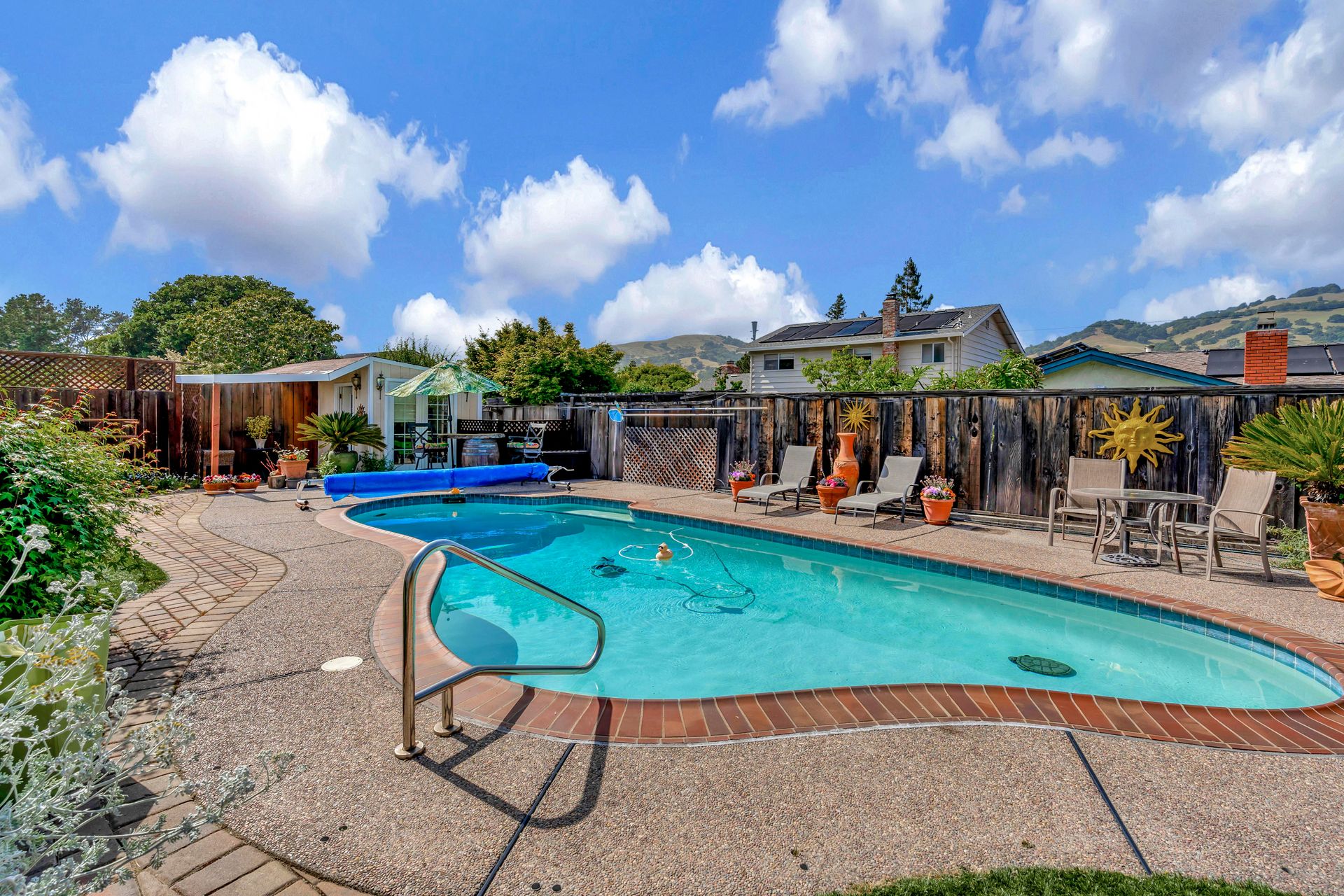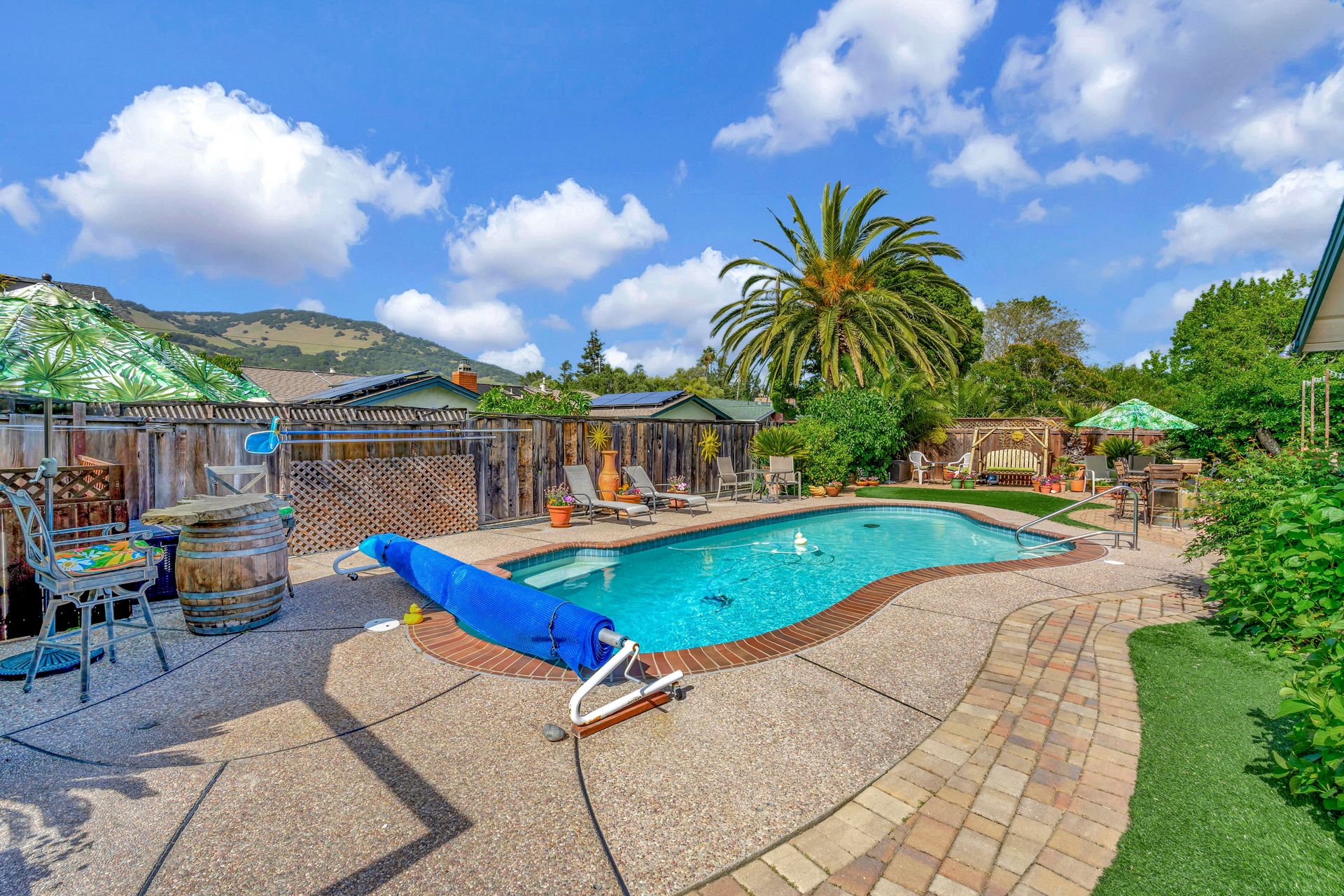 Welcome to this single-level home in San Marin! This beautiful four bedroom, two bath home boasts gorgeous views of Mount Burdell. Details include an updated kitchen with a gas cooktop and skylights, wood floors, central air conditioning, recessed lighting, double pane windows and updated baths. The family room opens to a beautiful flower lined deck for relaxing or entertaining. The expansive backyard has a sparkling pool, paver patio areas and walkaways as well as a vegetable garden. There is a shed/outbuilding in the yard, which offers electricity and a concrete floor that has endless options. Enjoy being close to trails, schools, shopping and nearby restaurants.