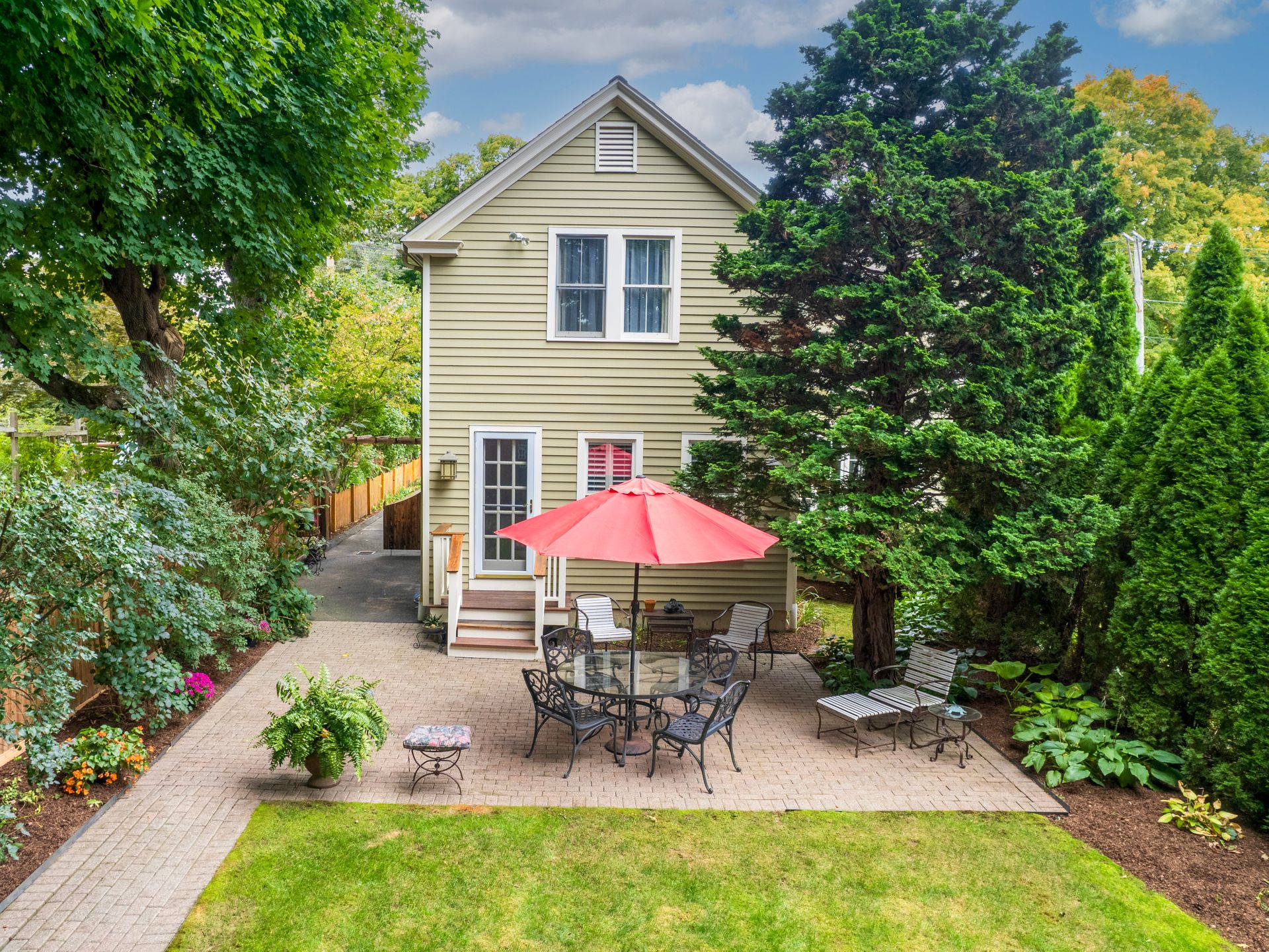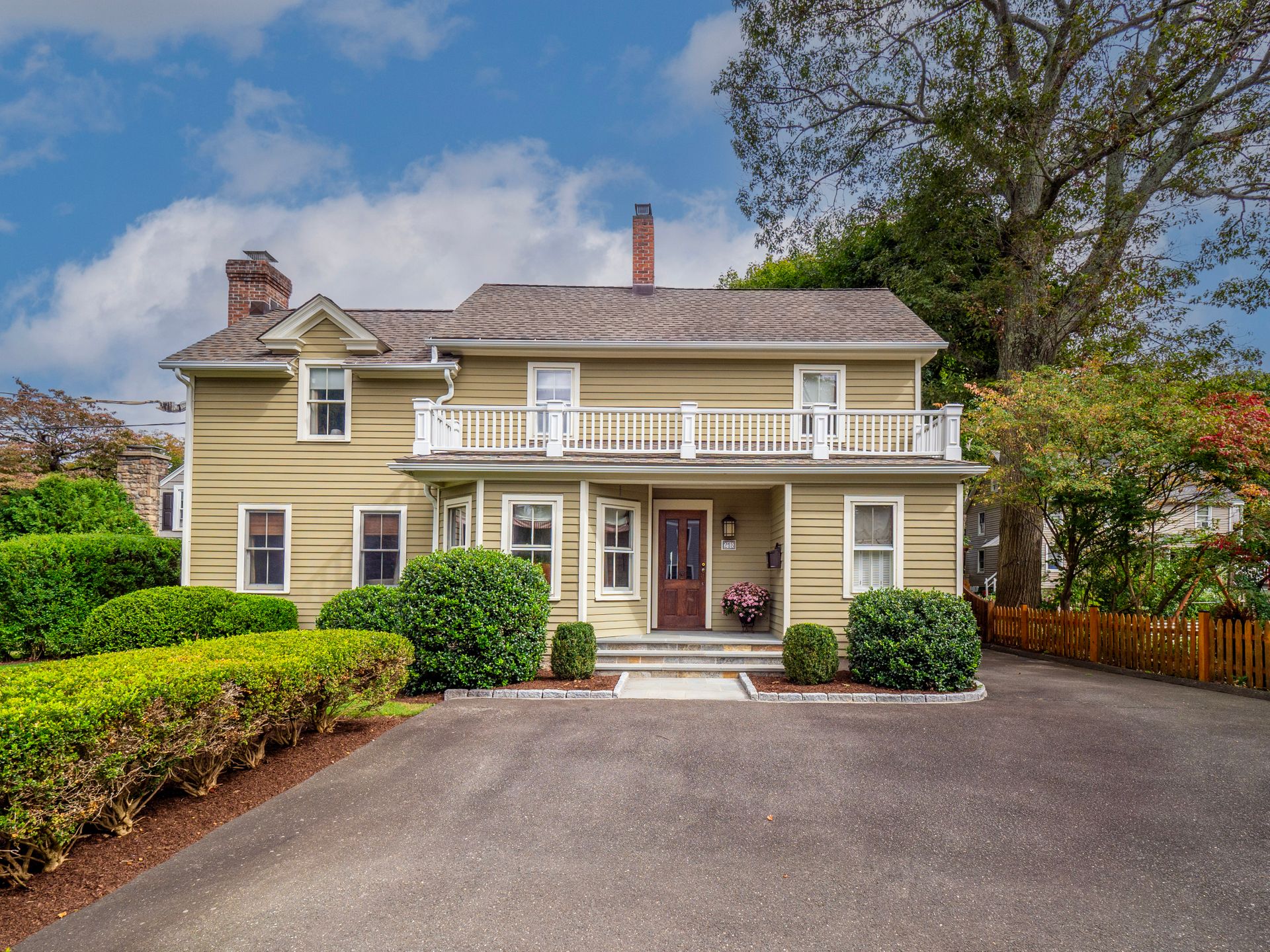 **Prime Location in Town!** This enchanting 1910 clapboard colonial home has been lovingly maintained over the years. It boasts a serene private backyard that leads to a separate carriage house with a two-car garage below. Together, both dwellings offer approximately 2,718 square feet of versatile living space. Upstairs in the main house, you'll find three bedrooms and two and a half baths, including a primary suite with ample closets and full bath with jacuzzi tub. The second floor also features a cozy sitting area and convenient laundry area. The main level includes an open eat-in kitchen and family room, a dining room, a living room with a fireplace, 1/2 bath and a finished bonus area in the basement perfect for a playroom or gym. Hardwood floors and distinctive charm are abundant. The kitchen is equipped with granite counters, a brand-new double oven, a gas cooktop, a breakfast counter and plenty of storage. The family room and dining area open to a brick backyard patio, a private retreat with beautiful plantings. The 1900 cedar-shingled carriage house exudes old-world charm and has its own entrance, two side patios, and a fire pit. It can serve as a possible ADU or additional living space, complete with a loft bedroom area, first-floor living quarters with a full bath and a kitchenette. The tranquil backyard seamlessly connects both dwellings. Enjoy a short walk to Main Street with sidewalks right outside your front door, leading you to Ballard Park, Ridgefield Library, Prospector Theater, Ridgefield Playhouse and all the wonderful downtown shopping and restaurants Ridgefield has to offer! 1 hour to NYC.