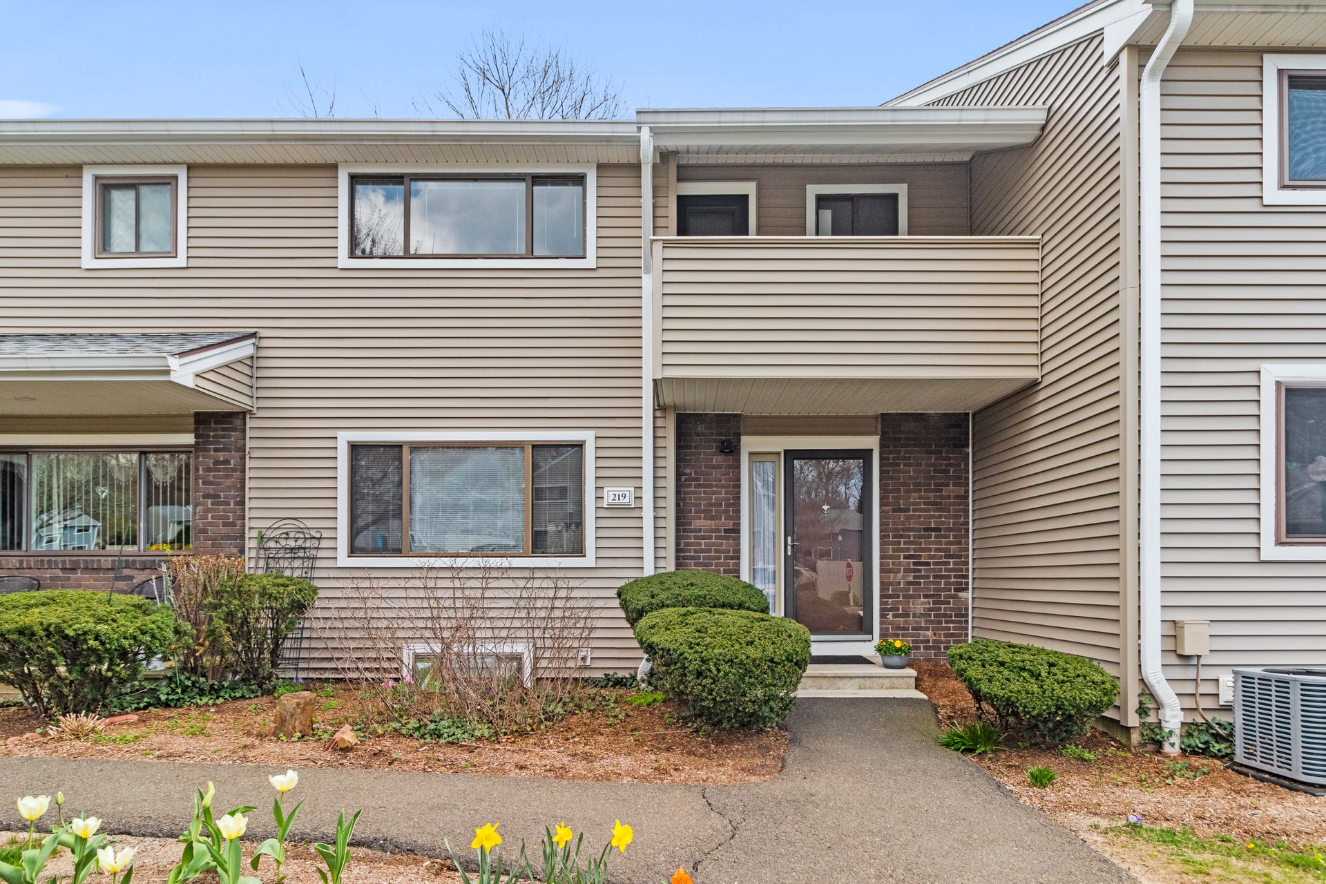 Sought after THREE bedroom, 2.5 bath townhome with bonus finished basement! Lots to love about this unit starting with its location. Close to the pool for those hot summer days that will soon be upon us! AND fabulous East West orientation for natural light all day long! PLUS it overlooks an open field edged by trees, for year-round nature views. Huge front to back living room/dining room boasts hardwood floors. Sliders to the large patio will be your own private oasis to relax and enjoy your easy care garden with mature lilac, azalea, rhododendron and hydrangea. Eat in kitchen with tile floor boasts a huge WALK-IN PANTRY to store all your groceries. Refreshed main level powder room. Brand new, neutral carpeting on stairs and throughout all 3 upper-level bedrooms. Primary bedroom with its own full bath, double closets AND balcony; perfect for early morning coffee or a great spot to read a book! Other 2 bedrooms share the updated hall bath. Want a little more space to get away from it all? Head down to the lower level where you will find a terrific office area and a spacious bonus room with plenty of carpeted space for a playroom, game room or your large screen TV! Plenty of storage, with lots of shelving, extra fridge and freezer that come with home. Bright laundry area. Energy efficient heat pump. Excellent commuter location, too, just minutes to New Haven, the Parkway and Route 8 and close to shopping. Come see 219 Shagbark today and find yourself HOME, SWEET HOME tomorrow!