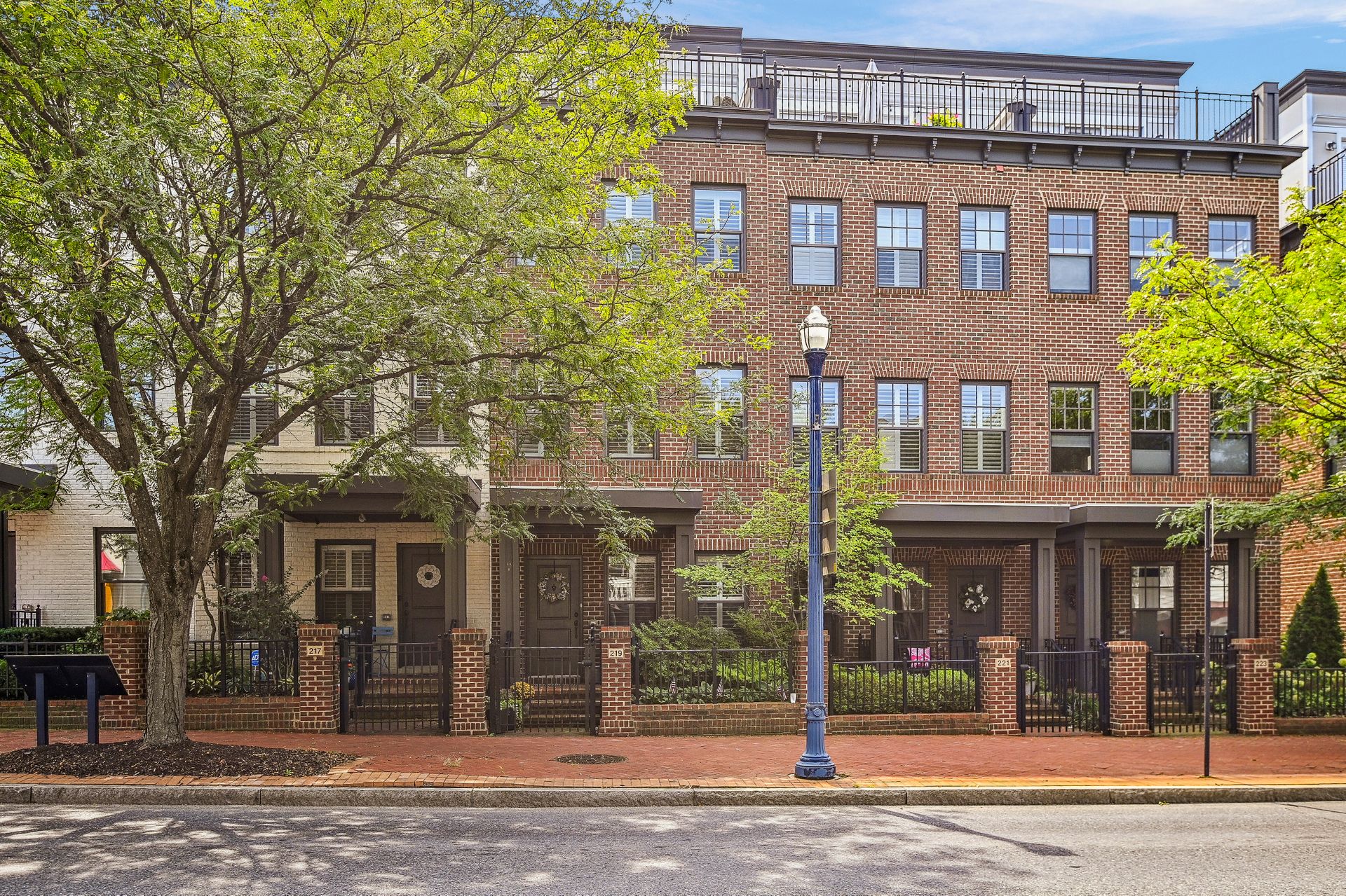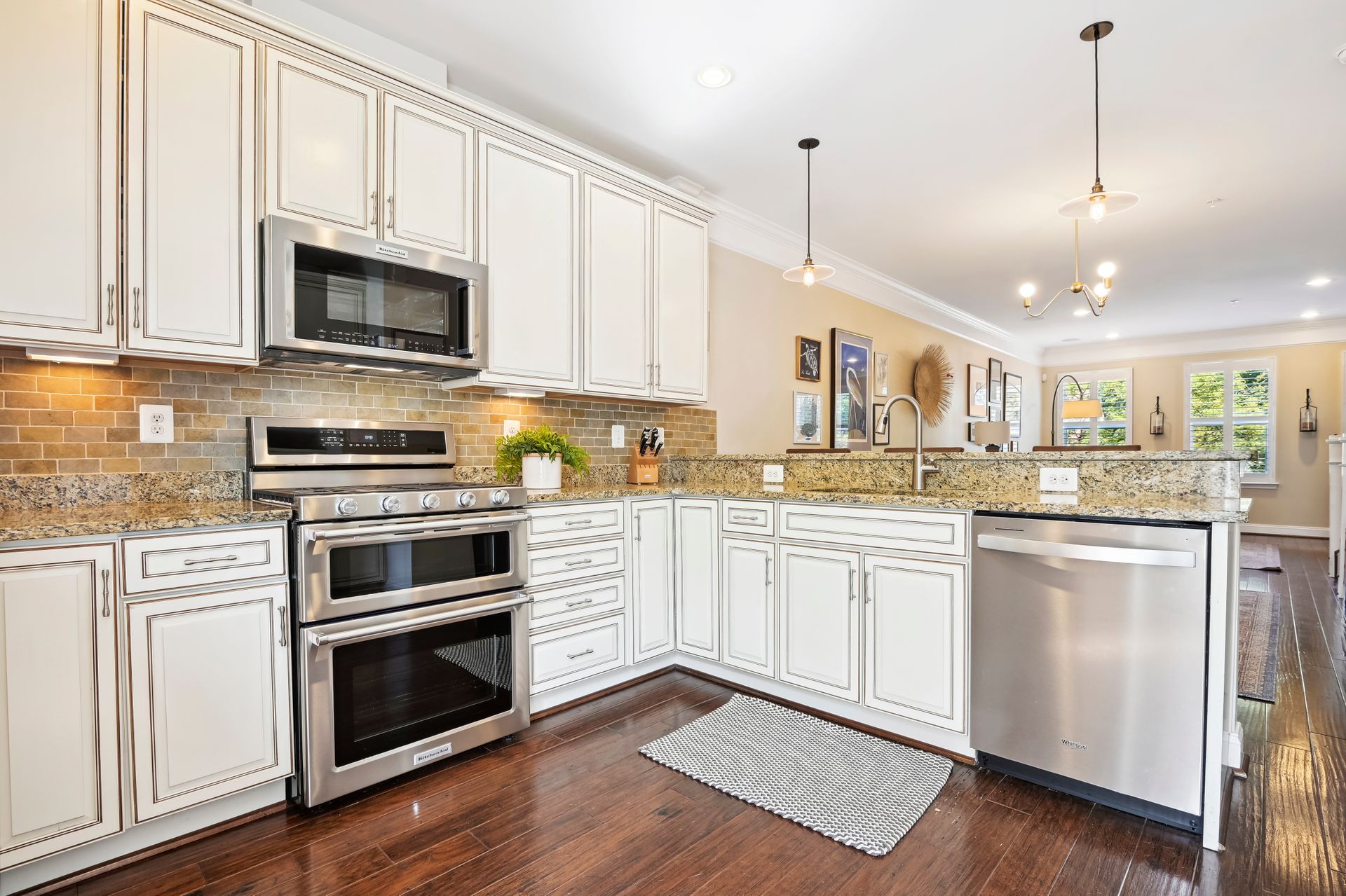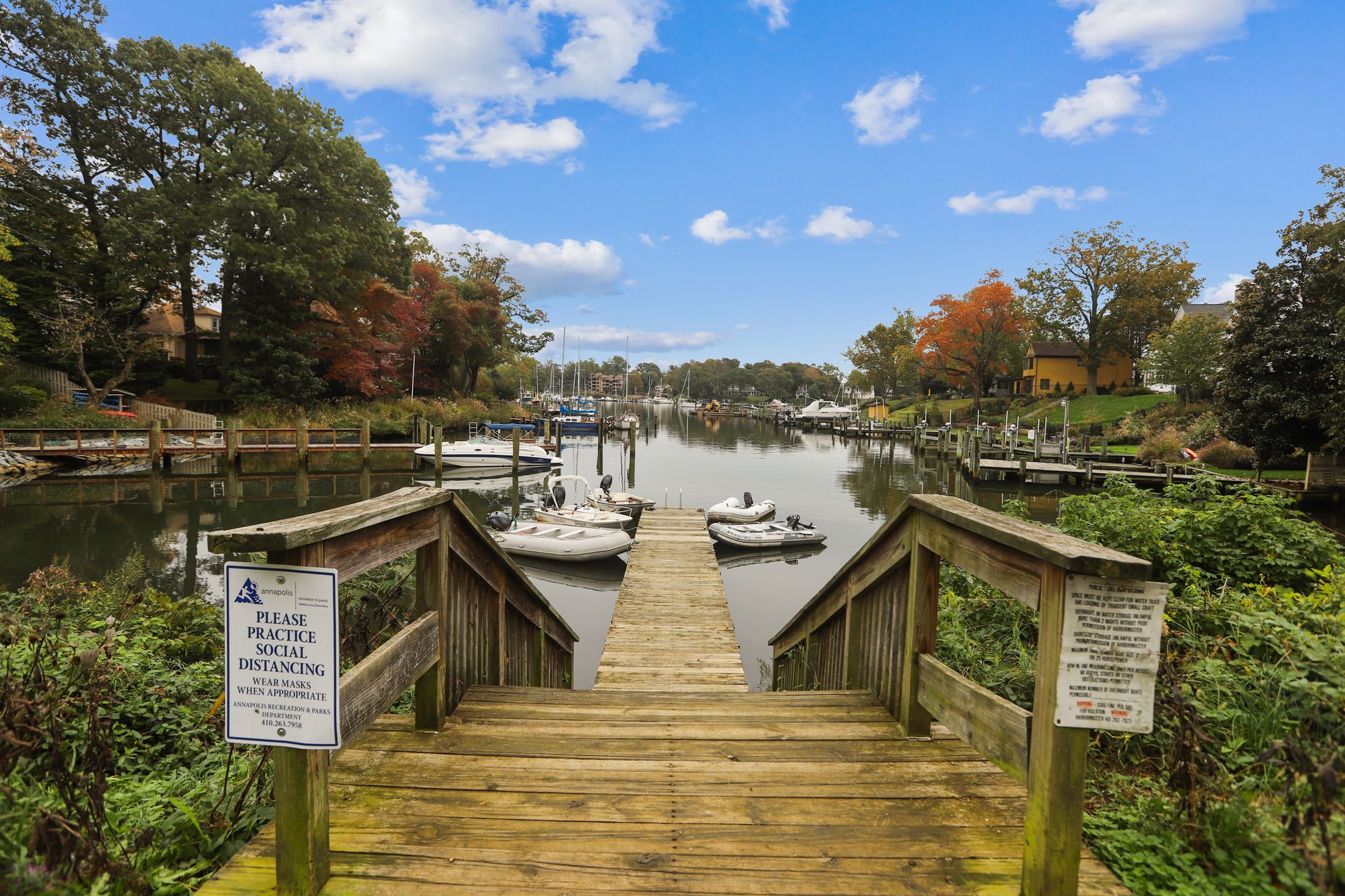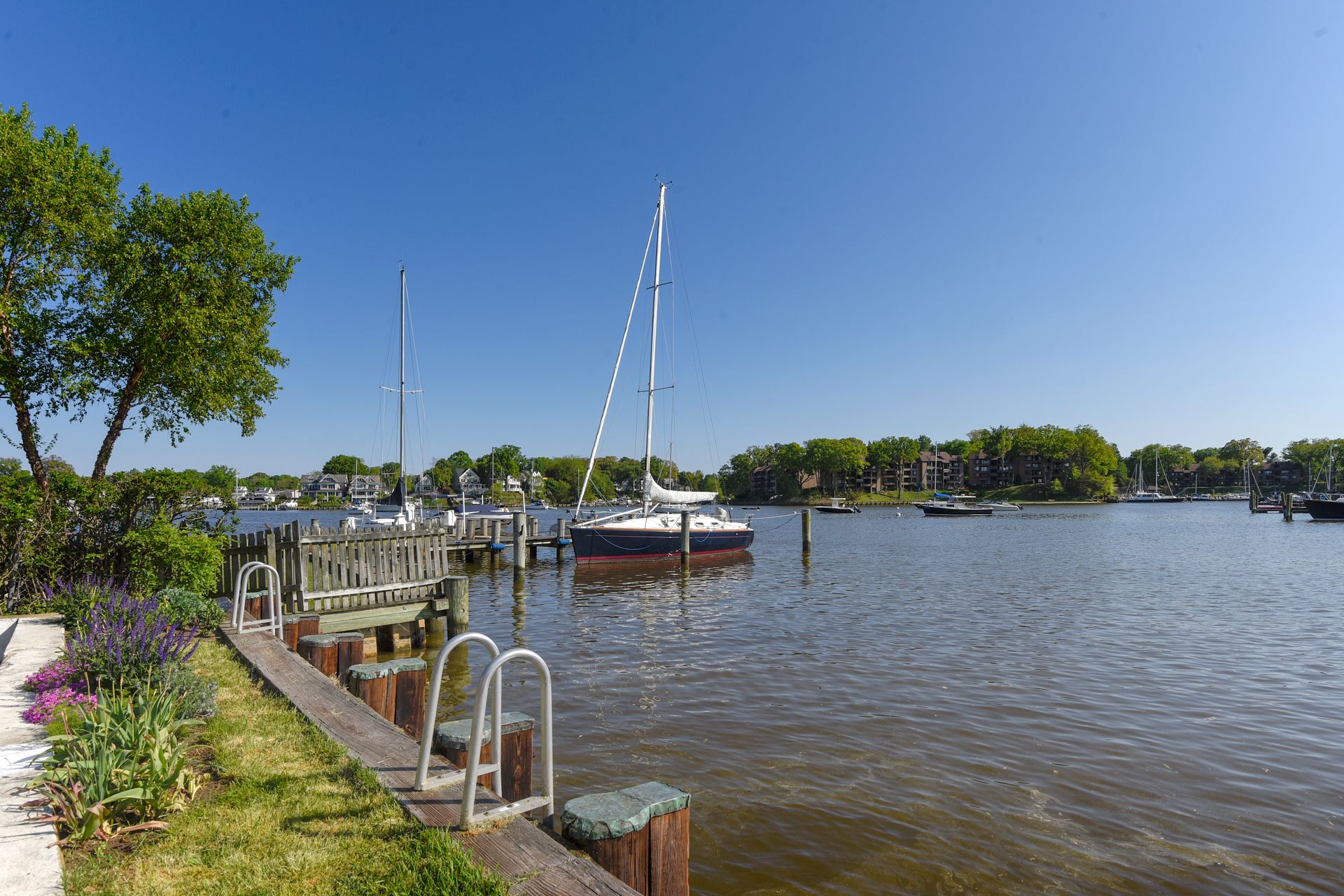 This beautiful townhome is nestled in the sought-after community of Uptown at Murray Hill, located in the heart of downtown Annapolis' West Street Arts District—just steps away from dozens of buzzworthy restaurants, pubs, boutiques and galleries. Built in 2013 by premiere builder, Bozzuto Homes, this gorgeous 2 / possibly 3 bedroom, 2 full/2 half bath townhome, includes a 1 car garage plus a private off-street driveway for one additional vehicle. The upscale home features an open concept design and is beautifully appointed with hardwood floors, gourmet kitchen with upgraded cabinets and countertops, breakfast bar, new stainless steel appliances (purchased in 2022), high-end lighting fixtures, crown molding and designer touches throughout. Natural light streams through numerous windows, which are appointed with custom plantation shutters. The top floor entertainment space includes a built-in surround-sound system (great for family movie night), a wet bar with beverage refrigerator and a wall of architectural glass doors that open to a patio space with fantastic views of the city as well as nightly sunsets. Other outdoor spaces include a covered front porch (perfect for watching the annual St. Patrick's and 4th of July parades), a grilling and dining balcony adjacent to the kitchen, and a community green space located behind the homes.