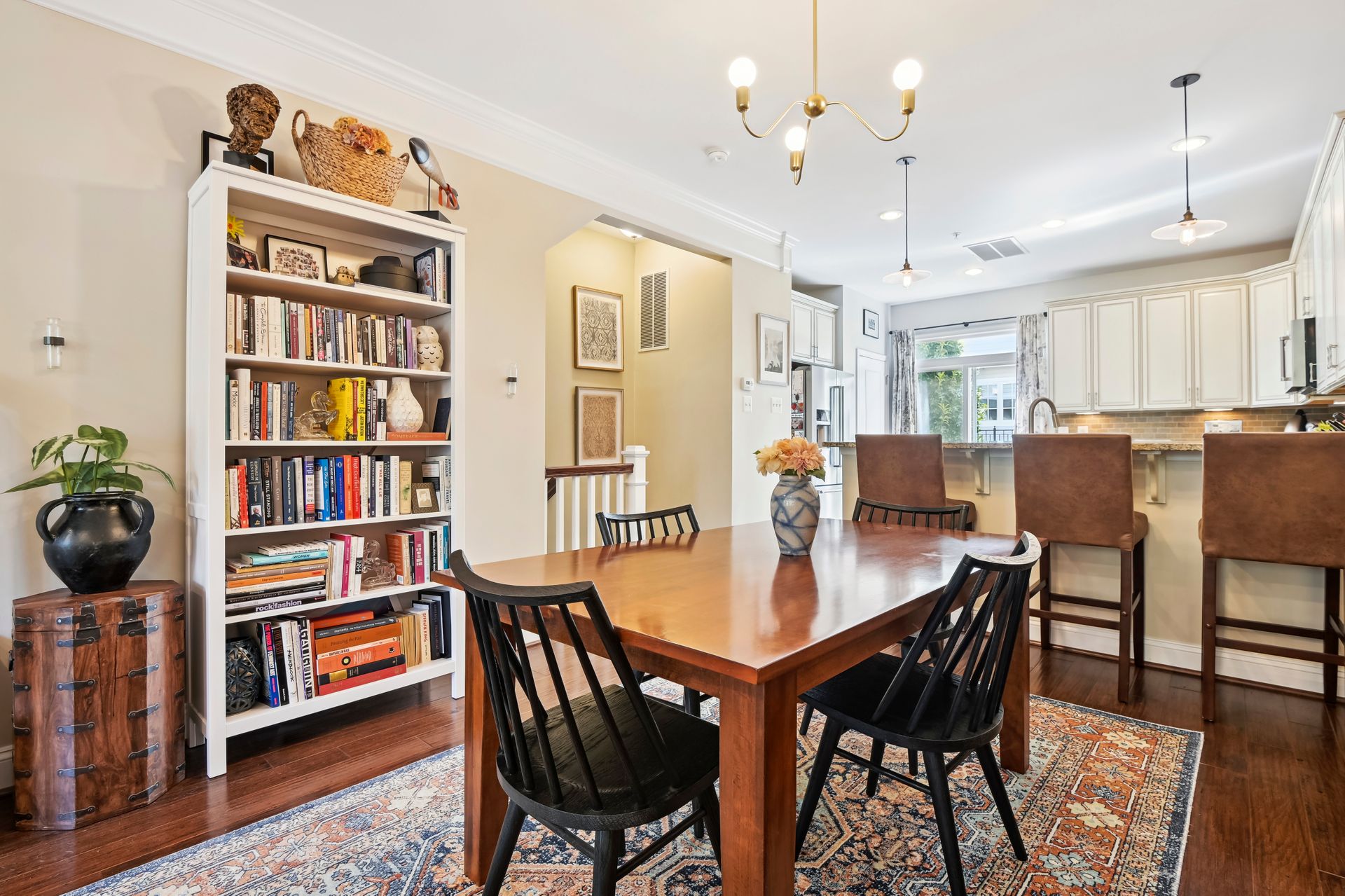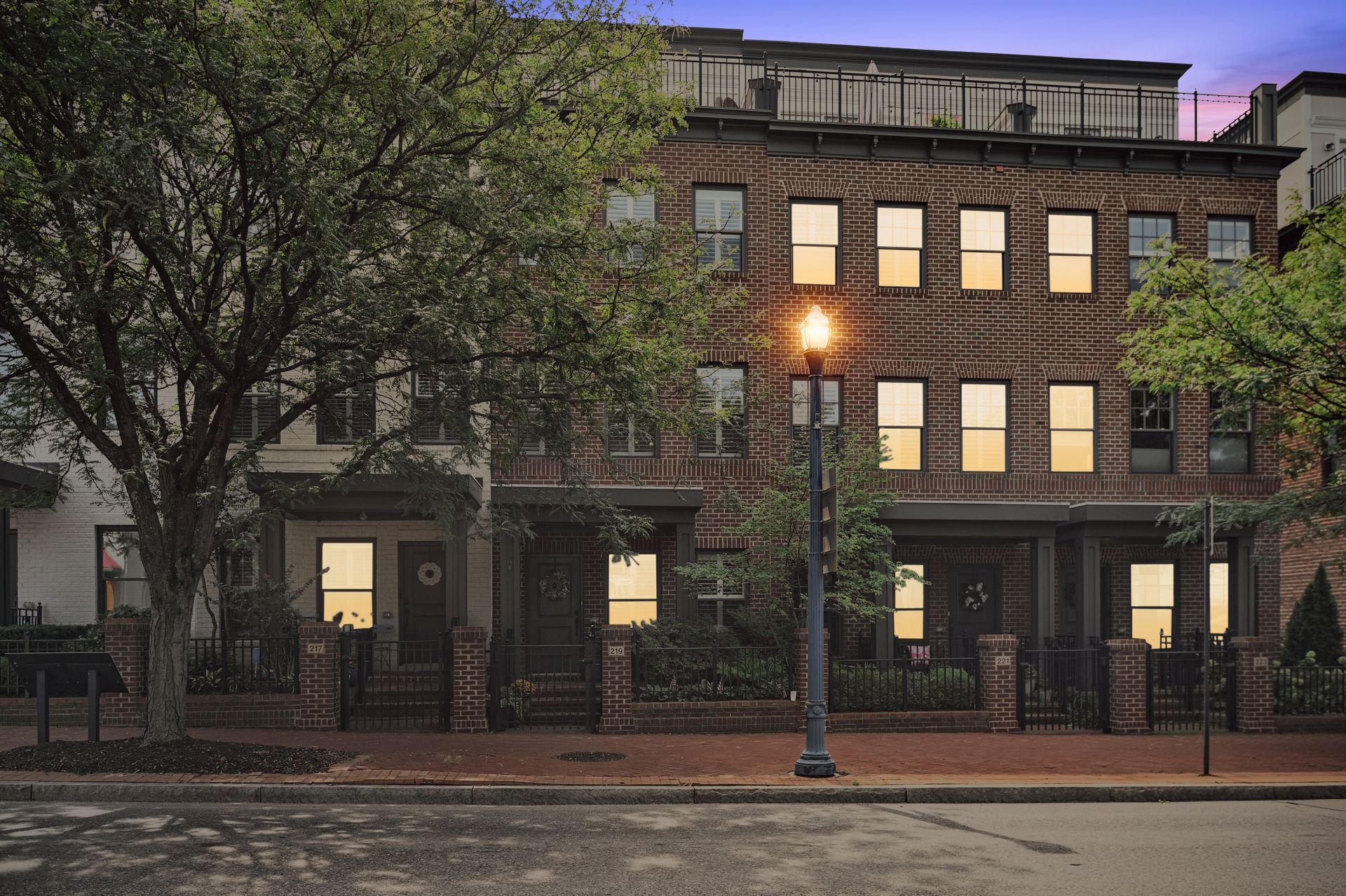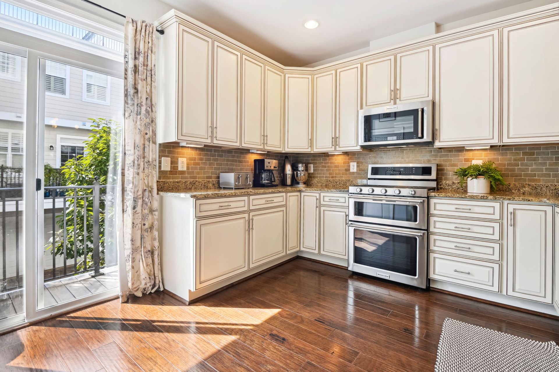 This beautiful townhome is nestled in the sought-after community of Uptown at Murray Hill, located in the heart of downtown Annapolis' West Street Arts District—just steps away from dozens of buzzworthy restaurants, pubs, boutiques and galleries. Built in 2013 by premiere builder, Bozzuto Homes, this gorgeous 2 / possibly 3 bedroom, 2 full/2 half bath townhome, includes a 1 car garage plus a private off-street driveway for one additional vehicle. The upscale home features an open concept design and is beautifully appointed with hardwood floors, gourmet kitchen with upgraded cabinets and countertops, breakfast bar, new stainless steel appliances (purchased in 2022), high-end lighting fixtures, crown molding and designer touches throughout. Natural light streams through numerous windows, which are appointed with custom plantation shutters. The top floor entertainment space includes a built-in surround-sound system (great for family movie night), a wet bar with beverage refrigerator and a wall of architectural glass doors that open to a patio space with fantastic views of the city as well as nightly sunsets. Other outdoor spaces include a covered front porch (perfect for watching the annual St. Patrick's and 4th of July parades), a grilling and dining balcony adjacent to the kitchen, and a community green space located behind the homes.
