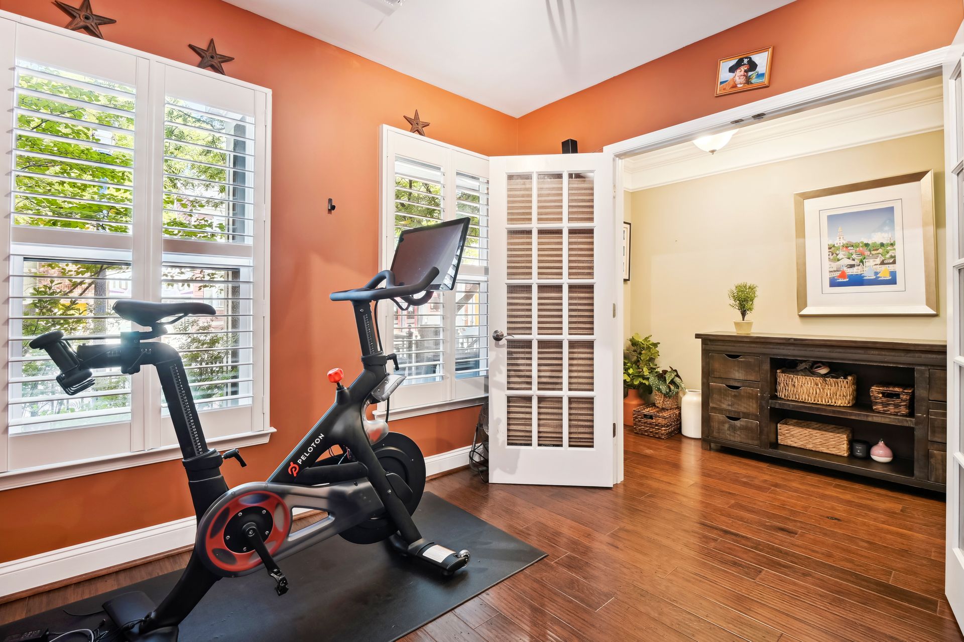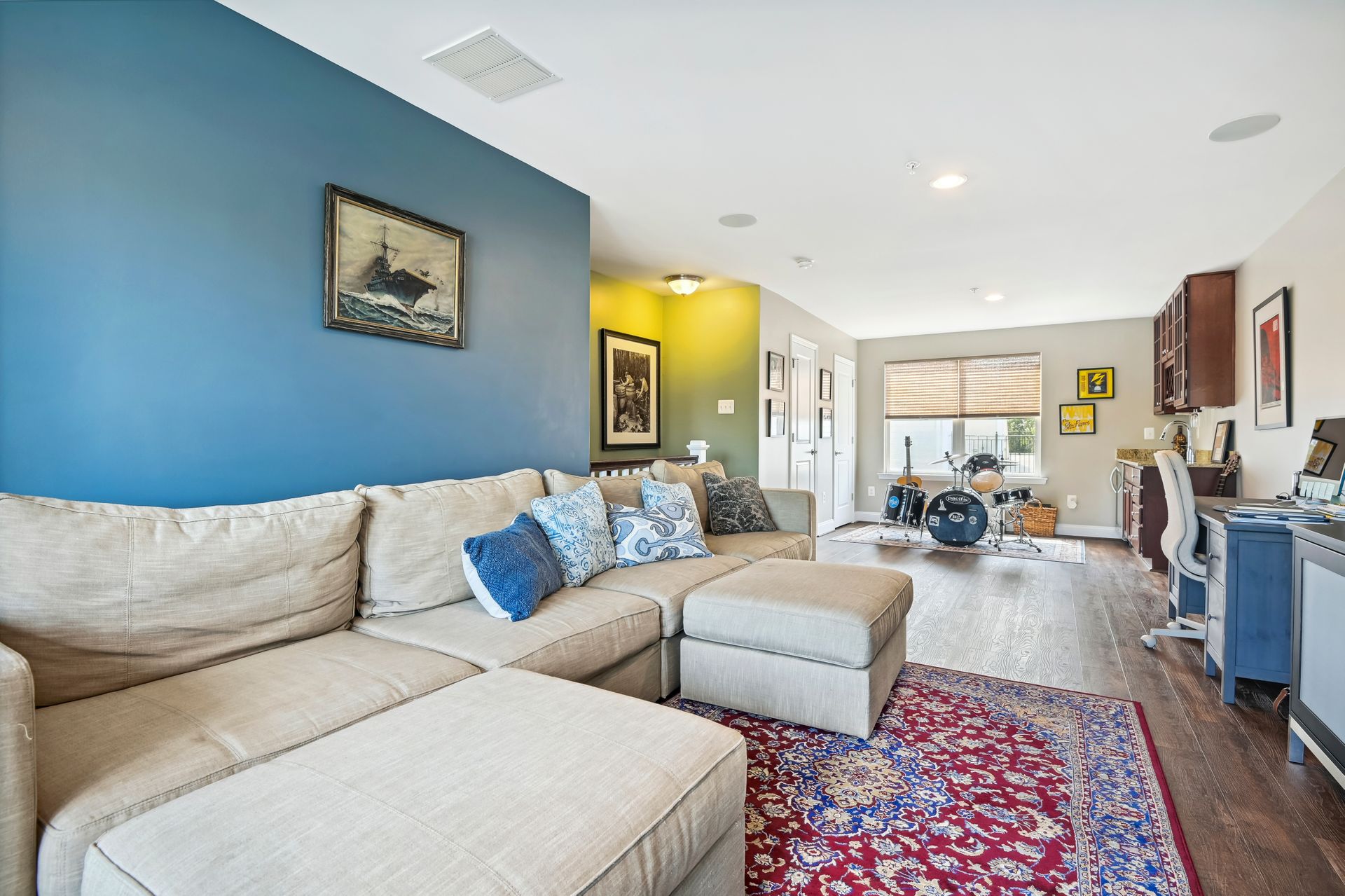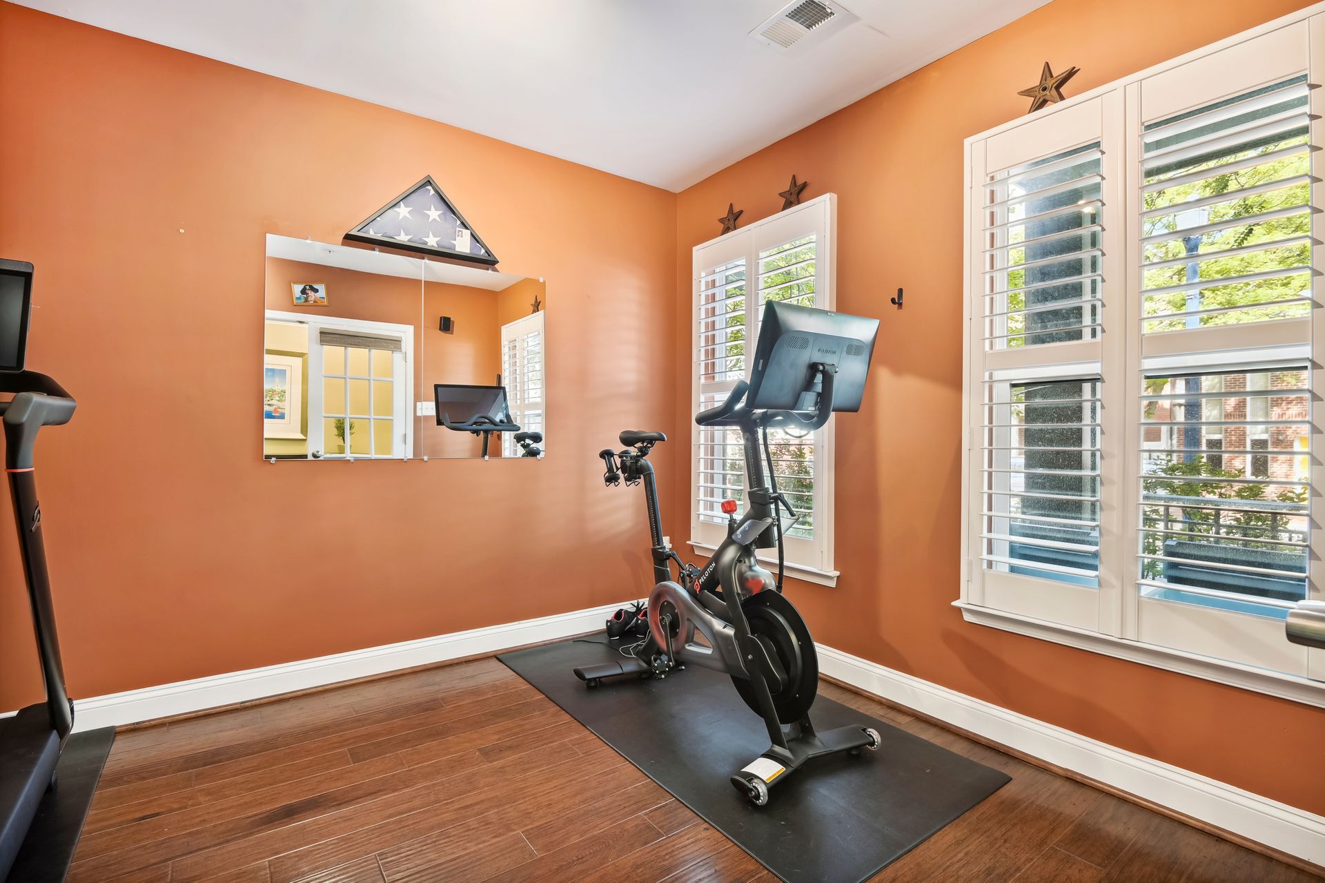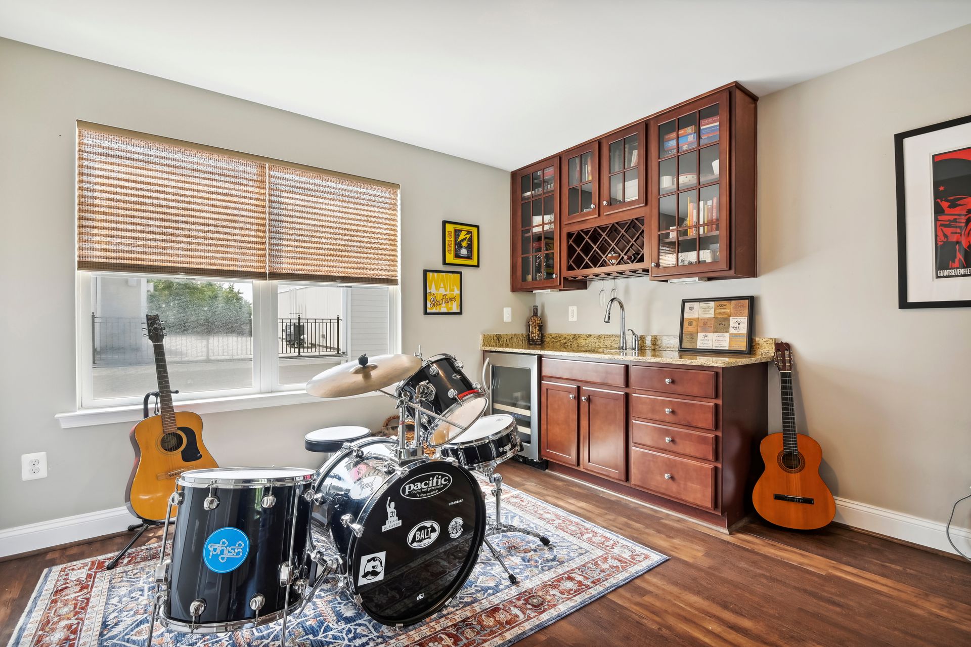This beautiful townhome is nestled in the sought-after community of Uptown at Murray Hill, located in the heart of downtown Annapolis' West Street Arts District—just steps away from dozens of buzzworthy restaurants, pubs, boutiques and galleries. Built in 2013 by premiere builder, Bozzuto Homes, this gorgeous 2 / possibly 3 bedroom, 2 full/2 half bath townhome, includes a 1 car garage plus a private off-street driveway for one additional vehicle. The upscale home features an open concept design and is beautifully appointed with hardwood floors, gourmet kitchen with upgraded cabinets and countertops, breakfast bar, new stainless steel appliances (purchased in 2022), high-end lighting fixtures, crown molding and designer touches throughout. Natural light streams through numerous windows, which are appointed with custom plantation shutters. The top floor entertainment space includes a built-in surround-sound system (great for family movie night), a wet bar with beverage refrigerator and a wall of architectural glass doors that open to a patio space with fantastic views of the city as well as nightly sunsets. Other outdoor spaces include a covered front porch (perfect for watching the annual St. Patrick's and 4th of July parades), a grilling and dining balcony adjacent to the kitchen, and a community green space located behind the homes.