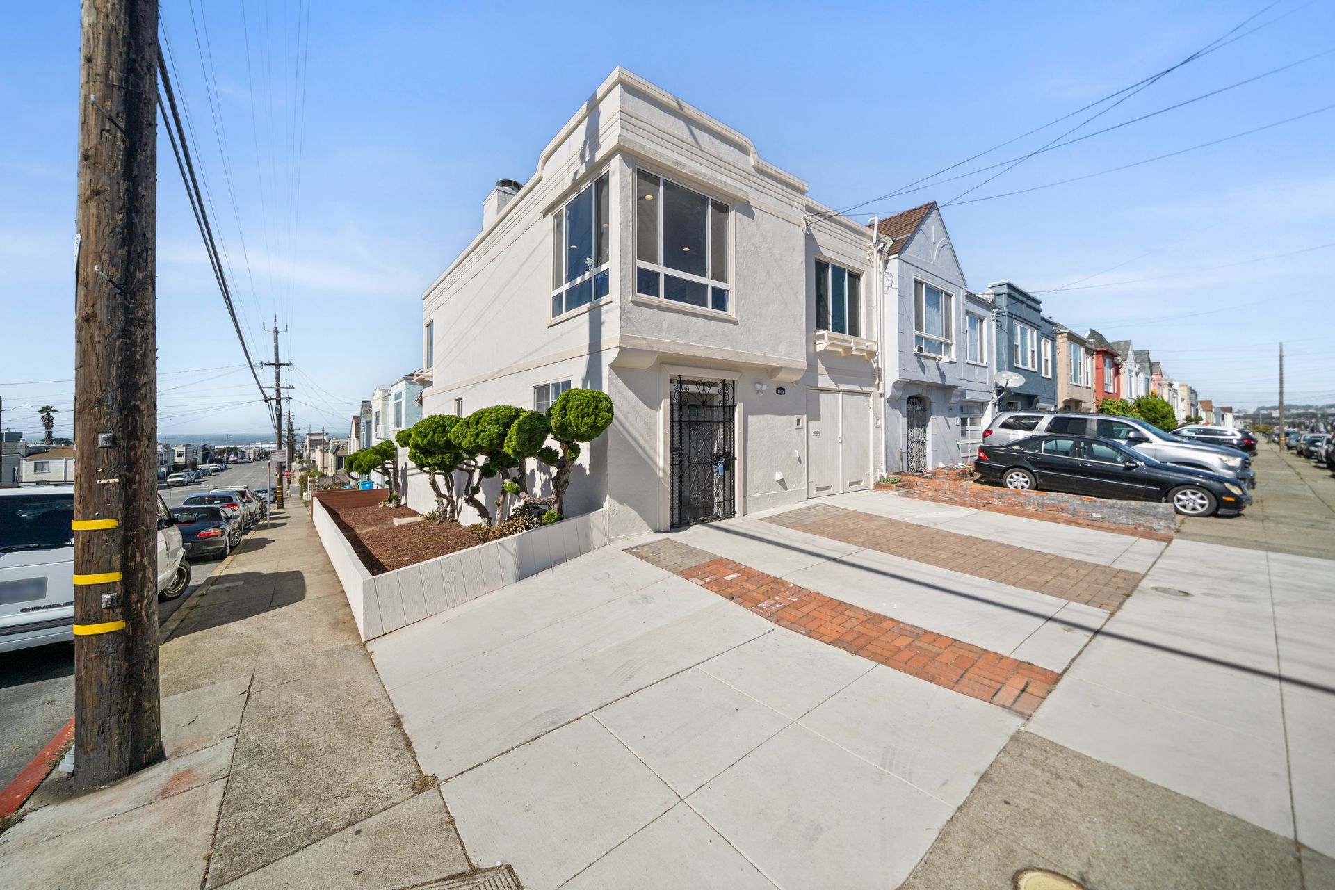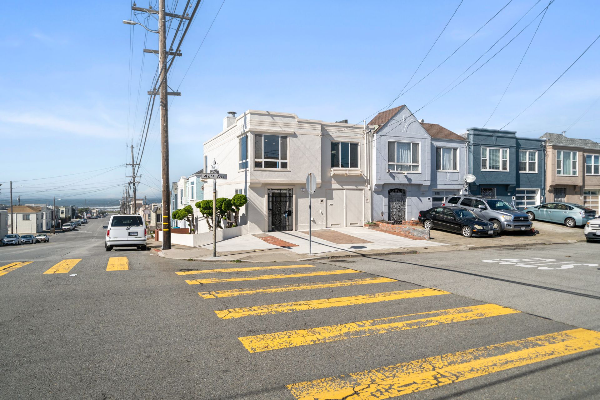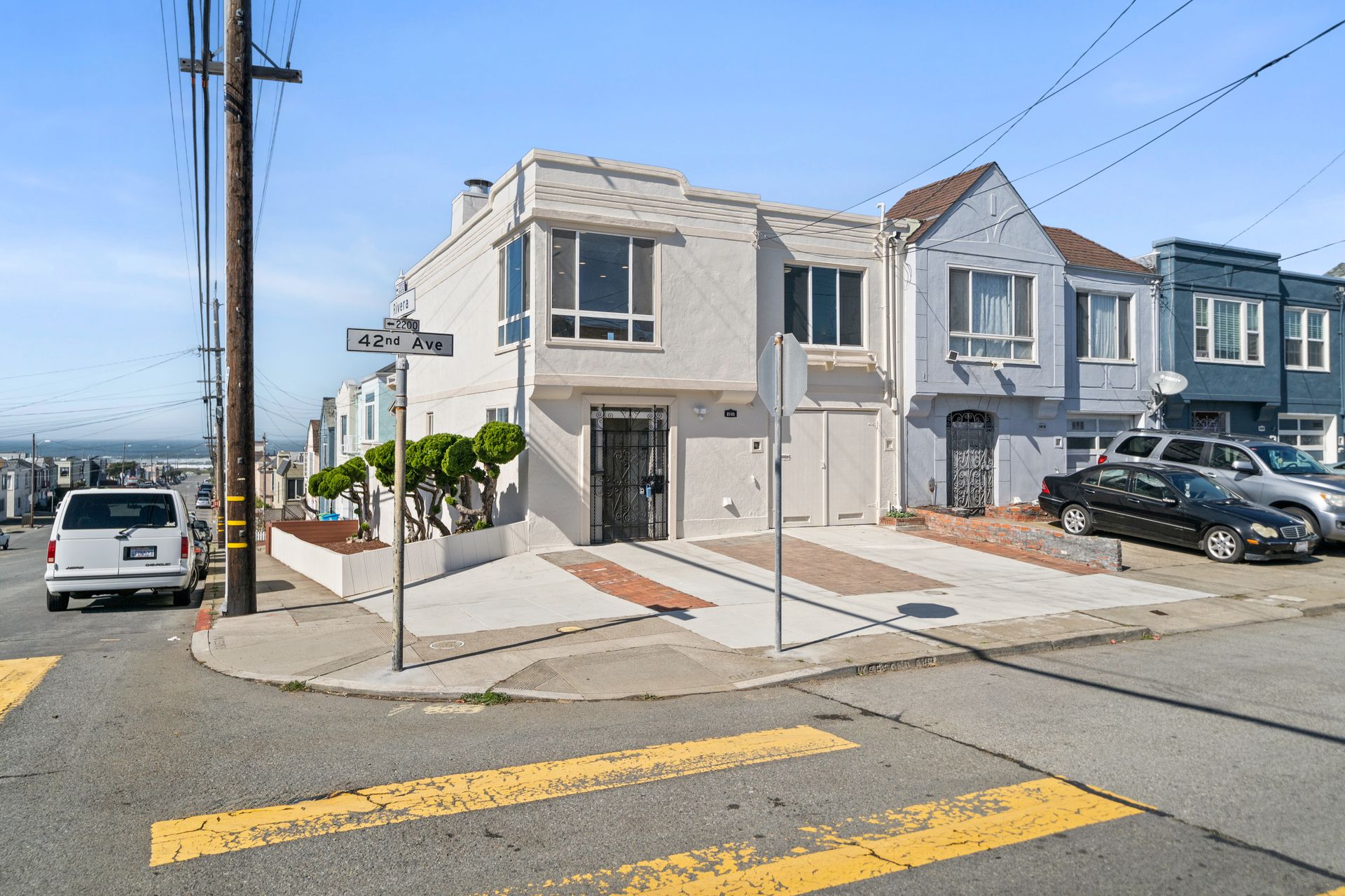 Welcome to this corner lot, bright semi-attached English entrance single-family home in the outer Parkside neighborhood of San Francisco. It offers three bedrooms and two and three-quarter bathrooms that includes two primary bedroom suites on the main level. A nice peek of the ocean is enjoyed from the living dining area and two of the bedrooms. The ground level features two bedrooms and two bathrooms which includes a primary bedroom suite, both providing access to the lovely back yard. Updates include refinished hardwood flooring, newer laminated flooring, double-pane windows, freshly exterior and interior painted, a newly installed roof over a patio and fences in the back yard and sidewalk, two sets of central heating and a tankless water heater. There is a one-car garage and additional two parking spaces on the driveway. Natural light fills the rooms and the eat-in kitchen with the living room area creating a bright and inviting atmosphere. The convenient location provides easy access to Golden Gate Park, shops, restaurants, the San Francisco Zoo and the beautiful beach. This home offers a range of opportunities to suit your needs.