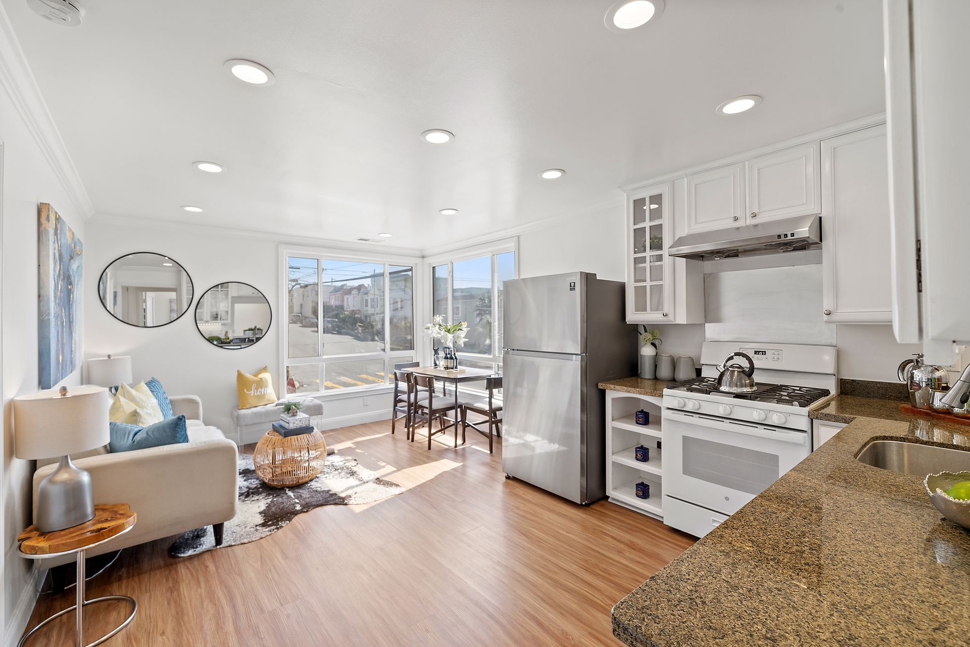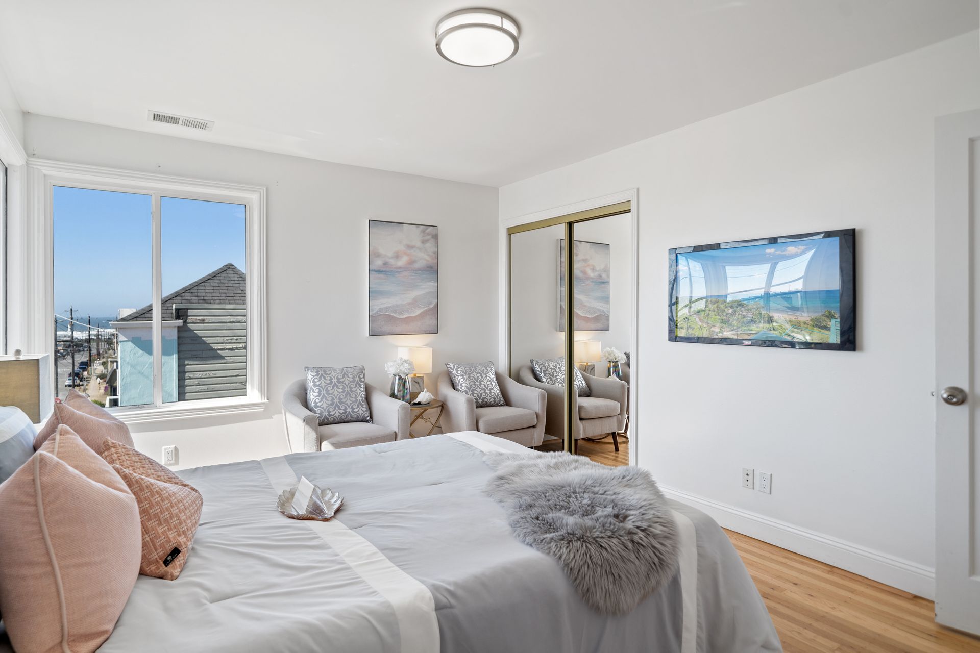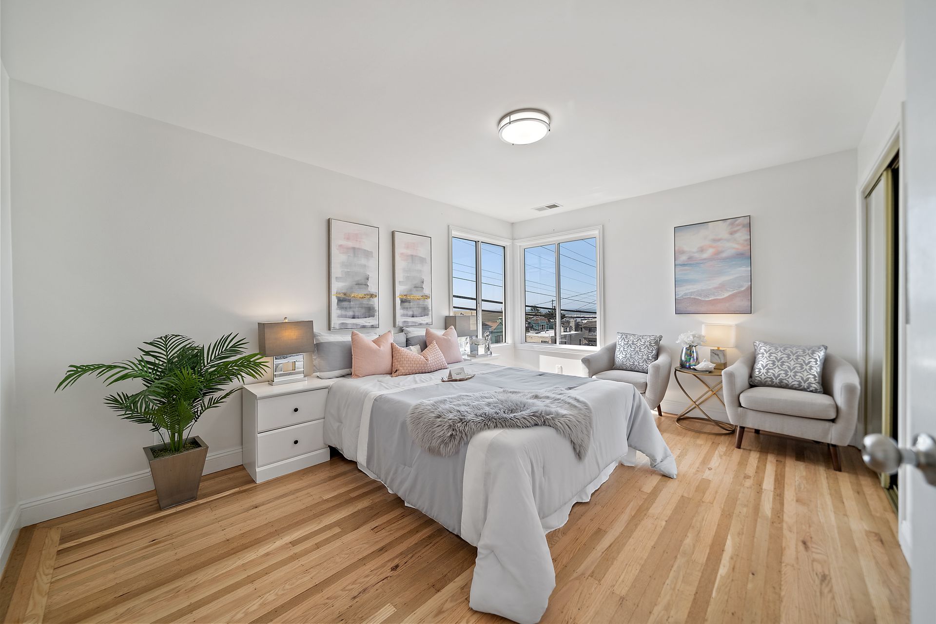 Welcome to this corner lot, bright semi-attached English entrance single-family home in the outer Parkside neighborhood of San Francisco. It offers three bedrooms and two and three-quarter bathrooms that includes two primary bedroom suites on the main level. A nice peek of the ocean is enjoyed from the living dining area and two of the bedrooms. The ground level features two bedrooms and two bathrooms which includes a primary bedroom suite, both providing access to the lovely back yard. Updates include refinished hardwood flooring, newer laminated flooring, double-pane windows, freshly exterior and interior painted, a newly installed roof over a patio and fences in the back yard and sidewalk, two sets of central heating and a tankless water heater. There is a one-car garage and additional two parking spaces on the driveway. Natural light fills the rooms and the eat-in kitchen with the living room area creating a bright and inviting atmosphere. The convenient location provides easy access to Golden Gate Park, shops, restaurants, the San Francisco Zoo and the beautiful beach. This home offers a range of opportunities to suit your needs.