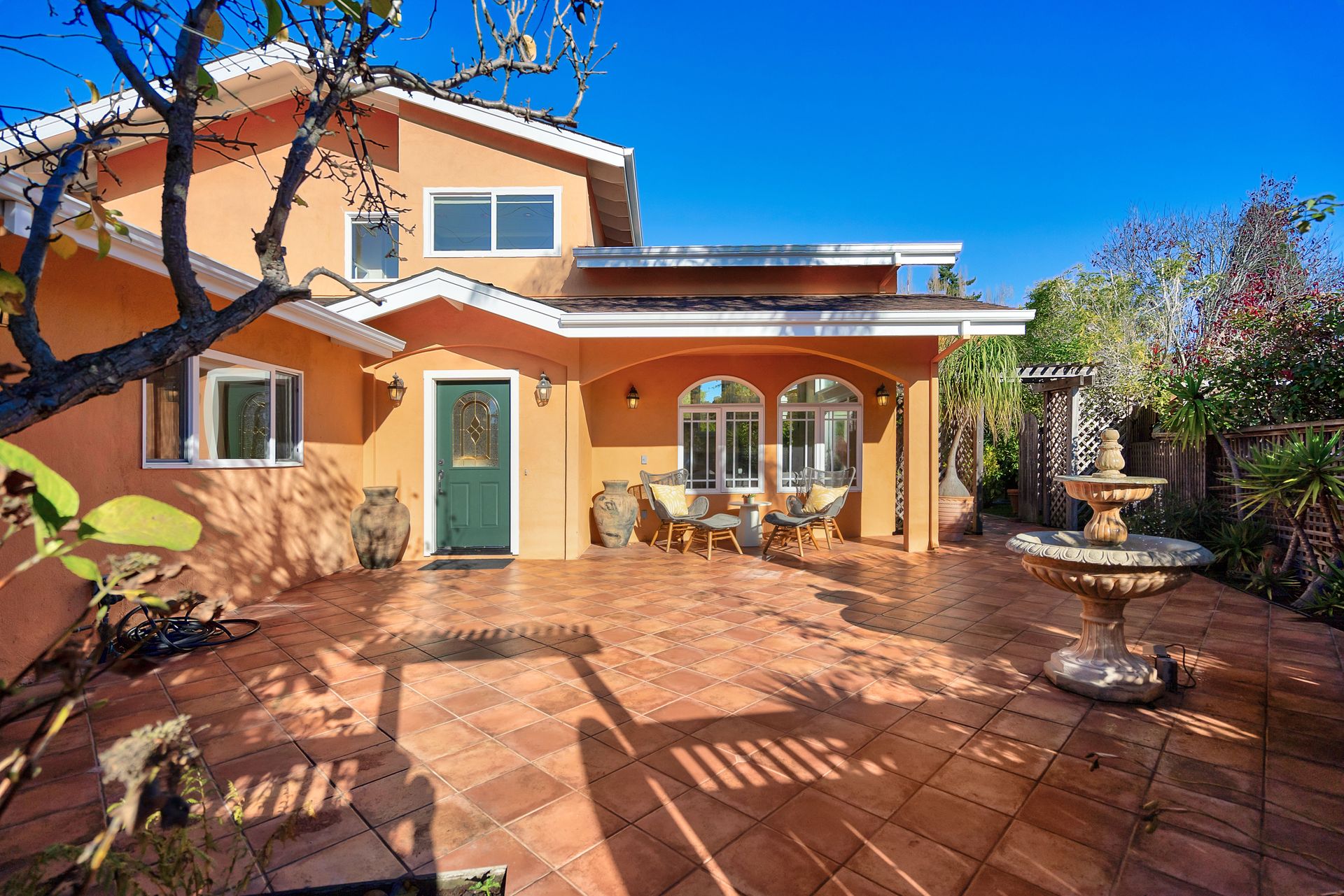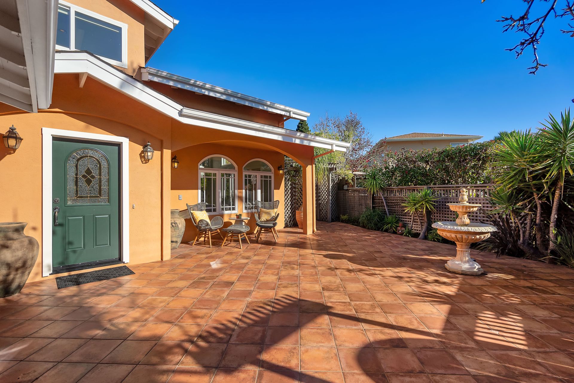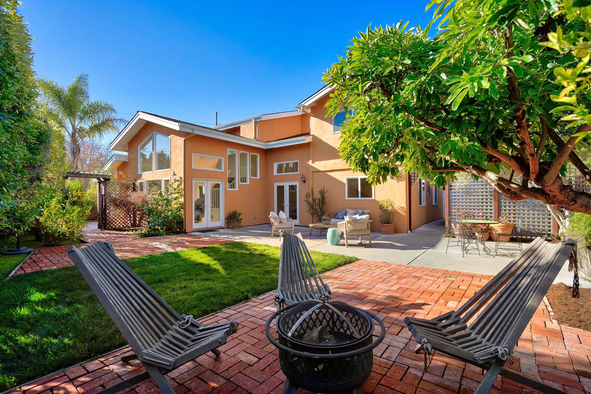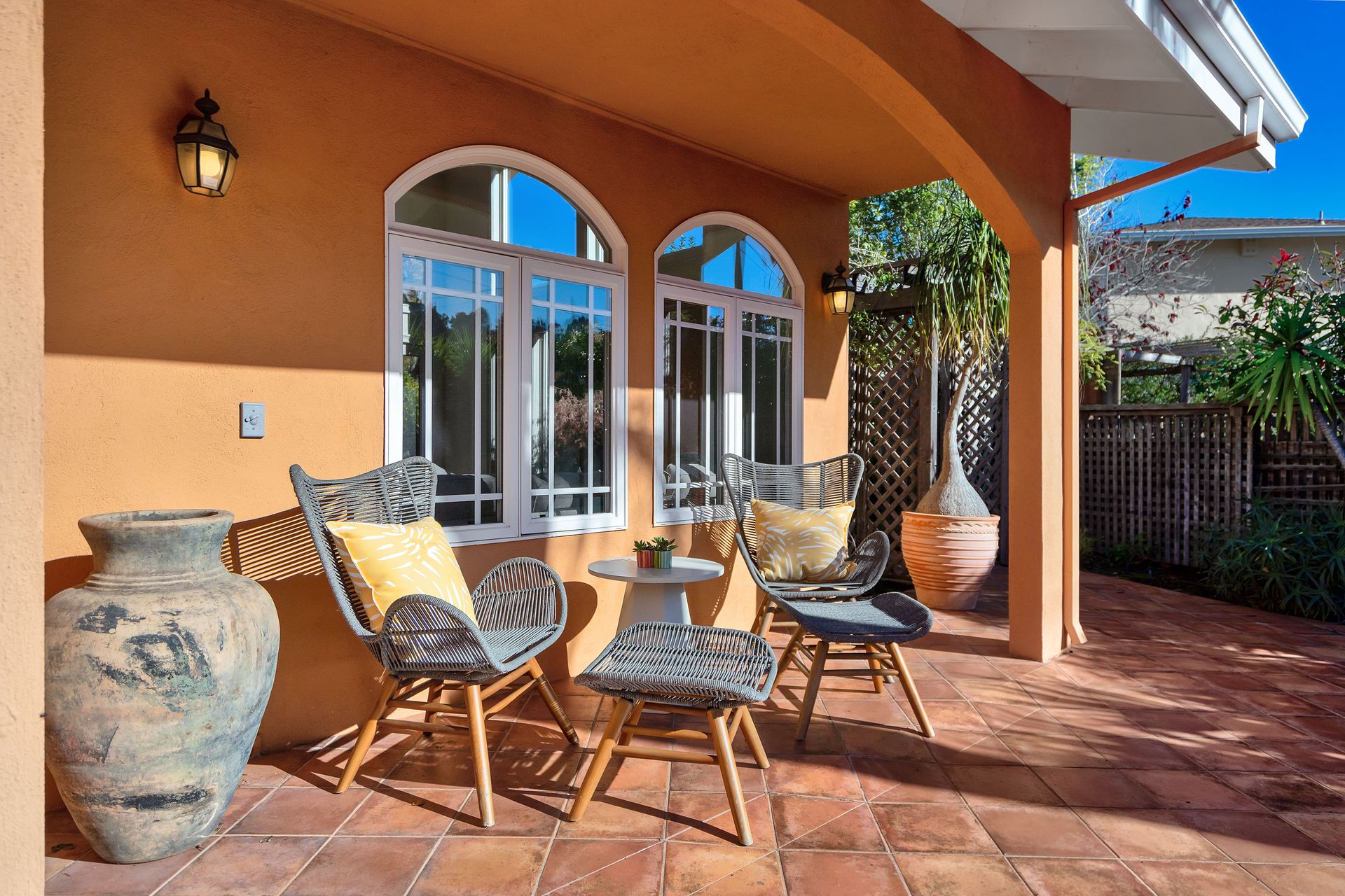 This beautiful and expanded, 3+ bedroom, 3 bath, two-story Mediterranean-style home is sited on a large flat lot in in the highly desirable Alto-Sutton Manor neighborhood. A welcoming fenced entry surrounds the sun-drenched patio with terracotta tiles and a fountain, an ideal spot for relaxing or entertaining. The versatile and flexible floor plan throughout facilitates easy living and functionality for all ages. Cozy living room with a gas fireplace leads to a large chef’s kitchen featuring a six-burner Wolf stove, granite counters, stainless steel appliances, an eat-in area and plenty of cabinets. The kitchen opens to the family room featuring a dramatic high ceiling and oversized windows affording an abundance of light and views of the lovely, landscaped yard. Adjacent is the dining room with a high ceiling and access to the yard through attractive French doors. Two good-sized bedrooms are downstairs, one ensuite and an extra full bathroom. Upstairs consists of a light-filled office or optional fourth bedroom and a delightful primary bedroom suite with a vaulted ceiling, adjoining retreat/office, an extra-large bath and a spacious walk-in closet. The rear and front yard patios seamlessly connect, providing a wonderful flow and plenty of space for large group entertaining. Fruit trees surround a grassy play area and nicely finished brick patios, an ideal area for al fresco dining. A large storage shed is tucked away in the rear yard with ample space for bikes, toys, tools, etc. Enjoy easy access to the freeway and being just moments to Edna Maguire Elementary, Whole Foods Market, multi-use paths and Mill Valley Community and Recreation Center.