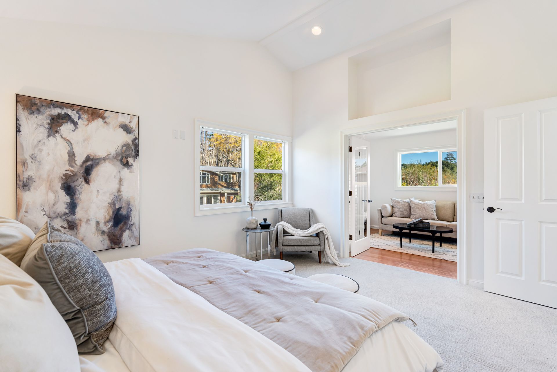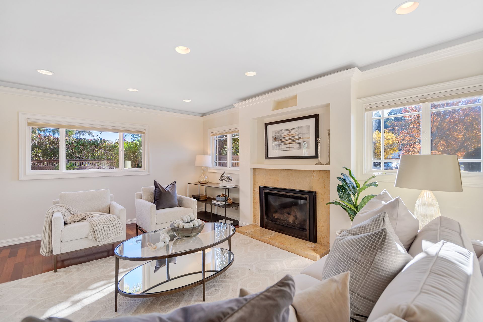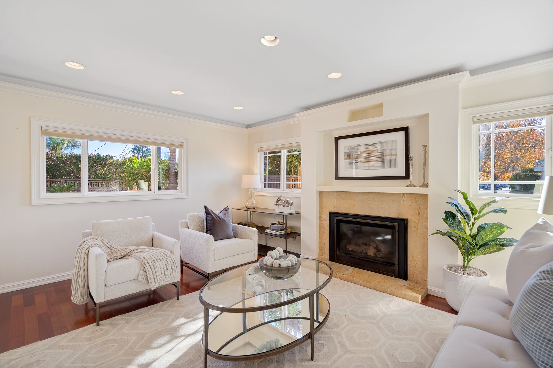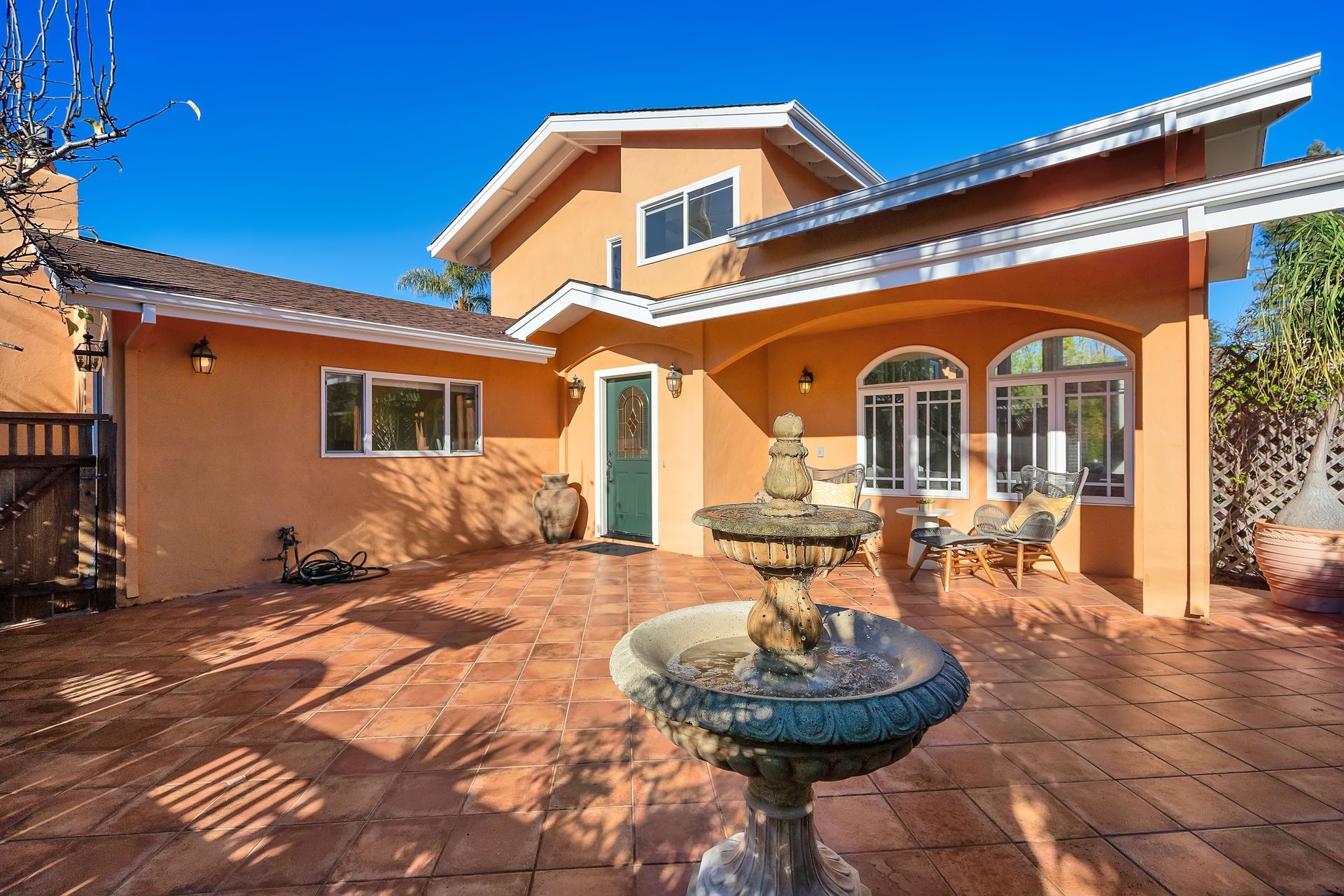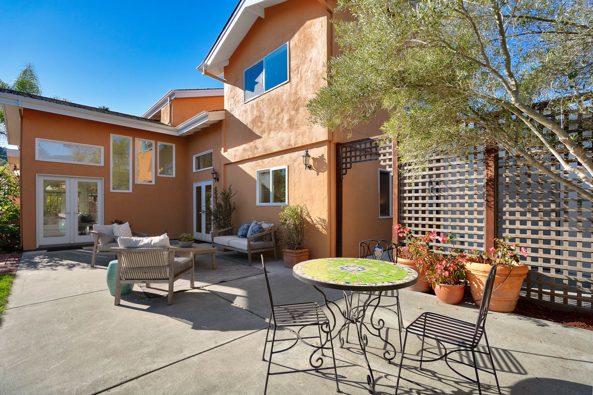 This beautiful and expanded, 3+ bedroom, 3 bath, two-story Mediterranean-style home is sited on a large flat lot in in the highly desirable Alto-Sutton Manor neighborhood. A welcoming fenced entry surrounds the sun-drenched patio with terracotta tiles and a fountain, an ideal spot for relaxing or entertaining. The versatile and flexible floor plan throughout facilitates easy living and functionality for all ages. Cozy living room with a gas fireplace leads to a large chef’s kitchen featuring a six-burner Wolf stove, granite counters, stainless steel appliances, an eat-in area and plenty of cabinets. The kitchen opens to the family room featuring a dramatic high ceiling and oversized windows affording an abundance of light and views of the lovely, landscaped yard. Adjacent is the dining room with a high ceiling and access to the yard through attractive French doors. Two good-sized bedrooms are downstairs, one ensuite and an extra full bathroom. Upstairs consists of a light-filled office or optional fourth bedroom and a delightful primary bedroom suite with a vaulted ceiling, adjoining retreat/office, an extra-large bath and a spacious walk-in closet. The rear and front yard patios seamlessly connect, providing a wonderful flow and plenty of space for large group entertaining. Fruit trees surround a grassy play area and nicely finished brick patios, an ideal area for al fresco dining. A large storage shed is tucked away in the rear yard with ample space for bikes, toys, tools, etc. Enjoy easy access to the freeway and being just moments to Edna Maguire Elementary, Whole Foods Market, multi-use paths and Mill Valley Community and Recreation Center.