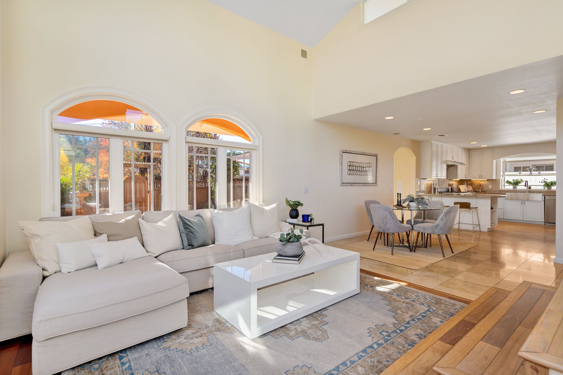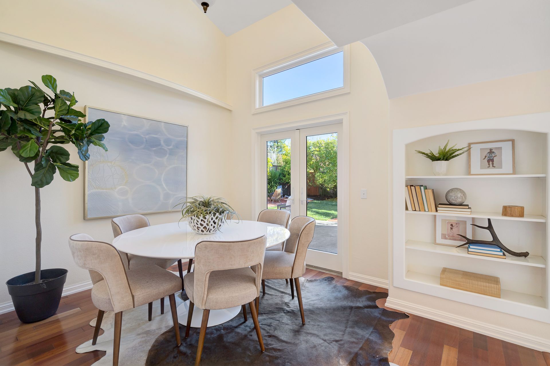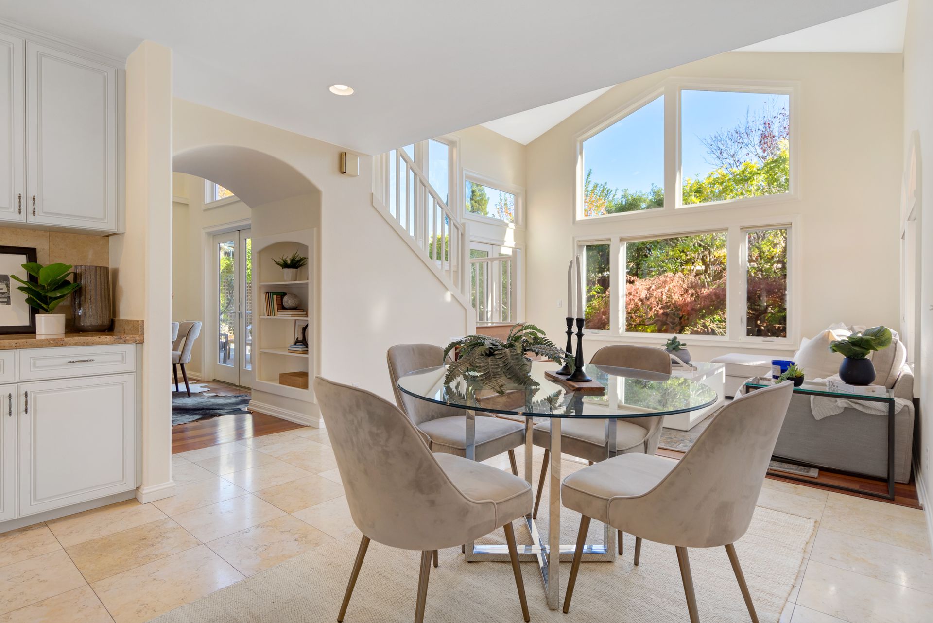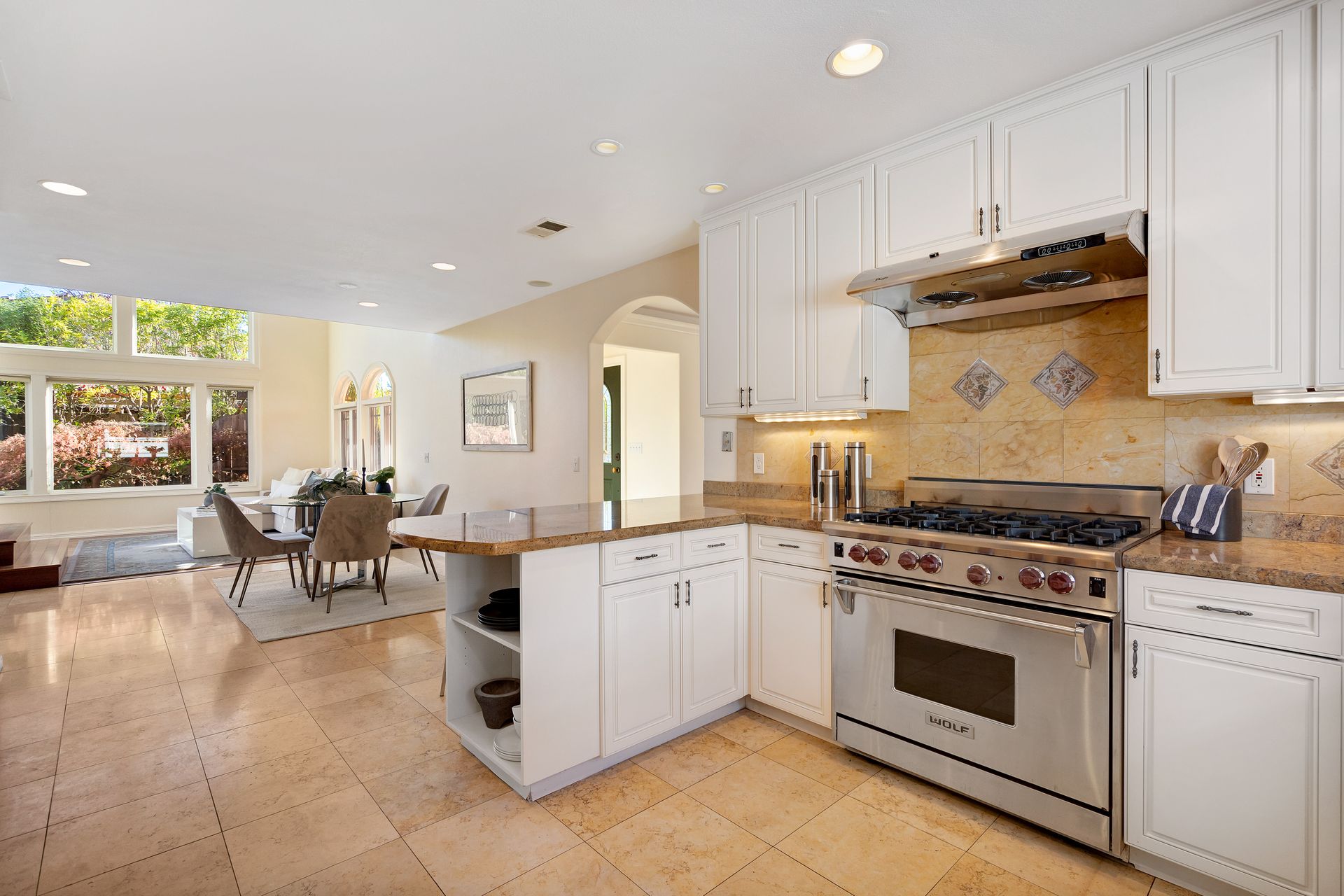 This beautiful and expanded, 3+ bedroom, 3 bath, two-story Mediterranean-style home is sited on a large flat lot in in the highly desirable Alto-Sutton Manor neighborhood. A welcoming fenced entry surrounds the sun-drenched patio with terracotta tiles and a fountain, an ideal spot for relaxing or entertaining. The versatile and flexible floor plan throughout facilitates easy living and functionality for all ages. Cozy living room with a gas fireplace leads to a large chef’s kitchen featuring a six-burner Wolf stove, granite counters, stainless steel appliances, an eat-in area and plenty of cabinets. The kitchen opens to the family room featuring a dramatic high ceiling and oversized windows affording an abundance of light and views of the lovely, landscaped yard. Adjacent is the dining room with a high ceiling and access to the yard through attractive French doors. Two good-sized bedrooms are downstairs, one ensuite and an extra full bathroom. Upstairs consists of a light-filled office or optional fourth bedroom and a delightful primary bedroom suite with a vaulted ceiling, adjoining retreat/office, an extra-large bath and a spacious walk-in closet. The rear and front yard patios seamlessly connect, providing a wonderful flow and plenty of space for large group entertaining. Fruit trees surround a grassy play area and nicely finished brick patios, an ideal area for al fresco dining. A large storage shed is tucked away in the rear yard with ample space for bikes, toys, tools, etc. Enjoy easy access to the freeway and being just moments to Edna Maguire Elementary, Whole Foods Market, multi-use paths and Mill Valley Community and Recreation Center.