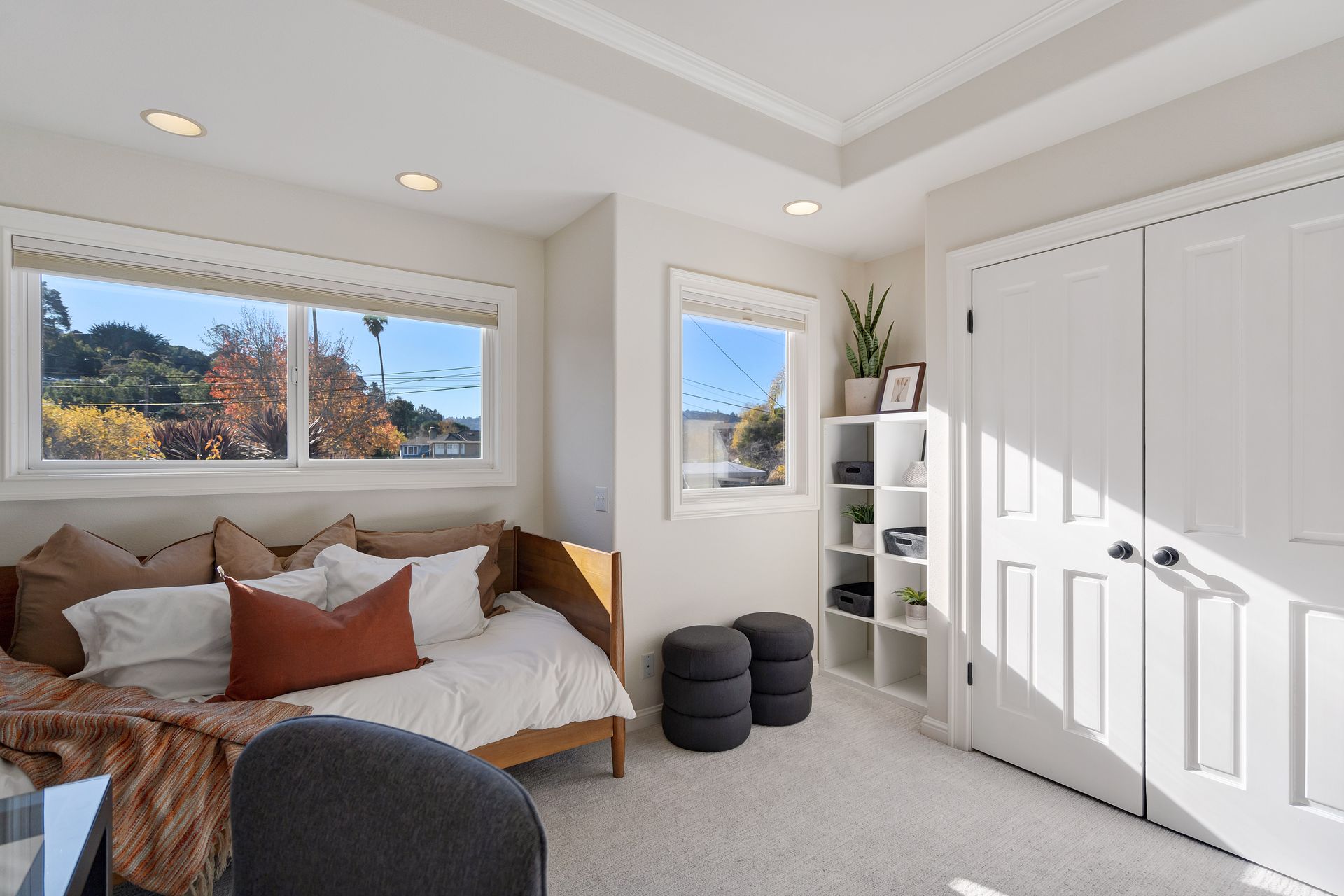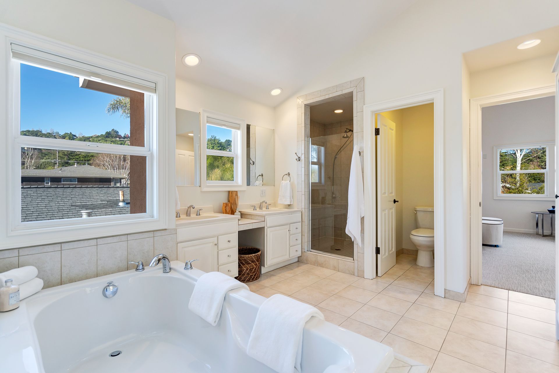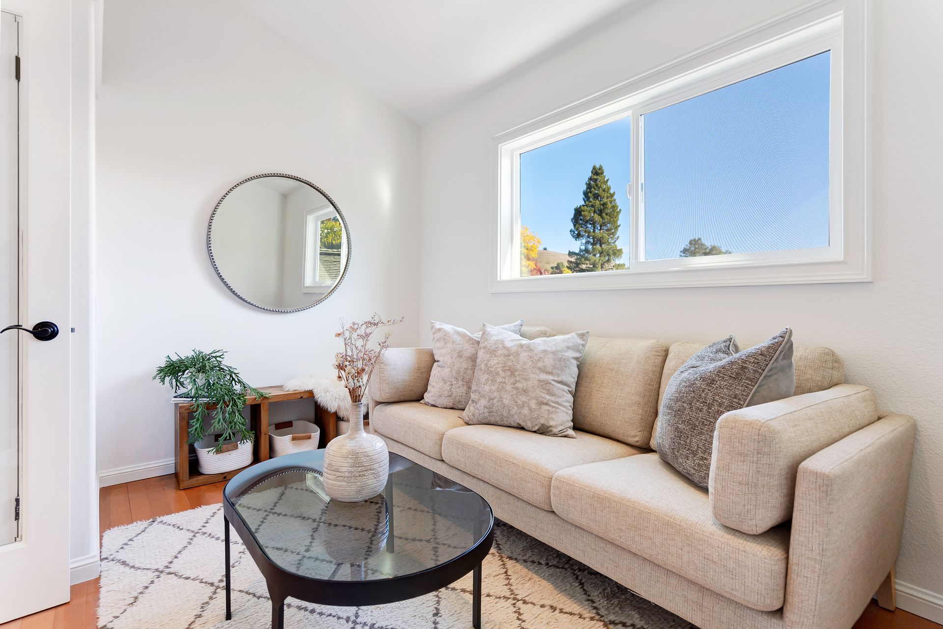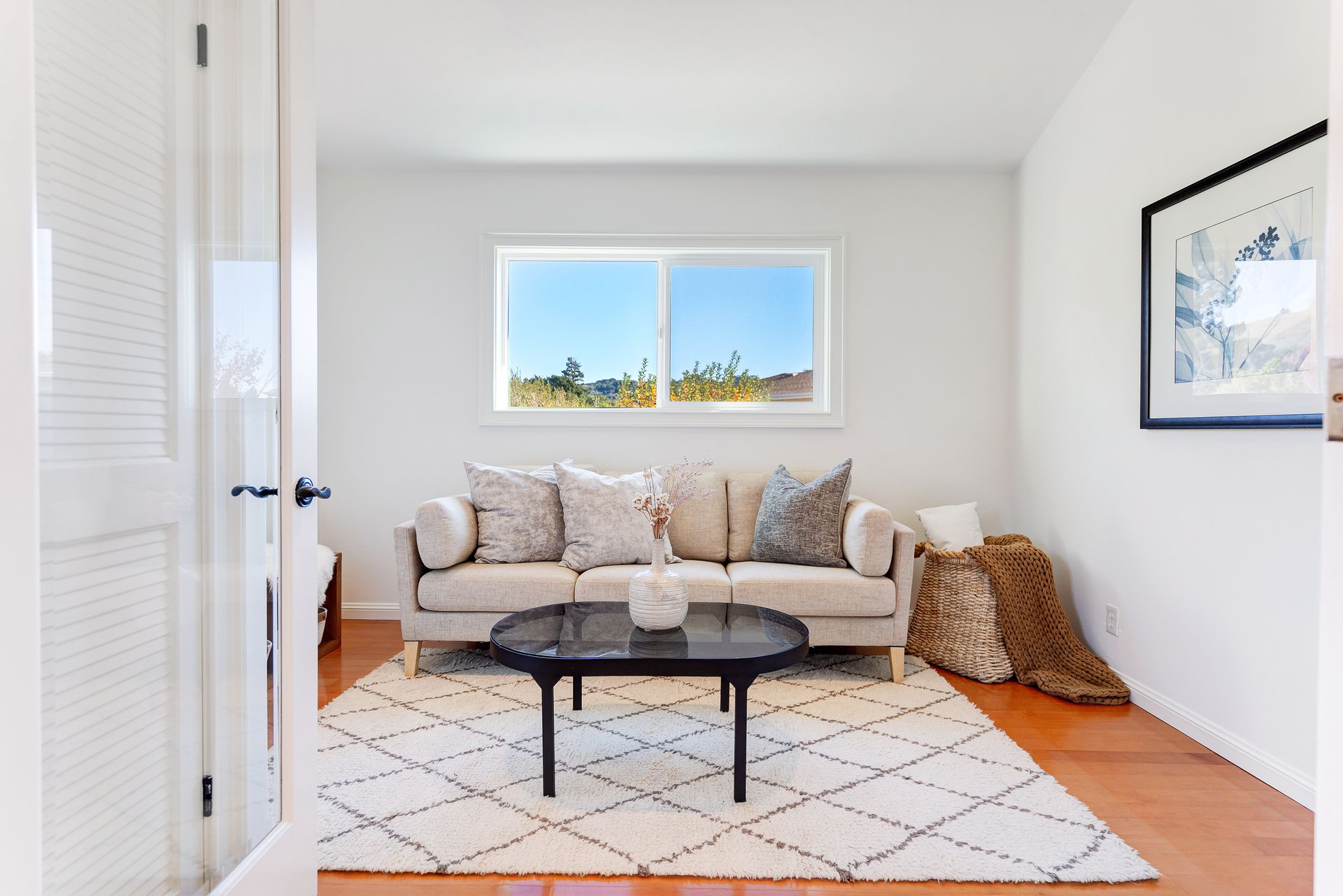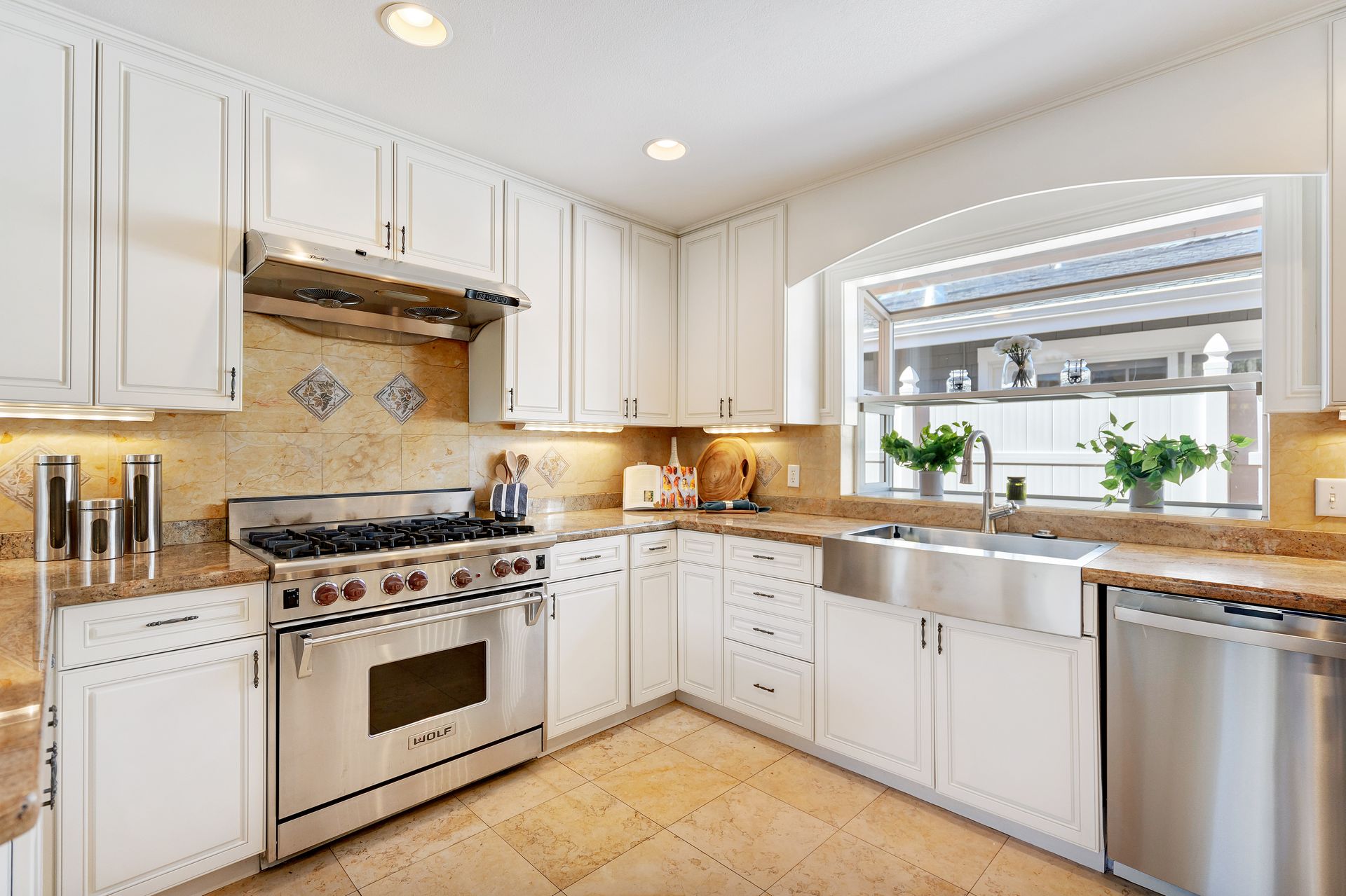 This beautiful and expanded, 3+ bedroom, 3 bath, two-story Mediterranean-style home is sited on a large flat lot in in the highly desirable Alto-Sutton Manor neighborhood. A welcoming fenced entry surrounds the sun-drenched patio with terracotta tiles and a fountain, an ideal spot for relaxing or entertaining. The versatile and flexible floor plan throughout facilitates easy living and functionality for all ages. Cozy living room with a gas fireplace leads to a large chef’s kitchen featuring a six-burner Wolf stove, granite counters, stainless steel appliances, an eat-in area and plenty of cabinets. The kitchen opens to the family room featuring a dramatic high ceiling and oversized windows affording an abundance of light and views of the lovely, landscaped yard. Adjacent is the dining room with a high ceiling and access to the yard through attractive French doors. Two good-sized bedrooms are downstairs, one ensuite and an extra full bathroom. Upstairs consists of a light-filled office or optional fourth bedroom and a delightful primary bedroom suite with a vaulted ceiling, adjoining retreat/office, an extra-large bath and a spacious walk-in closet. The rear and front yard patios seamlessly connect, providing a wonderful flow and plenty of space for large group entertaining. Fruit trees surround a grassy play area and nicely finished brick patios, an ideal area for al fresco dining. A large storage shed is tucked away in the rear yard with ample space for bikes, toys, tools, etc. Enjoy easy access to the freeway and being just moments to Edna Maguire Elementary, Whole Foods Market, multi-use paths and Mill Valley Community and Recreation Center.