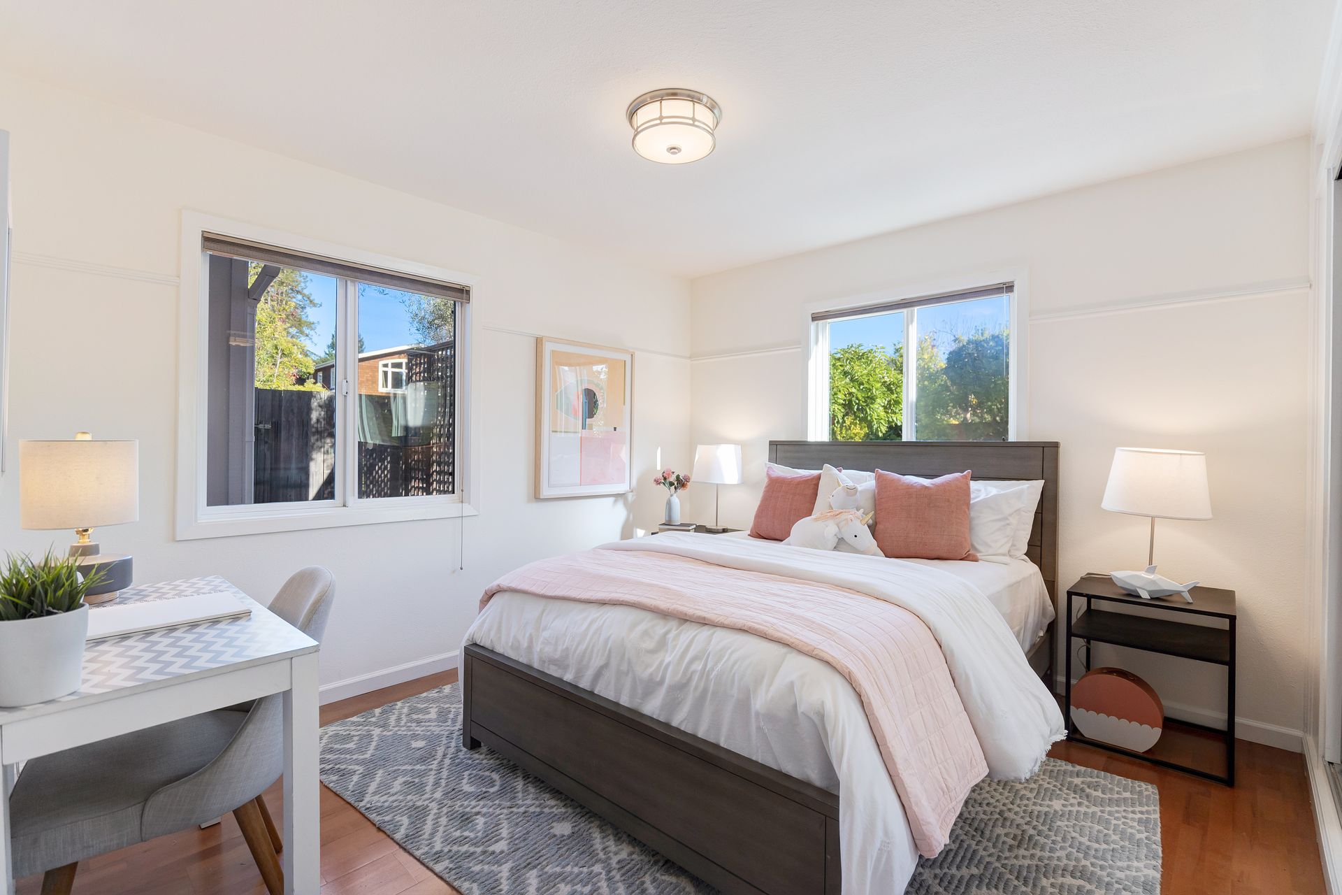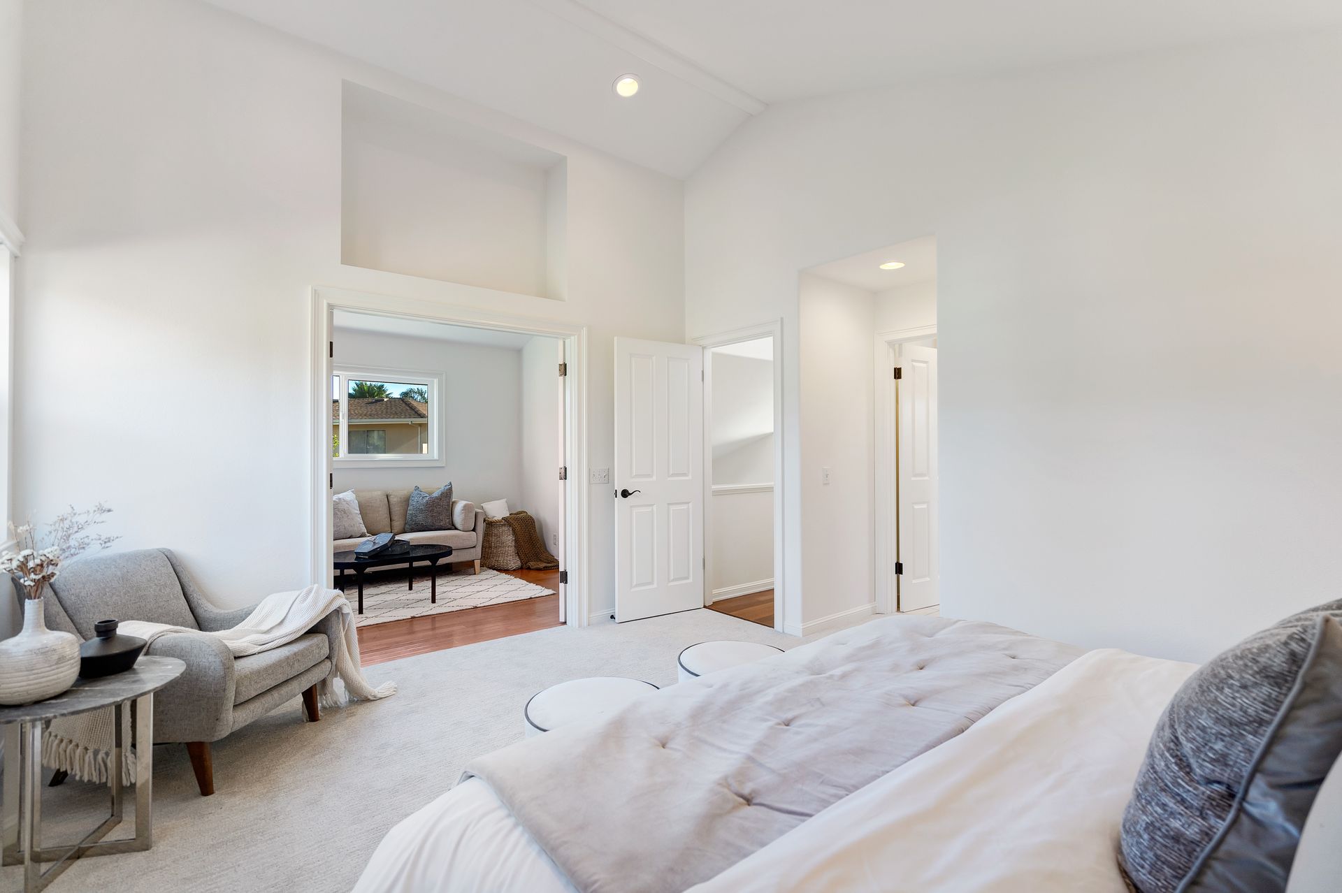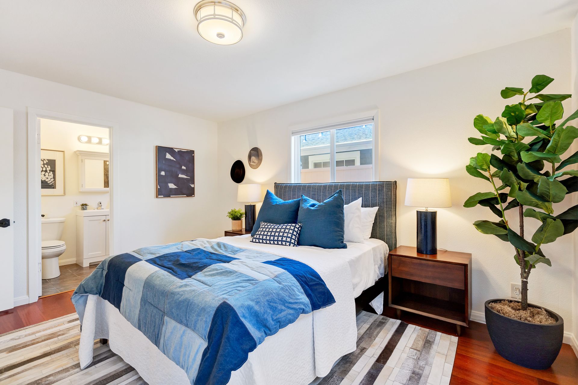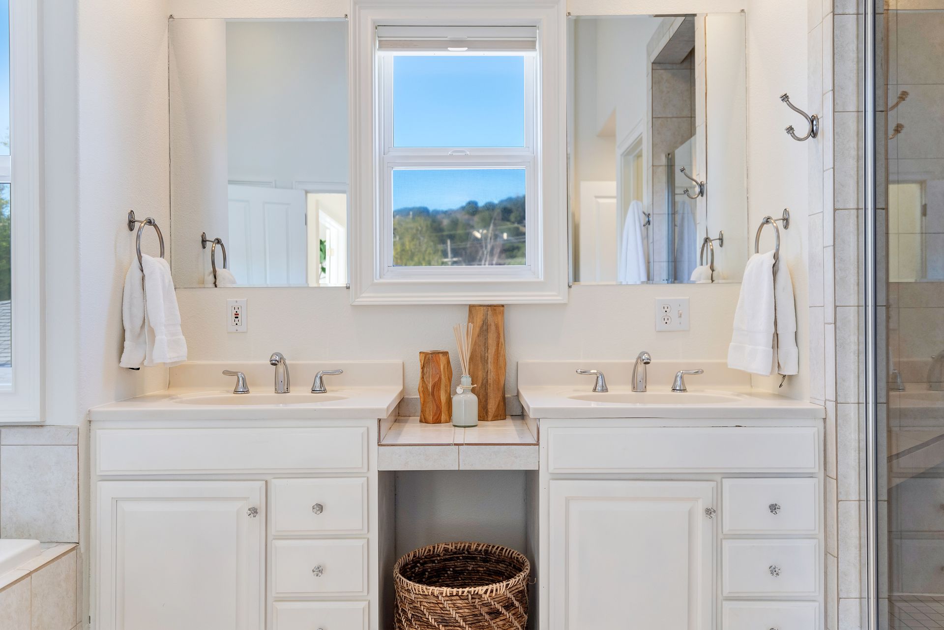 This beautiful and expanded, 3+ bedroom, 3 bath, two-story Mediterranean-style home is sited on a large flat lot in in the highly desirable Alto-Sutton Manor neighborhood. A welcoming fenced entry surrounds the sun-drenched patio with terracotta tiles and a fountain, an ideal spot for relaxing or entertaining. The versatile and flexible floor plan throughout facilitates easy living and functionality for all ages. Cozy living room with a gas fireplace leads to a large chef’s kitchen featuring a six-burner Wolf stove, granite counters, stainless steel appliances, an eat-in area and plenty of cabinets. The kitchen opens to the family room featuring a dramatic high ceiling and oversized windows affording an abundance of light and views of the lovely, landscaped yard. Adjacent is the dining room with a high ceiling and access to the yard through attractive French doors. Two good-sized bedrooms are downstairs, one ensuite and an extra full bathroom. Upstairs consists of a light-filled office or optional fourth bedroom and a delightful primary bedroom suite with a vaulted ceiling, adjoining retreat/office, an extra-large bath and a spacious walk-in closet. The rear and front yard patios seamlessly connect, providing a wonderful flow and plenty of space for large group entertaining. Fruit trees surround a grassy play area and nicely finished brick patios, an ideal area for al fresco dining. A large storage shed is tucked away in the rear yard with ample space for bikes, toys, tools, etc. Enjoy easy access to the freeway and being just moments to Edna Maguire Elementary, Whole Foods Market, multi-use paths and Mill Valley Community and Recreation Center.