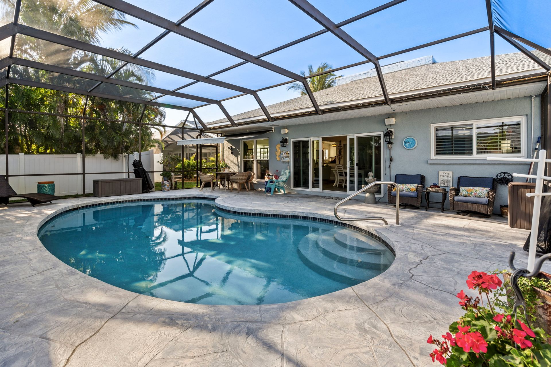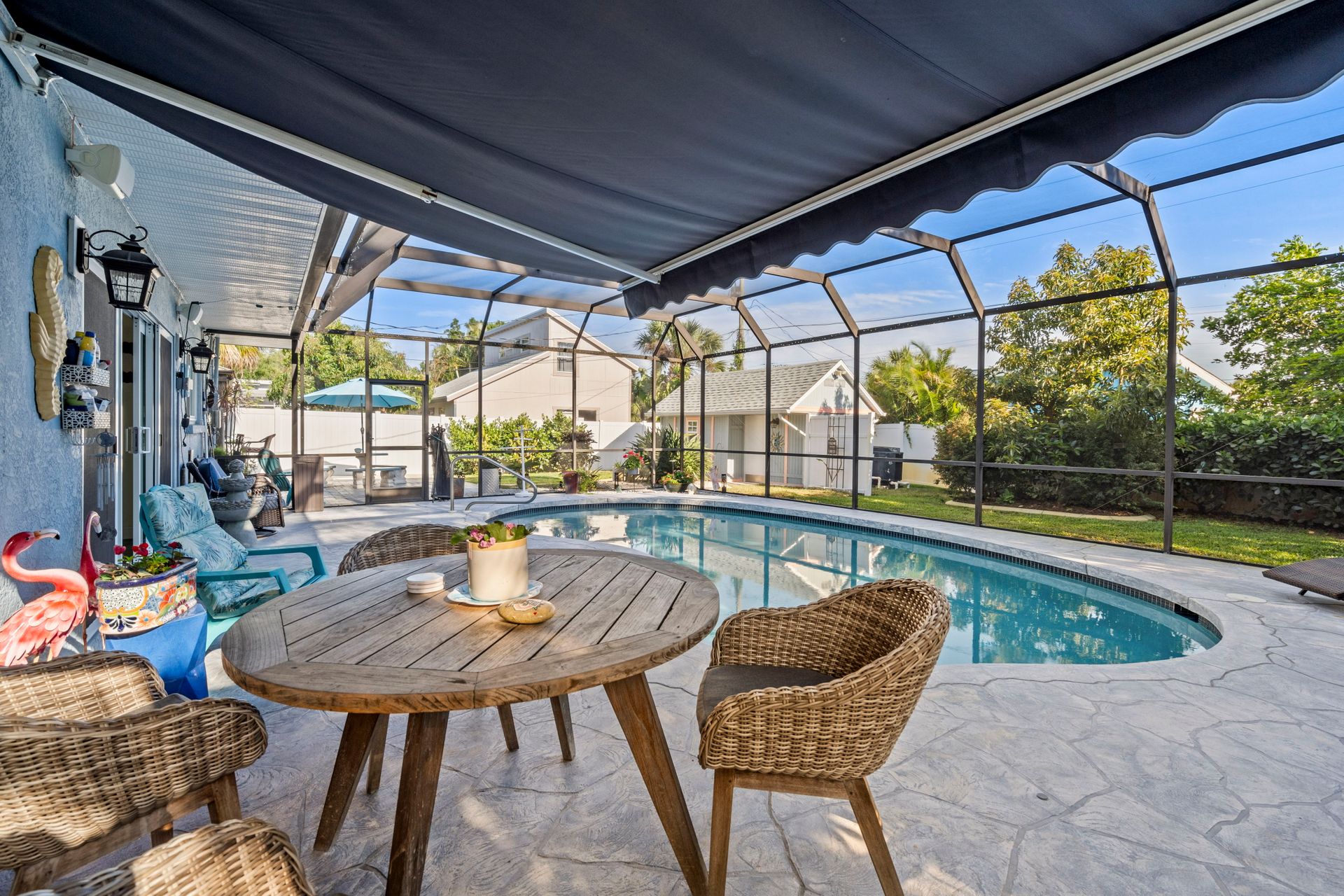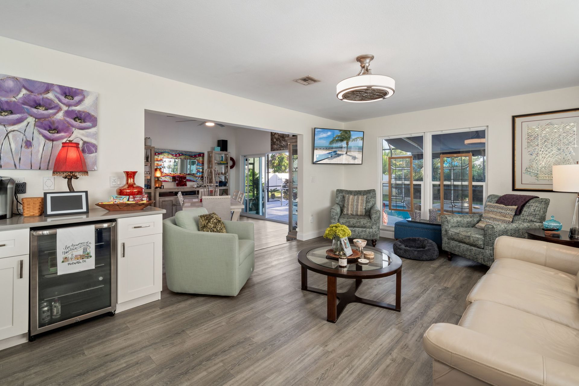 This 3-bedroom, 2-bath SALTWATER POOL home has been ENTIRELY updated and sits on nearly a double lot (0.26 acres) with an OVERSIZED TRUE 2-car garage! This home offers the perfect blend of tranquility, comfort and luxury! The minute you pull into the ADDED circular driveway you’ll notice the NEWER LUSH LANDSCAPING, lighting, IRRIGATION and you will realize this home REALLY HAS IT ALL- including room for ALL the outdoor toys- boat, golf cart, even room for an RV! This home features the most welcoming front entrances a home can possibly have with a large, centered atrium (completely updated in 2017). This home has been COMPLETELY UPDATED including: RE-PIPED; IMPACT WINDOWS, SLIDERS and DOORS; NEWER POOL PUMP and HEATER, SALT CELL SYSTEM; 3 NEWER IRRIGATION WELLS; plantation shutters; NEWER electrical including added box for generator; a beautifully updated kitchen with designer upgrades from lighting to tile backsplash, GRANITE WITH MARBLE stone countertops, a custom QUARTZ coffee and wine bar, NEWER stainless appliances; UPDATED luxury vinyl flooring throughout and more! All bedrooms and bathrooms have been updated as if you are in a MODEL HOME. The primary ensuite is a dream in itself offering the most privacy. The guest quarters located on a shared hallway also provide its own private access out to the gazebo! The guest bedrooms are off the front of the home, across and down the hallway away from your entertaining spaces! Home comes equip with central vacuum system and NuTone. A completely fenced in yard allows for privacy as well as a great backyard for your pets. The outdoor space that this home has sets it apart from any other…it truly is YOUR OWN SLICE OF PARADISE ON VENICE ISLAND! This home has one of the nicest lanai’s and a backyard you will never want to leave. The location is truly unparalleled – within minutes to the Venice Pier, Venice Beach, Venice Jetty or Venice Mainstreet, where you can experience some of its most exceptional sunsets, dining and shopping.