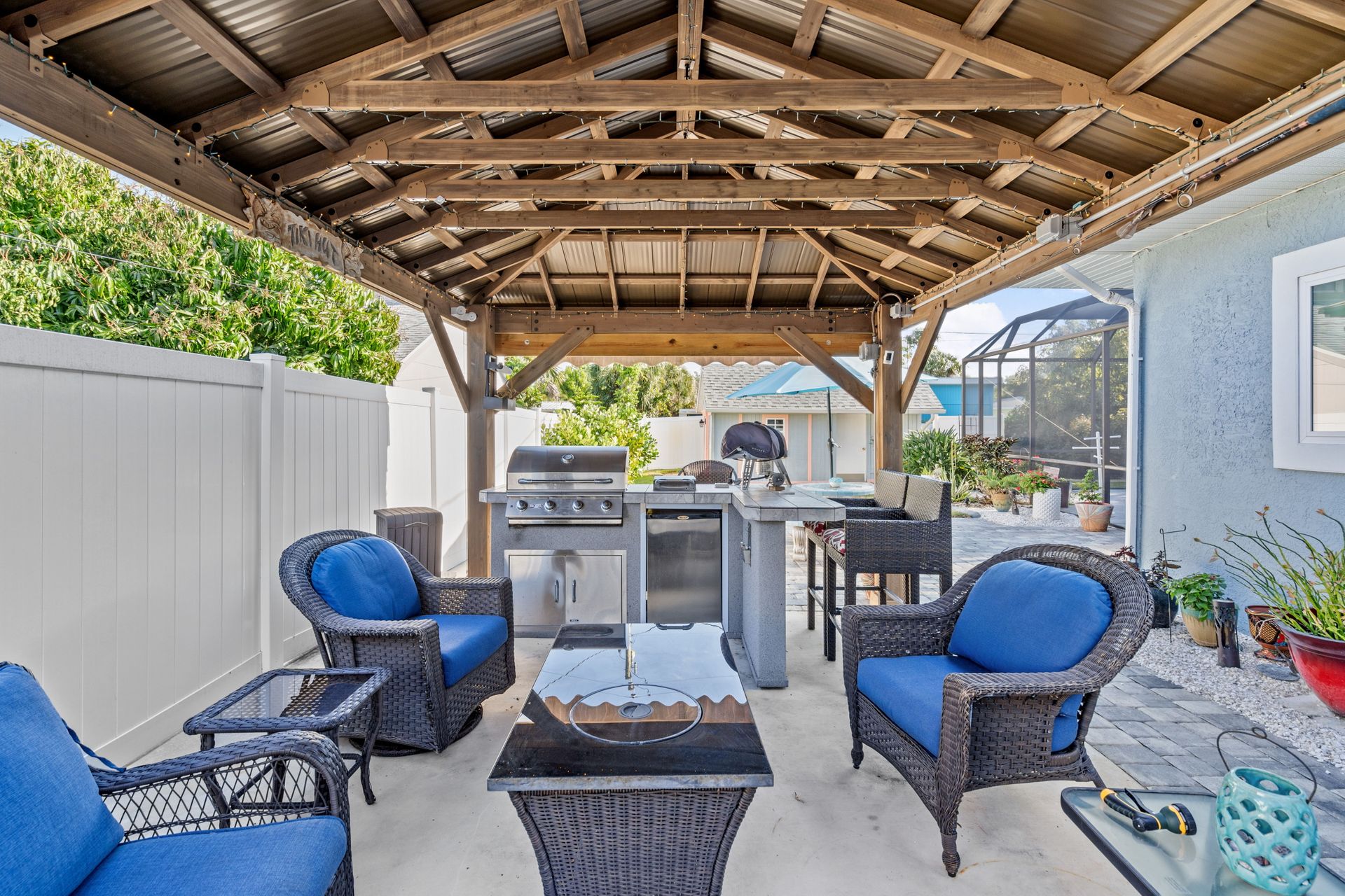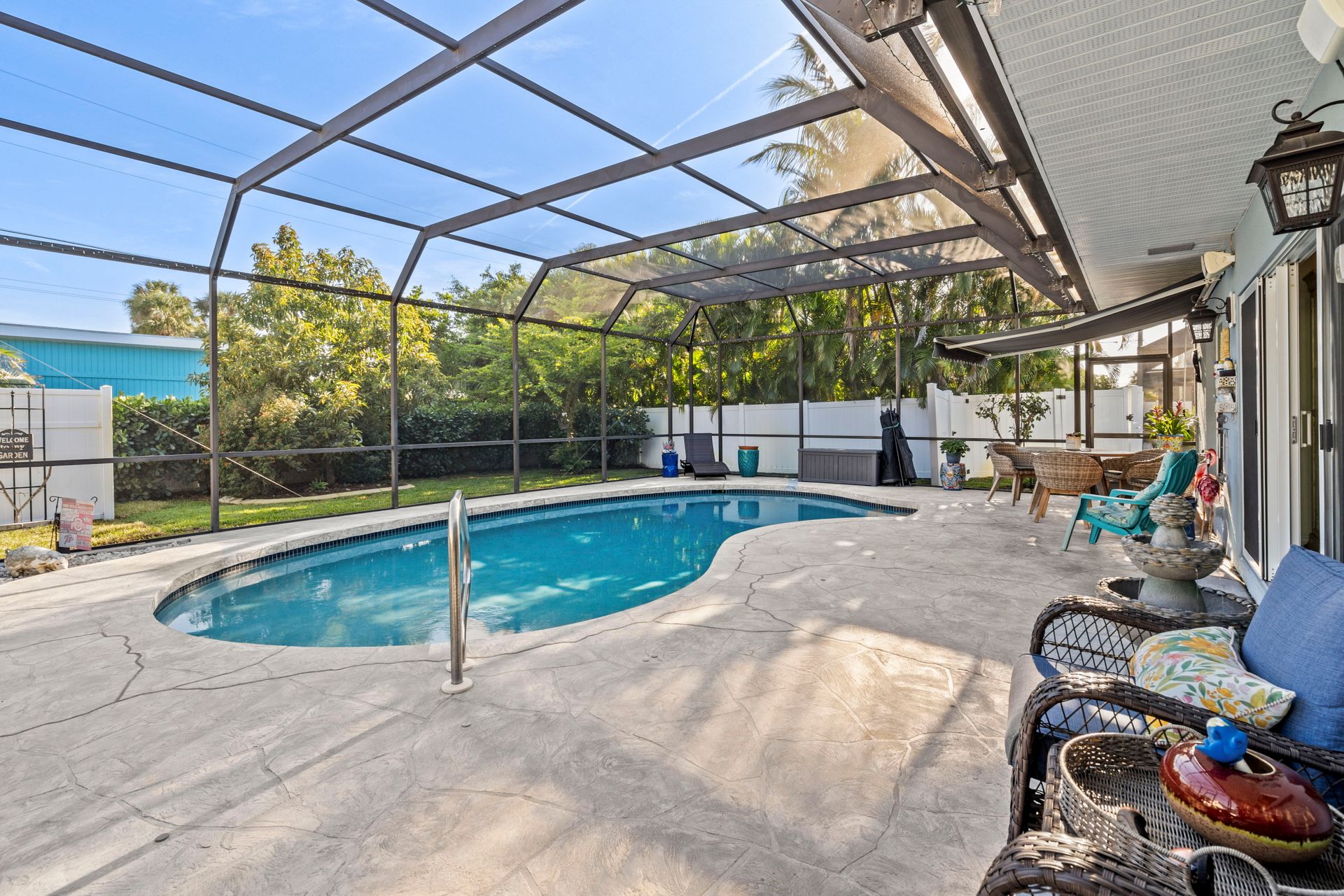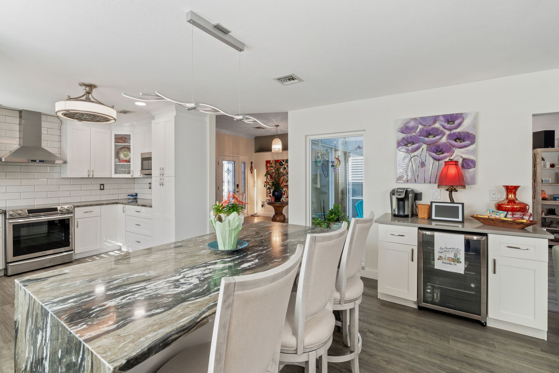 This 3-bedroom, 2-bath SALTWATER POOL home has been ENTIRELY updated and sits on nearly a double lot (0.26 acres) with an OVERSIZED TRUE 2-car garage! This home offers the perfect blend of tranquility, comfort and luxury! The minute you pull into the ADDED circular driveway you’ll notice the NEWER LUSH LANDSCAPING, lighting, IRRIGATION and you will realize this home REALLY HAS IT ALL- including room for ALL the outdoor toys- boat, golf cart, even room for an RV! This home features the most welcoming front entrances a home can possibly have with a large, centered atrium (completely updated in 2017). This home has been COMPLETELY UPDATED including: RE-PIPED; IMPACT WINDOWS, SLIDERS and DOORS; NEWER POOL PUMP and HEATER, SALT CELL SYSTEM; 3 NEWER IRRIGATION WELLS; plantation shutters; NEWER electrical including added box for generator; a beautifully updated kitchen with designer upgrades from lighting to tile backsplash, GRANITE WITH MARBLE stone countertops, a custom QUARTZ coffee and wine bar, NEWER stainless appliances; UPDATED luxury vinyl flooring throughout and more! All bedrooms and bathrooms have been updated as if you are in a MODEL HOME. The primary ensuite is a dream in itself offering the most privacy. The guest quarters located on a shared hallway also provide its own private access out to the gazebo! The guest bedrooms are off the front of the home, across and down the hallway away from your entertaining spaces! Home comes equip with central vacuum system and NuTone. A completely fenced in yard allows for privacy as well as a great backyard for your pets. The outdoor space that this home has sets it apart from any other…it truly is YOUR OWN SLICE OF PARADISE ON VENICE ISLAND! This home has one of the nicest lanai’s and a backyard you will never want to leave. The location is truly unparalleled – within minutes to the Venice Pier, Venice Beach, Venice Jetty or Venice Mainstreet, where you can experience some of its most exceptional sunsets, dining and shopping.