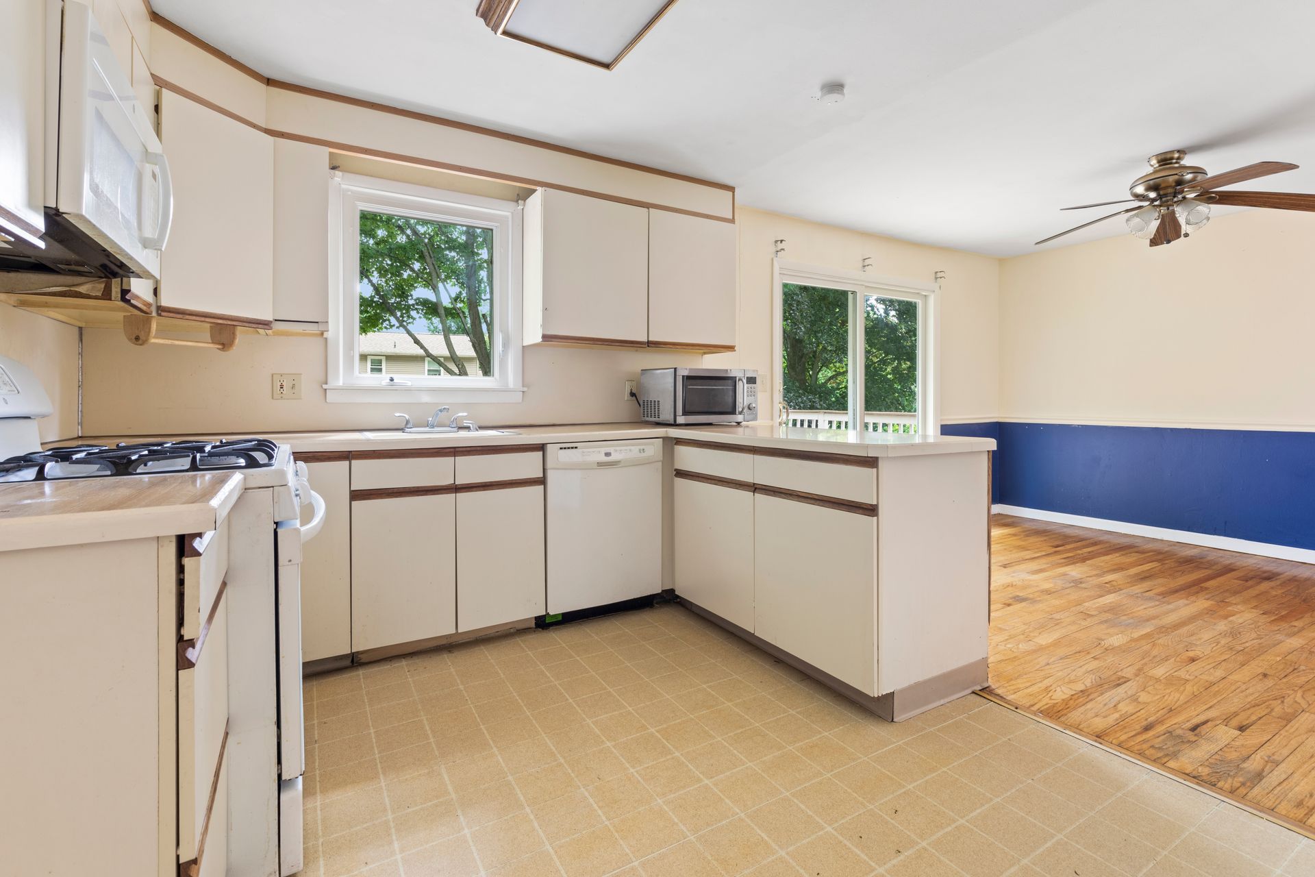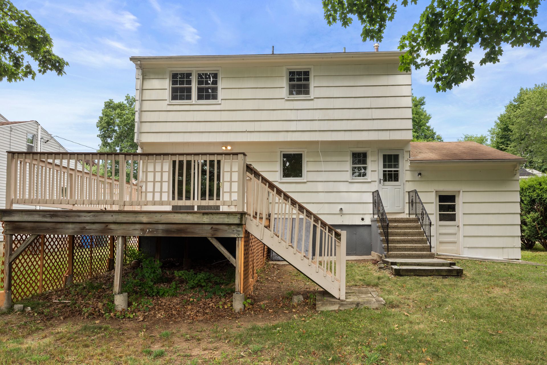 Solid 1960s home in wonderful Hamden location. Easy access to shopping and highways. This house has great bones and great space - all that is needed is some updating to the kitchen and baths - bring your creativity. Classic large front to back living room features built-ins. Kitchen is well laid out with a separate space for dining. Hardwood floors throughout. Four bedrooms are a generous size, including the primary bedroom. Full bathroom upstairs features double sinks. Additional 338 square foot finished space in lower level great for relaxing, TV watching or working out. Laundry is also located in lower level. Large deck perfect for cookouts or spending time in the good old outdoors. Newer vinyl windows, furnace (3 years old) and gas how water heater (about 5 years old), freshly painted interior. One car garage. City waters, city sewer, gas heat, forced warm air (so easy to add central air). Move in and redecorate and celebrate the holidays in your new home!