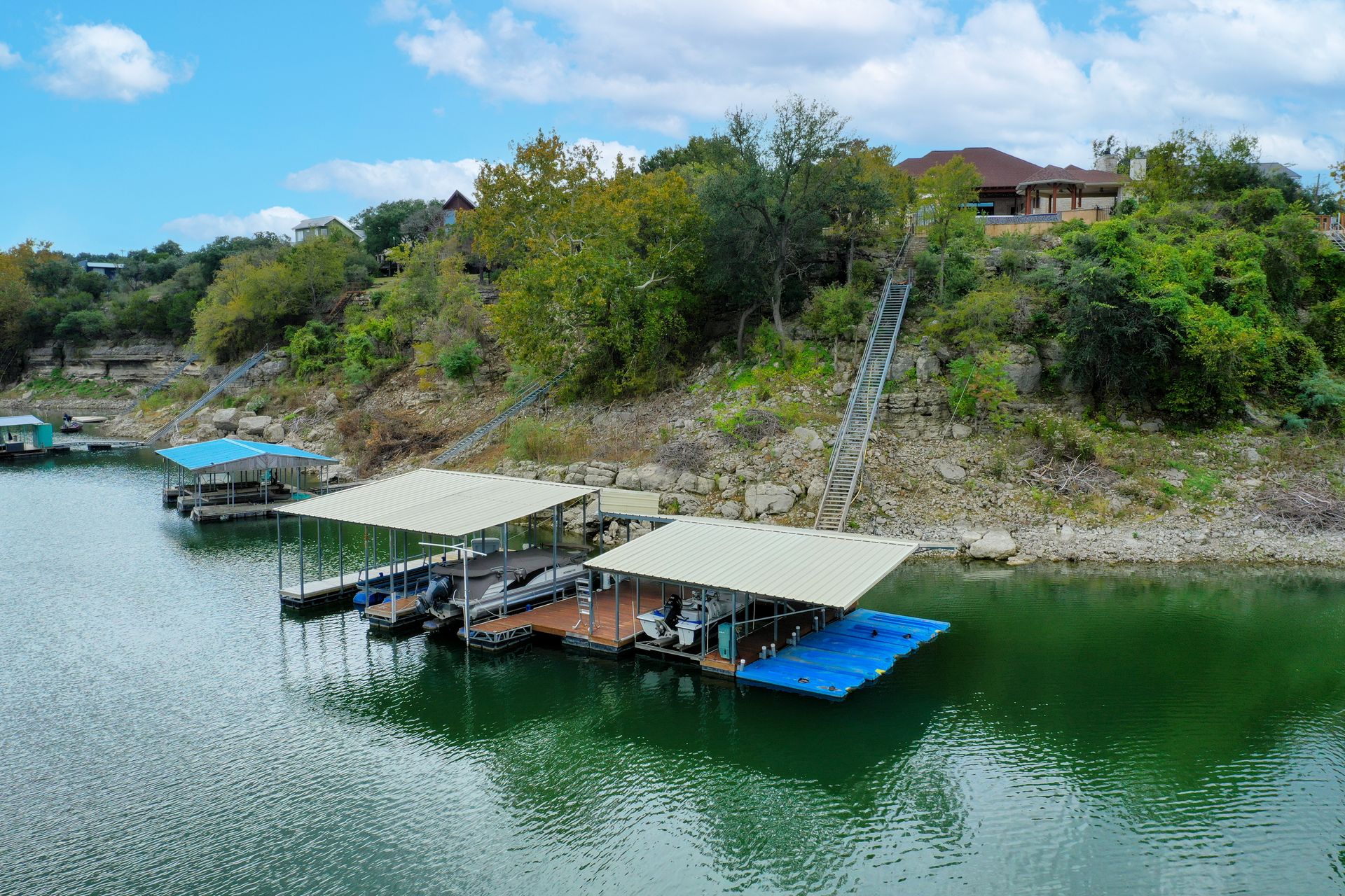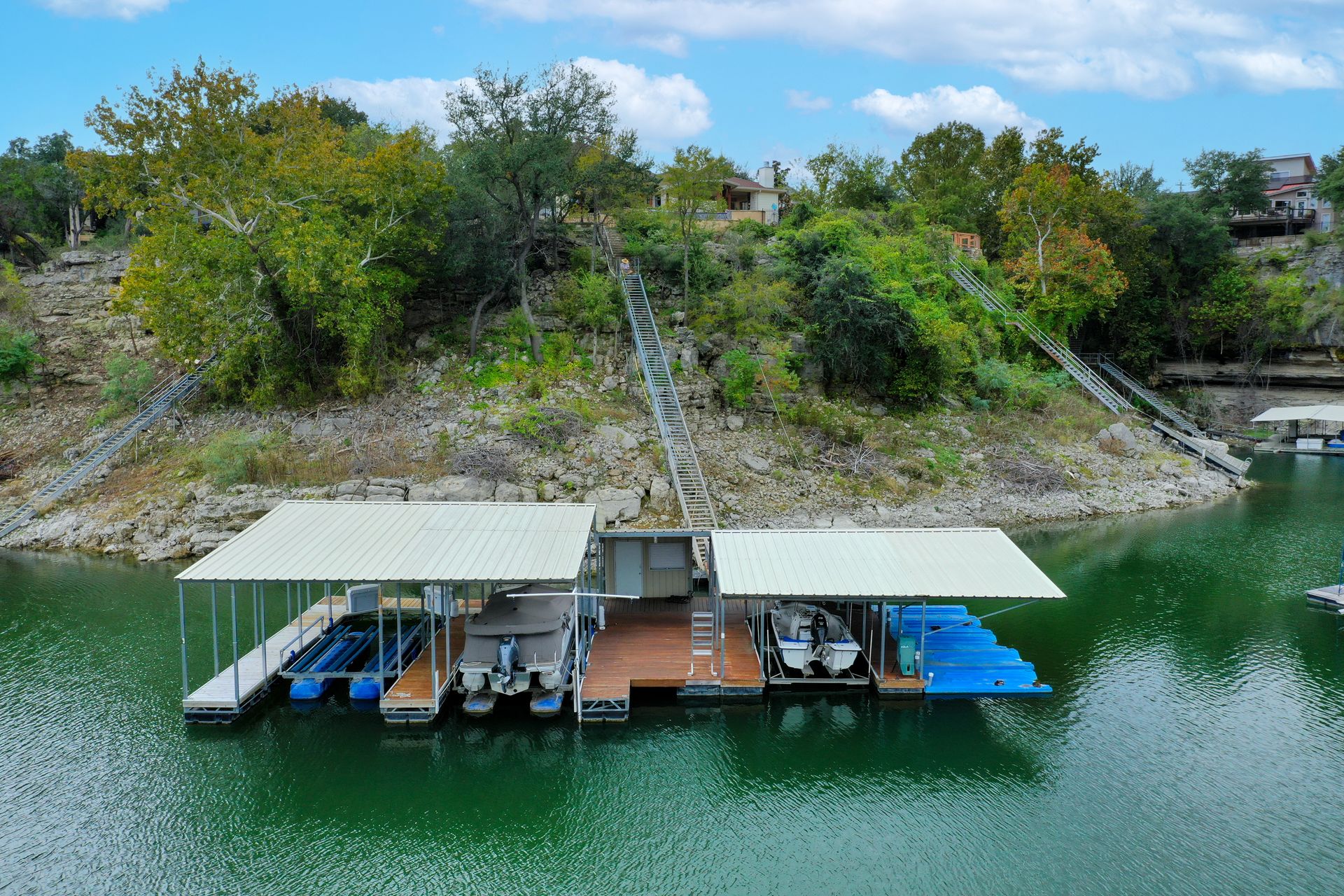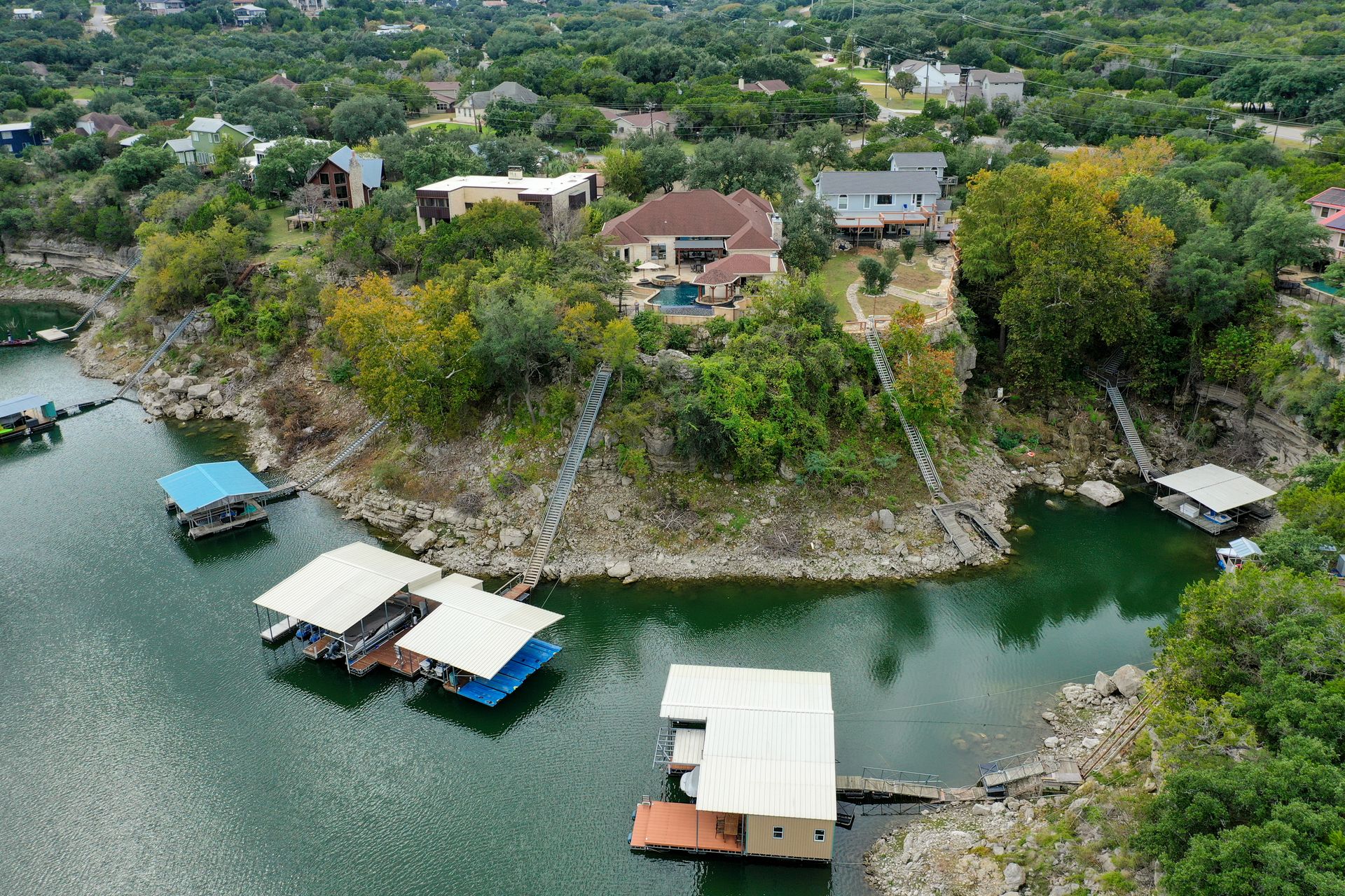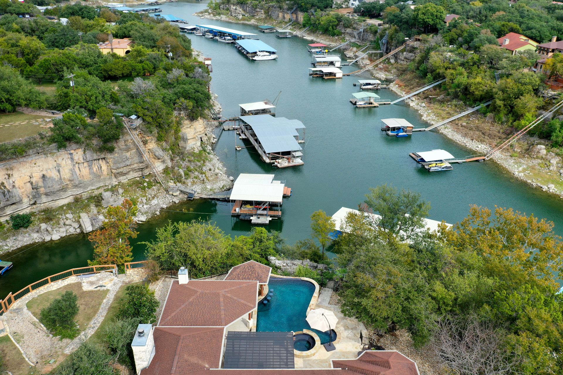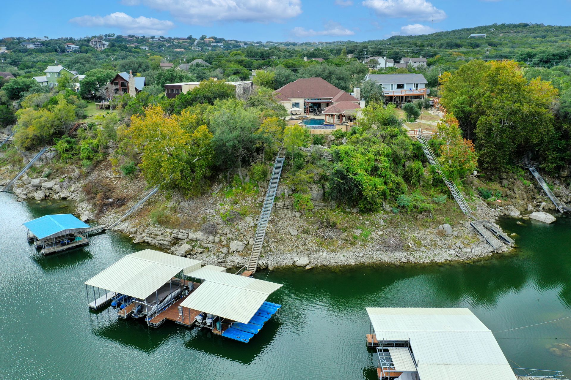 Imagine beginning and ending your days, viewing Lake Travis over your world class resort style pool and spa. You can walk down to your own private marina with two hydro-hoist lifts, five jet-ski slots, and one more slip! This single-story contemporary gem was completely and masterfully renovated with meticulous details inside and out. High ceilings and abundant windows capture the beauty of this waterfront oasis. Inside is a modern relaxed feel with light and white surfaces. The huge kitchen features beautiful white quartz counters, stainless appliances, propane stove, Sub-Zero fridge, secondary pantry, and fridge, and plenty of space to entertain your guests while viewing the amazing outdoor setting. Three bedrooms plus office, plus bonus room with murphy bed, this home can easily accommodate 8-10 guests over a weekend. The master suite, with views of the Lake, has an incredible, large soaking tub adorned with custom tile and chandelier lighting. Two big closets full of custom cabinetry for your finest possessions and apparel. Whole house multi-media sound/video/security system controlled by phone or tablet. Step outside to several seating areas for entertaining. The poolside cabana is oversized, with multiple grilling options, fireplace, swim up bar, outdoor TVs, firepit, and the negative edge pool/spa are heated and chilled! Perfect sun orientation, deep water calm cove, with a marina 2-3 minutes away. Feel like you’re on vacation 365 days of the year. Towering oaks, expansive front lawn, sit on almost one acre in this privately gated compound. This home is the perfect primary or secondary home that provides fun and relaxation all year long. The only thing missing is YOU.