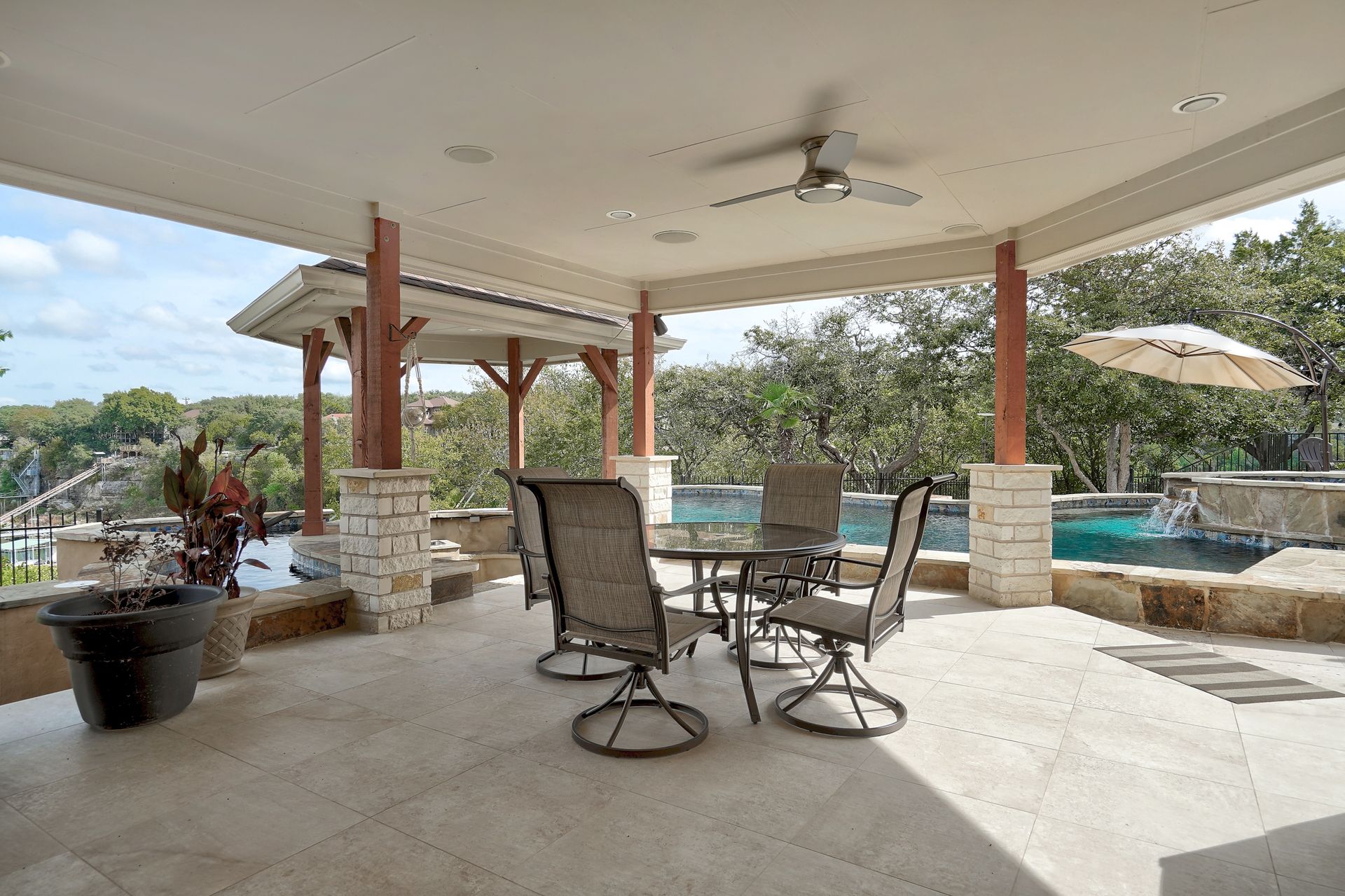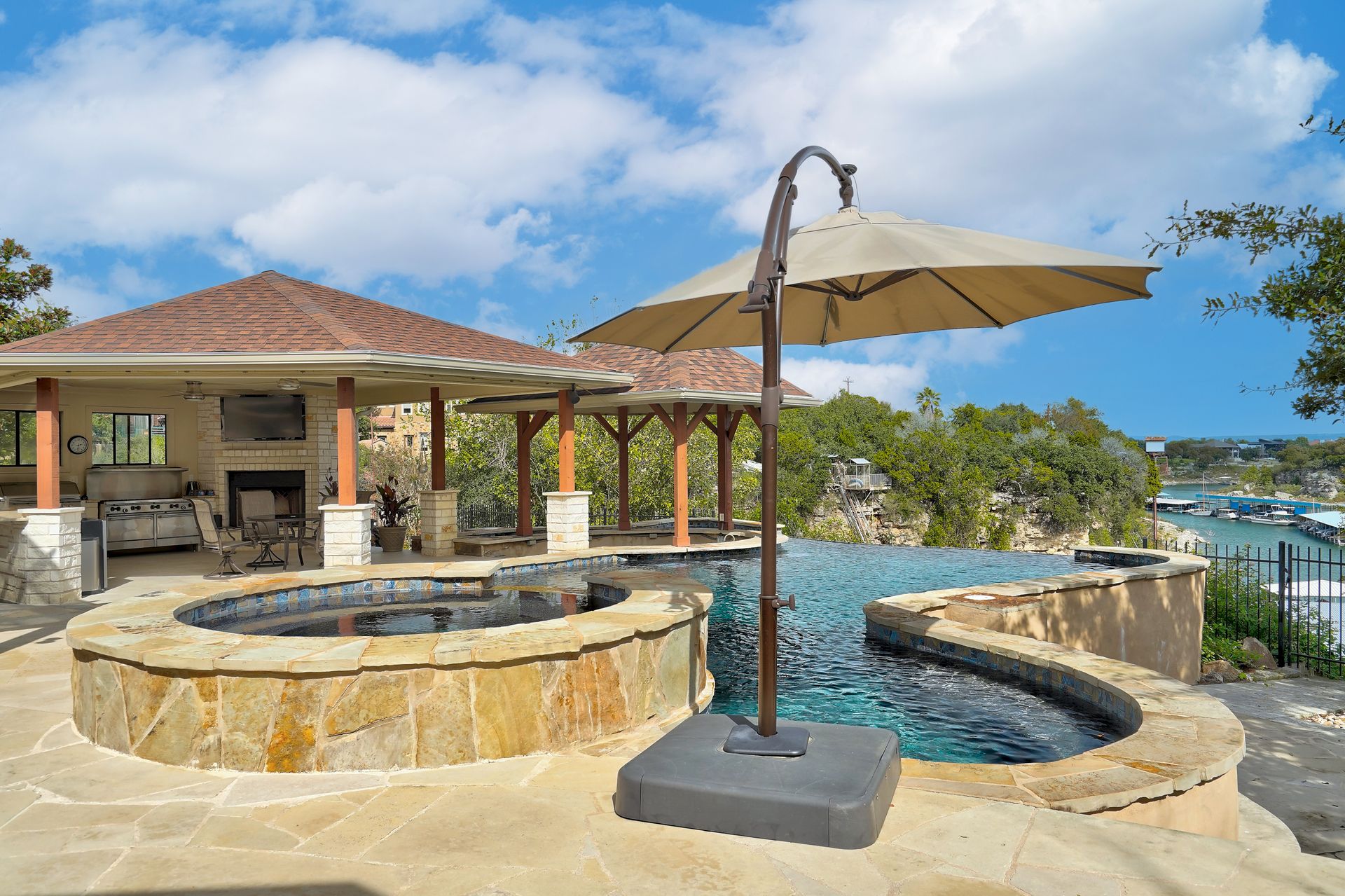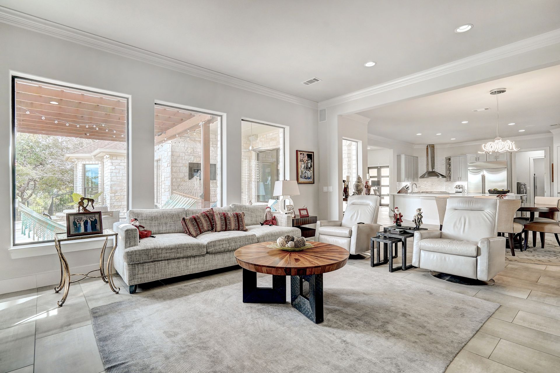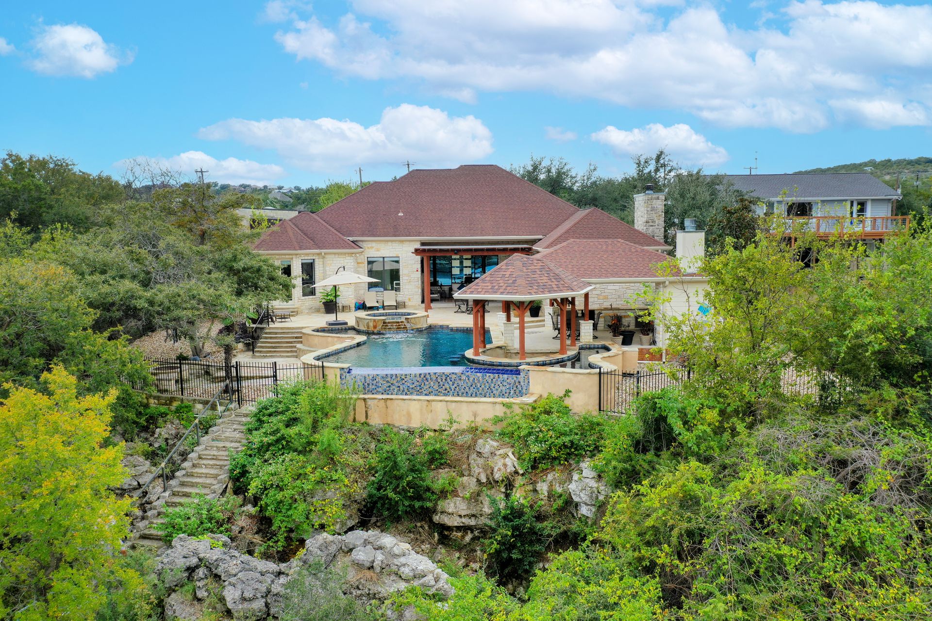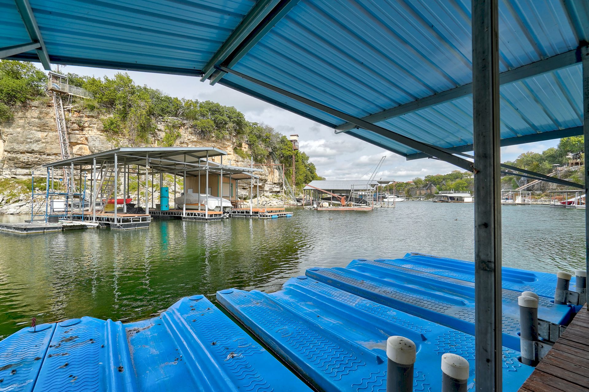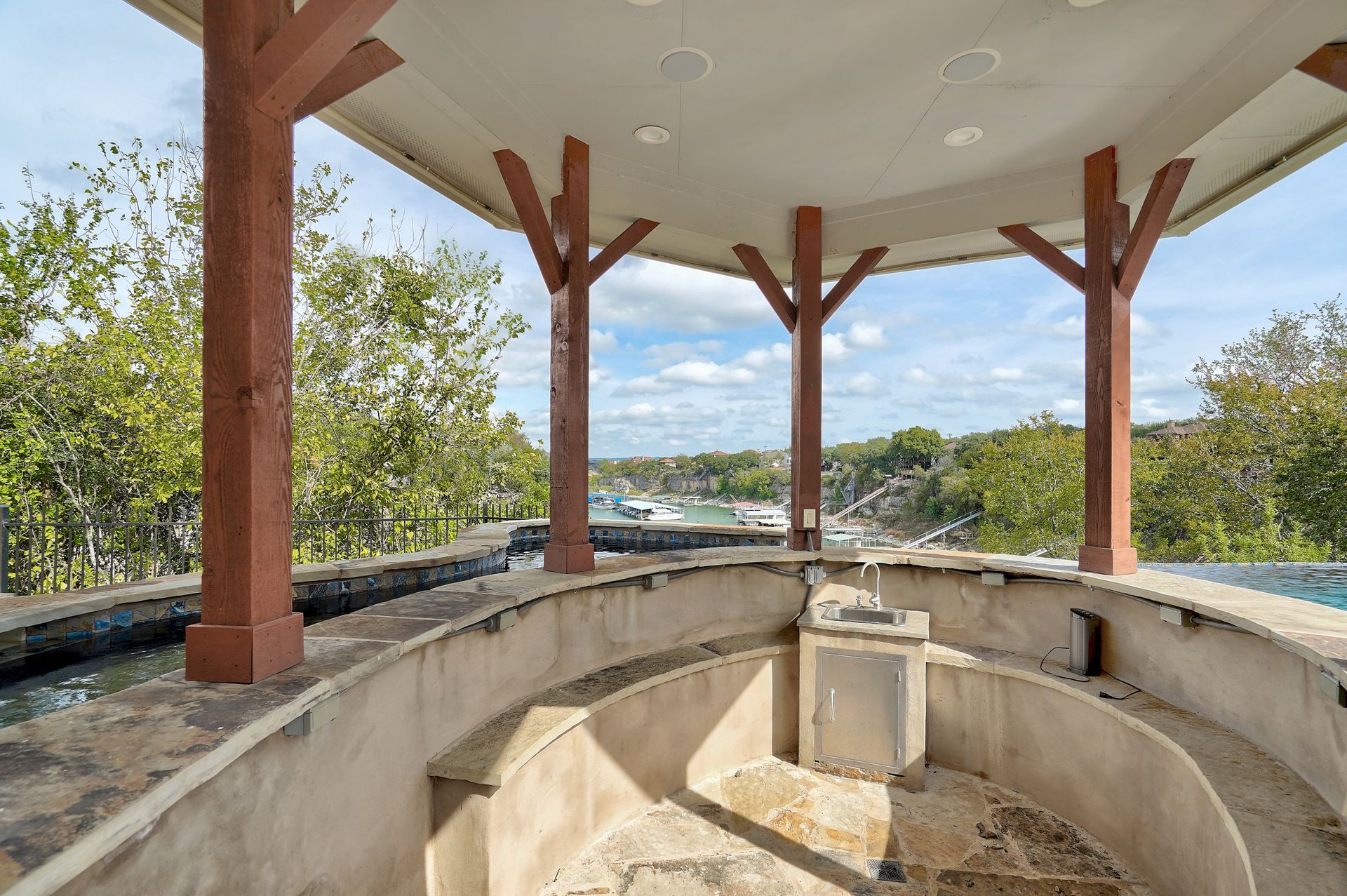 Imagine beginning and ending your days, viewing Lake Travis over your world class resort style pool and spa. You can walk down to your own private marina with two hydro-hoist lifts, five jet-ski slots, and one more slip! This single-story contemporary gem was completely and masterfully renovated with meticulous details inside and out. High ceilings and abundant windows capture the beauty of this waterfront oasis. Inside is a modern relaxed feel with light and white surfaces. The huge kitchen features beautiful white quartz counters, stainless appliances, propane stove, Sub-Zero fridge, secondary pantry, and fridge, and plenty of space to entertain your guests while viewing the amazing outdoor setting. Three bedrooms plus office, plus bonus room with murphy bed, this home can easily accommodate 8-10 guests over a weekend. The master suite, with views of the Lake, has an incredible, large soaking tub adorned with custom tile and chandelier lighting. Two big closets full of custom cabinetry for your finest possessions and apparel. Whole house multi-media sound/video/security system controlled by phone or tablet. Step outside to several seating areas for entertaining. The poolside cabana is oversized, with multiple grilling options, fireplace, swim up bar, outdoor TVs, firepit, and the negative edge pool/spa are heated and chilled! Perfect sun orientation, deep water calm cove, with a marina 2-3 minutes away. Feel like you’re on vacation 365 days of the year. Towering oaks, expansive front lawn, sit on almost one acre in this privately gated compound. This home is the perfect primary or secondary home that provides fun and relaxation all year long. The only thing missing is YOU.