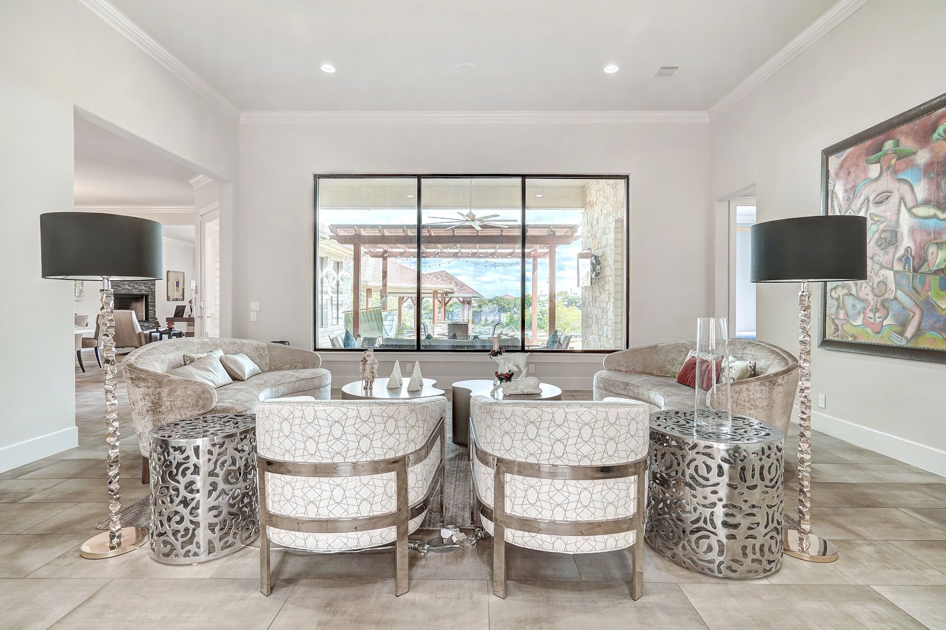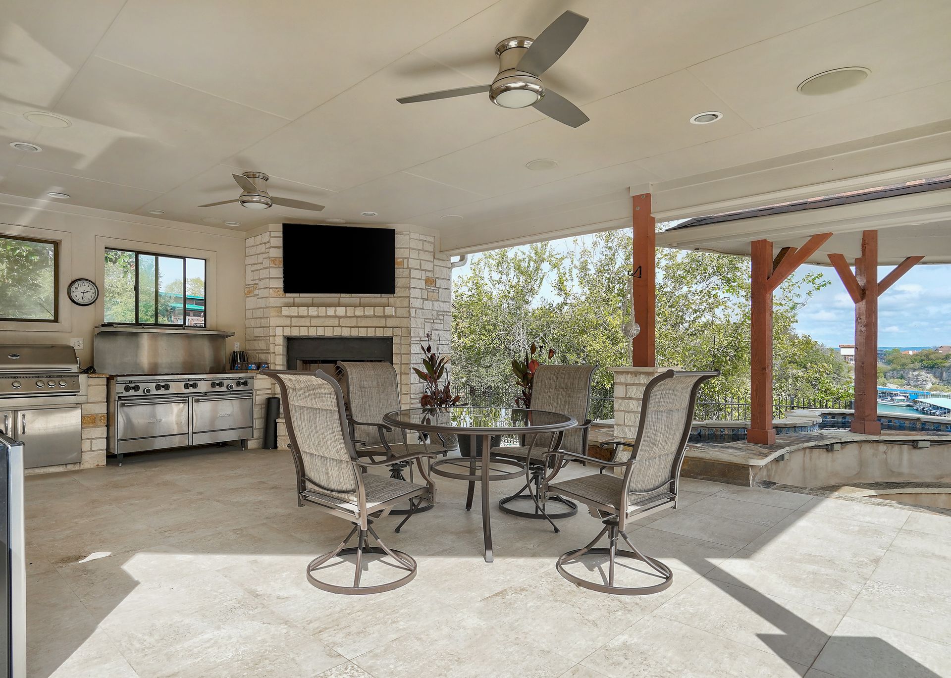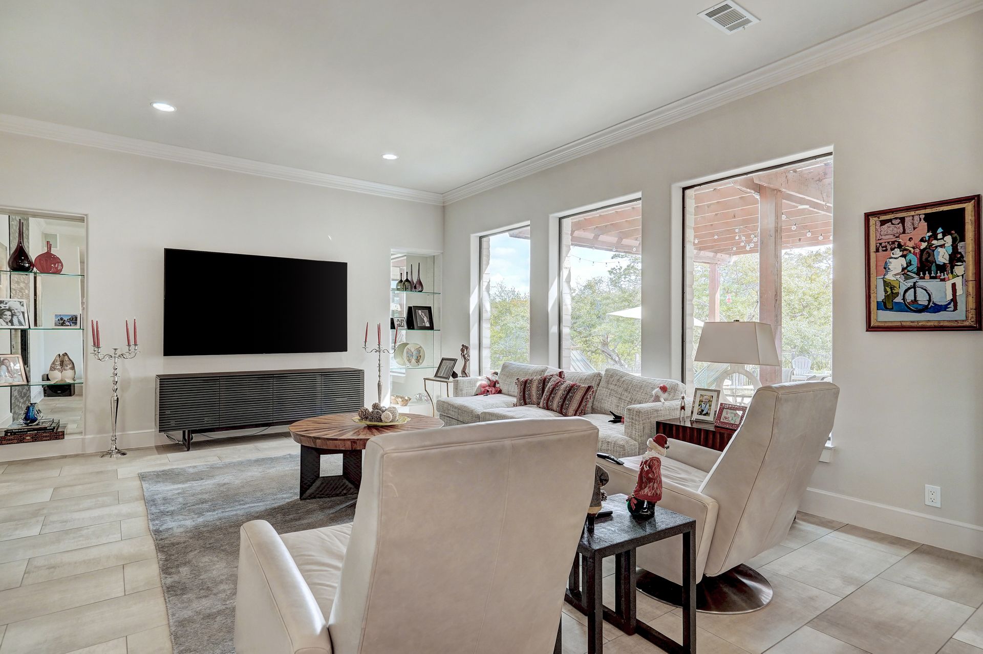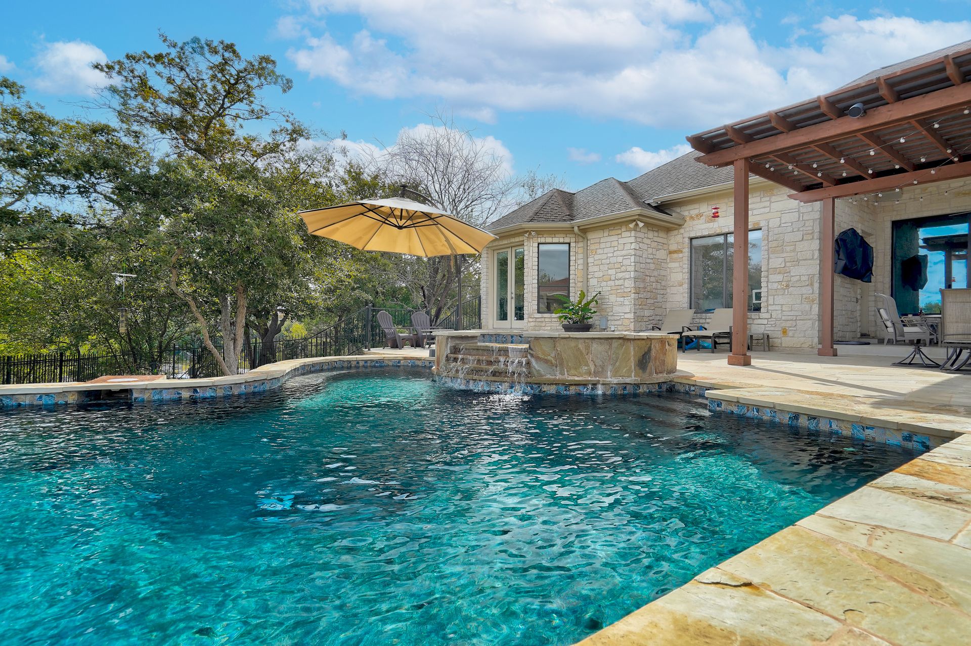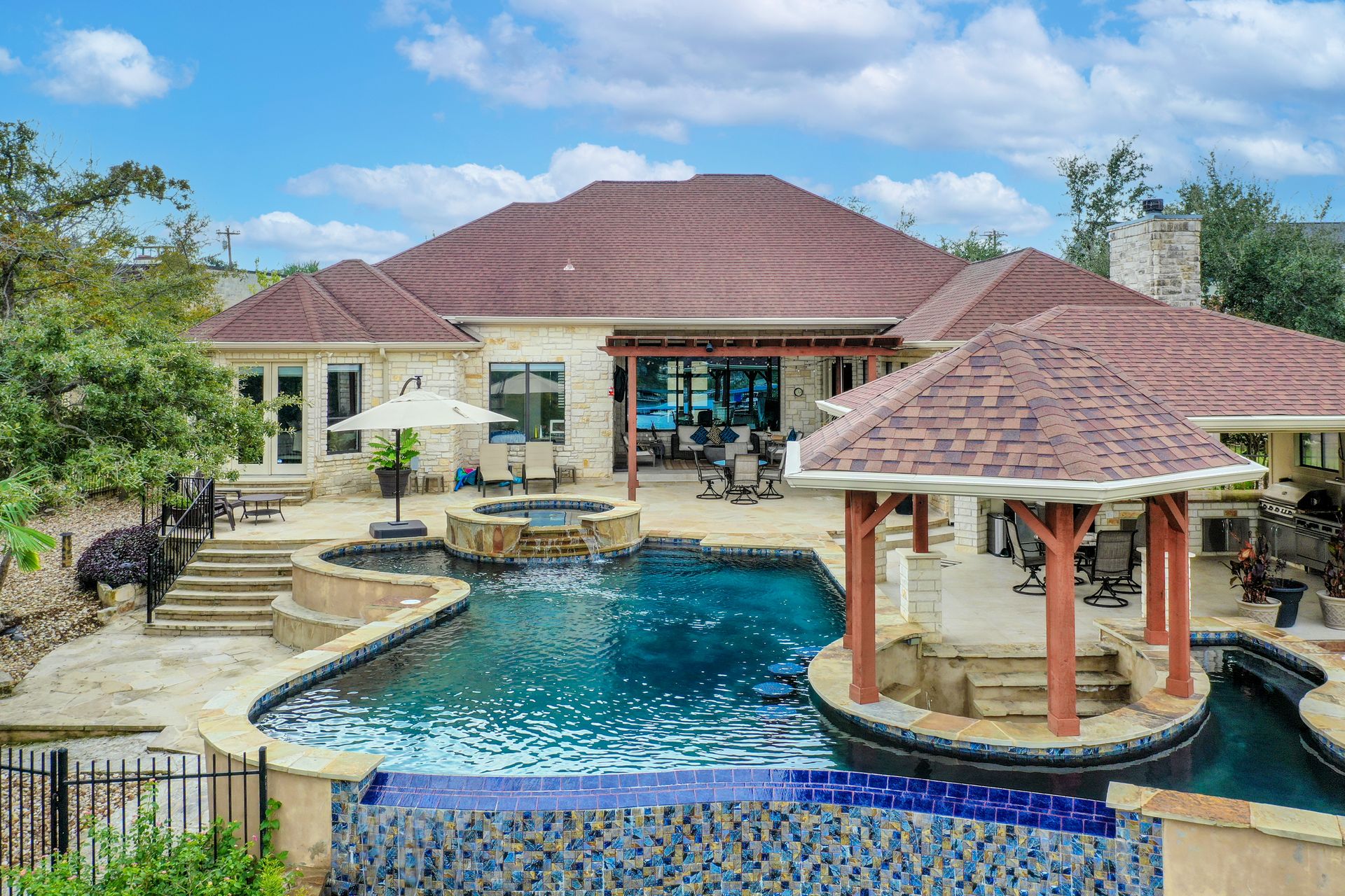 Imagine beginning and ending your days, viewing Lake Travis over your world class resort style pool and spa. You can walk down to your own private marina with two hydro-hoist lifts, five jet-ski slots, and one more slip! This single-story contemporary gem was completely and masterfully renovated with meticulous details inside and out. High ceilings and abundant windows capture the beauty of this waterfront oasis. Inside is a modern relaxed feel with light and white surfaces. The huge kitchen features beautiful white quartz counters, stainless appliances, propane stove, Sub-Zero fridge, secondary pantry, and fridge, and plenty of space to entertain your guests while viewing the amazing outdoor setting. Three bedrooms plus office, plus bonus room with murphy bed, this home can easily accommodate 8-10 guests over a weekend. The master suite, with views of the Lake, has an incredible, large soaking tub adorned with custom tile and chandelier lighting. Two big closets full of custom cabinetry for your finest possessions and apparel. Whole house multi-media sound/video/security system controlled by phone or tablet. Step outside to several seating areas for entertaining. The poolside cabana is oversized, with multiple grilling options, fireplace, swim up bar, outdoor TVs, firepit, and the negative edge pool/spa are heated and chilled! Perfect sun orientation, deep water calm cove, with a marina 2-3 minutes away. Feel like you’re on vacation 365 days of the year. Towering oaks, expansive front lawn, sit on almost one acre in this privately gated compound. This home is the perfect primary or secondary home that provides fun and relaxation all year long. The only thing missing is YOU.