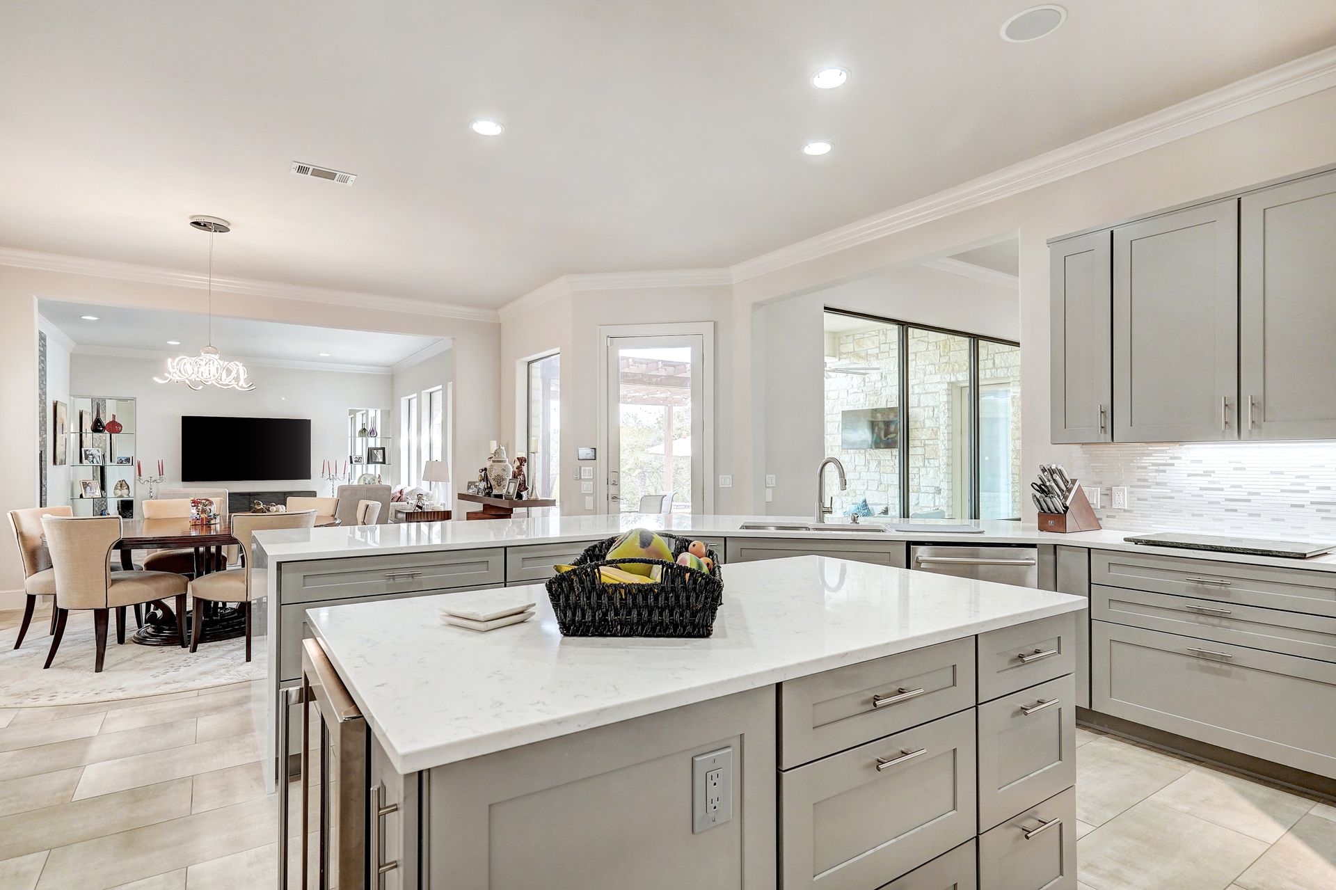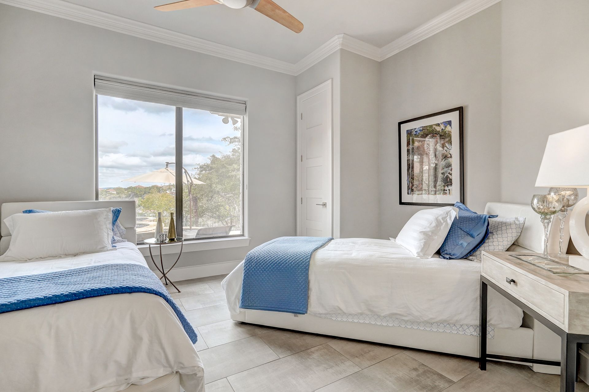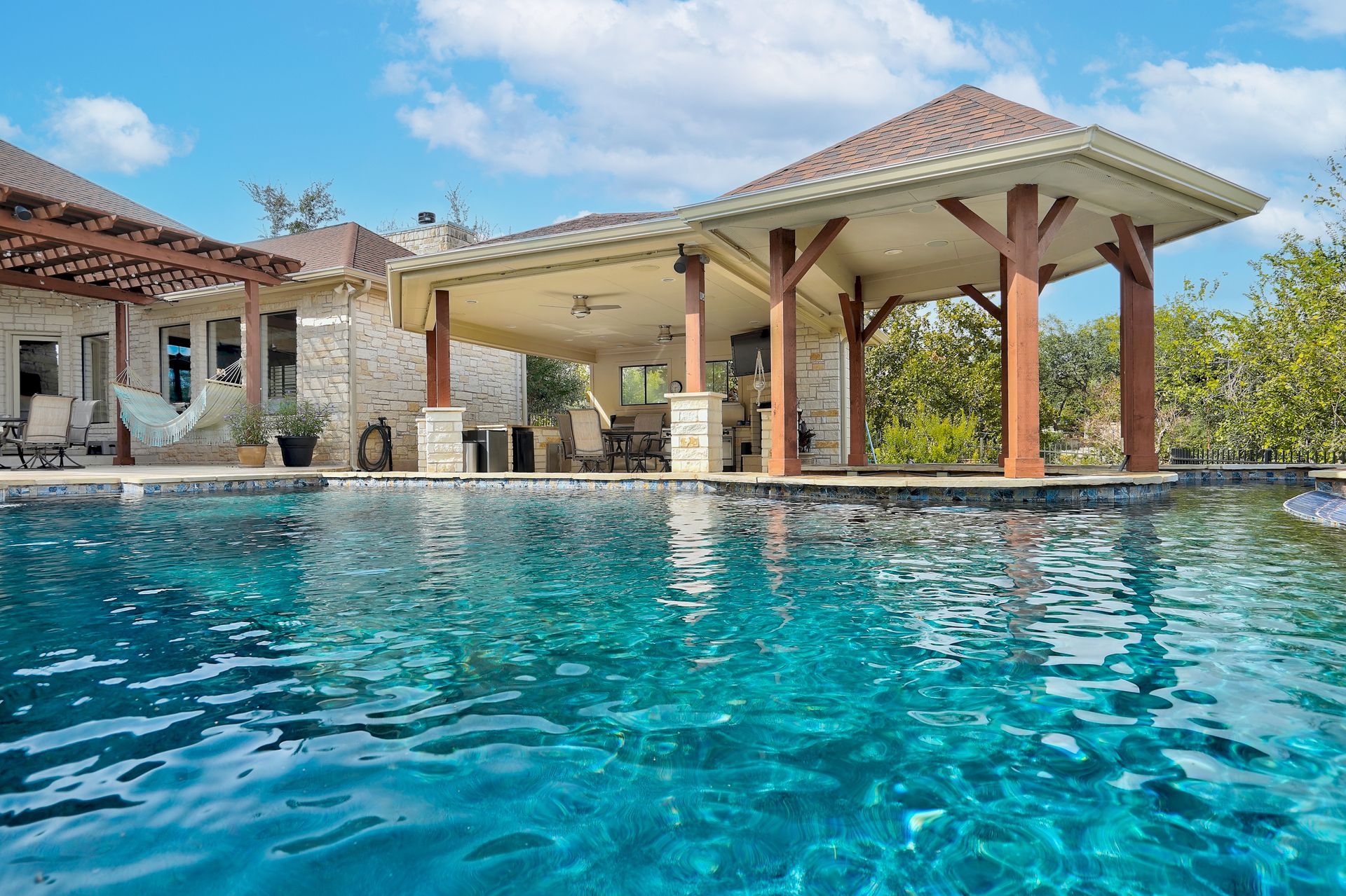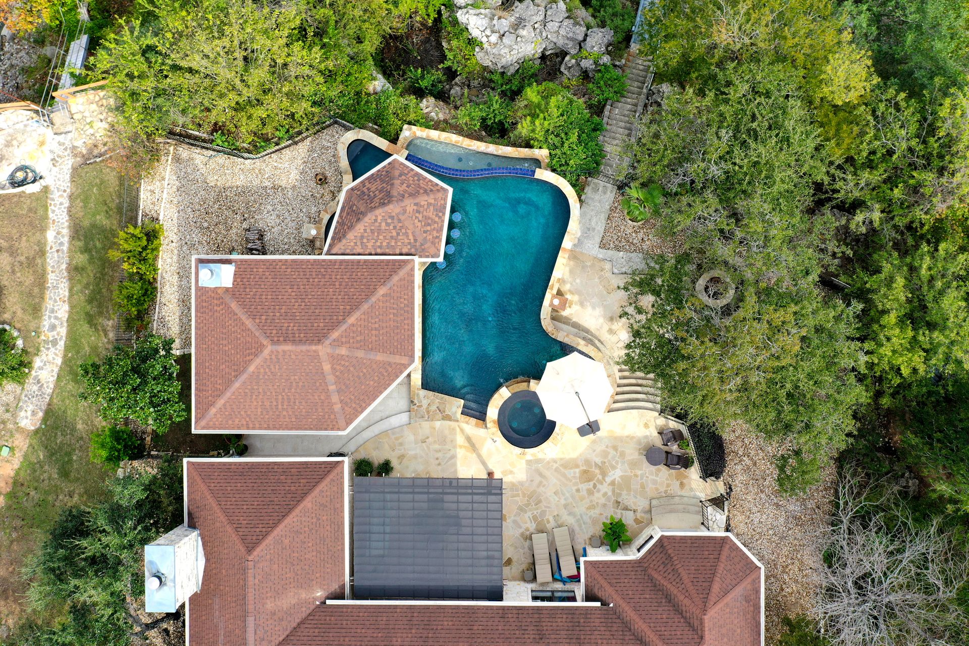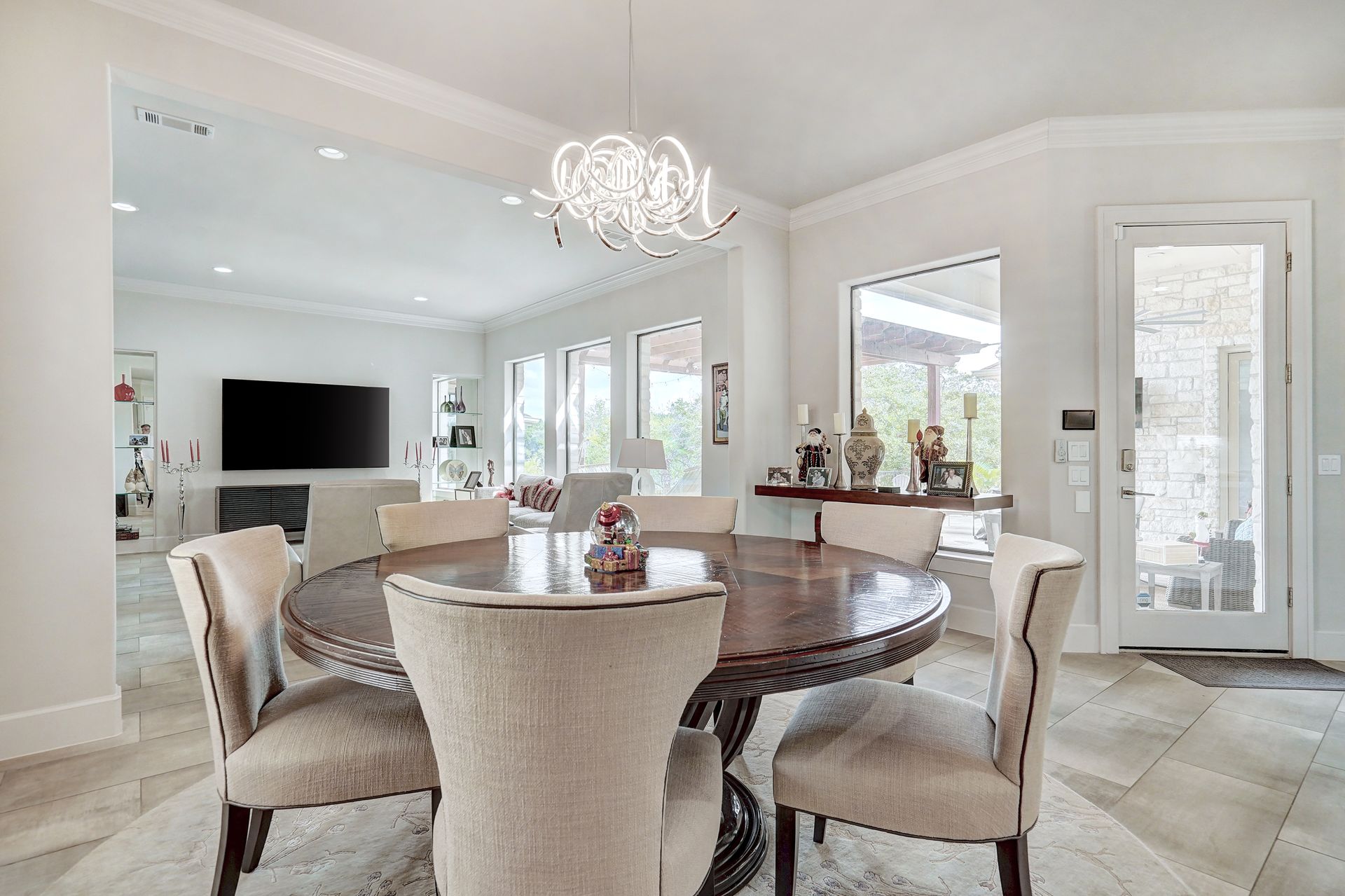 Imagine beginning and ending your days, viewing Lake Travis over your world class resort style pool and spa. You can walk down to your own private marina with two hydro-hoist lifts, five jet-ski slots, and one more slip! This single-story contemporary gem was completely and masterfully renovated with meticulous details inside and out. High ceilings and abundant windows capture the beauty of this waterfront oasis. Inside is a modern relaxed feel with light and white surfaces. The huge kitchen features beautiful white quartz counters, stainless appliances, propane stove, Sub-Zero fridge, secondary pantry, and fridge, and plenty of space to entertain your guests while viewing the amazing outdoor setting. Three bedrooms plus office, plus bonus room with murphy bed, this home can easily accommodate 8-10 guests over a weekend. The master suite, with views of the Lake, has an incredible, large soaking tub adorned with custom tile and chandelier lighting. Two big closets full of custom cabinetry for your finest possessions and apparel. Whole house multi-media sound/video/security system controlled by phone or tablet. Step outside to several seating areas for entertaining. The poolside cabana is oversized, with multiple grilling options, fireplace, swim up bar, outdoor TVs, firepit, and the negative edge pool/spa are heated and chilled! Perfect sun orientation, deep water calm cove, with a marina 2-3 minutes away. Feel like you’re on vacation 365 days of the year. Towering oaks, expansive front lawn, sit on almost one acre in this privately gated compound. This home is the perfect primary or secondary home that provides fun and relaxation all year long. The only thing missing is YOU.