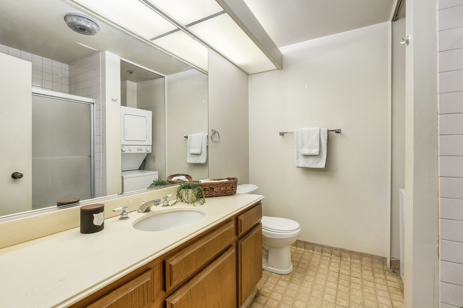 Beautiful, spacious 2 bedroom, 2nd floor unit in the heart of Little Tokyo in Downtown L.A. 2 bedroom, 2 bathroom condo offers two large bedrooms separate from the living room, both with walk-in closets plus an additional closet as well as private bathrooms with a bathtub. Large size balcony leading from the living room that feels like a private patio. Entryway has a huge closet for storage, laundry in the unit, central air conditioning and community storage included. Complex amenities include an indoor hot tub, gym, sauna, meeting room, and 24-hour front desk/nighttime security. The building is minutes from the Metro Gold Line, Arts District, Union Station, markets, specialty restaurants, Japanese Village Plaza, Civic Center, bus transportation, shops, and the freeway entrance. THIS UNIT IS A MUST SEE!