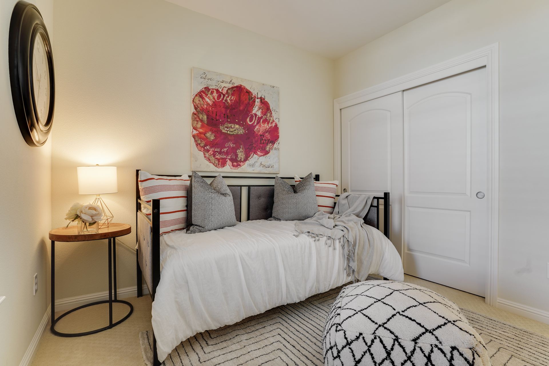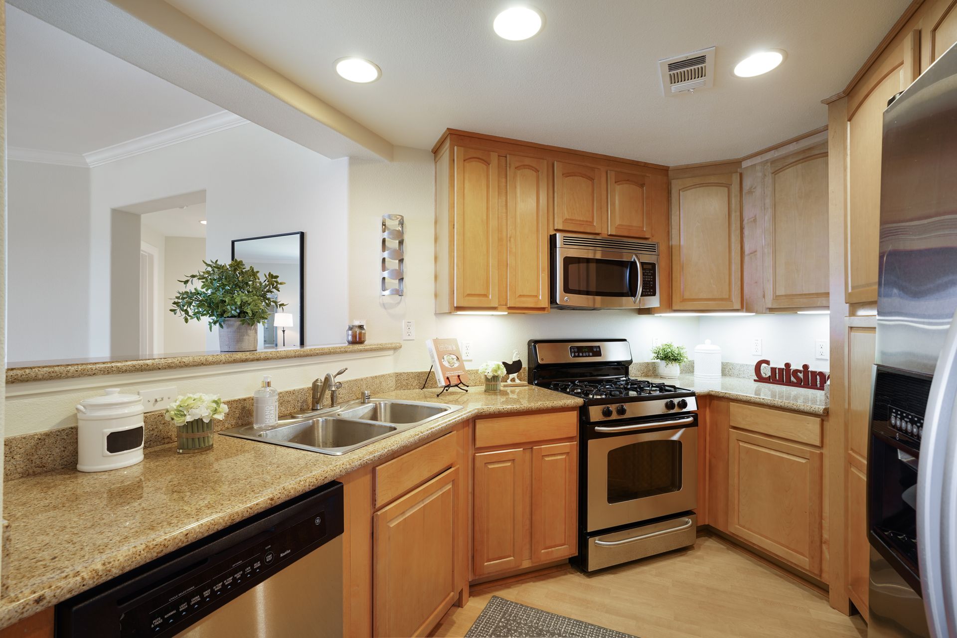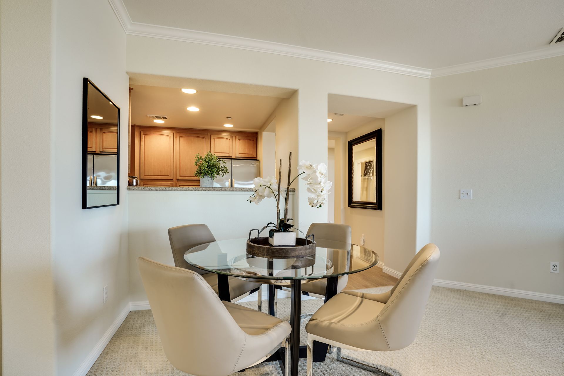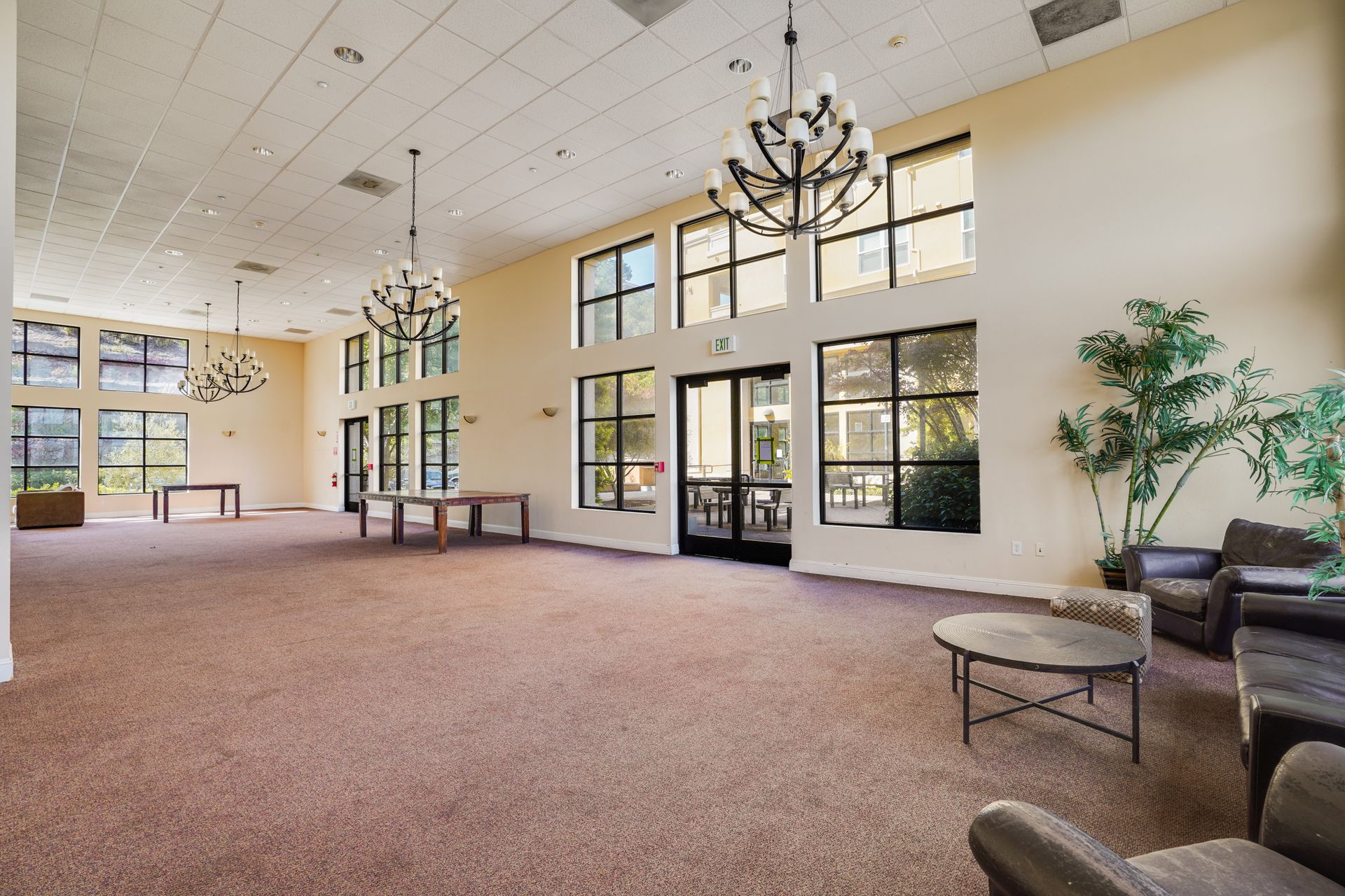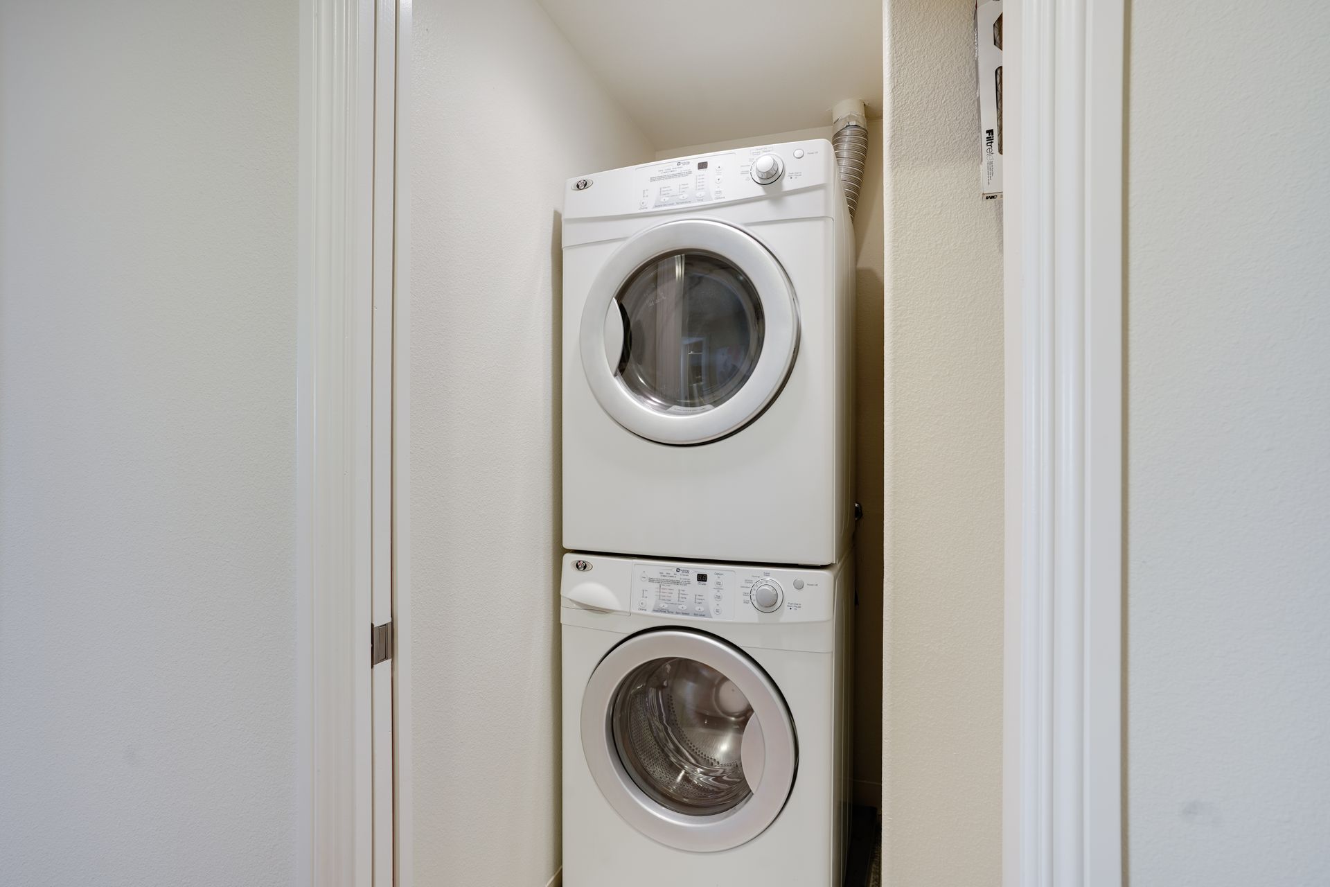 New interior paint; high ceilings, recessed lights, crown molding, dual pane windows, in-unit laundry.  2 car secured parking.  Complex offers a Gym, Clubhouse, children’s playground and a beautiful cascading waterfall.