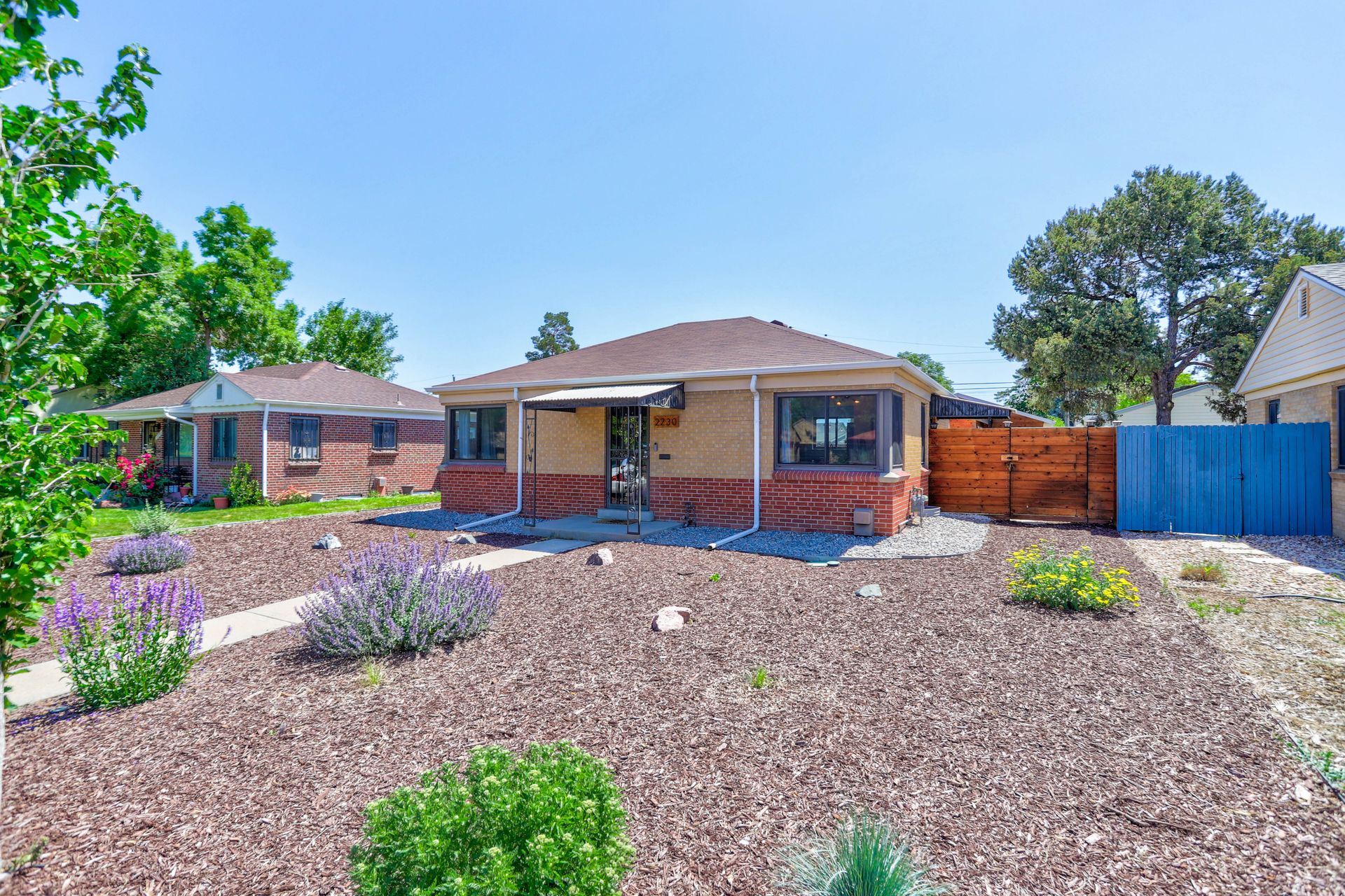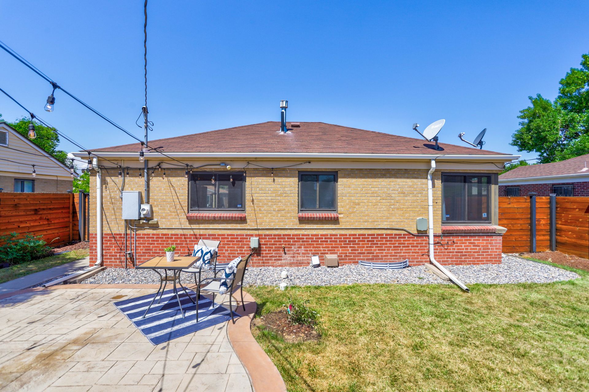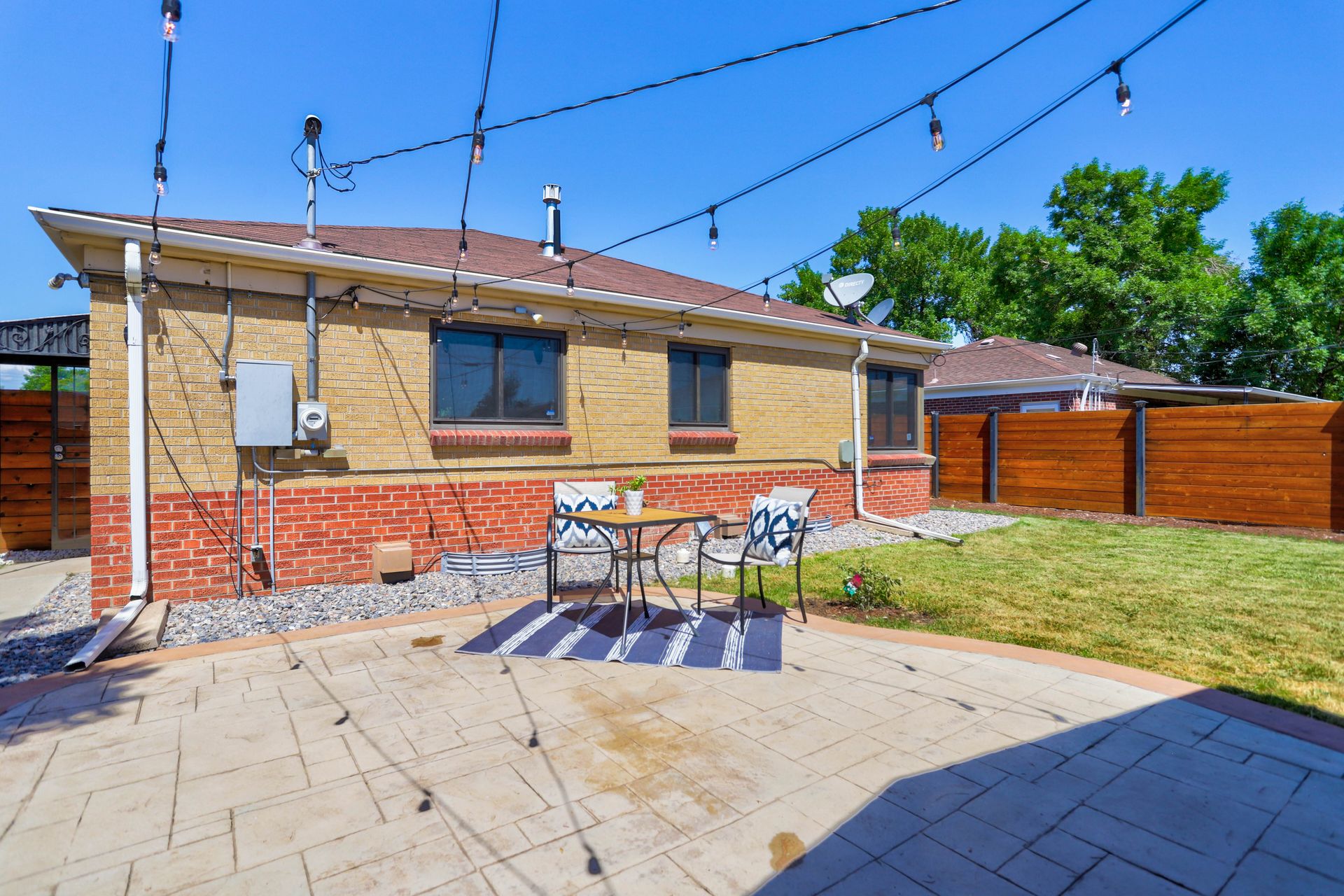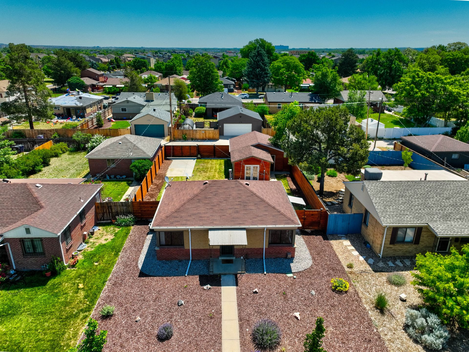 Welcome home to this beautifully updated mid-century brick ranch home located on the southern end of Fred Thomas Park between Park Hill and Central Park boasting four bedrooms, two full bathrooms and an expansive backyard. The front of the property features a newly finished xeriscaped yard with water-conscious plants and trees. In the backyard, a stamped concrete patio is lined with bistro lights that lead you to the finished studio space with glass French doors that is attached to the two-car garage. The yard is protected by a beautifully stained cedar fence with an integrated electronic gate and a pad perfect for any extra or recreational vehicles.