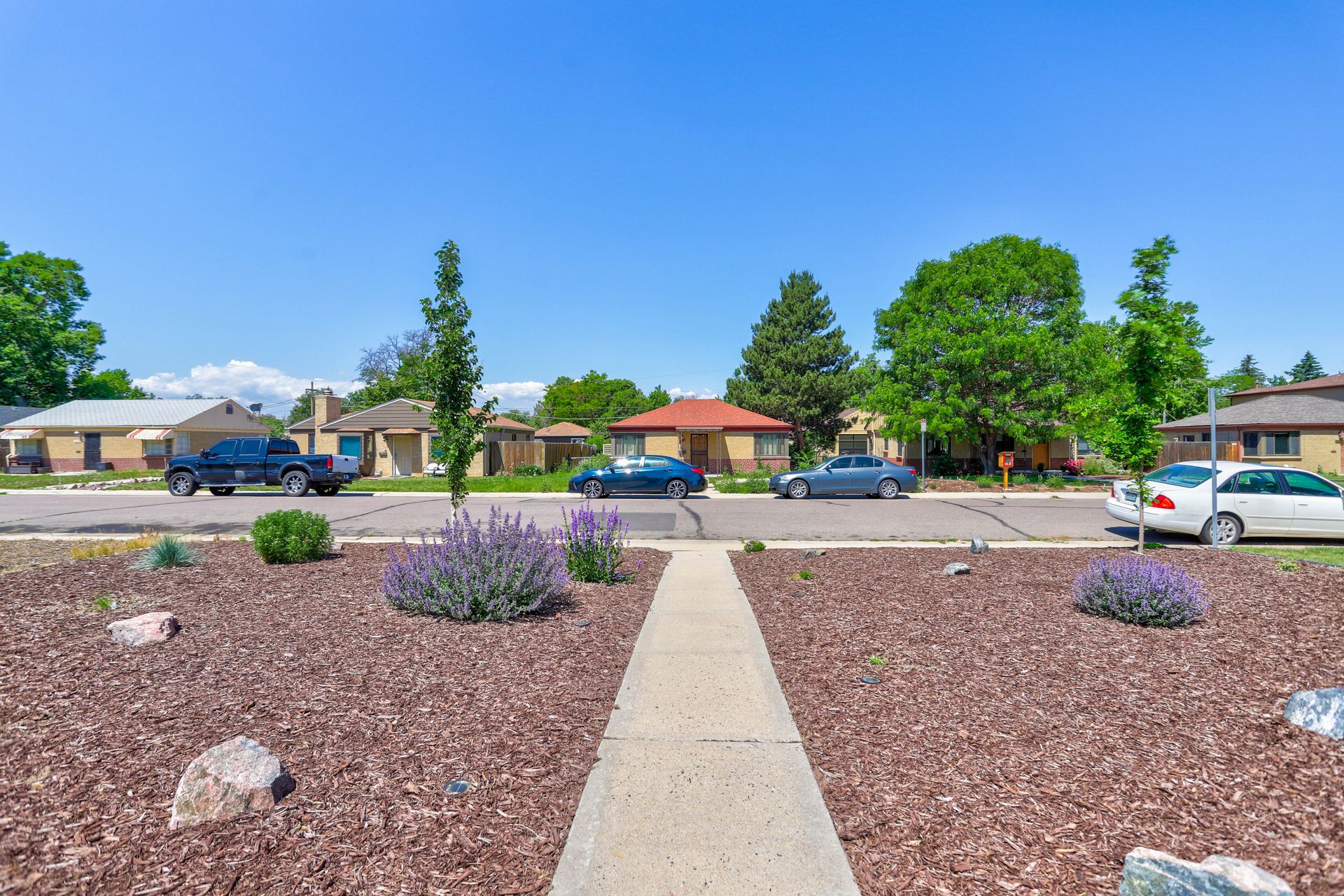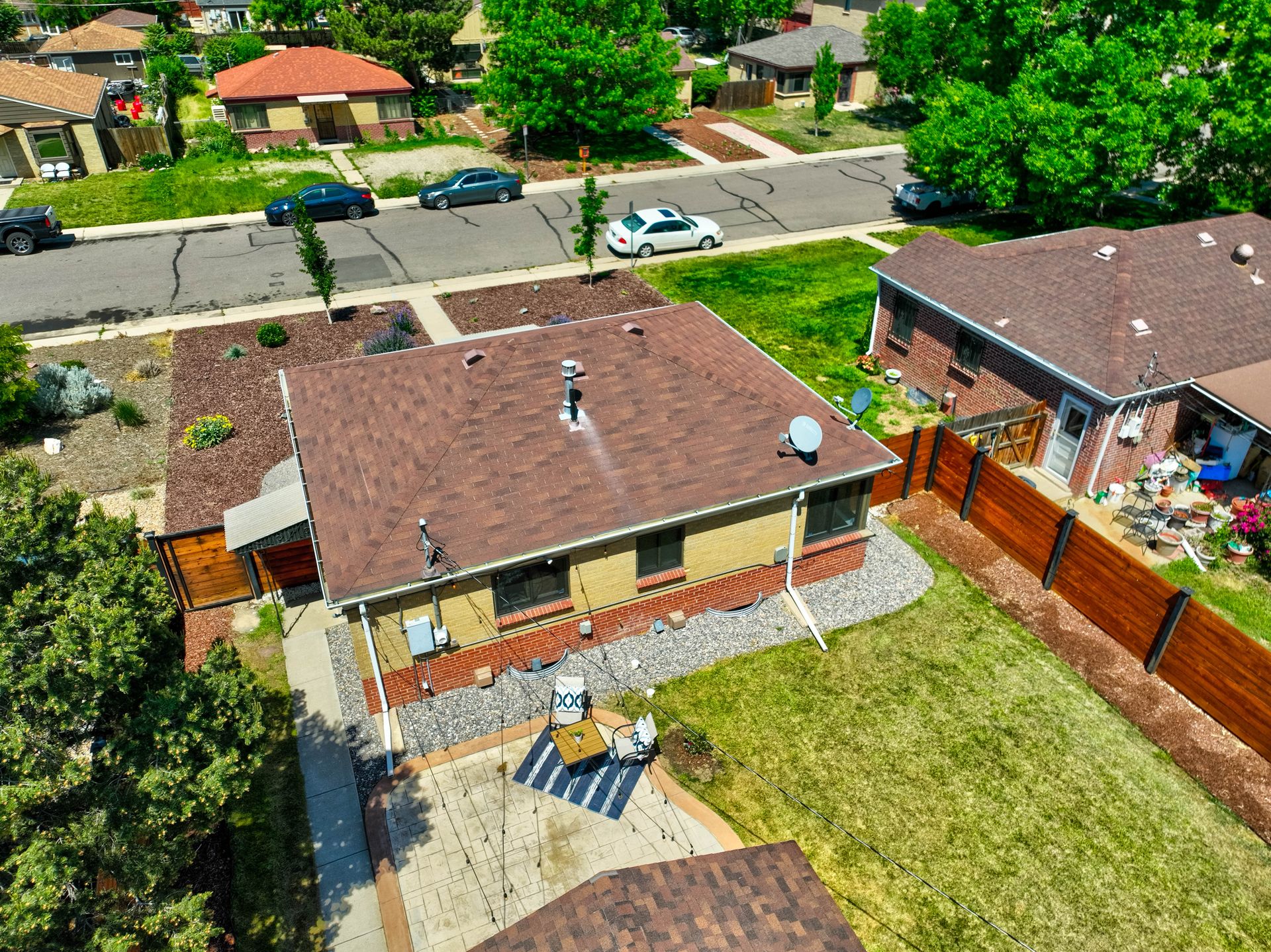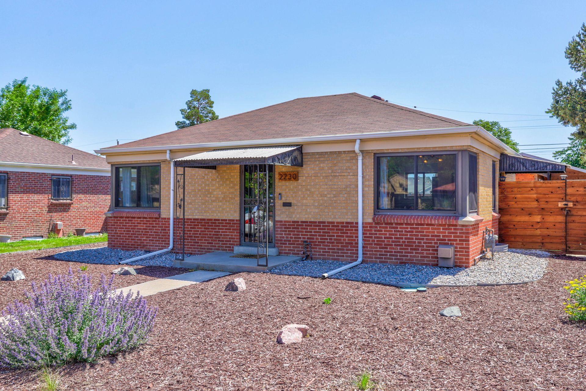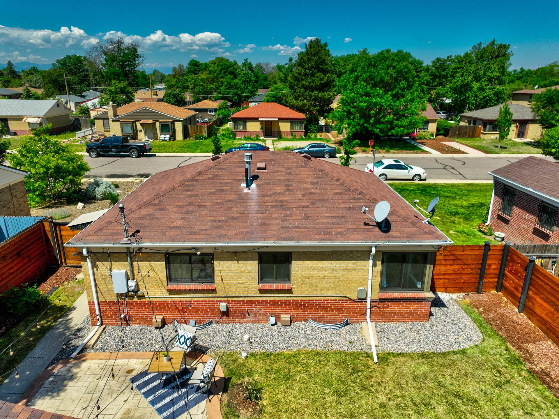 Welcome home to this beautifully updated mid-century brick ranch home located on the southern end of Fred Thomas Park between Park Hill and Central Park boasting four bedrooms, two full bathrooms and an expansive backyard. The front of the property features a newly finished xeriscaped yard with water-conscious plants and trees. In the backyard, a stamped concrete patio is lined with bistro lights that lead you to the finished studio space with glass French doors that is attached to the two-car garage. The yard is protected by a beautifully stained cedar fence with an integrated electronic gate and a pad perfect for any extra or recreational vehicles.