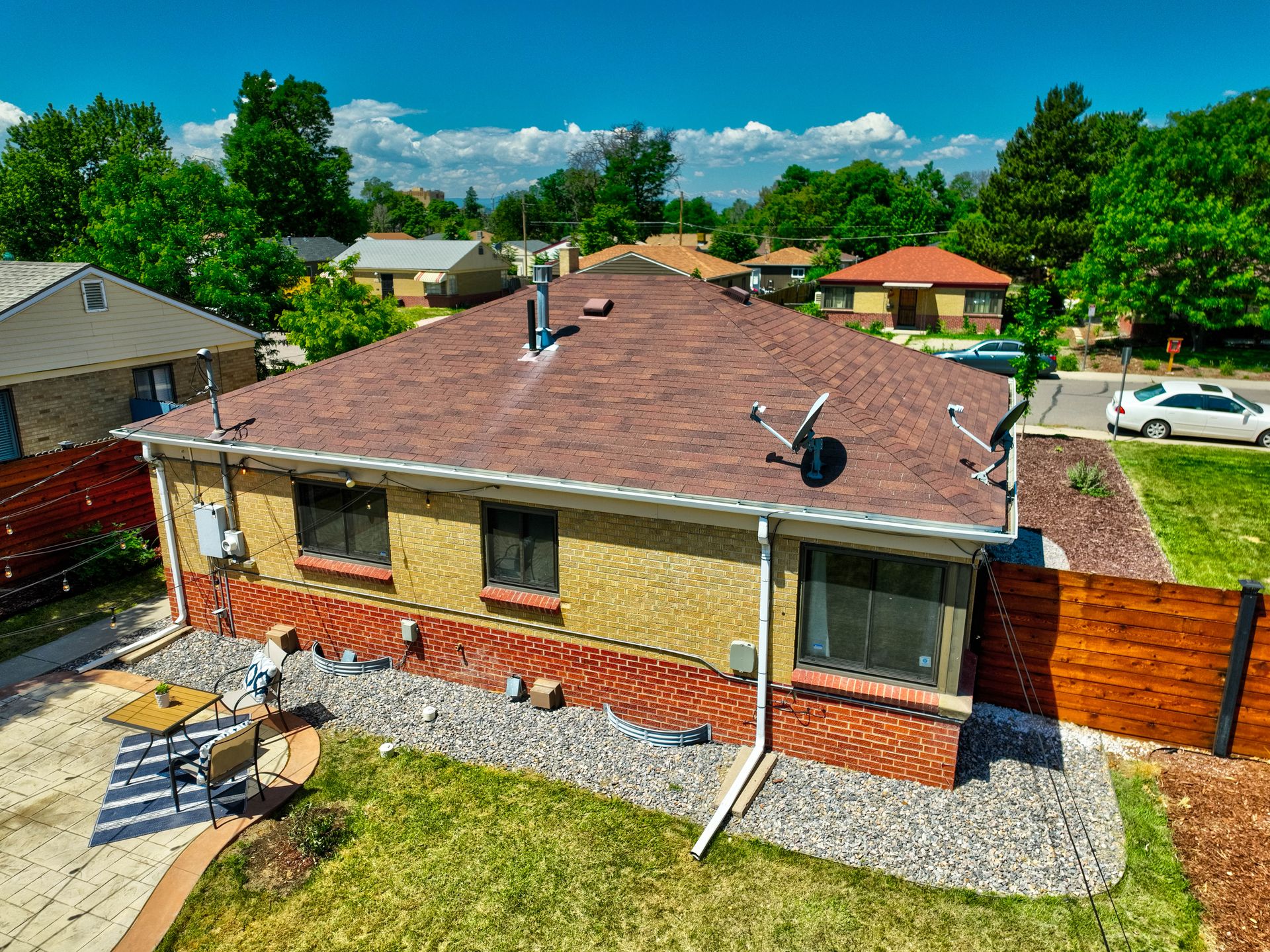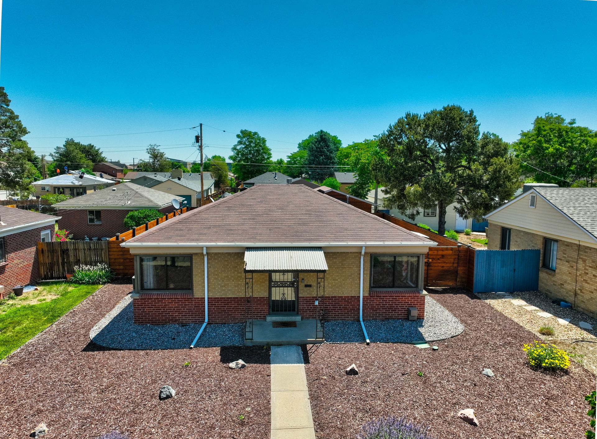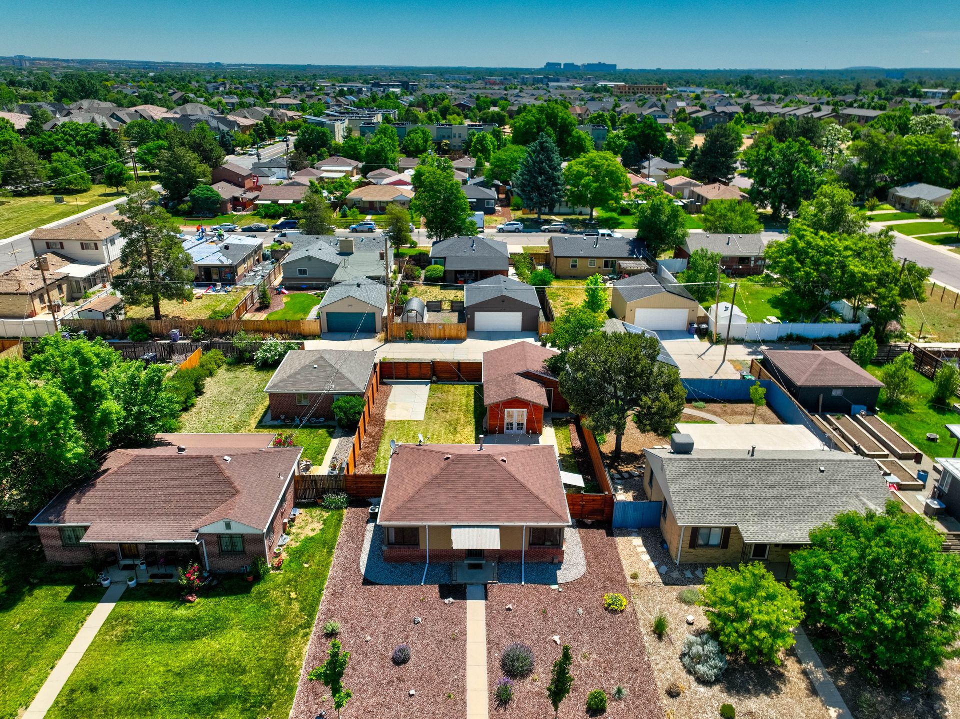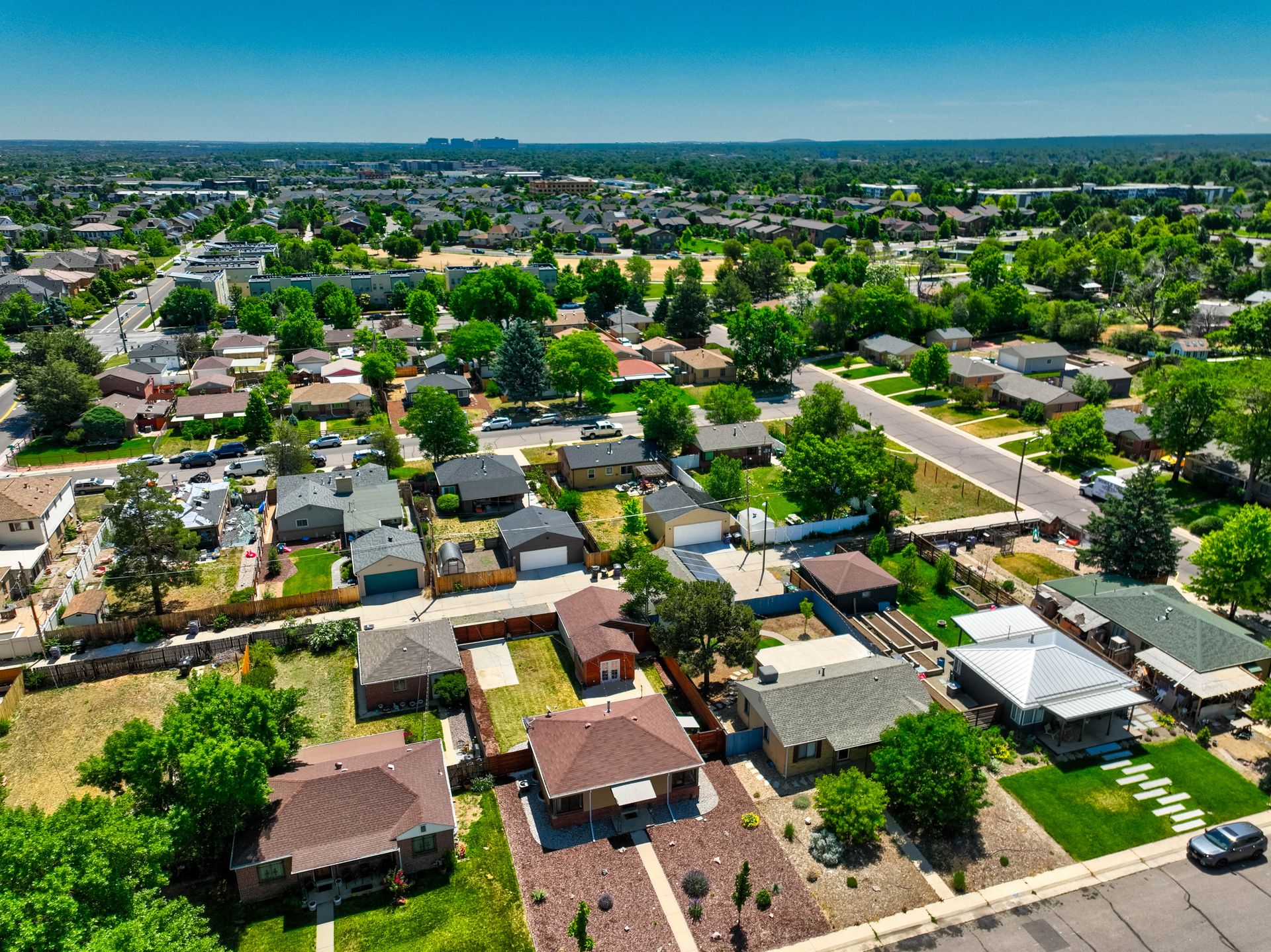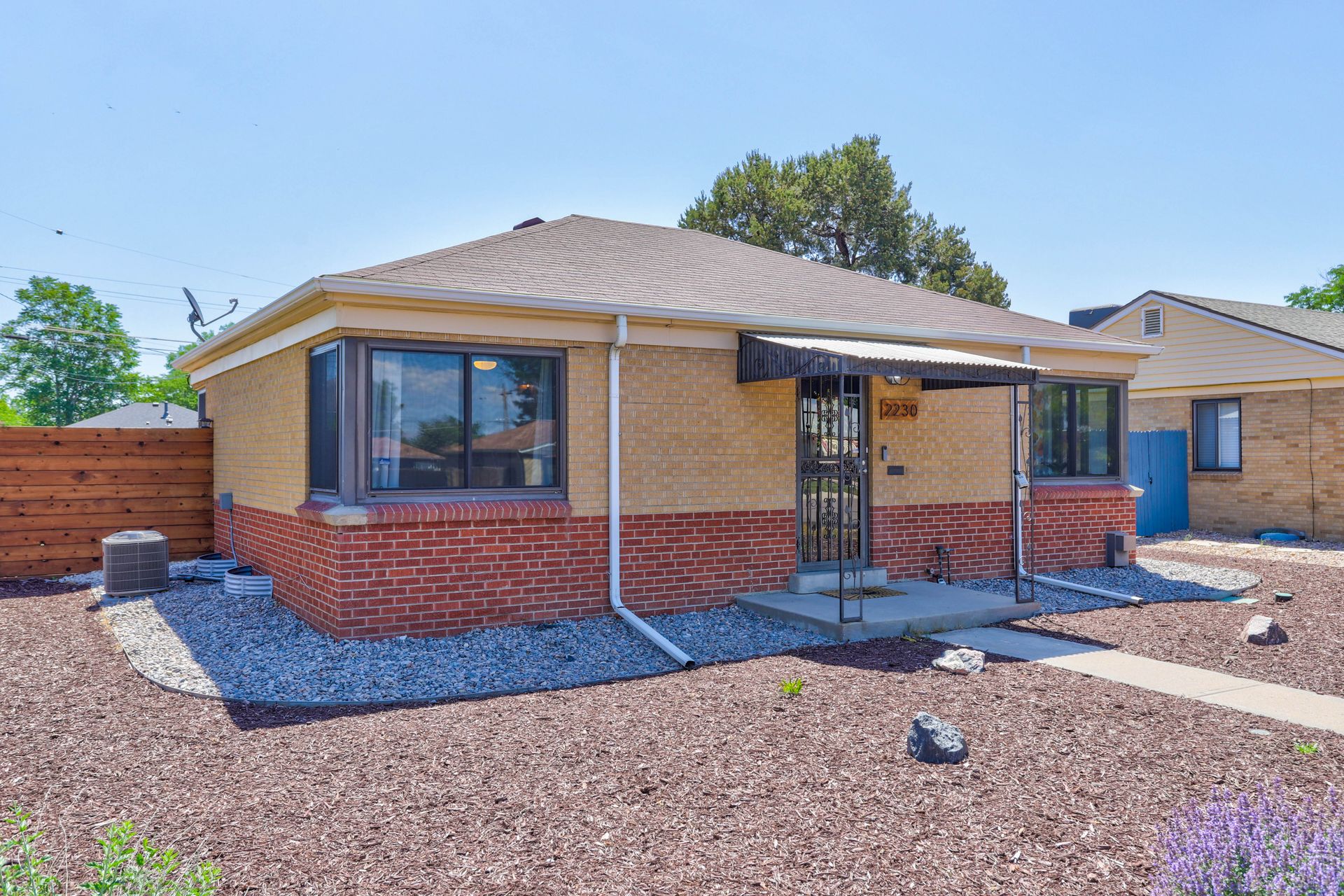 Welcome home to this beautifully updated mid-century brick ranch home located on the southern end of Fred Thomas Park between Park Hill and Central Park boasting four bedrooms, two full bathrooms and an expansive backyard. The front of the property features a newly finished xeriscaped yard with water-conscious plants and trees. In the backyard, a stamped concrete patio is lined with bistro lights that lead you to the finished studio space with glass French doors that is attached to the two-car garage. The yard is protected by a beautifully stained cedar fence with an integrated electronic gate and a pad perfect for any extra or recreational vehicles.