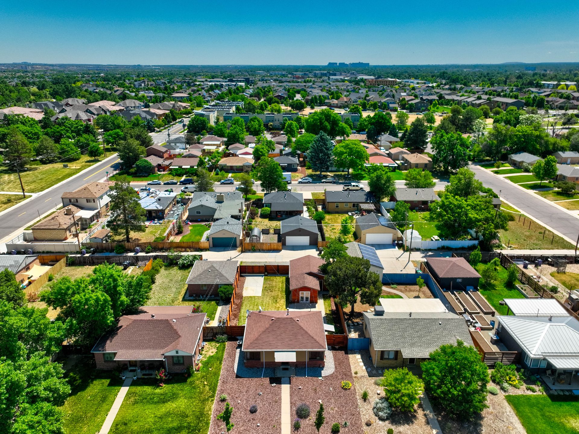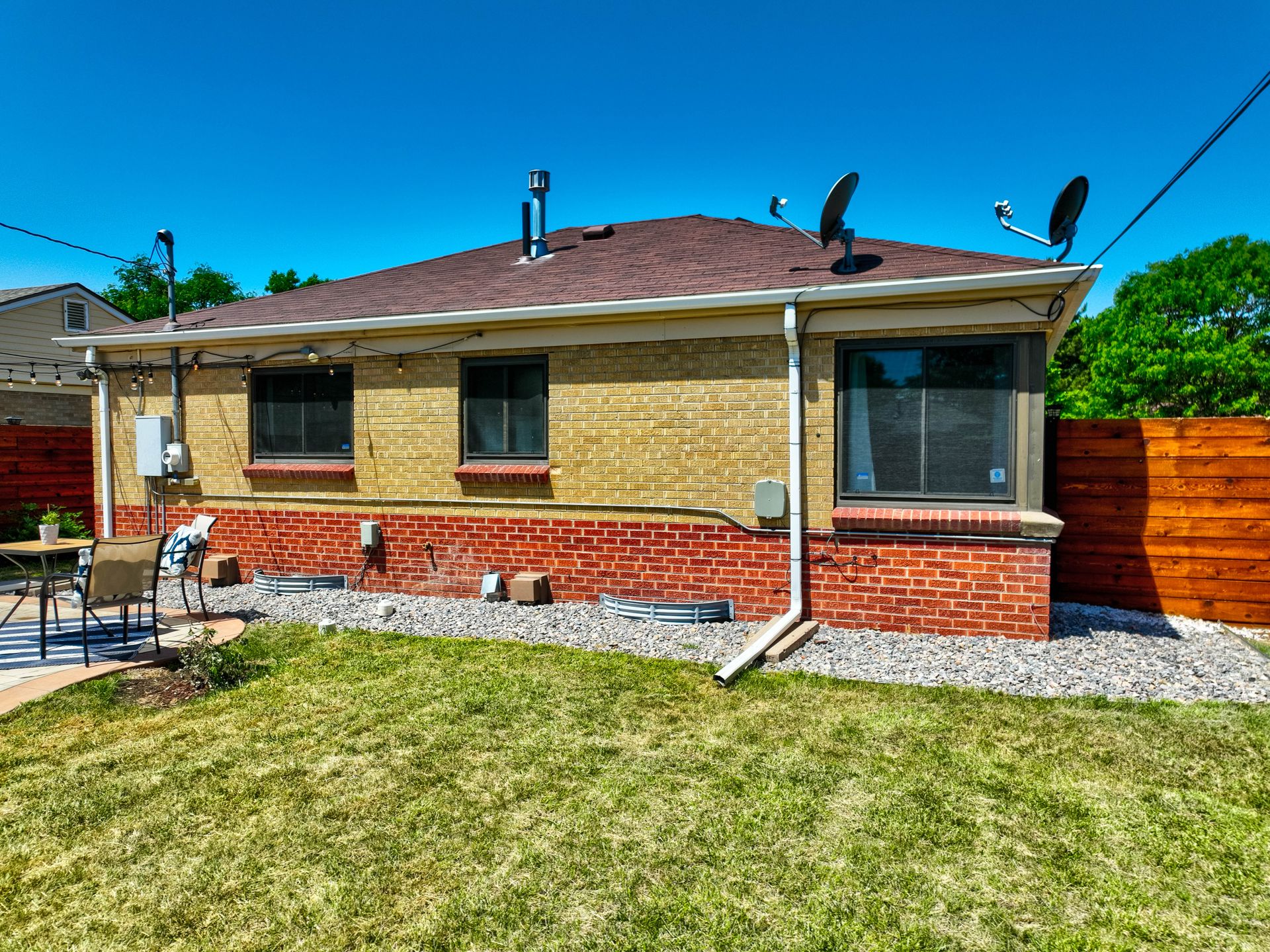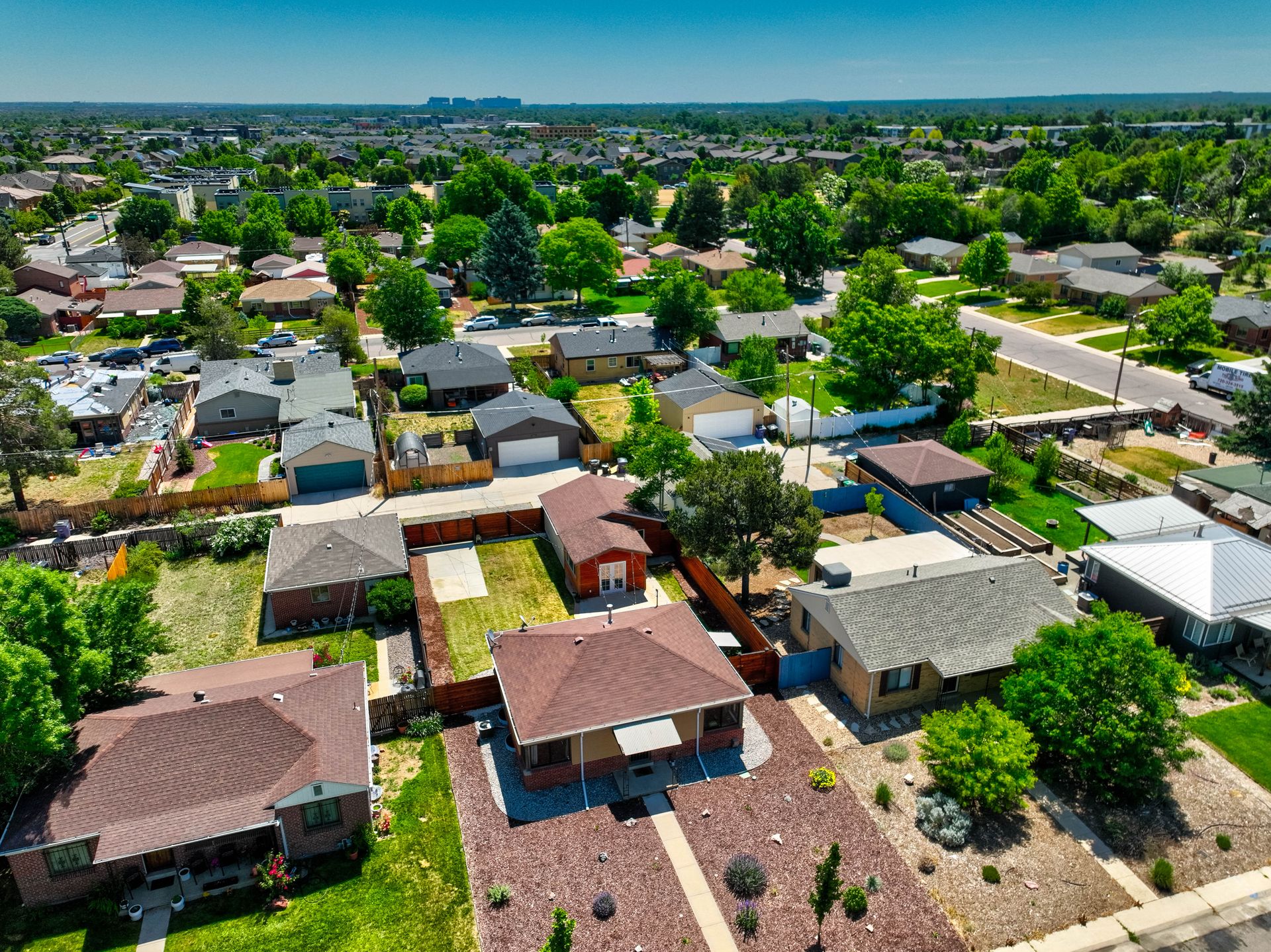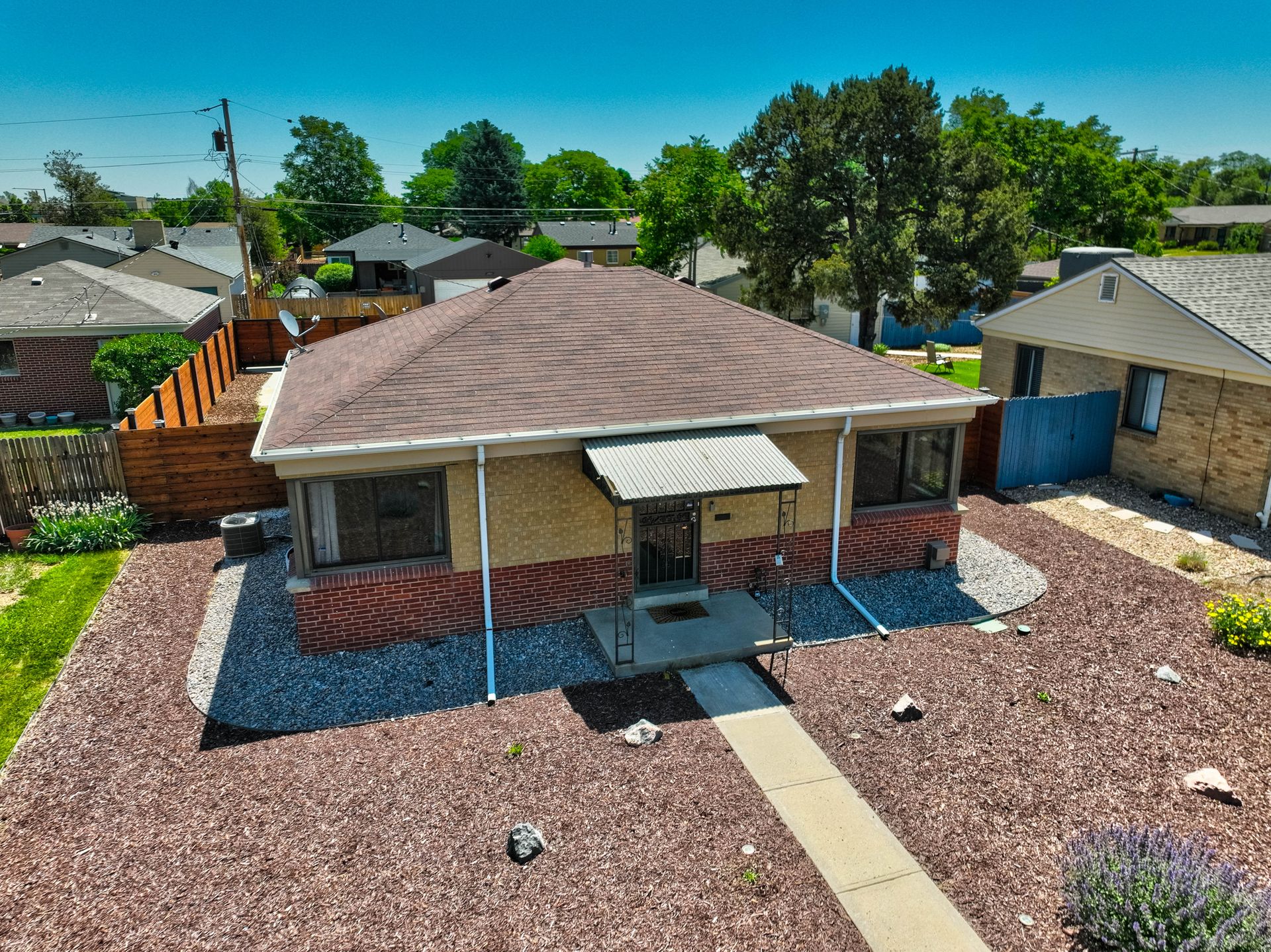 Welcome home to this beautifully updated mid-century brick ranch home located on the southern end of Fred Thomas Park between Park Hill and Central Park boasting four bedrooms, two full bathrooms and an expansive backyard. The front of the property features a newly finished xeriscaped yard with water-conscious plants and trees. In the backyard, a stamped concrete patio is lined with bistro lights that lead you to the finished studio space with glass French doors that is attached to the two-car garage. The yard is protected by a beautifully stained cedar fence with an integrated electronic gate and a pad perfect for any extra or recreational vehicles.