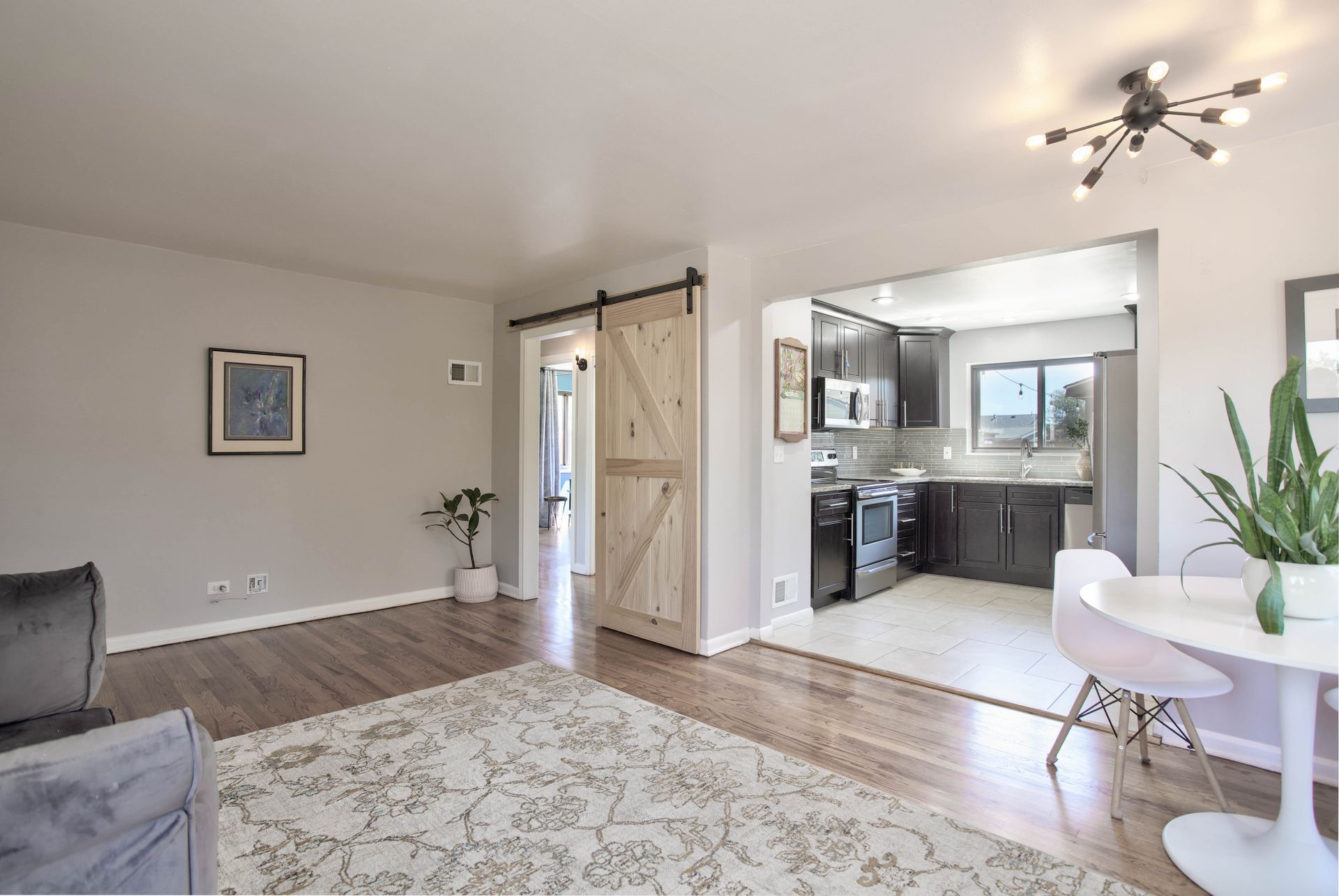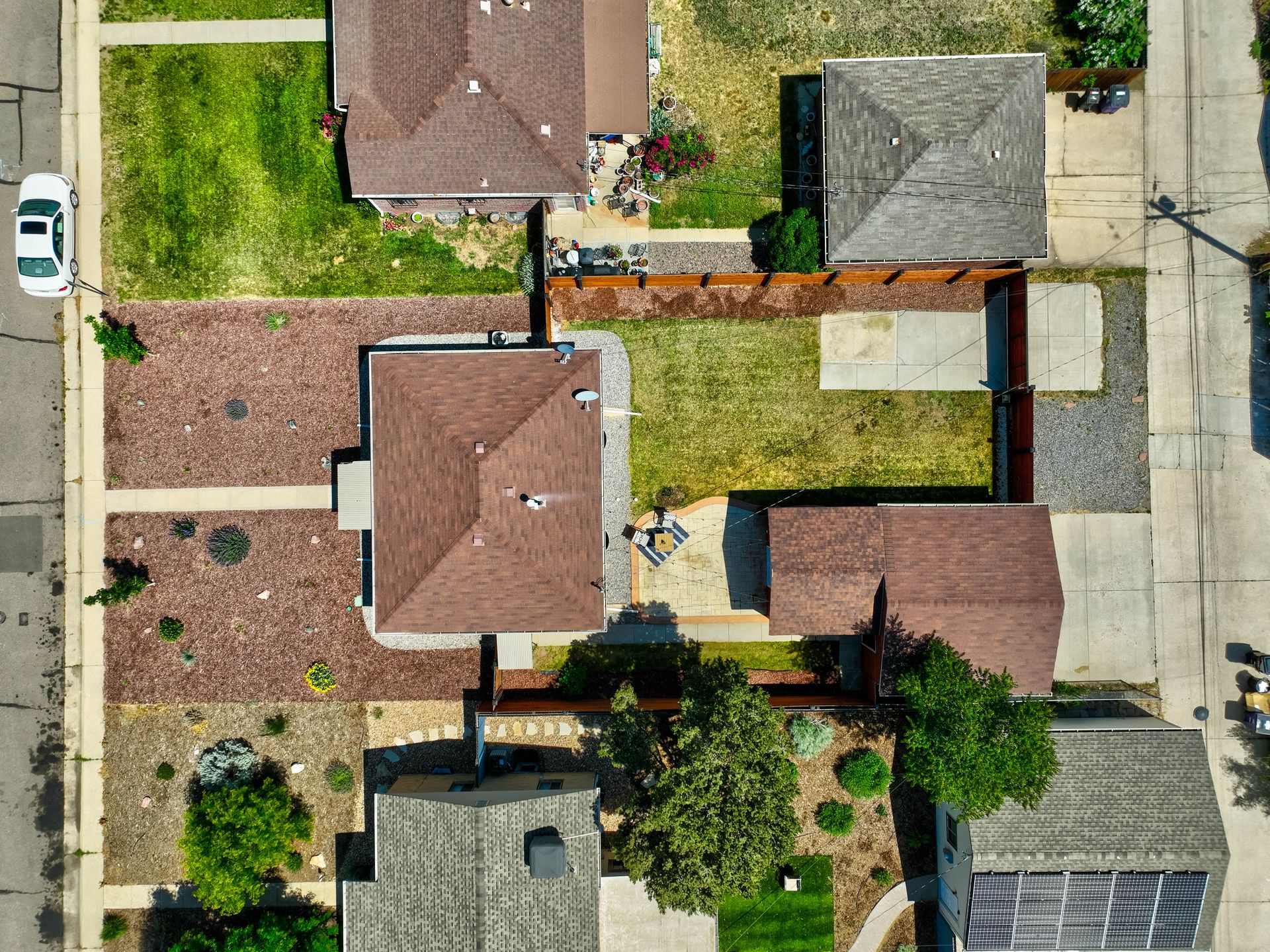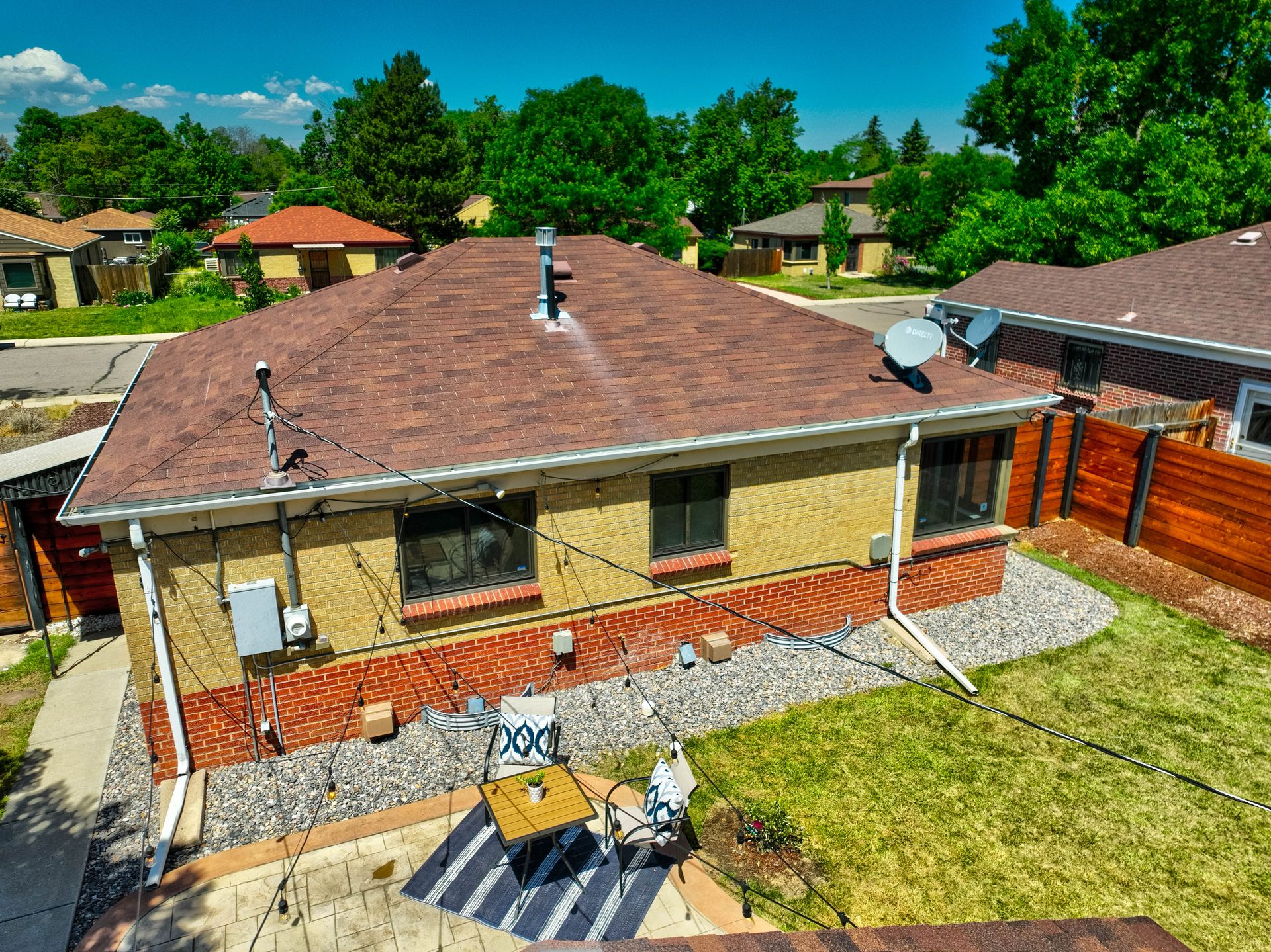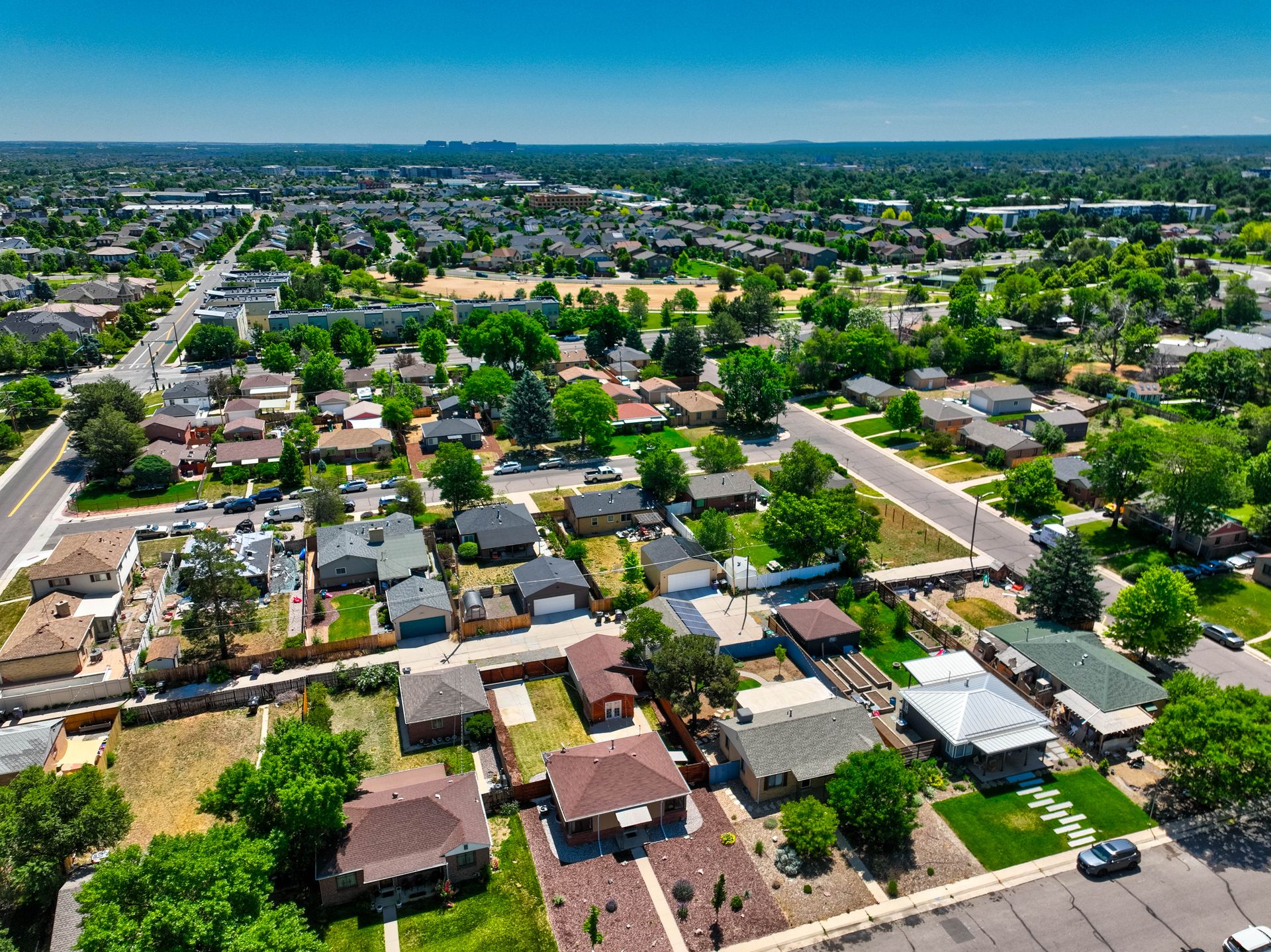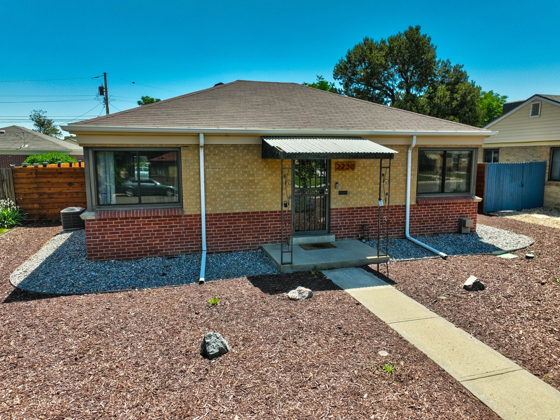 Welcome home to this beautifully updated mid-century brick ranch home located on the southern end of Fred Thomas Park between Park Hill and Central Park boasting four bedrooms, two full bathrooms and an expansive backyard. The front of the property features a newly finished xeriscaped yard with water-conscious plants and trees. In the backyard, a stamped concrete patio is lined with bistro lights that lead you to the finished studio space with glass French doors that is attached to the two-car garage. The yard is protected by a beautifully stained cedar fence with an integrated electronic gate and a pad perfect for any extra or recreational vehicles.