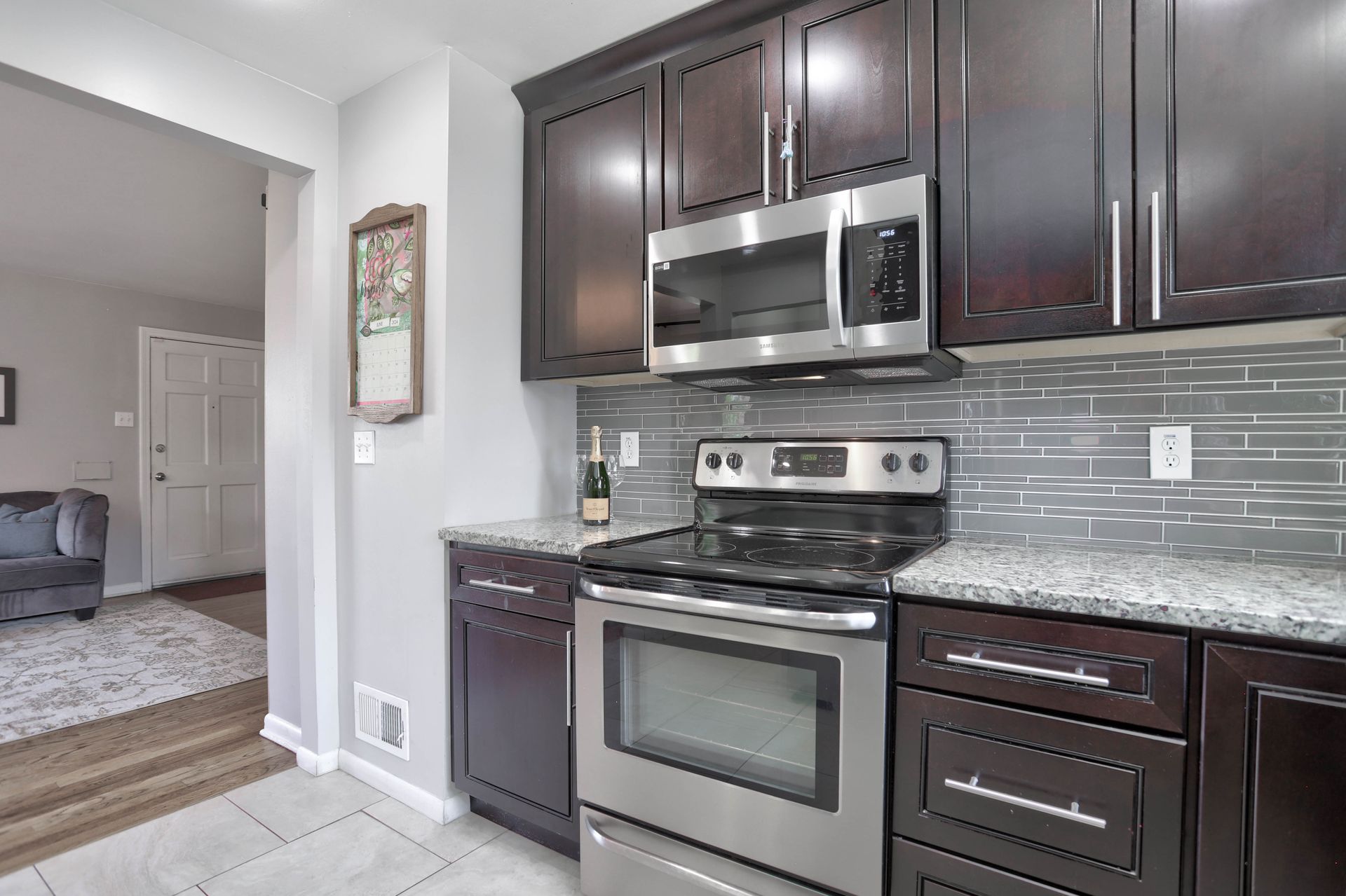 Inside, you'll find red oak hardwood floors throughout the main living area and bedrooms and an updated kitchen with granite countertops and stainless steel appliances. The freshly painted basement has a large family room, two bedrooms and a full bath.