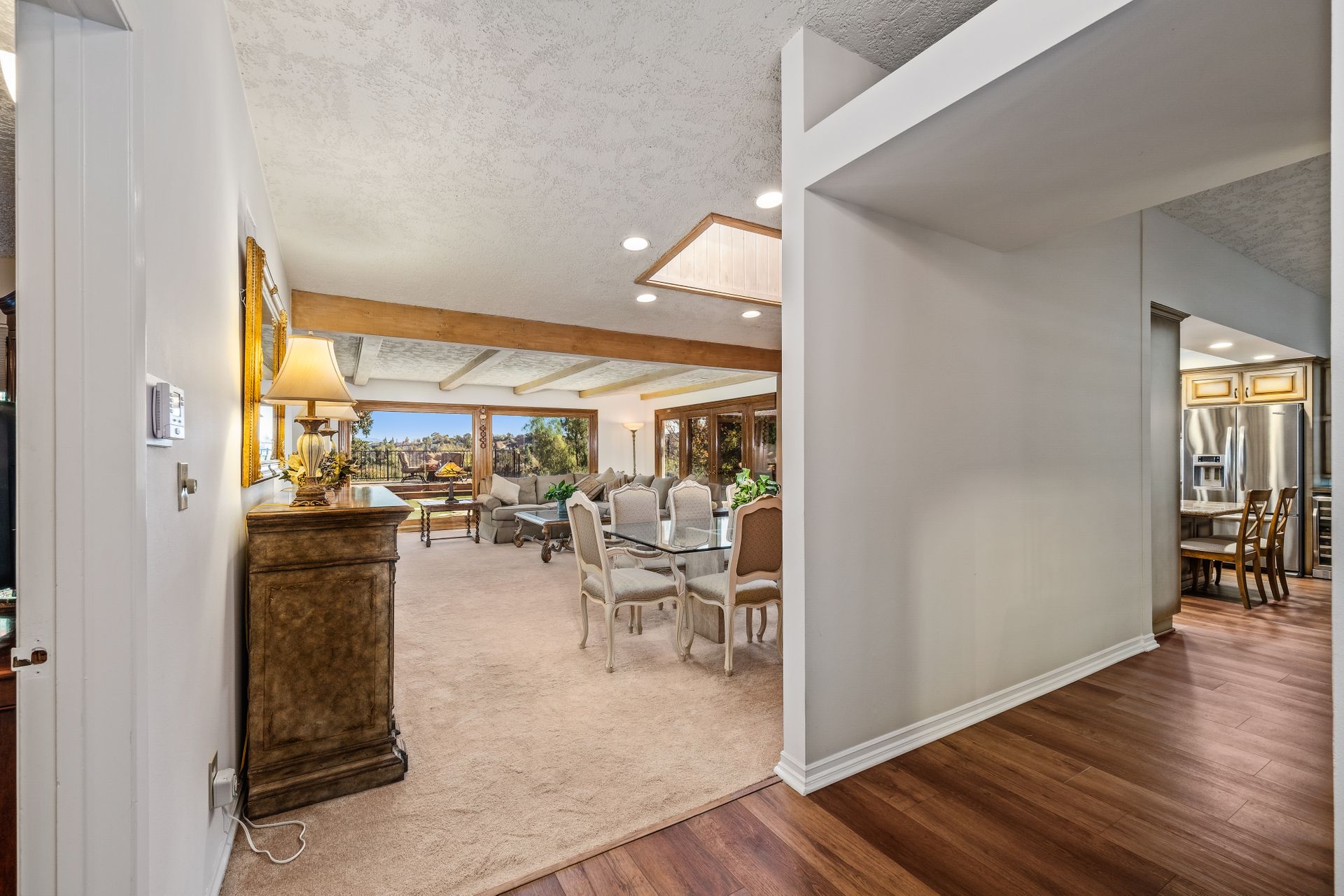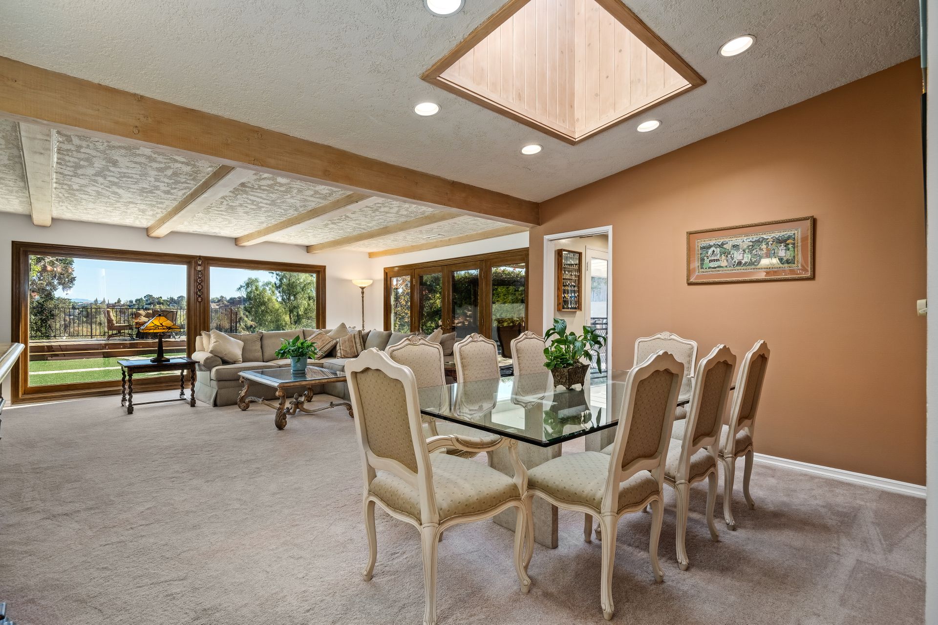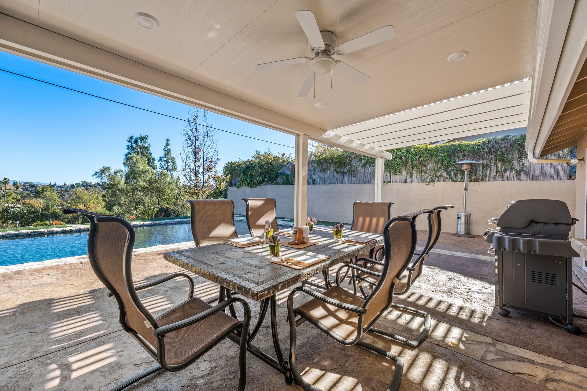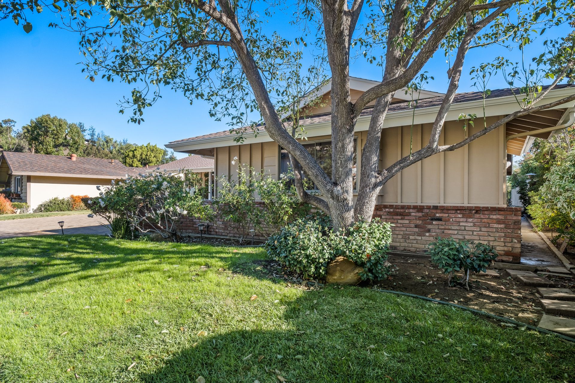 Location , Location, Location is what they say about the most important rules of REAL ESTATE. This beautiful " mid century " a meticulous single story home located on a quiet cul-de-sac is on one of the most desirable streets in Woodland Hills. Featuring over 2100 sq. ft open floor plan with 3 bedrooms and 2 bathrooms on an entertainers VIEW lot. Newer patio overhang, electrical panel, roof, air and heating, water heater and textured ceilings , so many recent improvements to mention ! Upon entry from the foyer you will find a wall of windows allowing for an abundance amount of natural light to flow through and overlooking AREA VIEWS and the picturesque back yard and fountain and pool. The home has a spacious family room open to a beautiful remodeled gourmet chef's kitchen with large center island with counter seating ,viking stainless stove ,microwave, double oven, dishwasher and granite counters.On one side of the house are the 2 good sized auxiliary bedrooms and a redone bathroom/powder room with a custom vanity with a granite counter and picture like frame mirror to match adjacent to the huge walk in shower with sit down bench and inlays. The great room includes a dining area and fireplace with a rock facade, wood beams and that incredible view! Separated on the other side of the house is the generous sized master suite with lots of closet space and a big master bathroom with double sinks and sliding doors that exit to the yard. The entertainers yard has a shining recently plastered pool , grass area ,viewing deck and large patio with overhang for dining alfresco which all looks out to that VIEW!A pocket door separates the laundry room and the entry to the oversized 2 car garage. Centally located to schools , fwy and shopping . A well maintained home with lots of love.