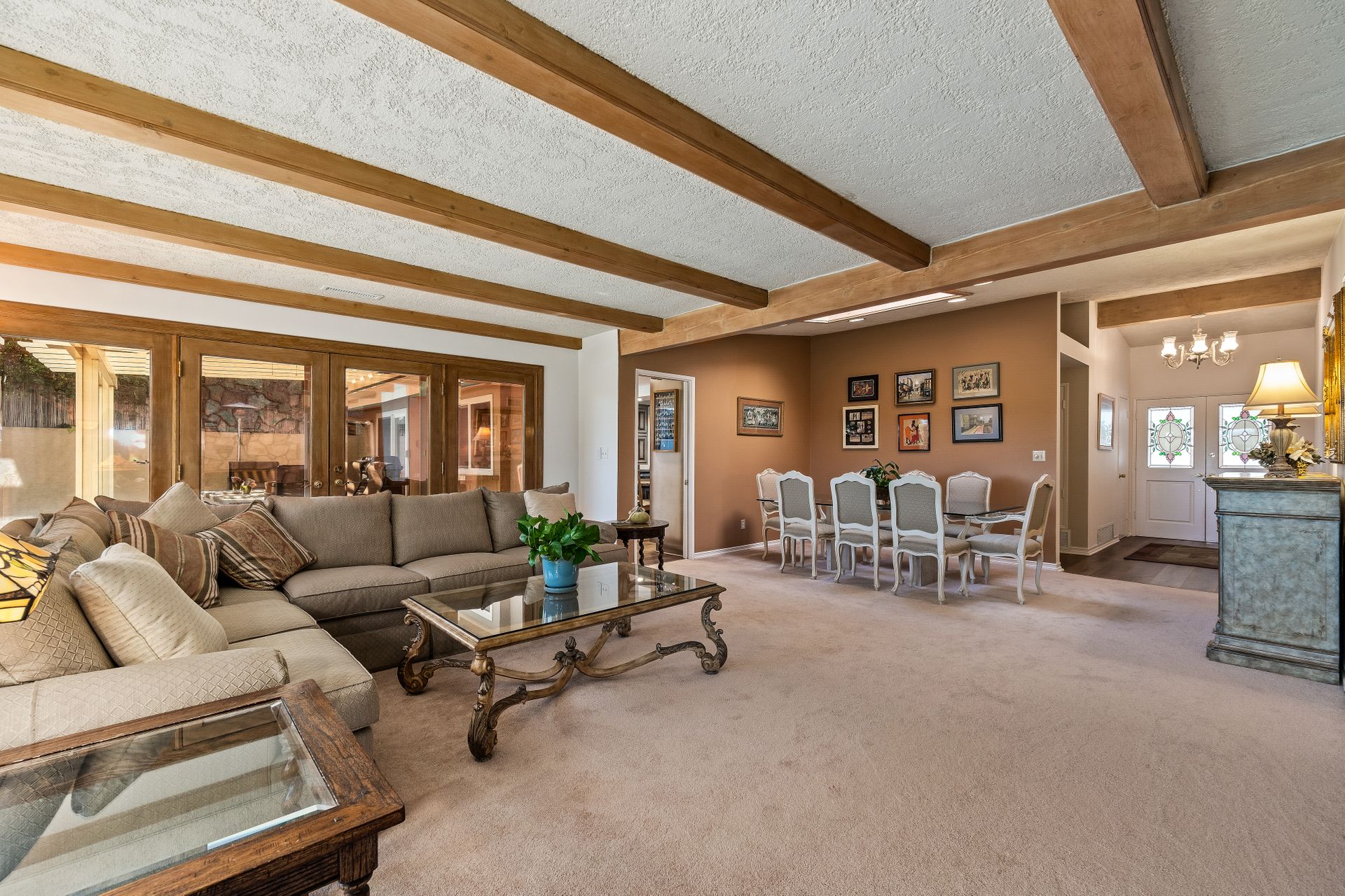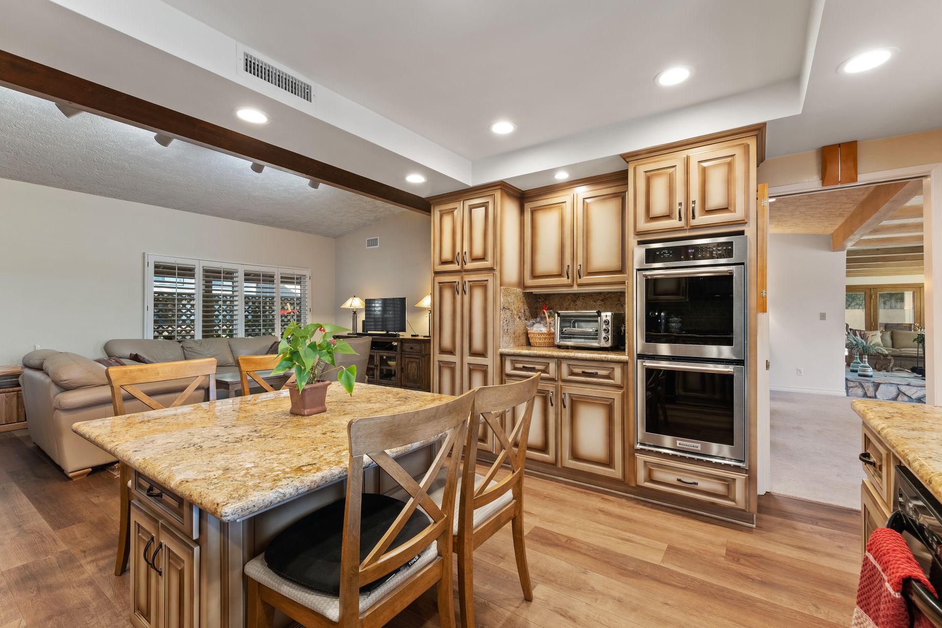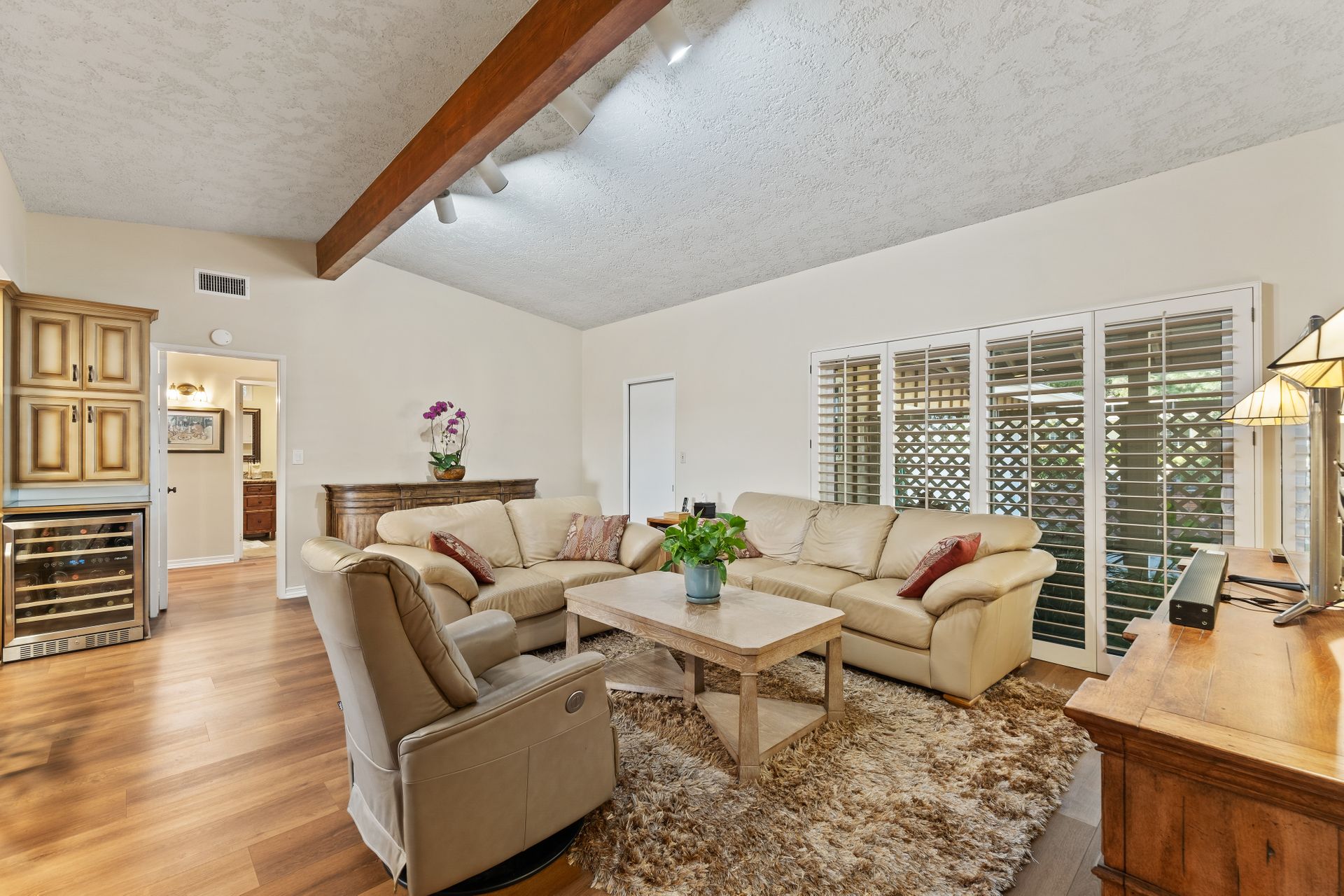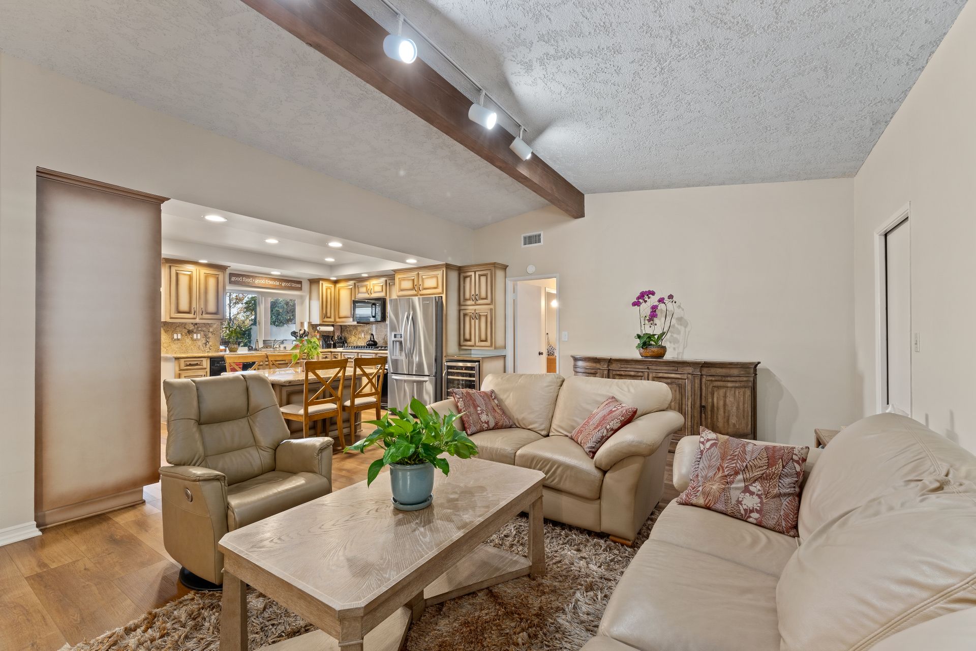 Location , Location, Location is what they say about the most important rules of REAL ESTATE. This beautiful " mid century " a meticulous single story home located on a quiet cul-de-sac is on one of the most desirable streets in Woodland Hills. Featuring over 2100 sq. ft open floor plan with 3 bedrooms and 2 bathrooms on an entertainers VIEW lot. Newer patio overhang, electrical panel, roof, air and heating, water heater and textured ceilings , so many recent improvements to mention ! Upon entry from the foyer you will find a wall of windows allowing for an abundance amount of natural light to flow through and overlooking AREA VIEWS and the picturesque back yard and fountain and pool. The home has a spacious family room open to a beautiful remodeled gourmet chef's kitchen with large center island with counter seating ,viking stainless stove ,microwave, double oven, dishwasher and granite counters.On one side of the house are the 2 good sized auxiliary bedrooms and a redone bathroom/powder room with a custom vanity with a granite counter and picture like frame mirror to match adjacent to the huge walk in shower with sit down bench and inlays. The great room includes a dining area and fireplace with a rock facade, wood beams and that incredible view! Separated on the other side of the house is the generous sized master suite with lots of closet space and a big master bathroom with double sinks and sliding doors that exit to the yard. The entertainers yard has a shining recently plastered pool , grass area ,viewing deck and large patio with overhang for dining alfresco which all looks out to that VIEW!A pocket door separates the laundry room and the entry to the oversized 2 car garage. Centally located to schools , fwy and shopping . A well maintained home with lots of love.