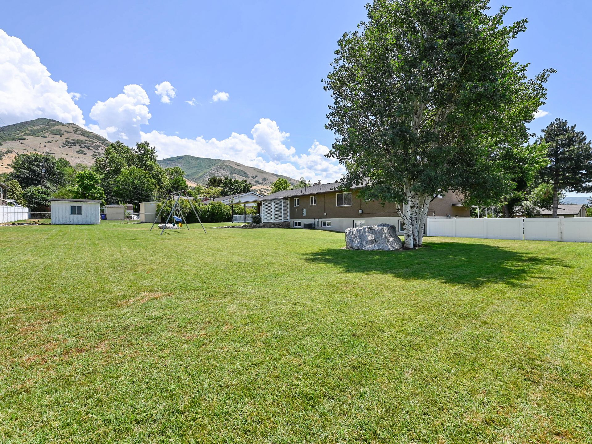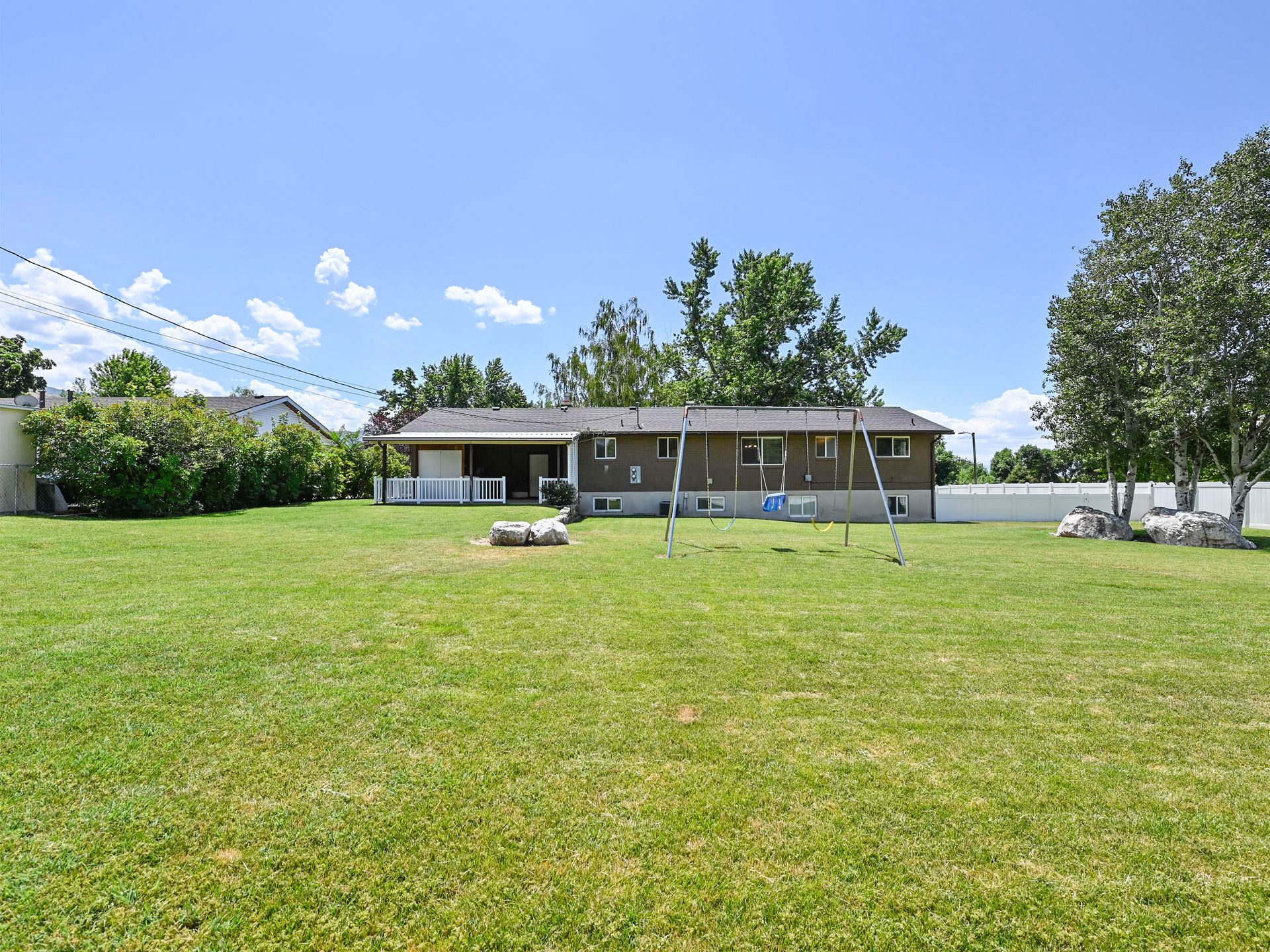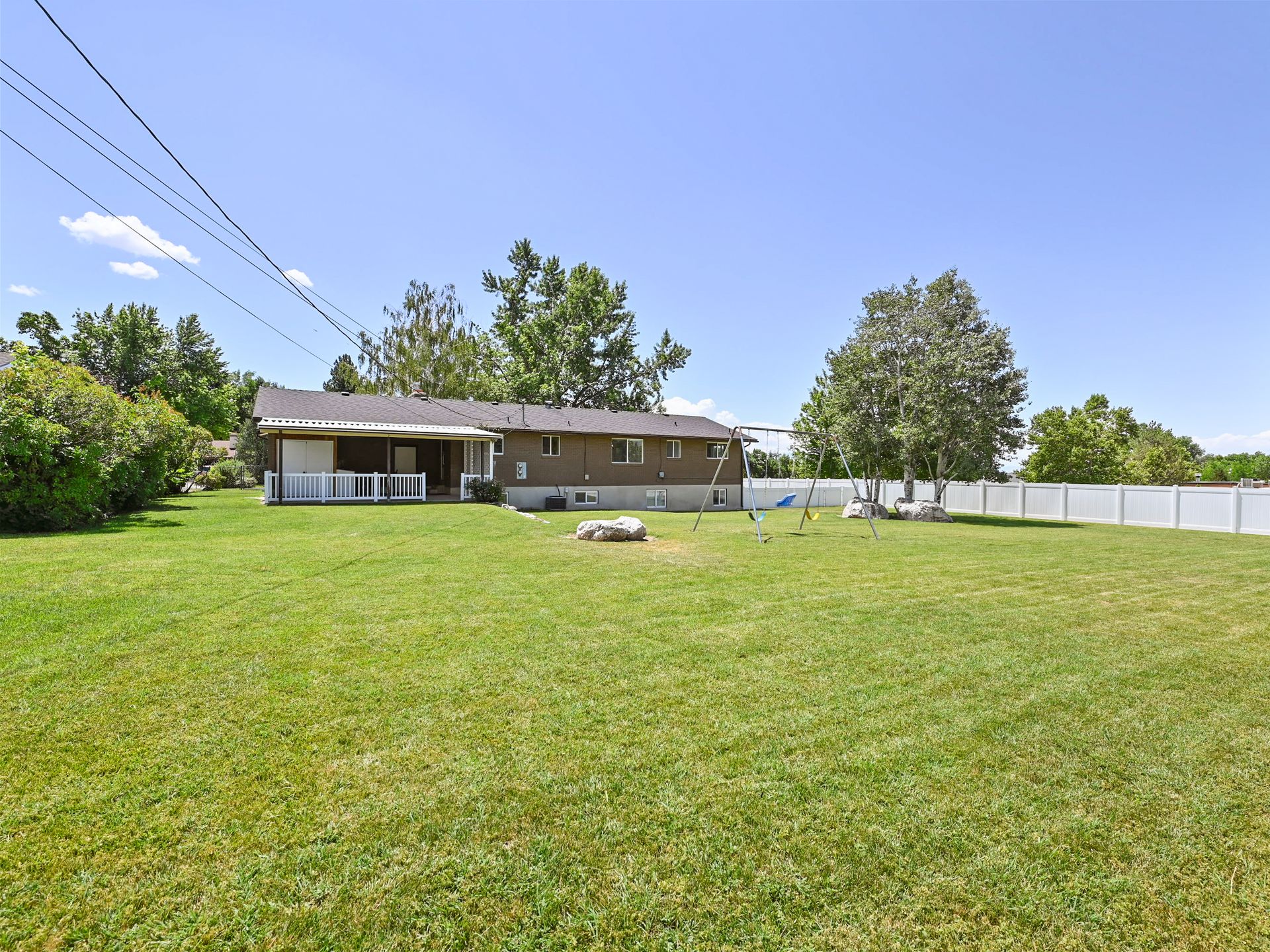 Classic all brick rambler located in the center of Centerville! This well-loved and well-maintained home is close to everything - schools, shopping, parks and is just 19 minutes from downtown Salt Lake City. Features include: Fully fenced .41 acre lot backs up to Centerville Elementary and located just East of William R Smith park. This home features a basement entrance with a mother-in-law 2 bedroom, 1 bathroom apartment. Other features include - fresh paint throughout, newer double-paned windows, 2 furnaces, 2 water heaters, 2 fireplaces, kitchen has oak cabinets and neutral countertops, main floor laundry with additional laundry in the apartment area. The Master bedroom has a large mirrored closet with an ensuite bathroom which includes a walk-in shower. Solid pine doors throughout main level and basement has an additional family room, bedroom and storage outside of apartment. Sprinkler system has a smart system controller and the backyard has a large covered patio for entertaining. Large flat lot, beautiful mature trees, and amazing mountain views!