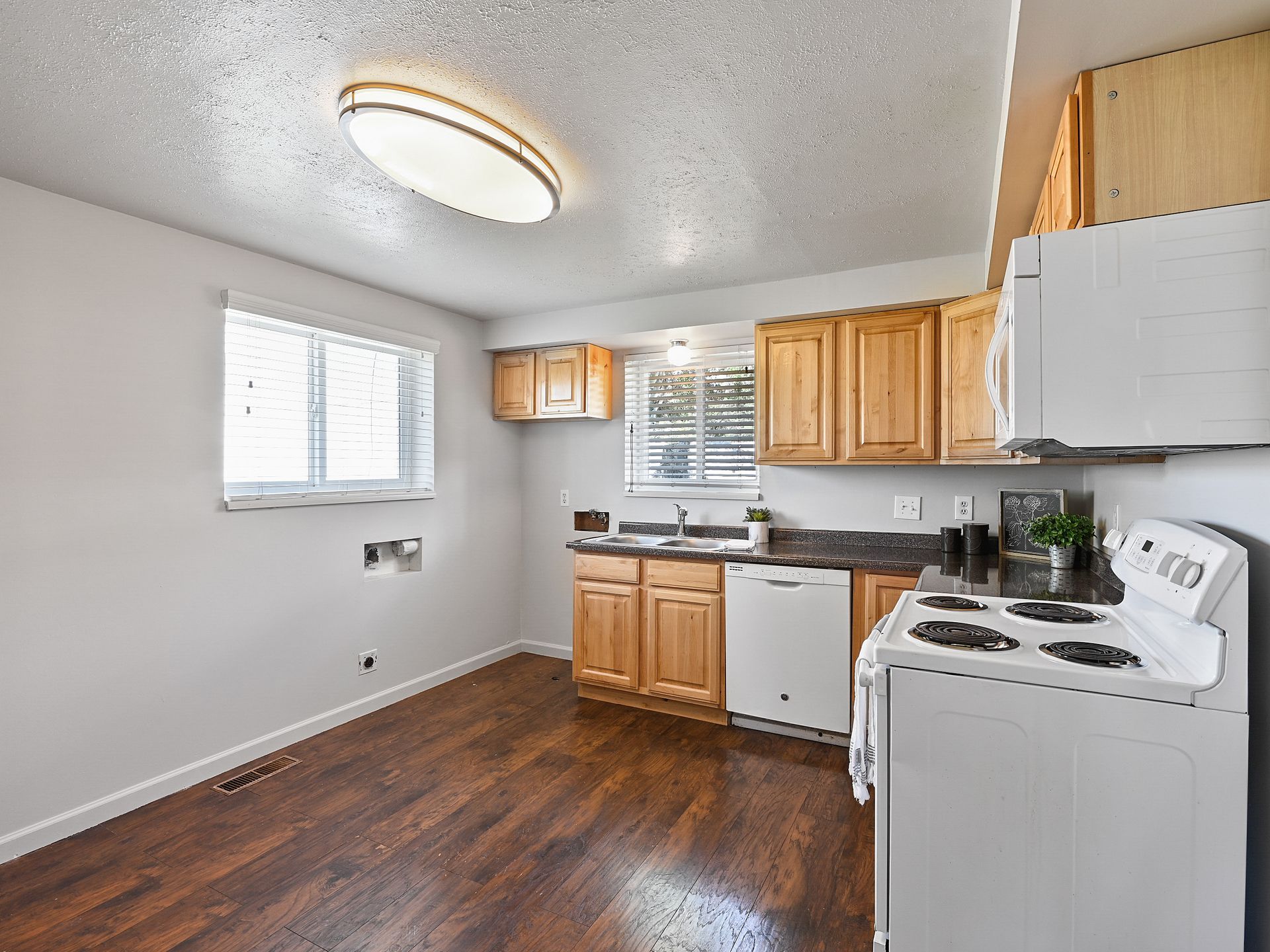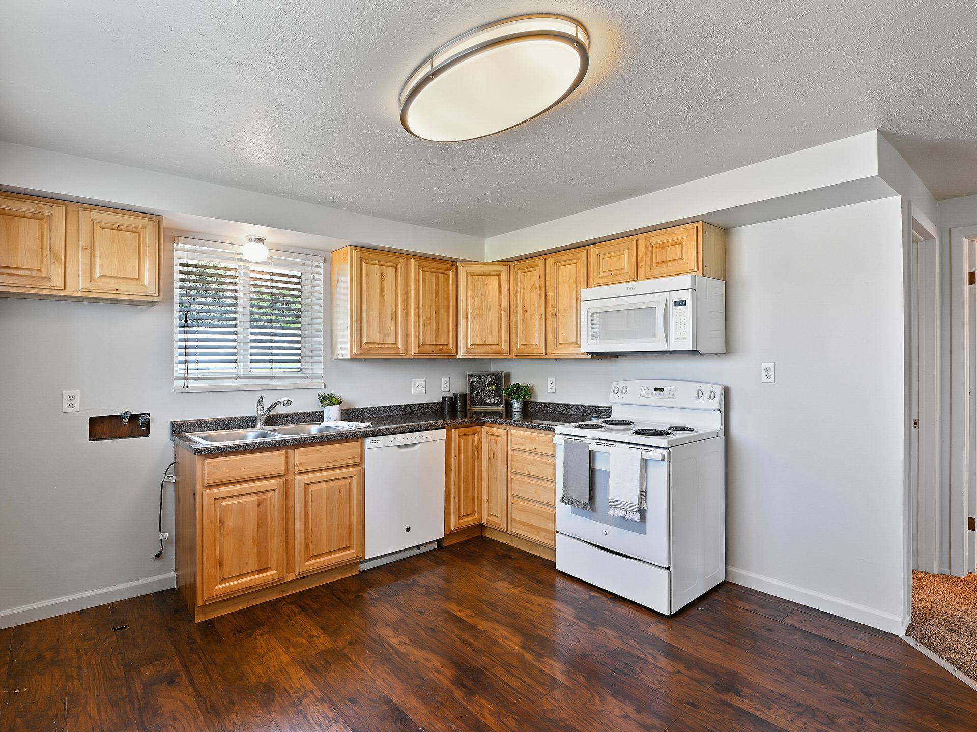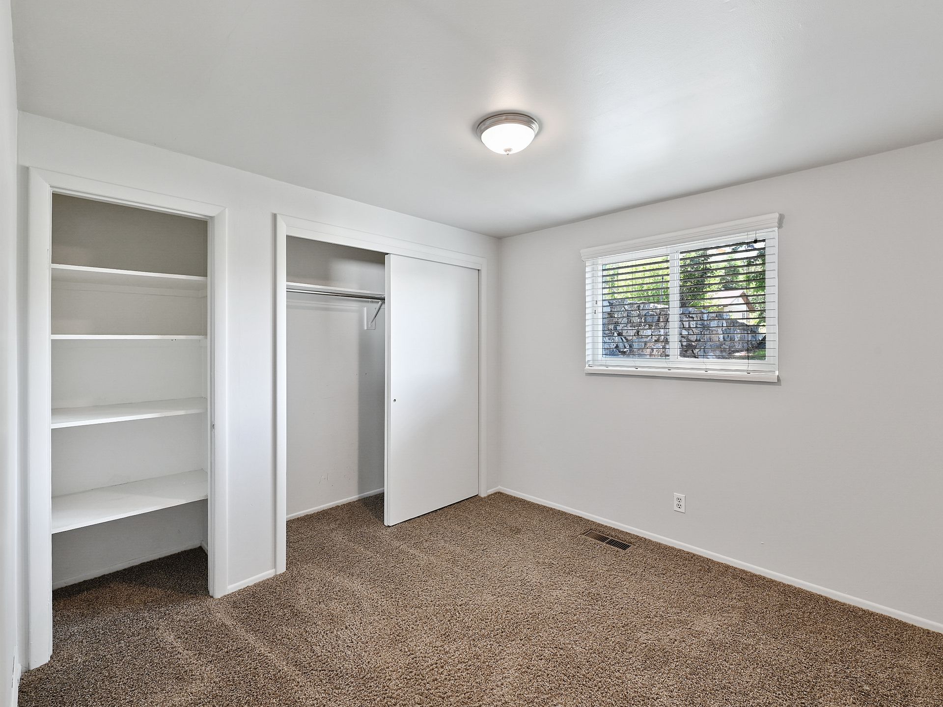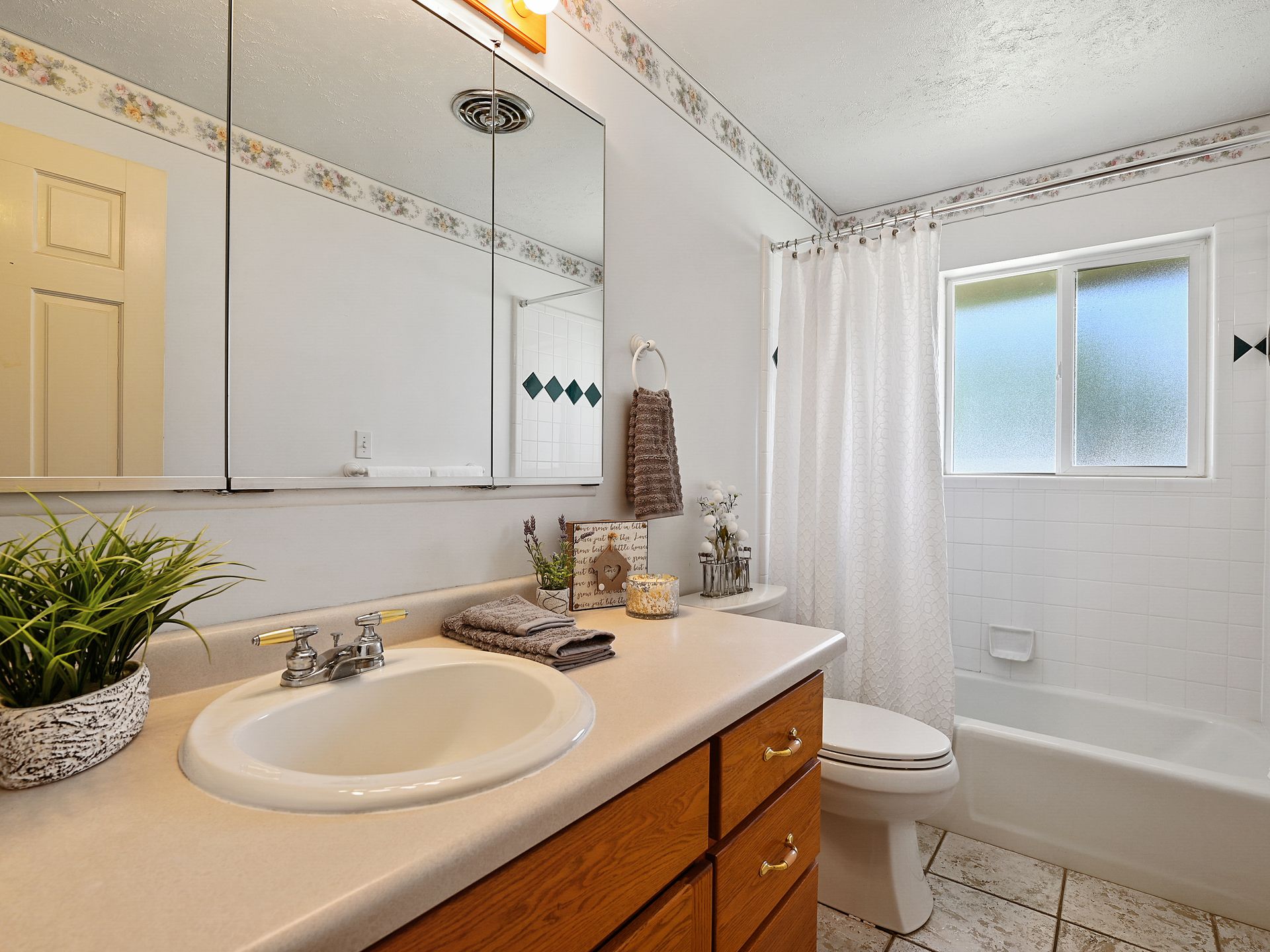 Classic all brick rambler located in the center of Centerville! This well-loved and well-maintained home is close to everything - schools, shopping, parks and is just 19 minutes from downtown Salt Lake City. Features include: Fully fenced .41 acre lot backs up to Centerville Elementary and located just East of William R Smith park. This home features a basement entrance with a mother-in-law 2 bedroom, 1 bathroom apartment. Other features include - fresh paint throughout, newer double-paned windows, 2 furnaces, 2 water heaters, 2 fireplaces, kitchen has oak cabinets and neutral countertops, main floor laundry with additional laundry in the apartment area. The Master bedroom has a large mirrored closet with an ensuite bathroom which includes a walk-in shower. Solid pine doors throughout main level and basement has an additional family room, bedroom and storage outside of apartment. Sprinkler system has a smart system controller and the backyard has a large covered patio for entertaining. Large flat lot, beautiful mature trees, and amazing mountain views!