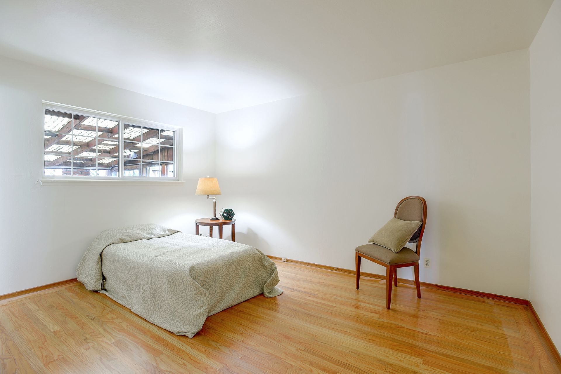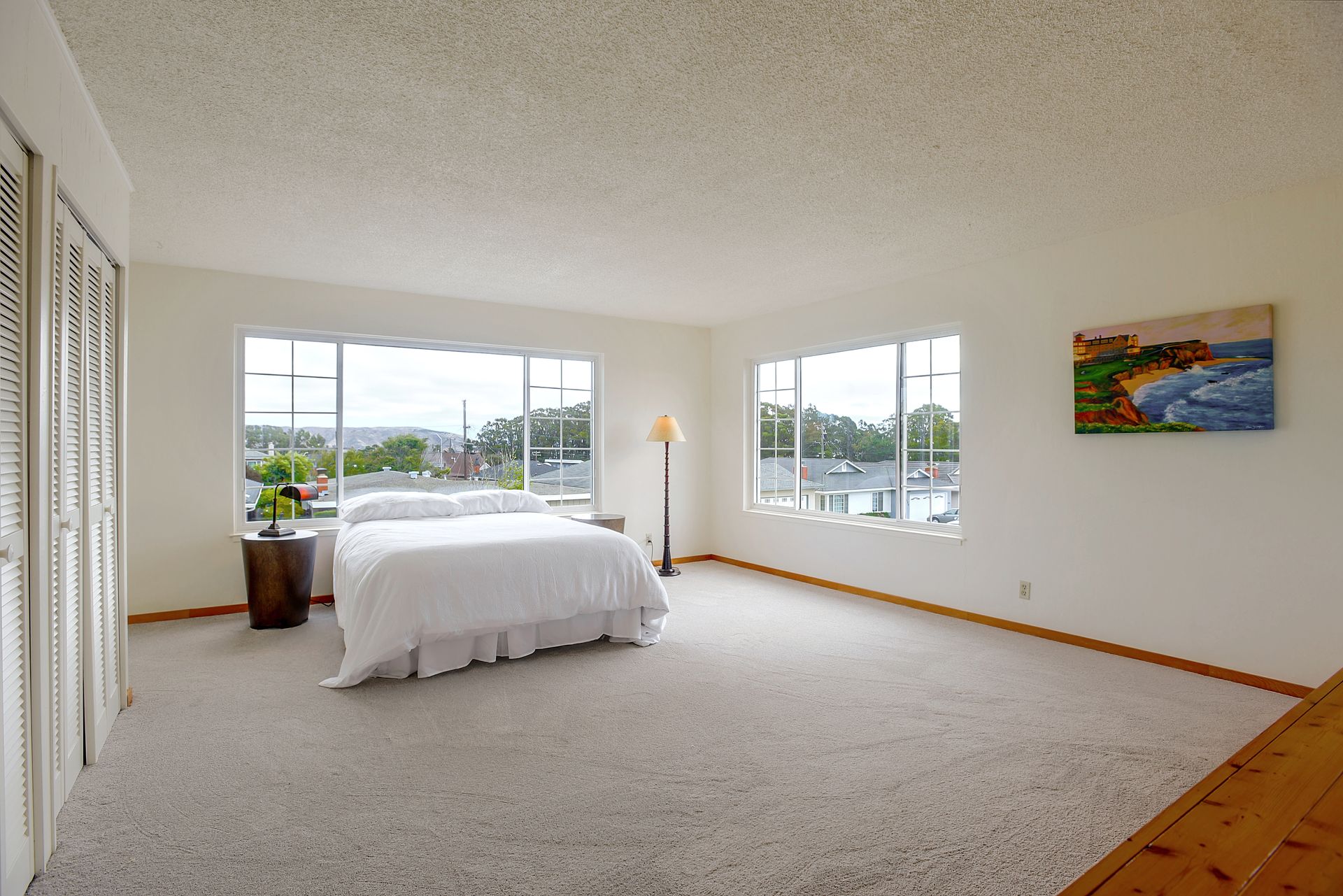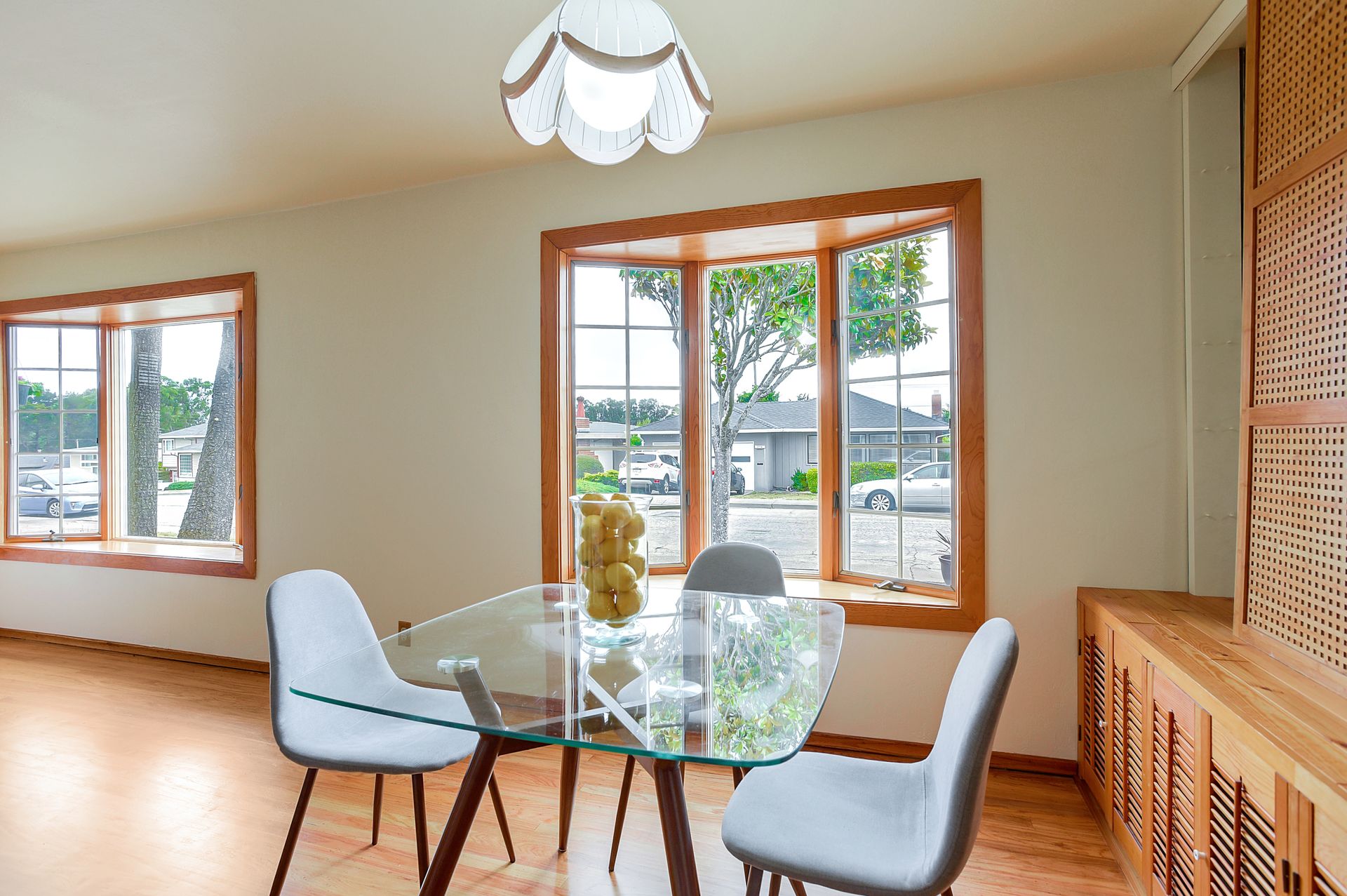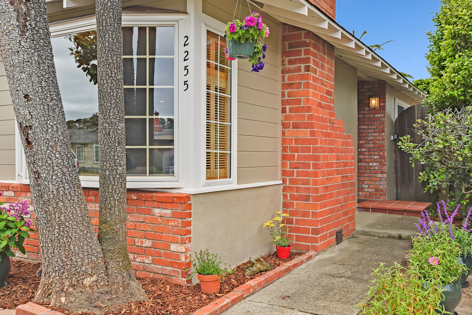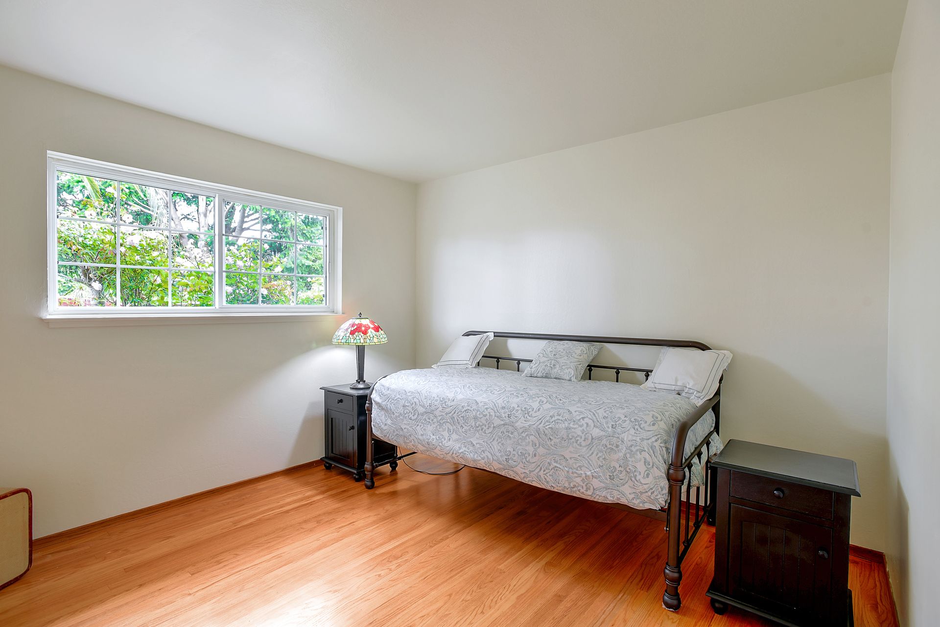This expanded ranch-style home, in a sought-after neighborhood in Crestmoor Park, features a light and bright fourth bedroom, second-story addition and a large, covered patio. The master suite bath features newly updated shower, tile and flooring. Most of the home features gleaming refinished oak flooring and the living room boasts impressive Anderson bay windows, with a warm, natural wood trim and a fireplace complete with cozy pellet stove insert. The separate fourth bedroom has newer carpet, rooftop views and windows on three sides. There is a dining area off the living room and an eat-in kitchen area opens to the covered side patio with a barbeque. A private back yard welcomes one to mature landscaping, trees, hydrangeas and more with a small water feature and a tool shed. The home is freshly painted inside and out and there are dual pane windows and central forced-air heating. Located near the beautiful San Andreas segment of the scenic Crystal Springs trail and John Muir Elementary School.