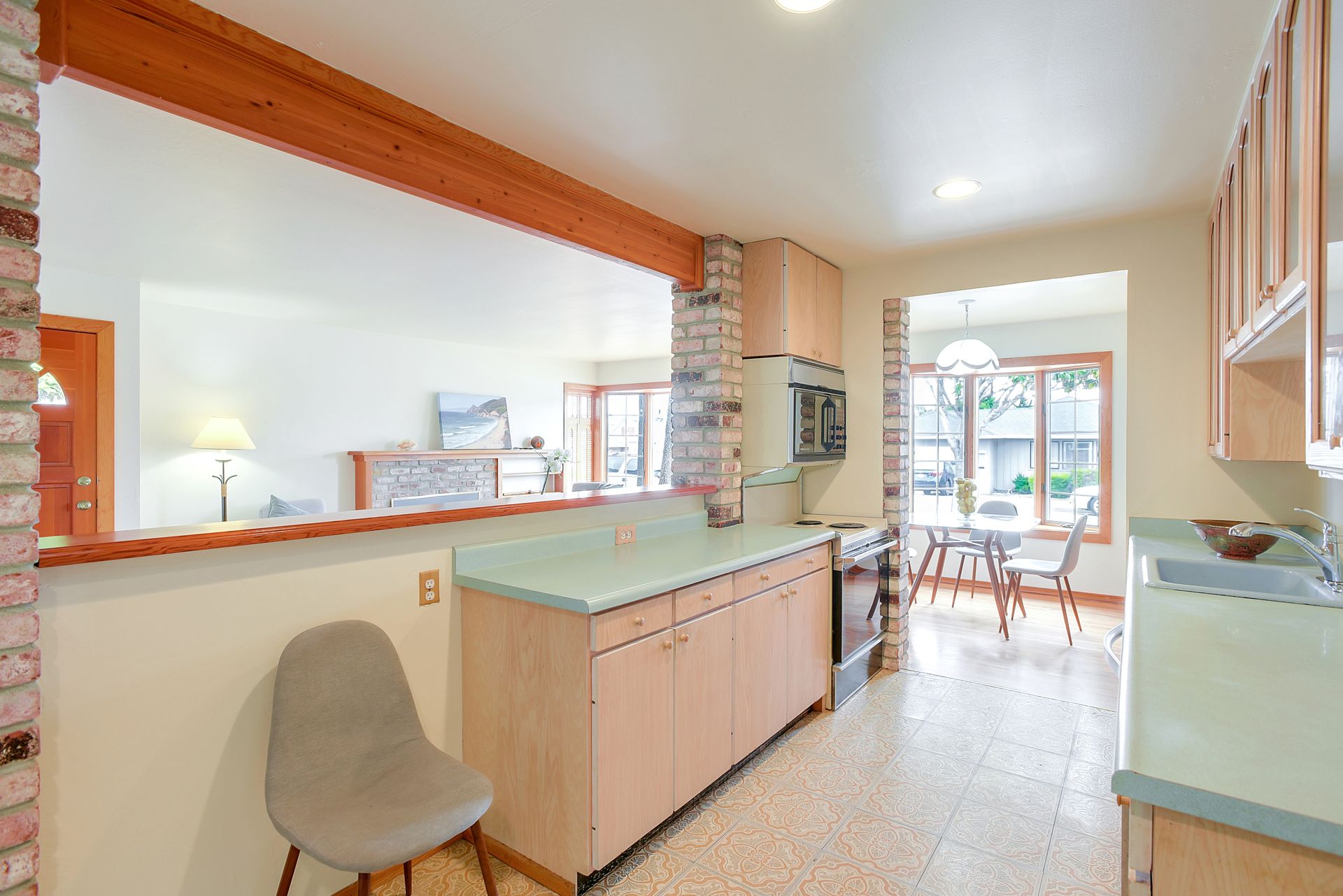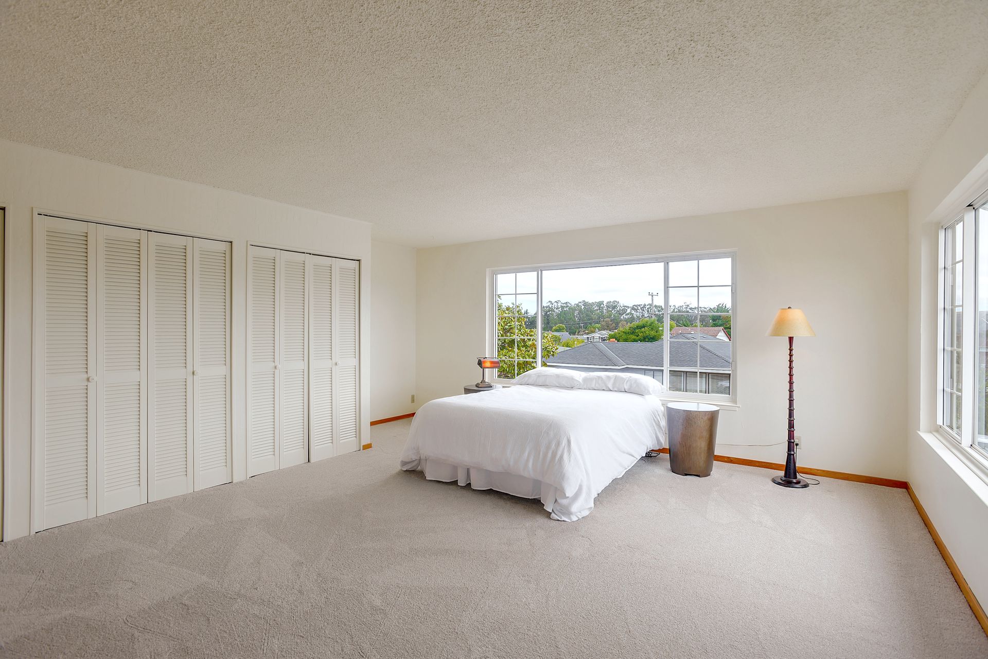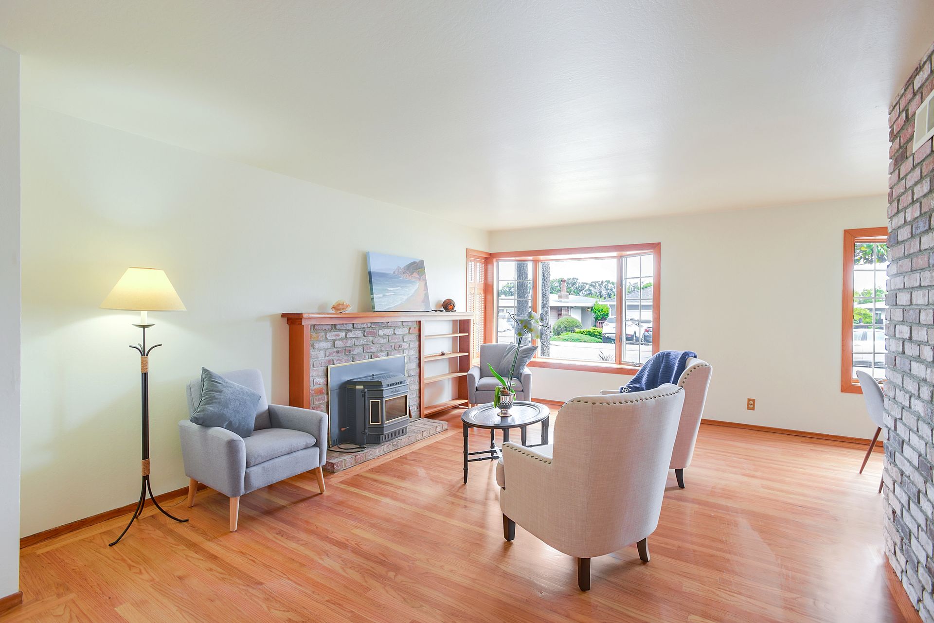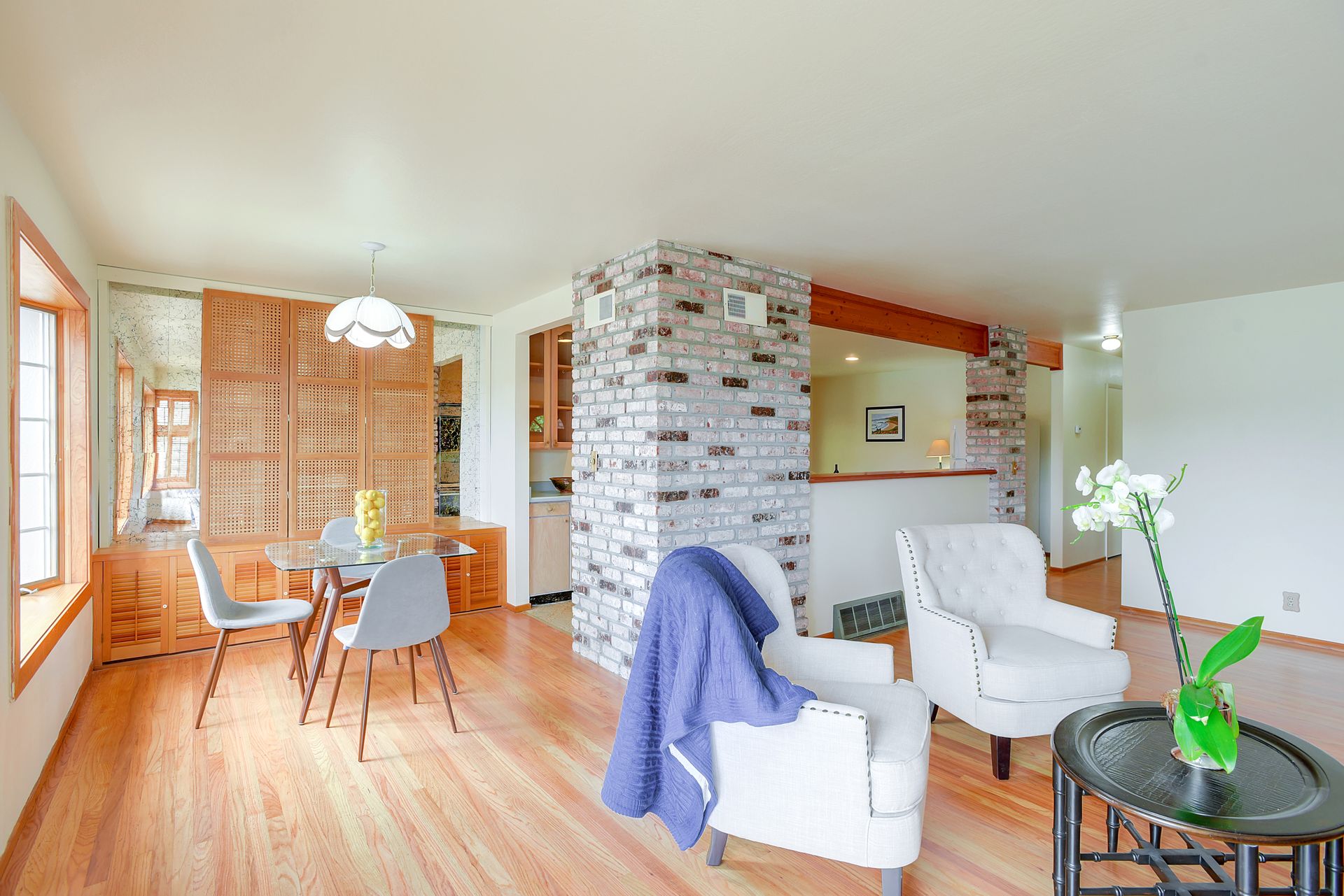 This expanded ranch-style home, in a sought-after neighborhood in Crestmoor Park, features a light and bright fourth bedroom, second-story addition and a large, covered patio. The master suite bath features newly updated shower, tile and flooring. Most of the home features gleaming refinished oak flooring and the living room boasts impressive Anderson bay windows, with a warm, natural wood trim and a fireplace complete with cozy pellet stove insert. The separate fourth bedroom has newer carpet, rooftop views and windows on three sides. There is a dining area off the living room and an eat-in kitchen area opens to the covered side patio with a barbeque. A private back yard welcomes one to mature landscaping, trees, hydrangeas and more with a small water feature and a tool shed. The home is freshly painted inside and out and there are dual pane windows and central forced-air heating. Located near the beautiful San Andreas segment of the scenic Crystal Springs trail and John Muir Elementary School.