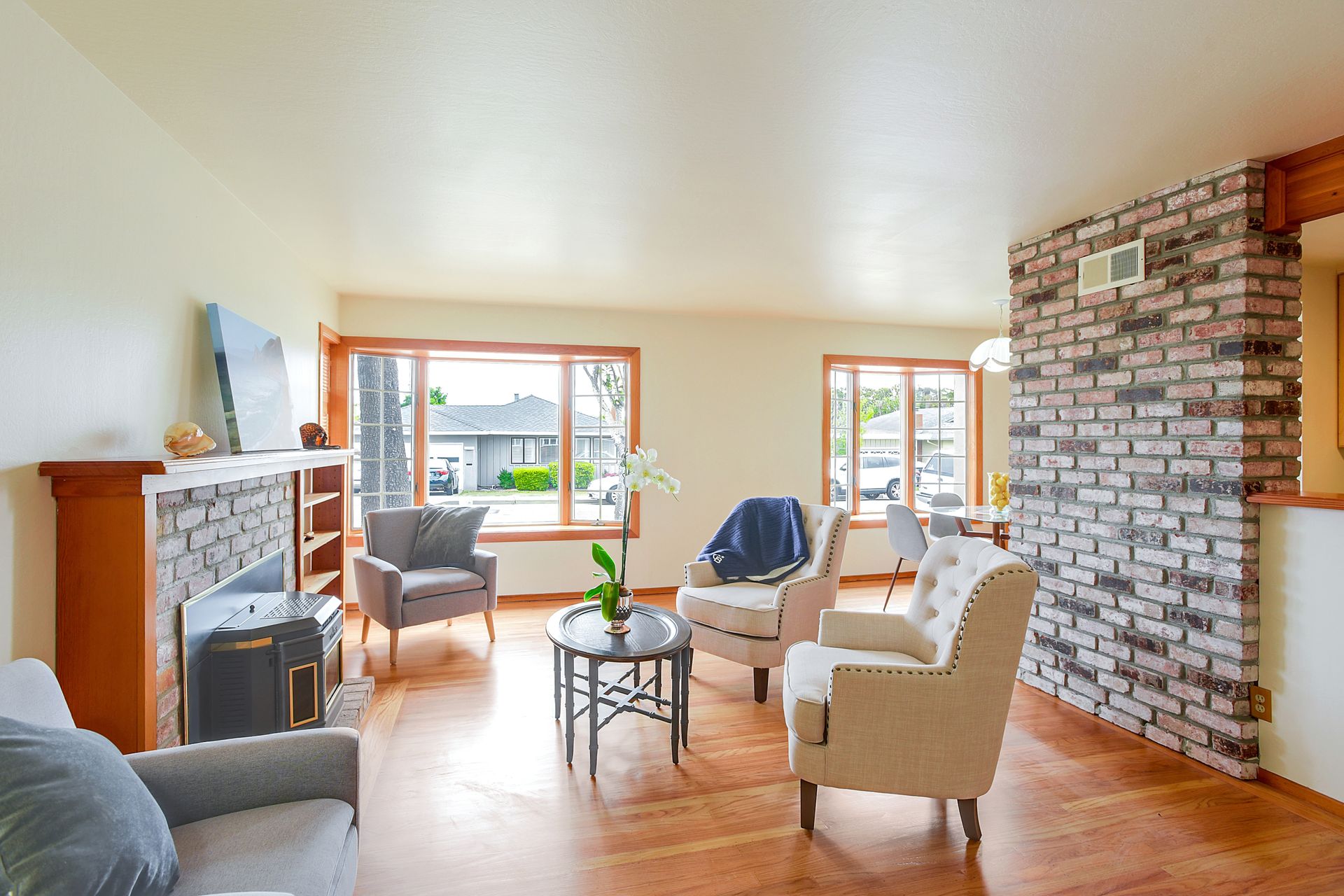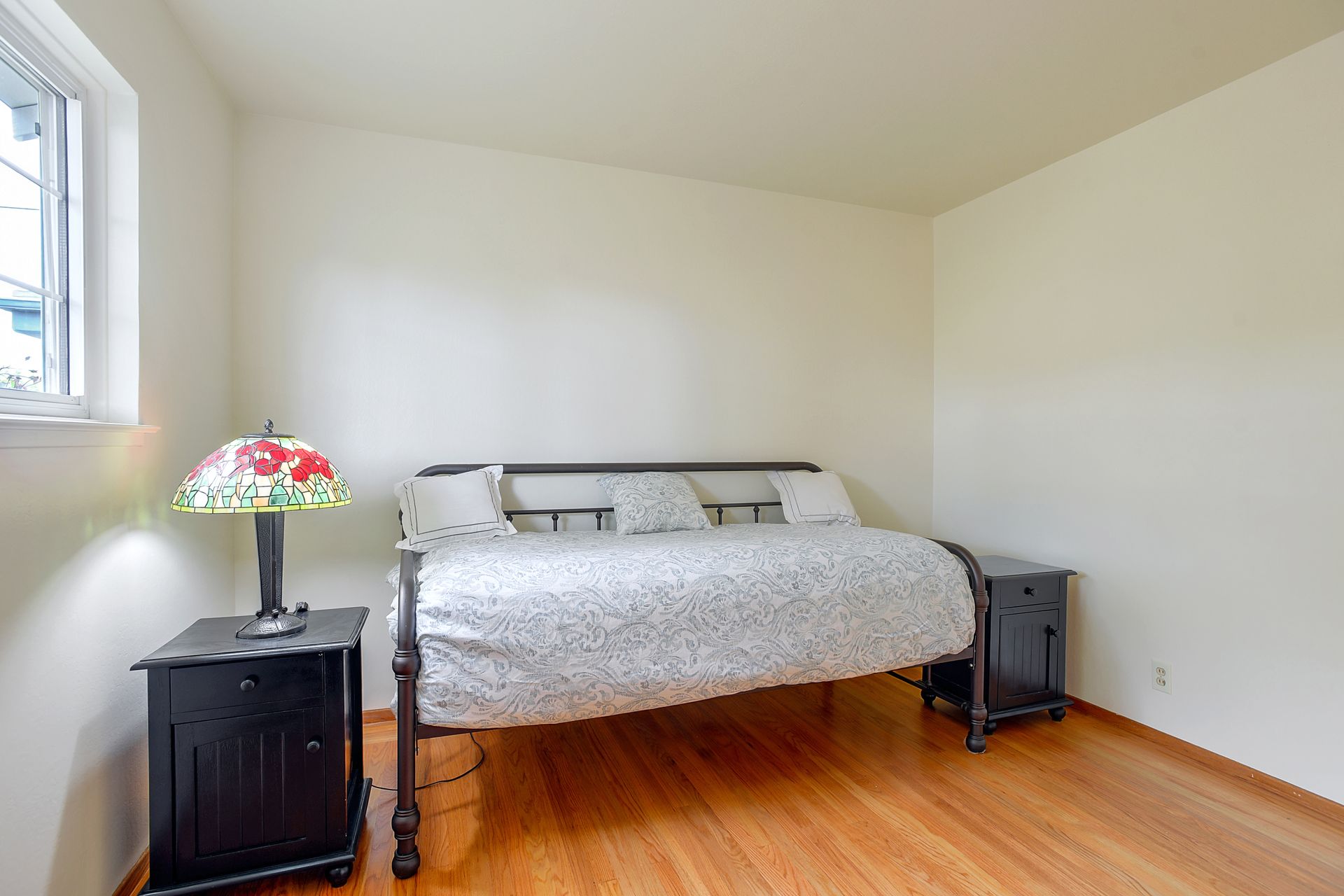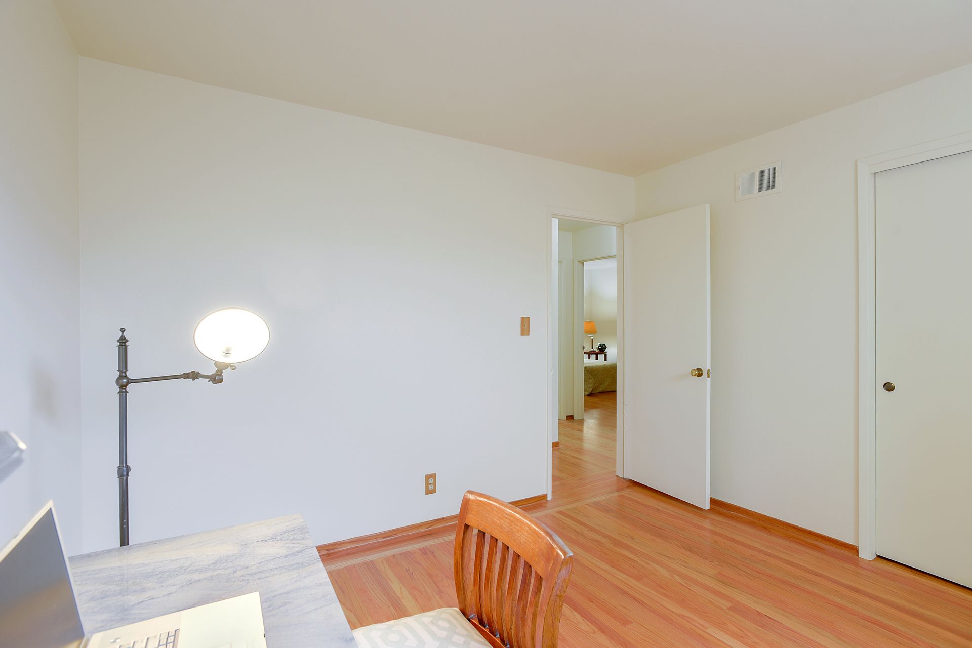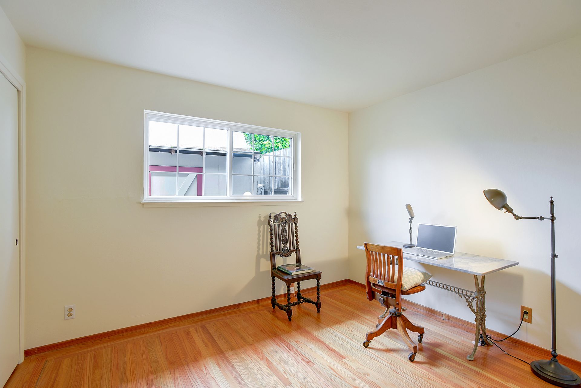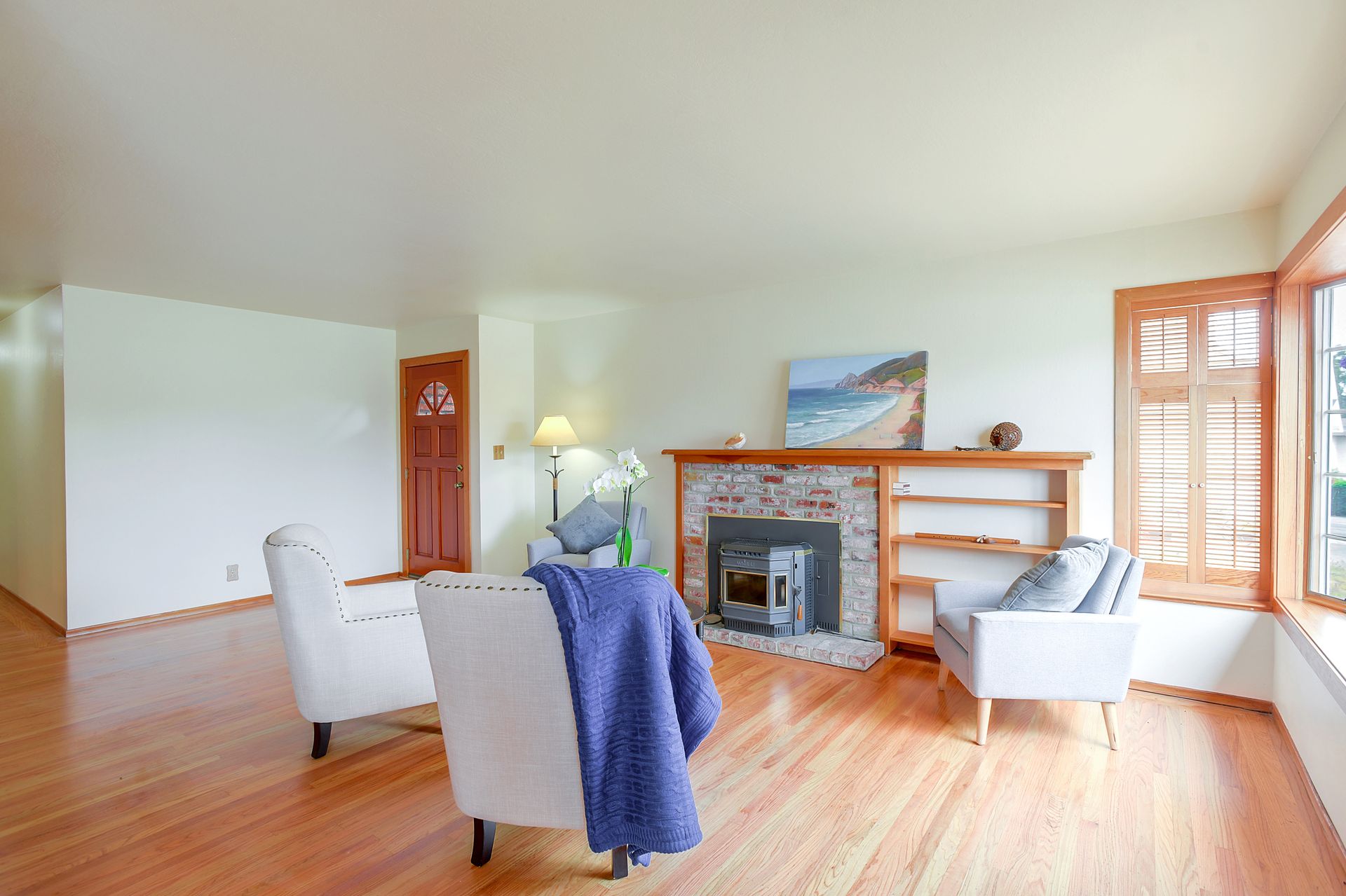 This expanded ranch-style home, in a sought-after neighborhood in Crestmoor Park, features a light and bright fourth bedroom, second-story addition and a large, covered patio. The master suite bath features newly updated shower, tile and flooring. Most of the home features gleaming refinished oak flooring and the living room boasts impressive Anderson bay windows, with a warm, natural wood trim and a fireplace complete with cozy pellet stove insert. The separate fourth bedroom has newer carpet, rooftop views and windows on three sides. There is a dining area off the living room and an eat-in kitchen area opens to the covered side patio with a barbeque. A private back yard welcomes one to mature landscaping, trees, hydrangeas and more with a small water feature and a tool shed. The home is freshly painted inside and out and there are dual pane windows and central forced-air heating. Located near the beautiful San Andreas segment of the scenic Crystal Springs trail and John Muir Elementary School.