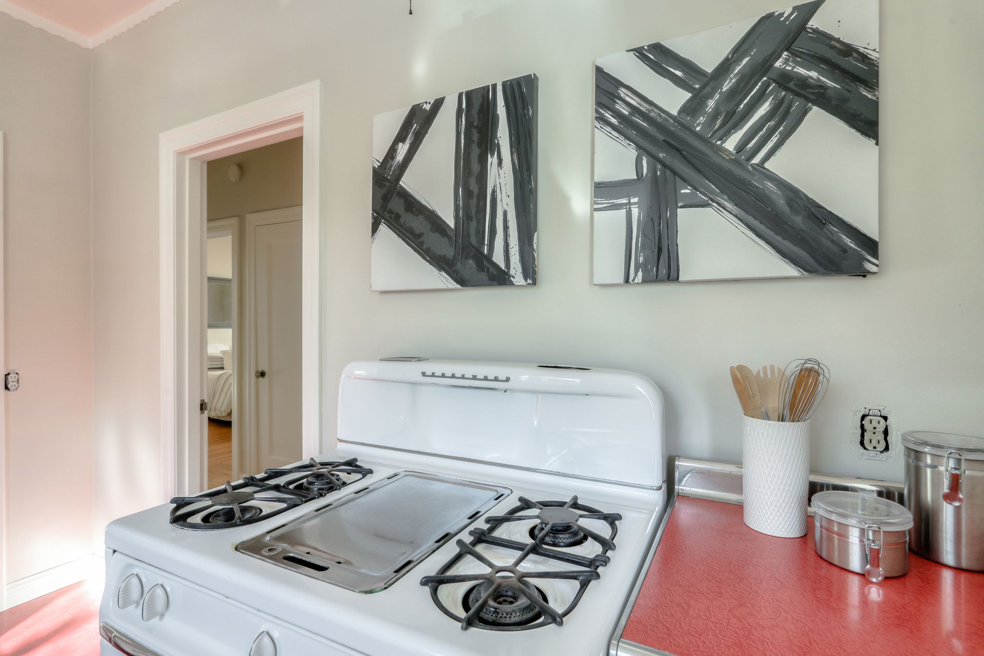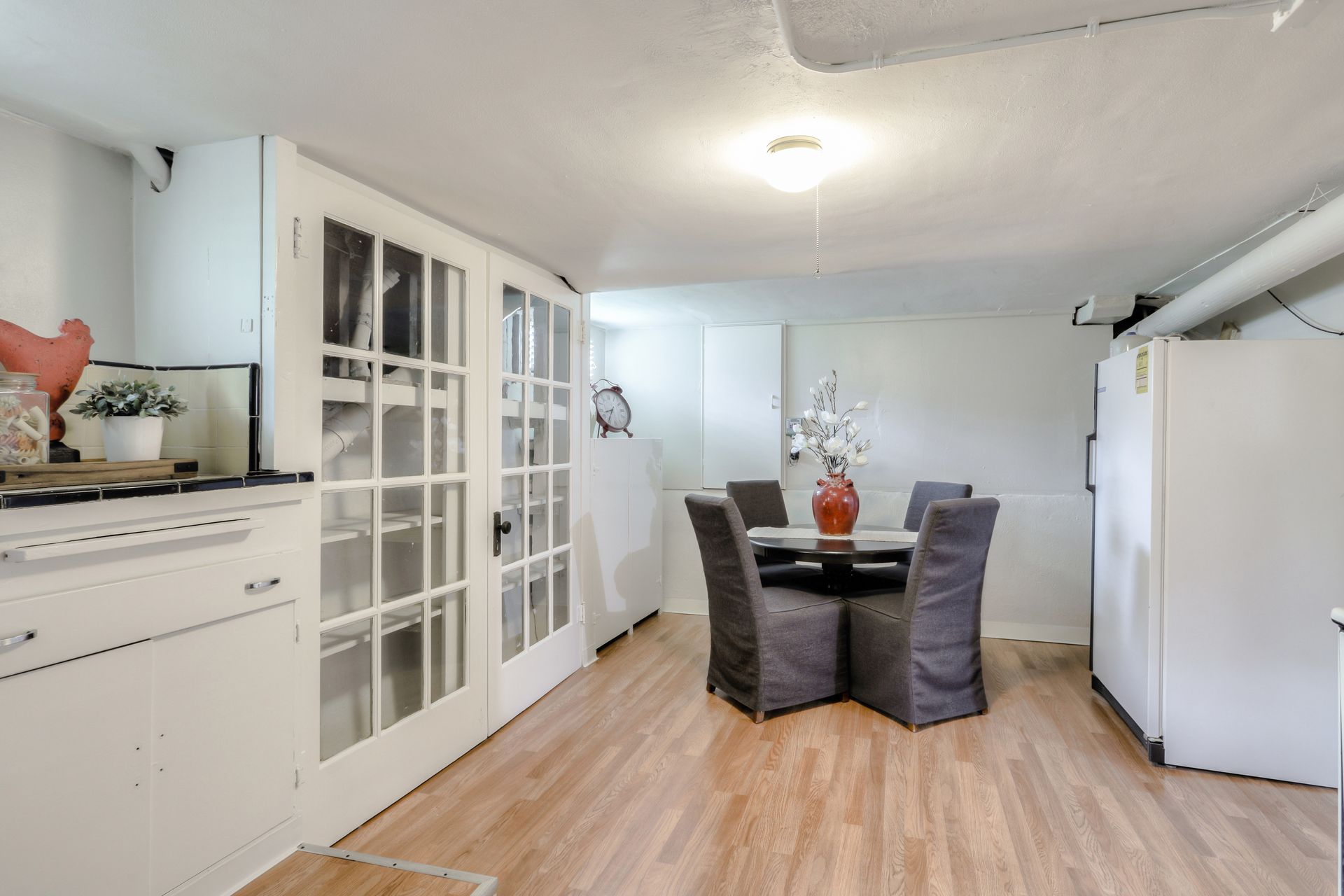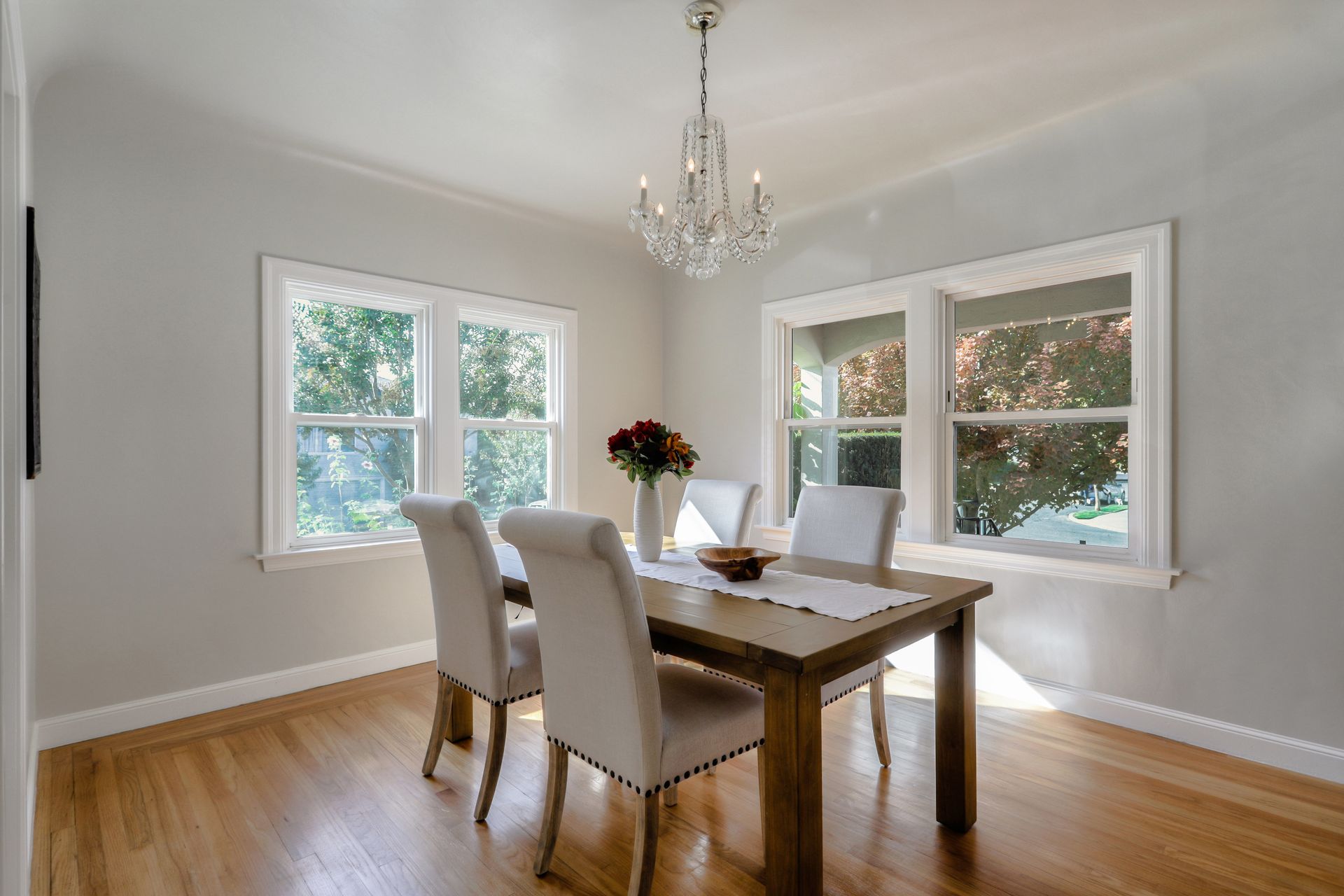 This charming corner lot home truly captures the character and spirit of Martinez. With an inviting front porch, manicured yards and creekside patio/picnic area this home has it all. Inside there are beautiful hardwood floors, a spacious living room with vintage plaster walls and a decorative fireplace, a light and bright kitchen with colorful 1940's style tiles and breakfast nook, a separate dining room, large bedrooms and a finished basement with a second kitchen, living room and bedroom area. A detached, large two-car garage with room for storage is another reason why this home is perfect with no compromising necessary. A move-in ready home from a bygone era.