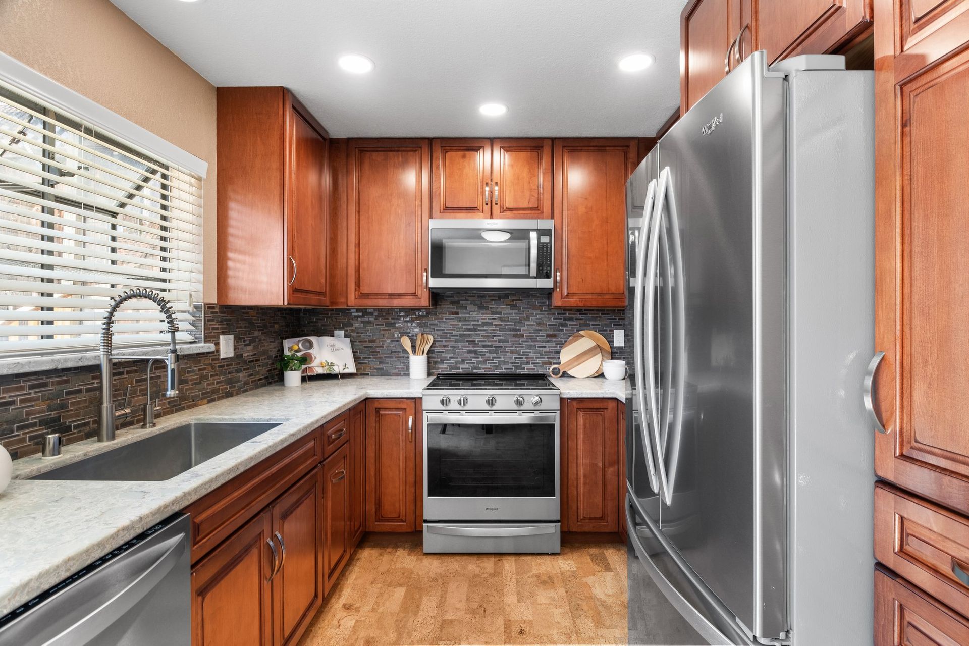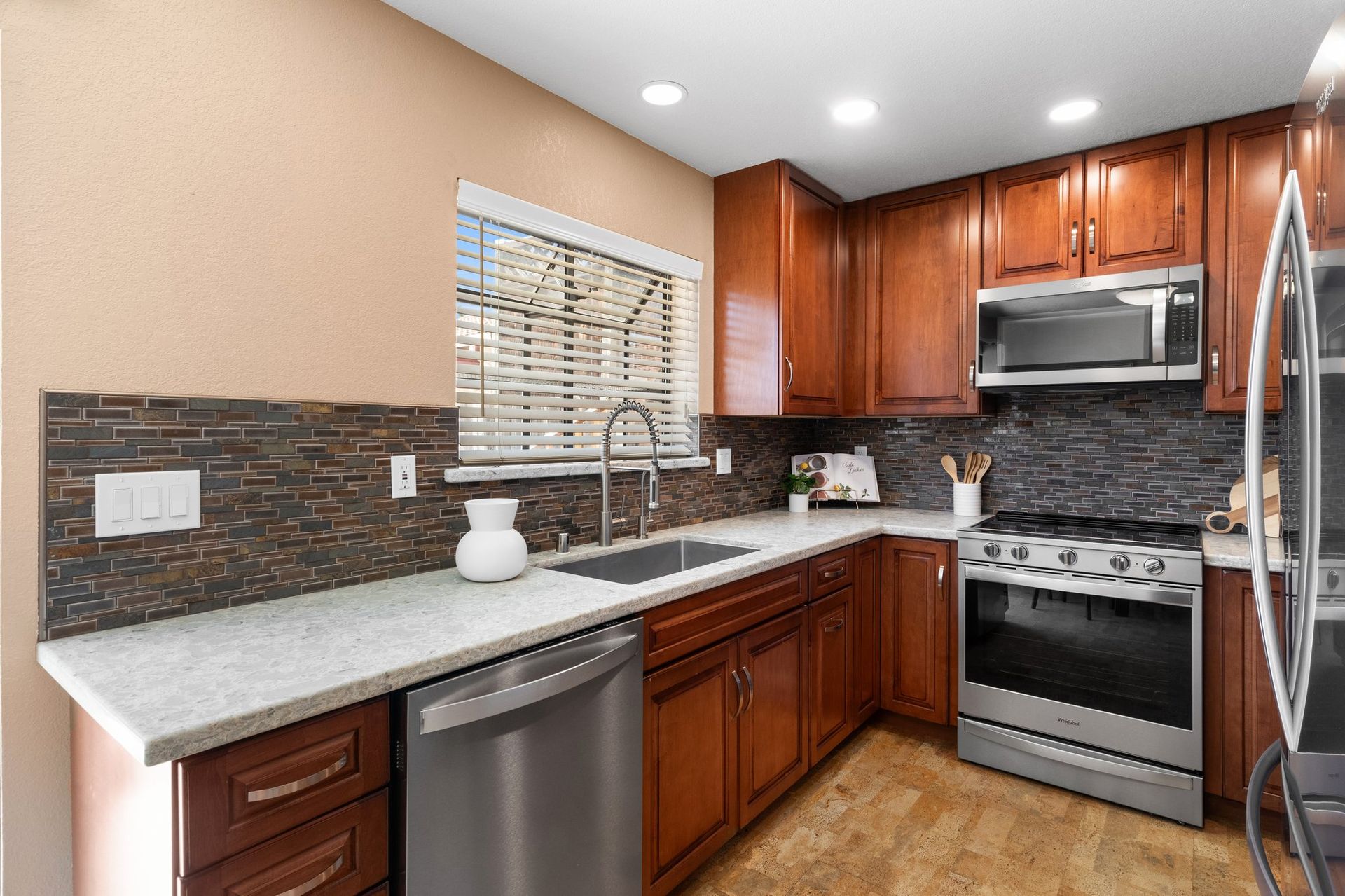 Beautiful move-in ready Santa Clara gem! This lovely townhouse style condo has no shared walls & feels much more like a single family home. Amenities include updated kitchen with stainless steel appliances, granite counters, tile backsplash & newer cabinets. Baths feature updated counters, showers & fixtures. Enjoy inside laundry with full size washer & dryer. Bright & spacious primary bedroom features a walk in closet, double sinks & additional storage. The remaining two bedrooms are generously proportioned with good size closets. Additional under stair storage on main level. Enjoy the cute patio off of the dining area with artificial grass for ease of maintenance. All of this including a sizeable attached 2 car garage! Centrally located in the heart of Santa Clara within 5 miles of Apple Park, Nvidia, Westfield Valley Fair, Santana Row & San Jose Mineta International Airport. Santa Clara Town Center is just steps away featuring Target, Sprouts, Pete's Coffee, Baskin Robbins, Mission City Grill & so much more.