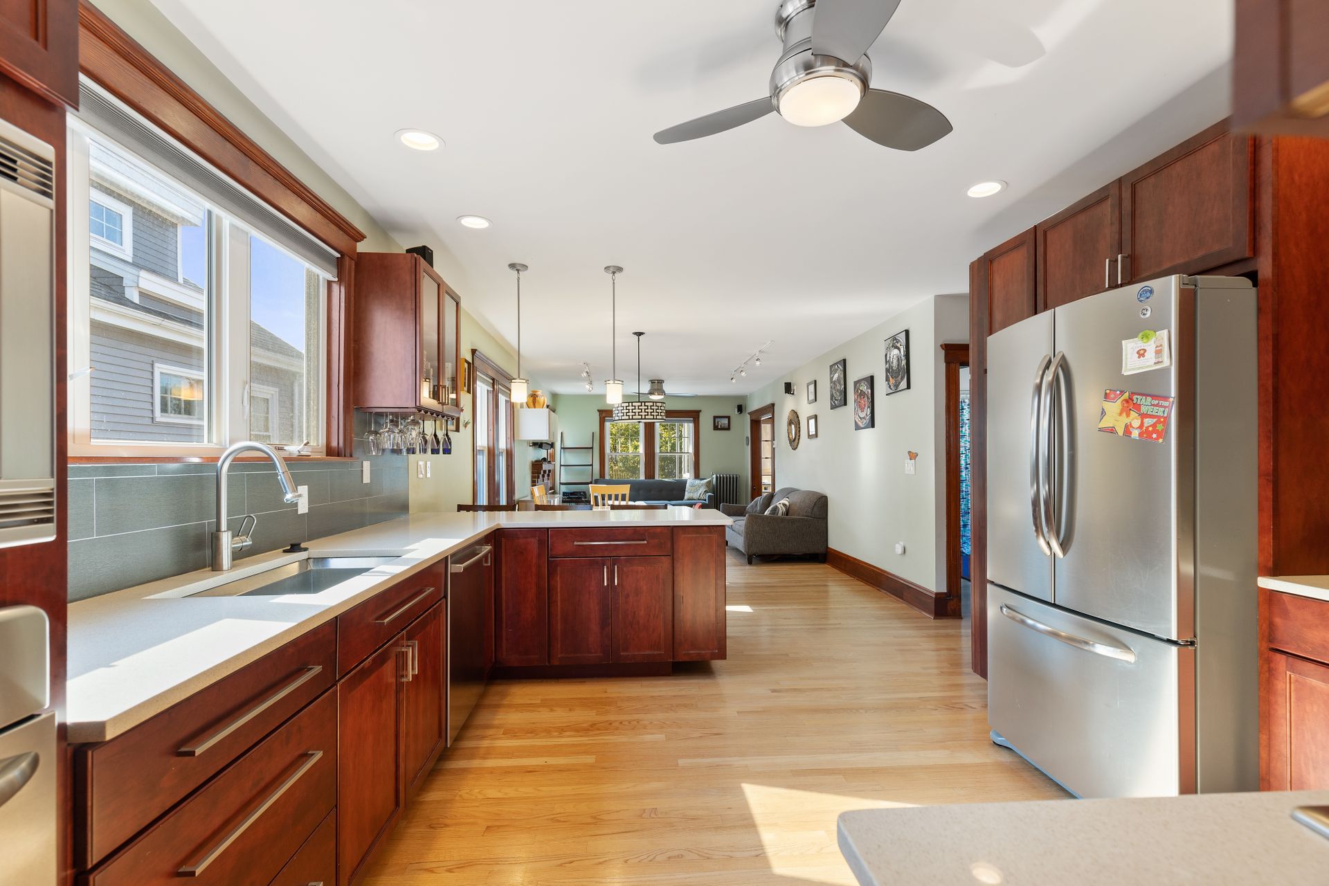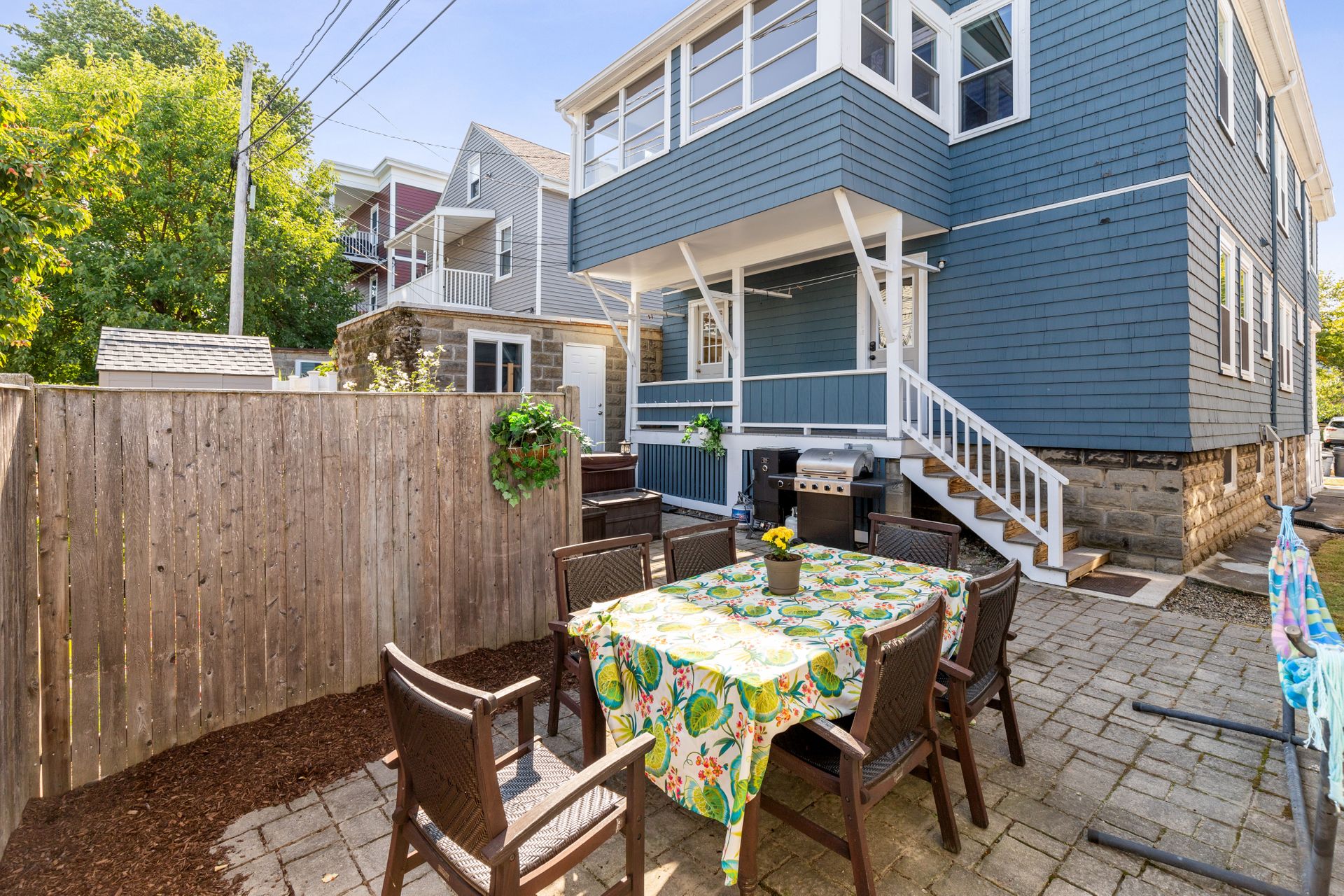 Superb condition, location, and opportunity to live in a property that surpasses other similar homes. Second and third level owner’s unit in condominium condition features chef’s kitchen with open floor plan, oak floors throughout, new windows, updated systems, brilliant light and more. Bonus rooms ideal for office, playroom or exercise space. In-unit laundry next to enclosed porch with many options for your daily use. Walk-up 3rd level includes south-facing room and large unfinished space for future expansion. First level apartment in great condition available for extended family, friends or rental unit is with charming features including built-in hutch, pass through pantry, new windows and systems. Sellers experienced a strong rental history. Private fenced-in back patio with room for entertaining. Bonus over-size hot tub to de-stress from your day included in the sale. One car garage used for storage. Walk-out basement with good ceiling height, work room, laundry for Apt. #1 and plenty of storage space. Easy access to Davis Square, Tufts University, bike path, T-stops including the new Greenline connection plus connections to Routes 2, 16 and 93 More than an investment. A wonderful place to call home.