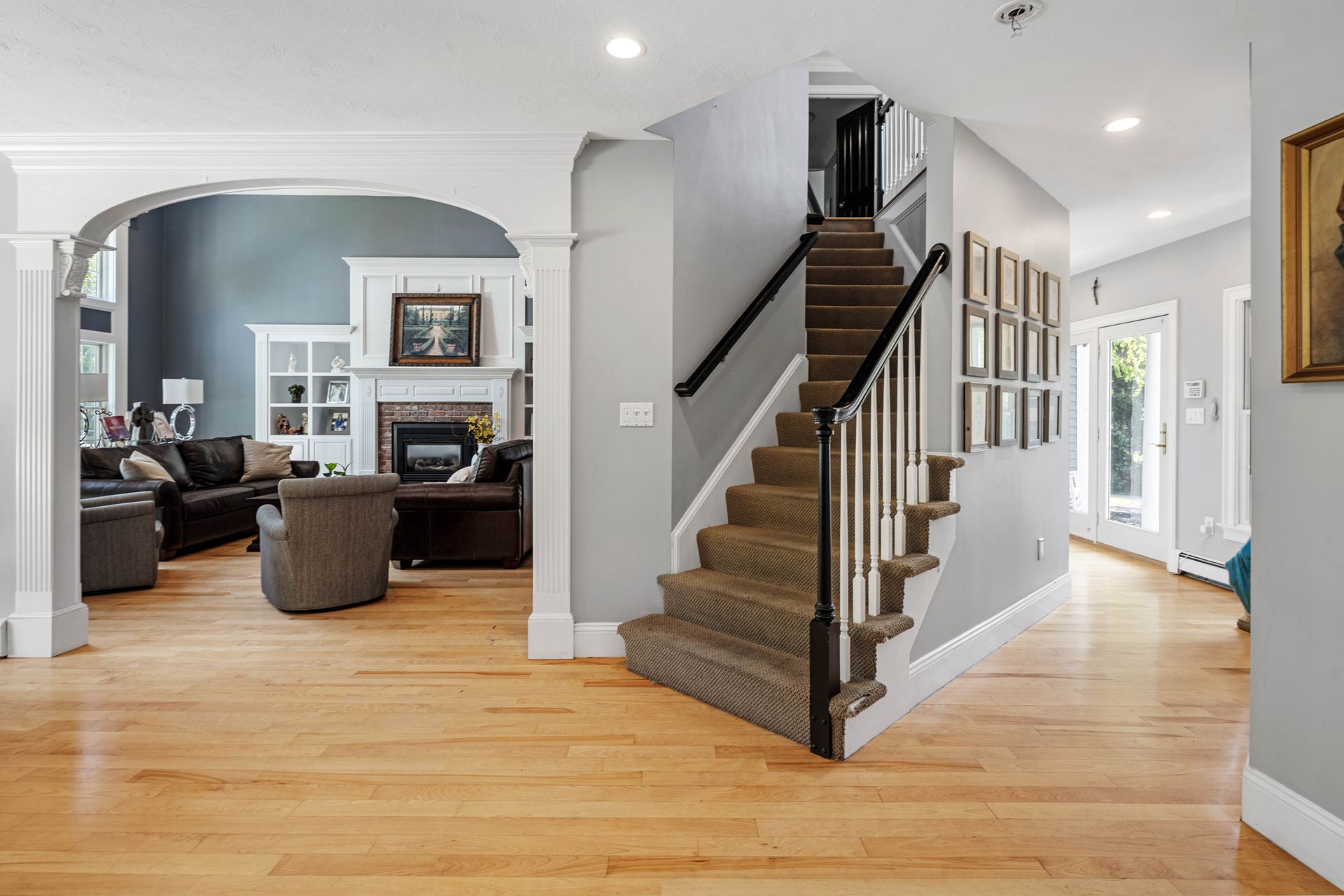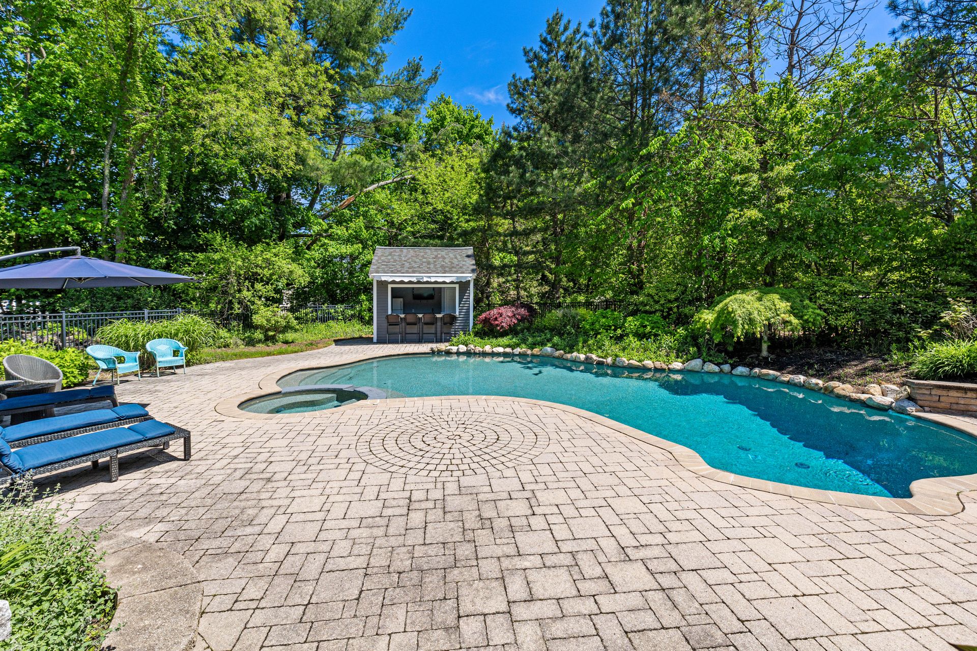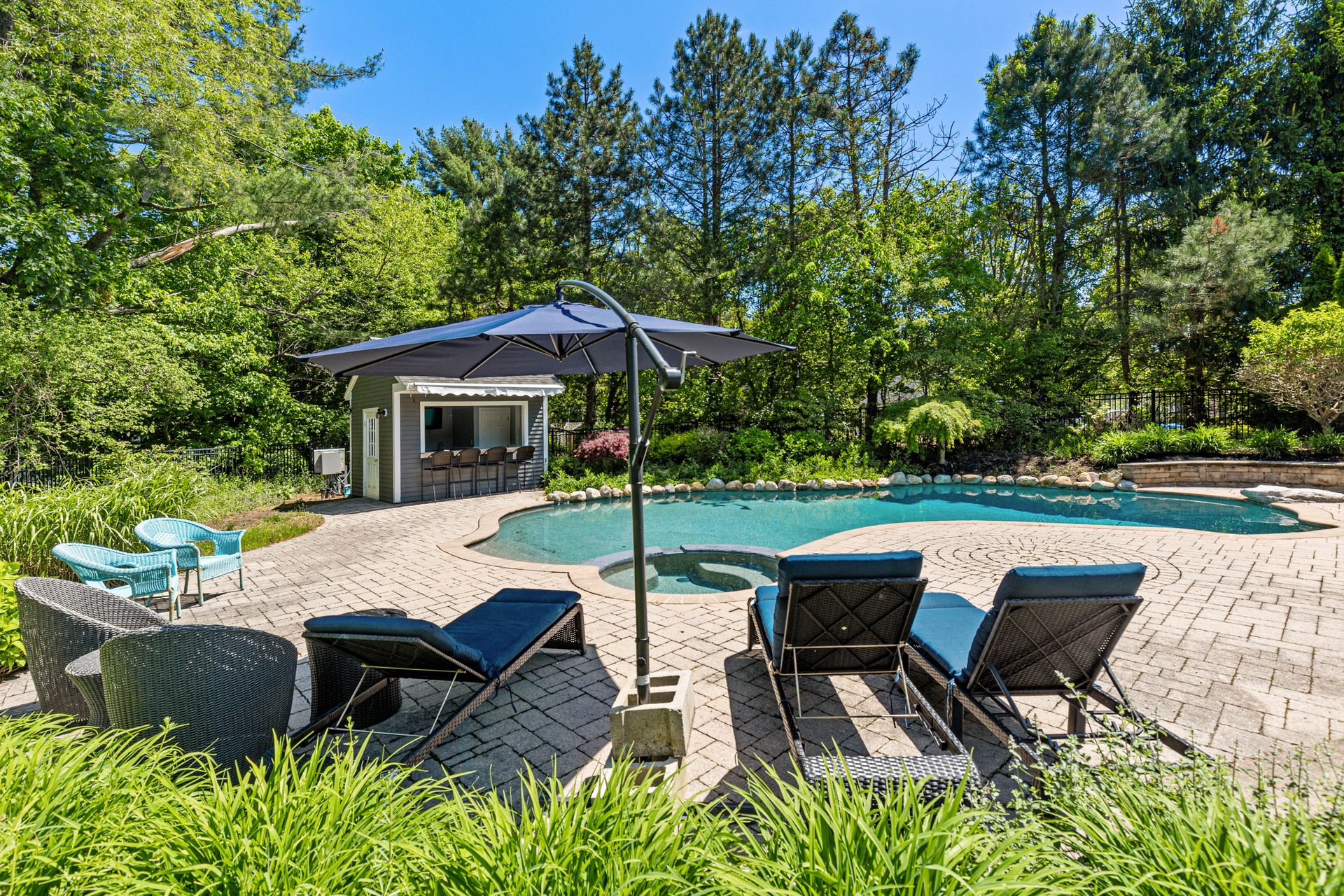Custom colonial in sought after neighborhood. Designed for modern living and entertaining, blending classic charm with thoughtful planning and masterful craftsmanship. The sun filled interior is highlighted by transom windows that grace the first floor doorways, maple hardwood floors throughout first and second floors and two staircases to second floor. Kitchen features custom cabinets by Luxor, tiled backsplash, stainless steel appliances, quartz counters, spacious island and breakfast nook. This leads to a true great room with Juliet balcony, sky high ceilings, fireplace, wall of windows and built-ins with access to the amazing outdoor oasis. The second floor features three spacious bedrooms, a generous primary suite with seating area, spa like bath, fireplace and two walk-in closets. Finished third floor bonus room with full bath. Lower level has a dedicated home theater, half bath, playroom, storage area and stairway to three car garage. A private back yard with pool, cabana, deck, patio and firepit. New roof 5/24 and water filtration system.