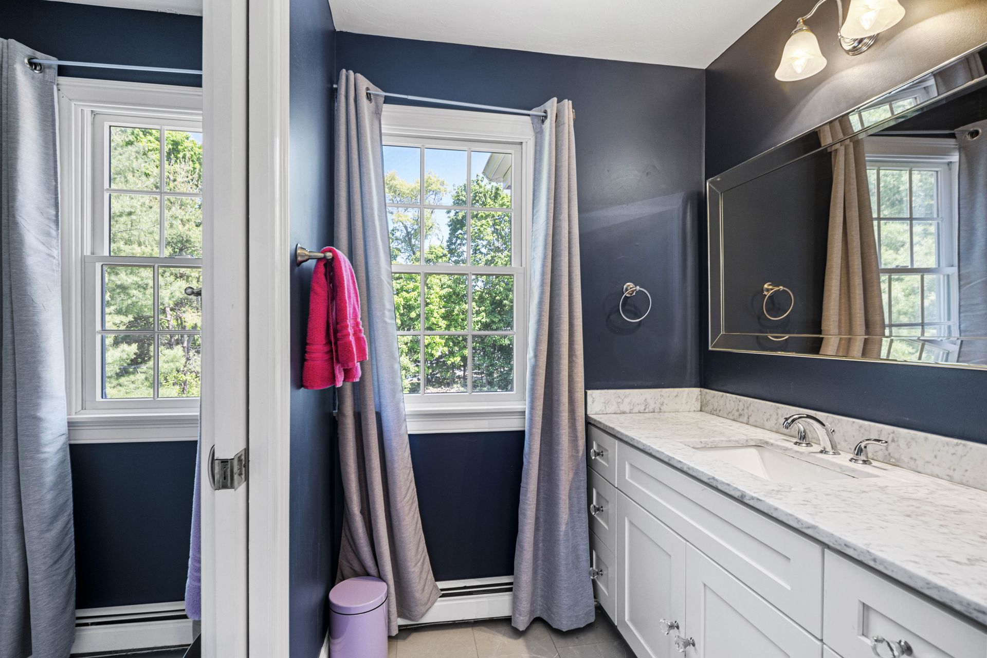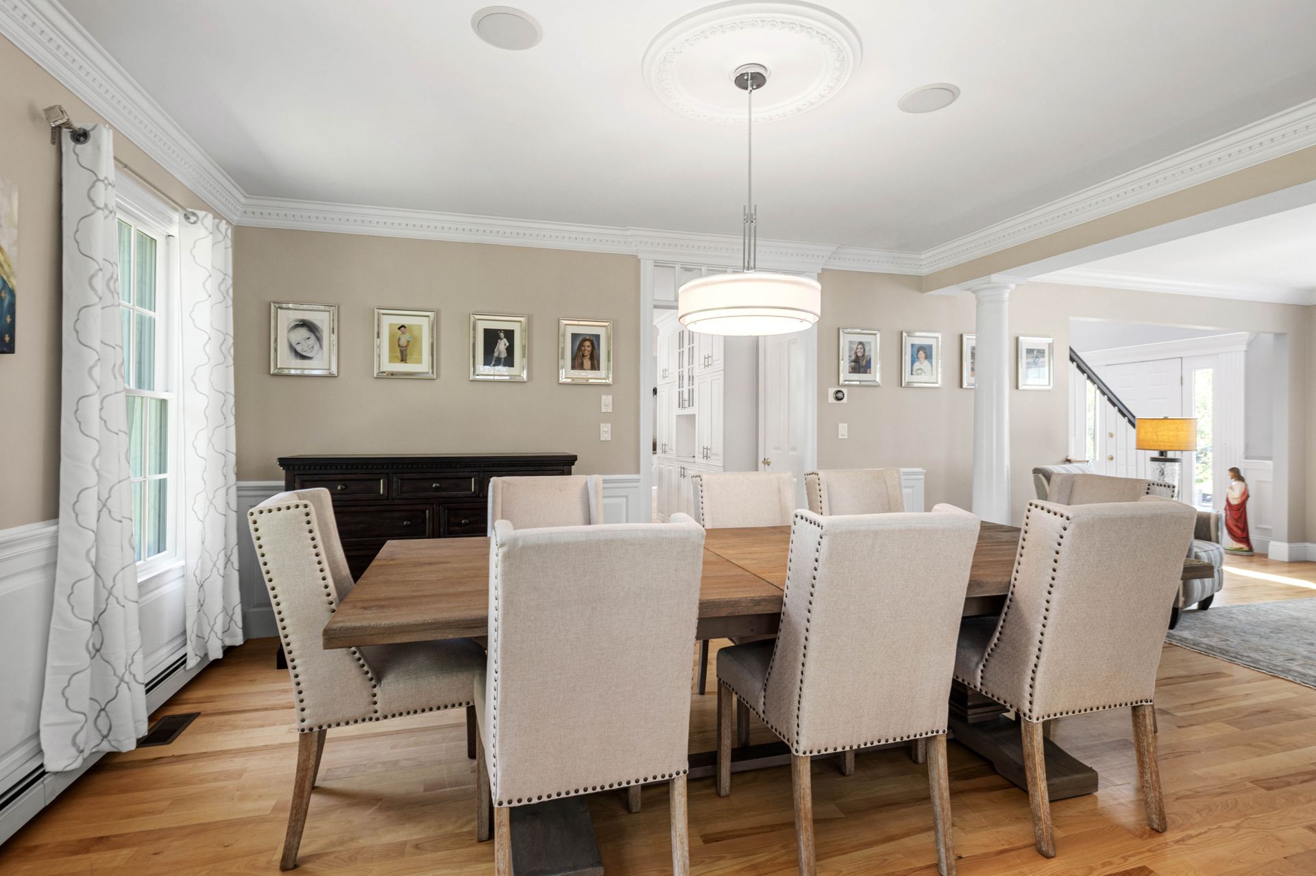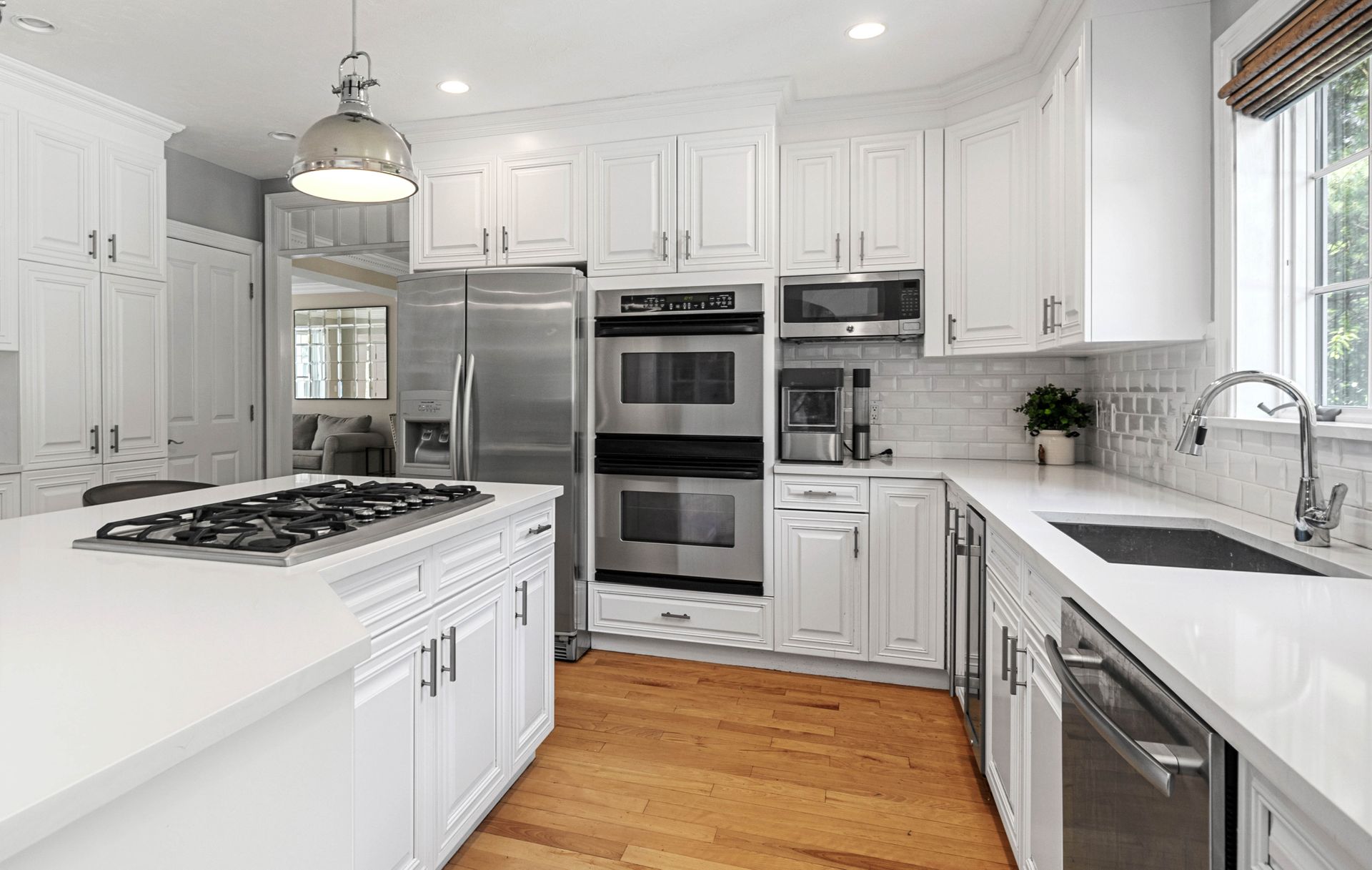 Custom colonial in sought after neighborhood. Designed for modern living and entertaining, blending classic charm with thoughtful planning and masterful craftsmanship. The sun filled interior is highlighted by transom windows that grace the first floor doorways, maple hardwood floors throughout first and second floors and two staircases to second floor. Kitchen features custom cabinets by Luxor, tiled backsplash, stainless steel appliances, quartz counters, spacious island and breakfast nook. This leads to a true great room with Juliet balcony, sky high ceilings, fireplace, wall of windows and built-ins with access to the amazing outdoor oasis. The second floor features three spacious bedrooms, a generous primary suite with seating area, spa like bath, fireplace and two walk-in closets. Finished third floor bonus room with full bath. Lower level has a dedicated home theater, half bath, playroom, storage area and stairway to three car garage. A private back yard with pool, cabana, deck, patio and firepit. New roof 5/24 and water filtration system.