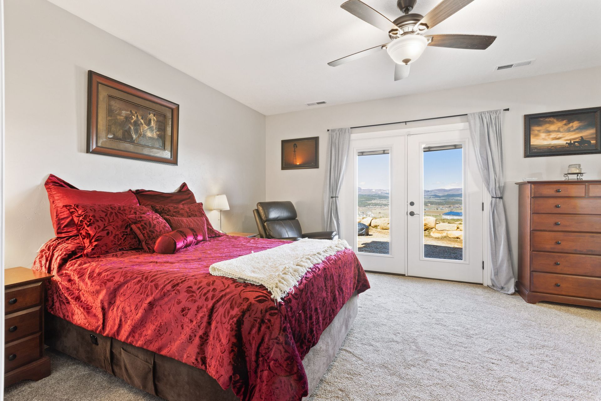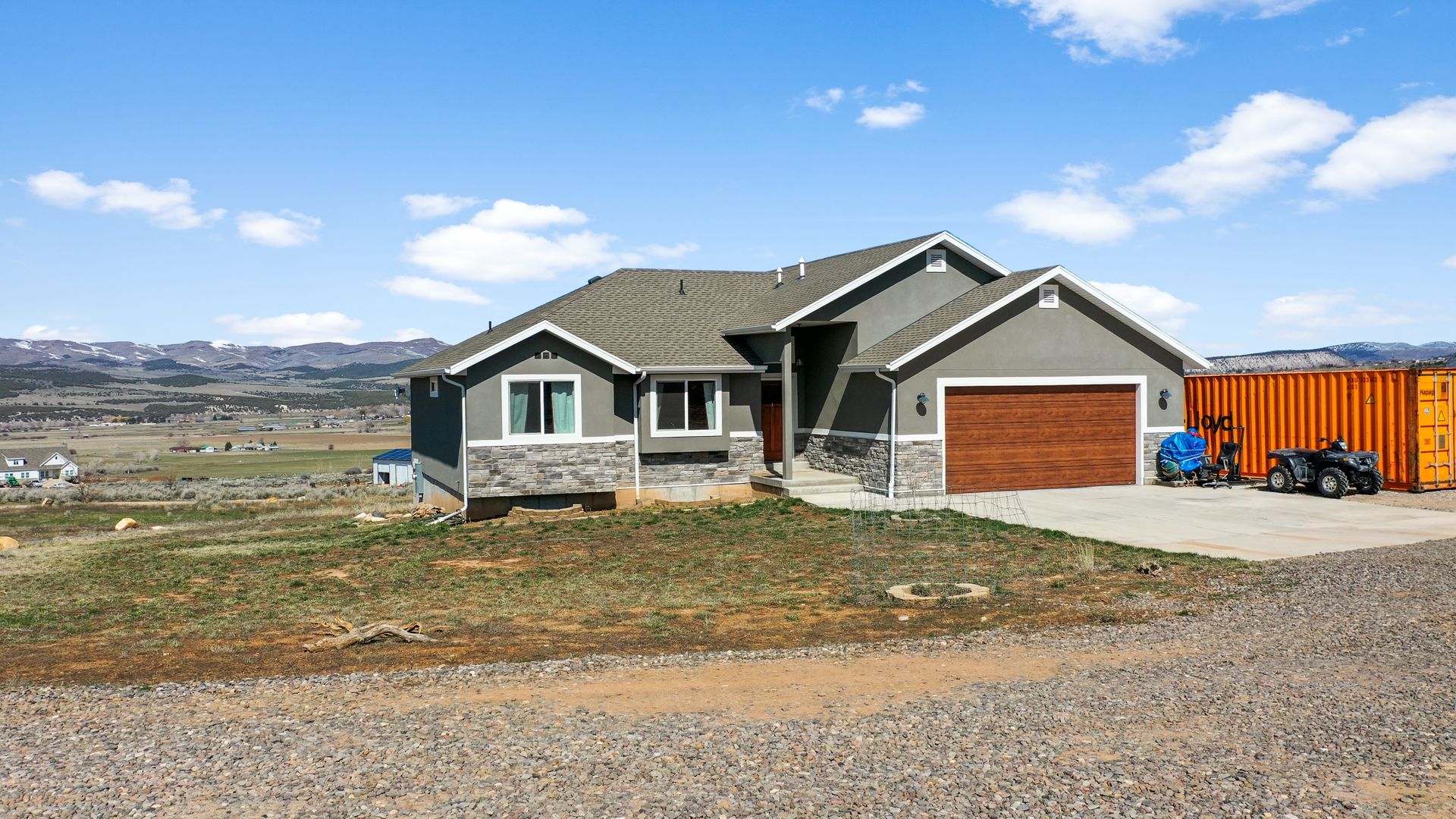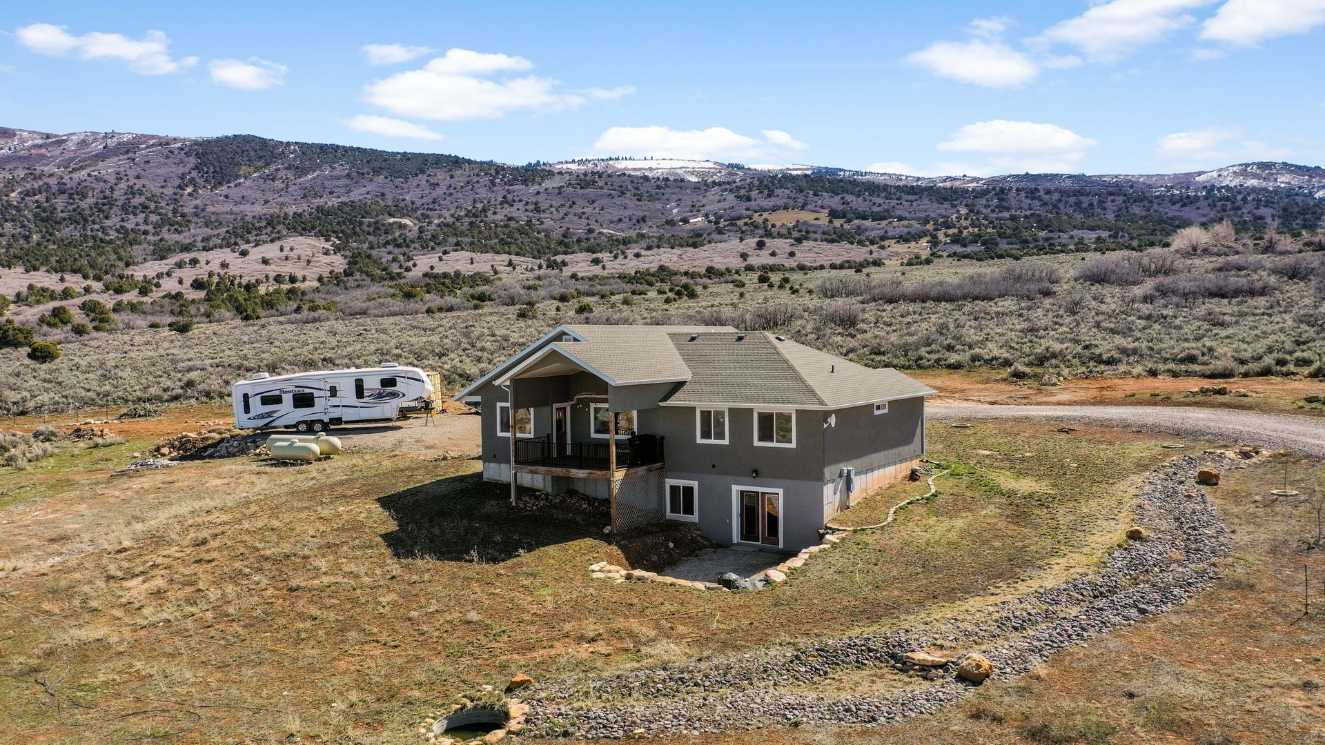 Welcome to Spring Canyon Ranch, where you get to enjoy a home that is bright, open and spacious home with two acres of land with amazing views. This home will not disappoint between its covered upper deck adjacent to the great room, kitchen and dining area. Here, you will find peace in the mornings and the beautiful dark skies at night; an ideal place to start and or end your day. This home is unique with two large primary suites, one on the upper floor with its own primary bathroom and the other downstairs also with a private bathroom and its own private walk-out. See if you can find the "hidden room" here. This home has its own private road to the estate. Comes with its own water right that has access to the use of two wells. Power to the home is through local utility connection. Heating source is ideal with two propane tanks on the northeast end of the property line. Spring Canyon Ranch is a private community set back into nature-dark skies and less then10 minutes away from Fairview's charming town!