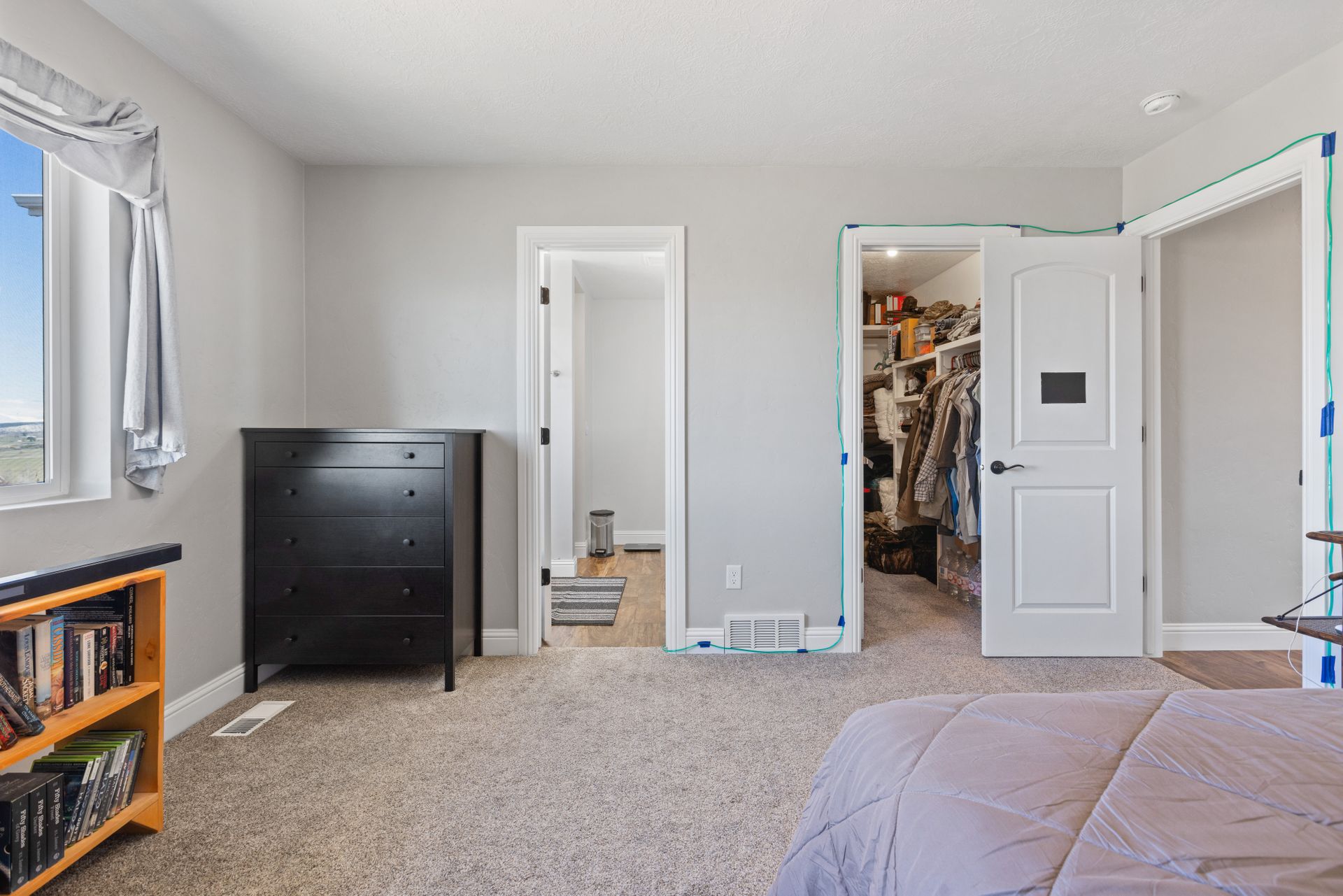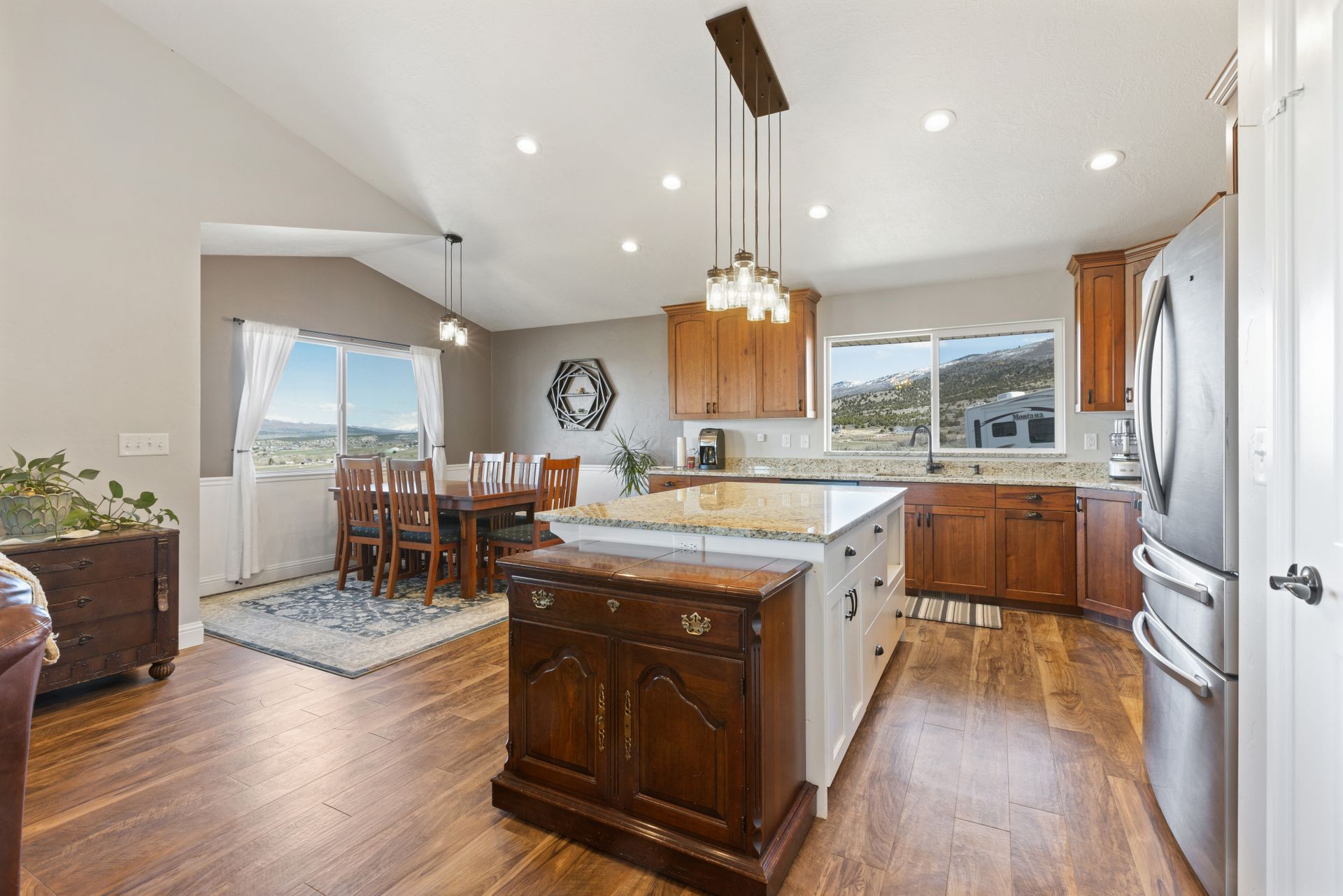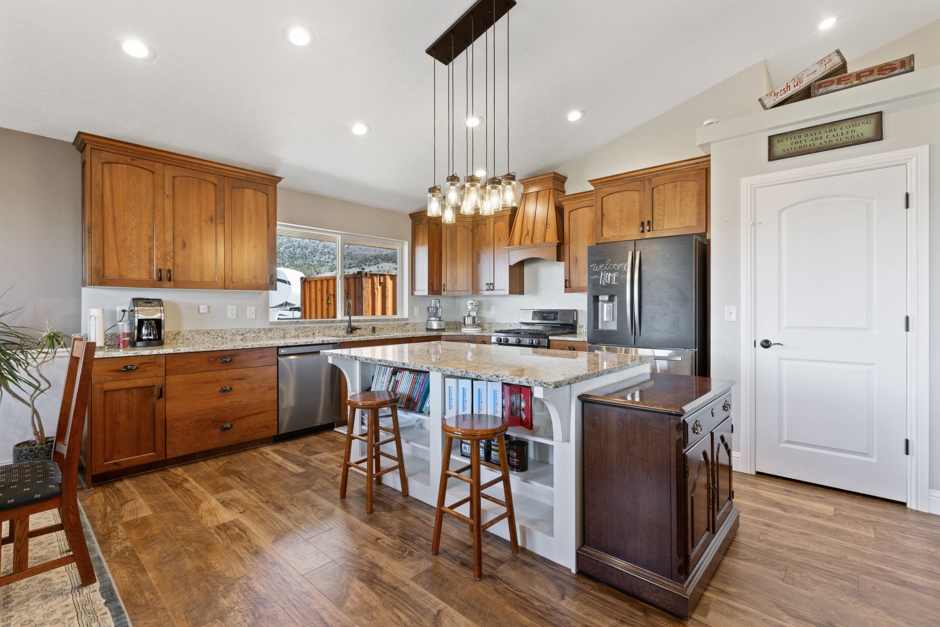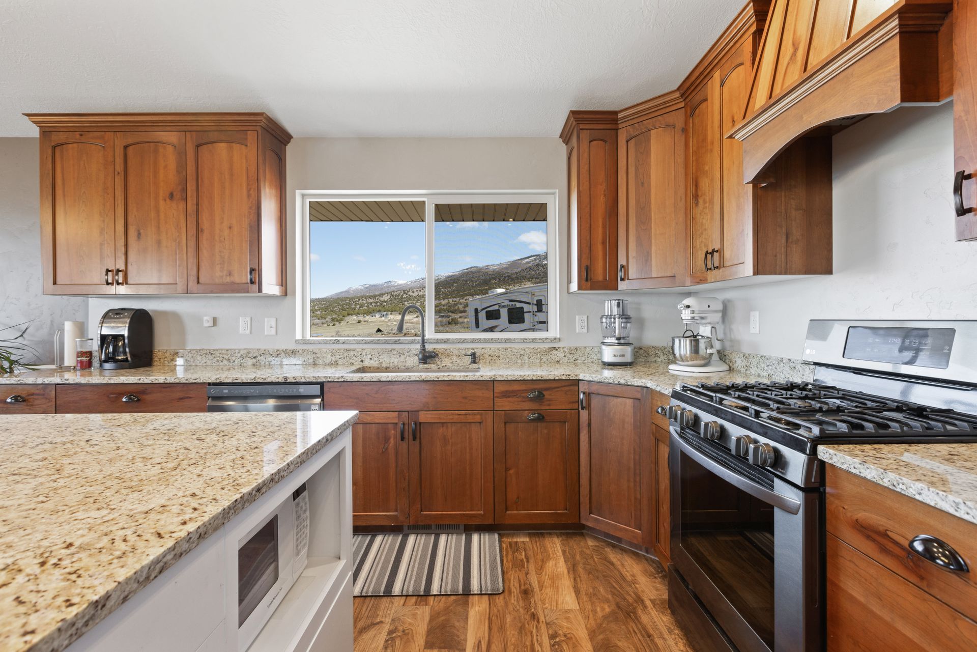 Welcome to Spring Canyon Ranch, where you get to enjoy a home that is bright, open and spacious home with two acres of land with amazing views. This home will not disappoint between its covered upper deck adjacent to the great room, kitchen and dining area. Here, you will find peace in the mornings and the beautiful dark skies at night; an ideal place to start and or end your day. This home is unique with two large primary suites, one on the upper floor with its own primary bathroom and the other downstairs also with a private bathroom and its own private walk-out. See if you can find the "hidden room" here. This home has its own private road to the estate. Comes with its own water right that has access to the use of two wells. Power to the home is through local utility connection. Heating source is ideal with two propane tanks on the northeast end of the property line. Spring Canyon Ranch is a private community set back into nature-dark skies and less then10 minutes away from Fairview's charming town!