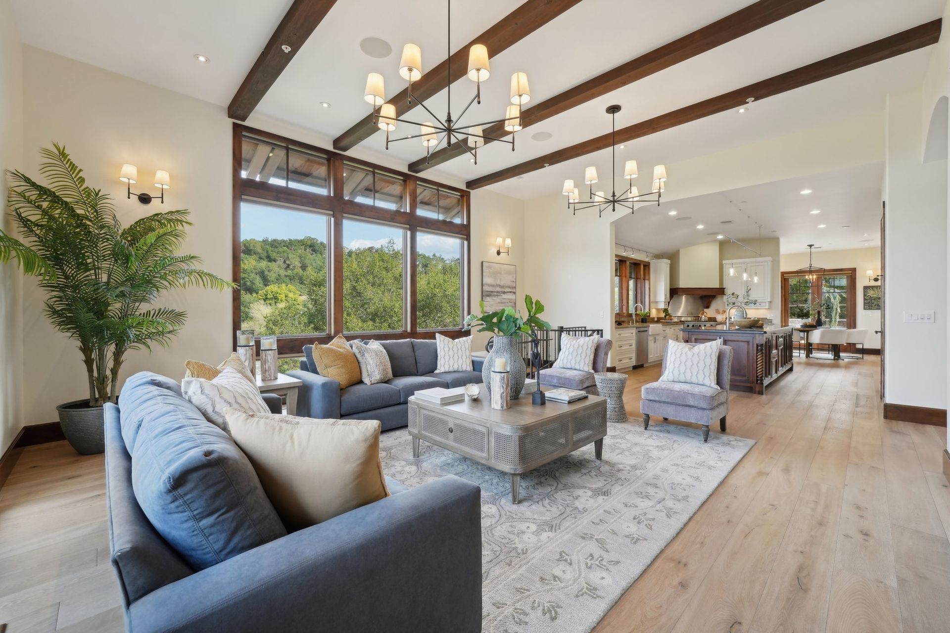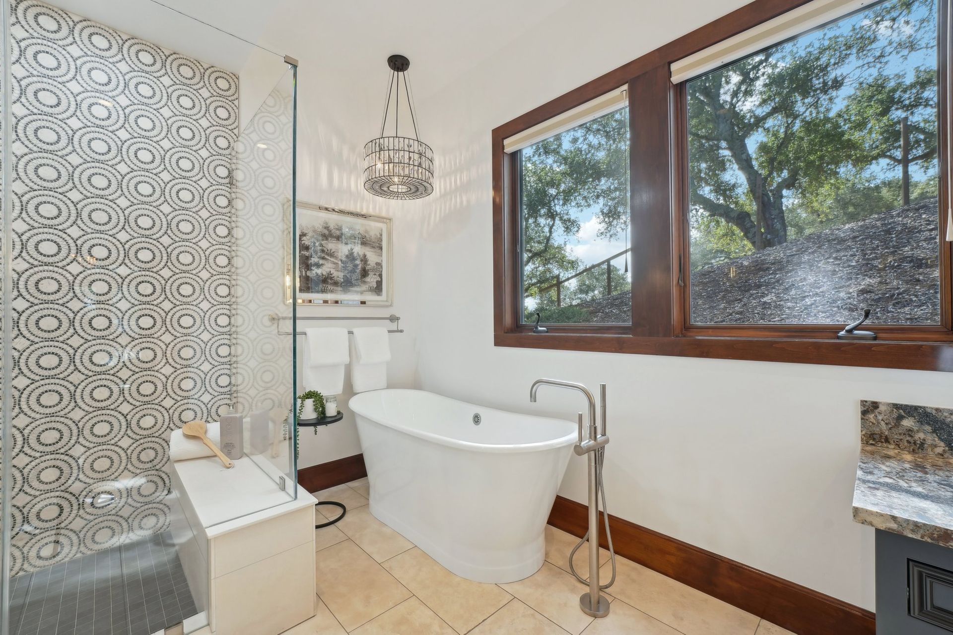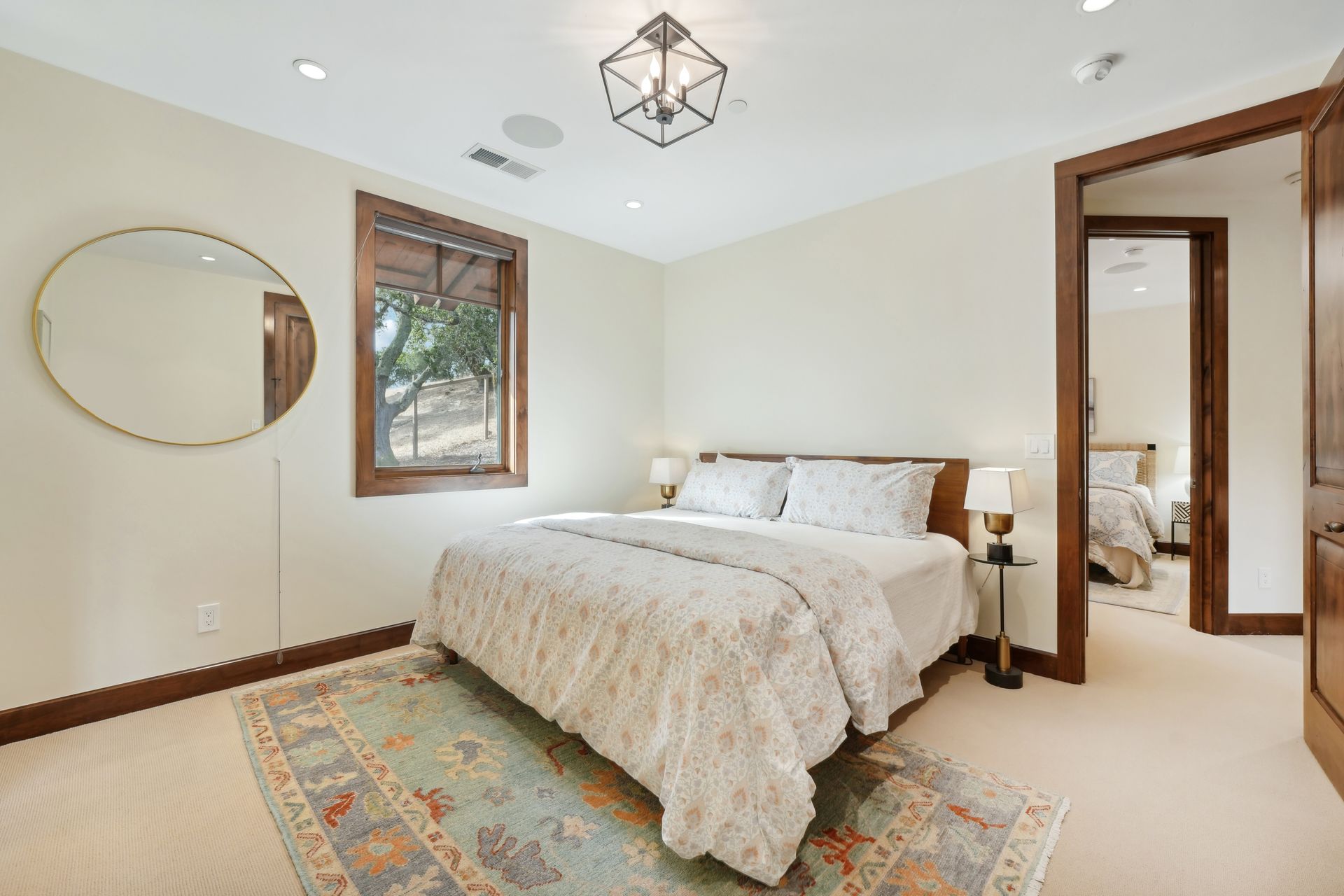 Welcome to your dream oasis perched atop a picturesque hill, where luxury meets tranquility! This stunning home boasts breathtaking views and is just a stone's throw from the vibrant Healdsburg plaza. Enter through a gated entry to discover a harmonious blend of sophistication and comfort. Step inside to find an expansive main-level primary suite that feels like a personal retreat, complete with a spa-like bathroom featuring a soaking tub, a grand shower adorned with custom tile, and an oversized walk-in closet. The family room, adorned with wood-beamed ceilings, opens seamlessly to the gourmet kitchen, showcasing high-end appliances, a farmhouse sink, and abundant storage perfect for culinary adventures. Exquisite woodwork throughout adds a bespoke touch, while the cozy living room, complete with its own fireplace, invites relaxation. Enjoy the tranquility of the nearby 155-acre nature preserve and the proximity to world-renowned wineries, all while savoring amazing private outdoor spaces ideal for entertaining. Plenty of room for a pool. Be sure not to miss the lower-level temperature-controlled wine cellar, complete with a tasting area. Adjacent .30 acre lot is separately available for possible ADU/compound or just to ensure privacy. With a three-car garage and ample parking, this home is not just a residence; it's a lifestyle.