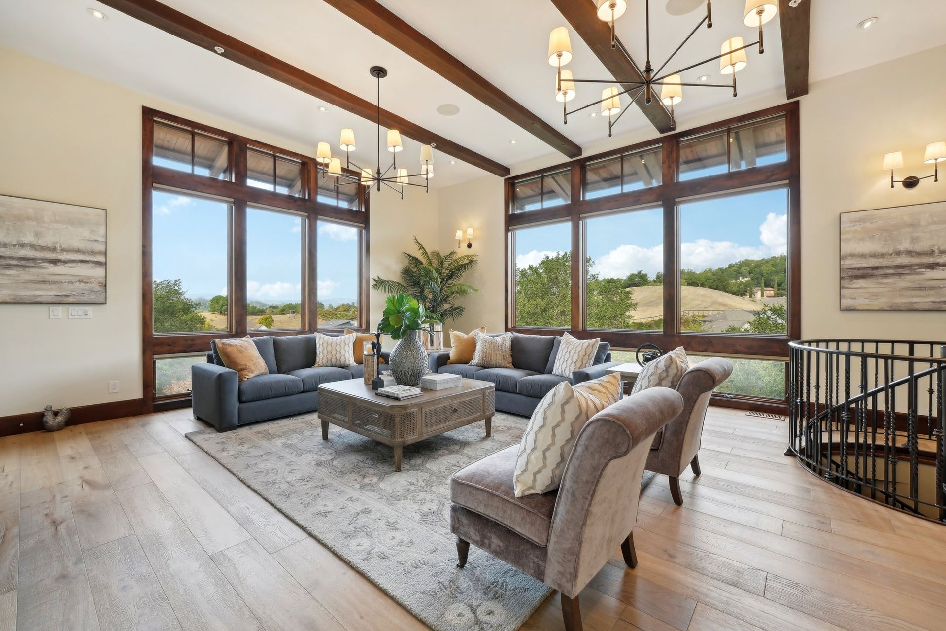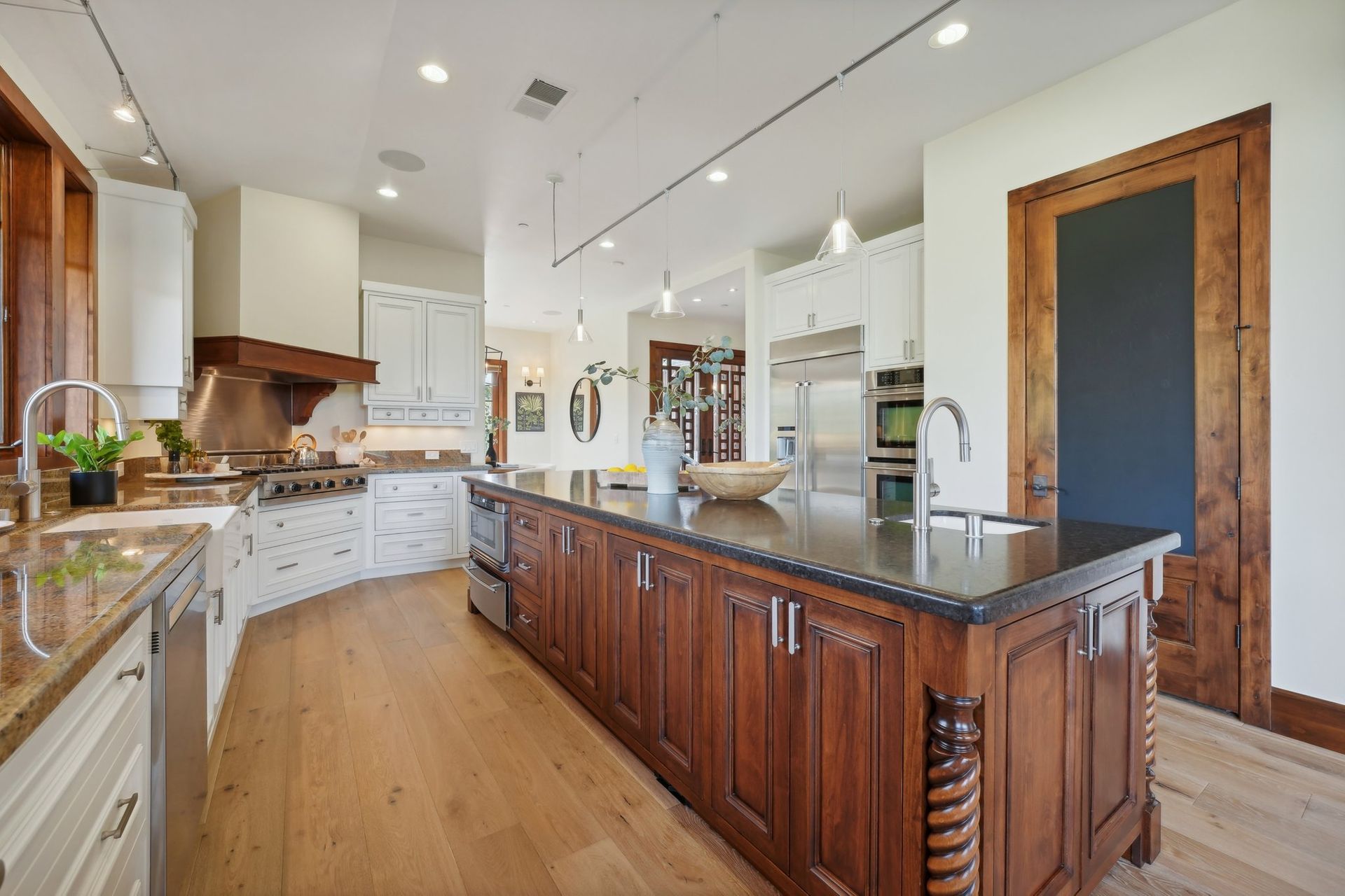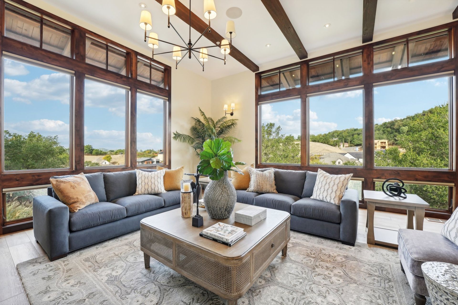 Welcome to your dream oasis perched atop a picturesque hill, where luxury meets tranquility! This stunning home boasts breathtaking views and is just a stone's throw from the vibrant Healdsburg plaza. Enter through a gated entry to discover a harmonious blend of sophistication and comfort. Step inside to find an expansive main-level primary suite that feels like a personal retreat, complete with a spa-like bathroom featuring a soaking tub, a grand shower adorned with custom tile, and an oversized walk-in closet. The family room, adorned with wood-beamed ceilings, opens seamlessly to the gourmet kitchen, showcasing high-end appliances, a farmhouse sink, and abundant storage perfect for culinary adventures. Exquisite woodwork throughout adds a bespoke touch, while the cozy living room, complete with its own fireplace, invites relaxation. Enjoy the tranquility of the nearby 155-acre nature preserve and the proximity to world-renowned wineries, all while savoring amazing private outdoor spaces ideal for entertaining. Plenty of room for a pool. Be sure not to miss the lower-level temperature-controlled wine cellar, complete with a tasting area. Adjacent .30 acre lot is separately available for possible ADU/compound or just to ensure privacy. With a three-car garage and ample parking, this home is not just a residence; it's a lifestyle.